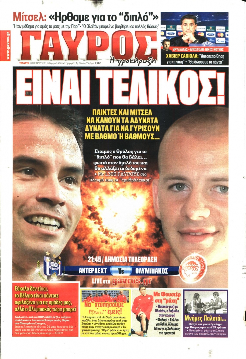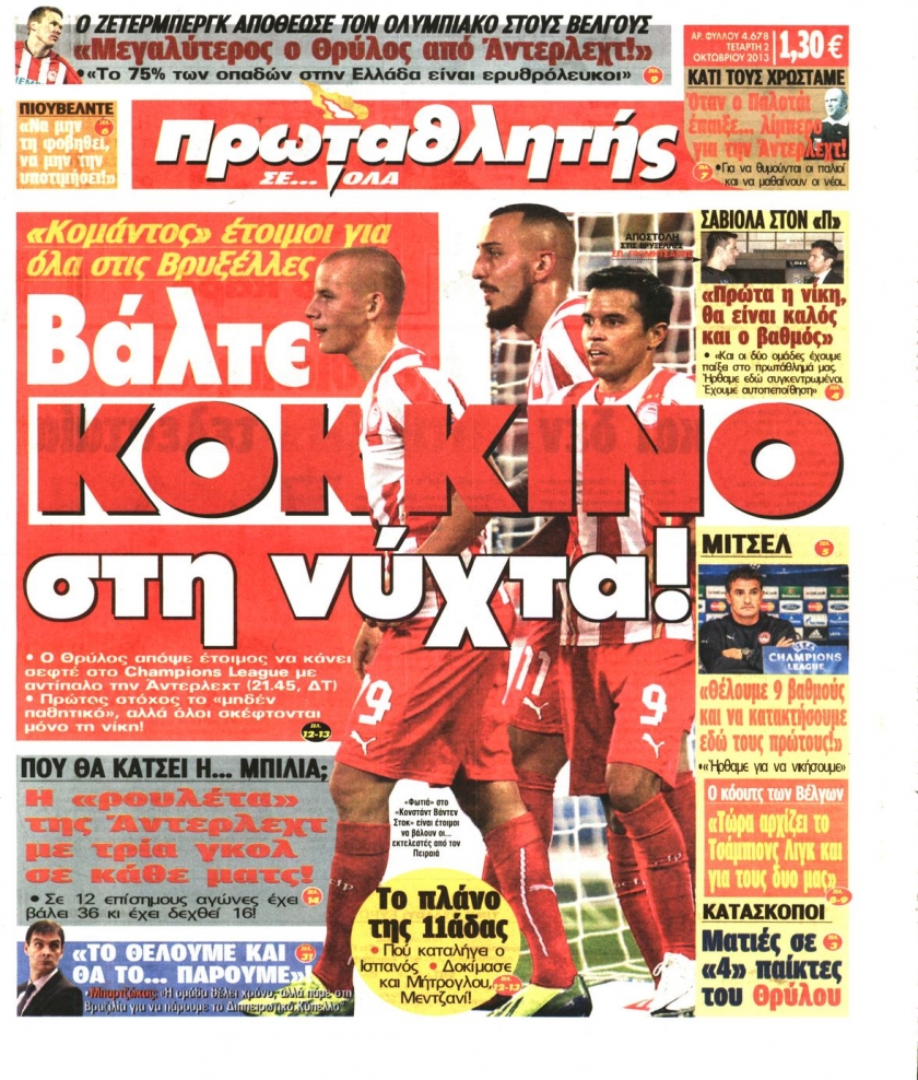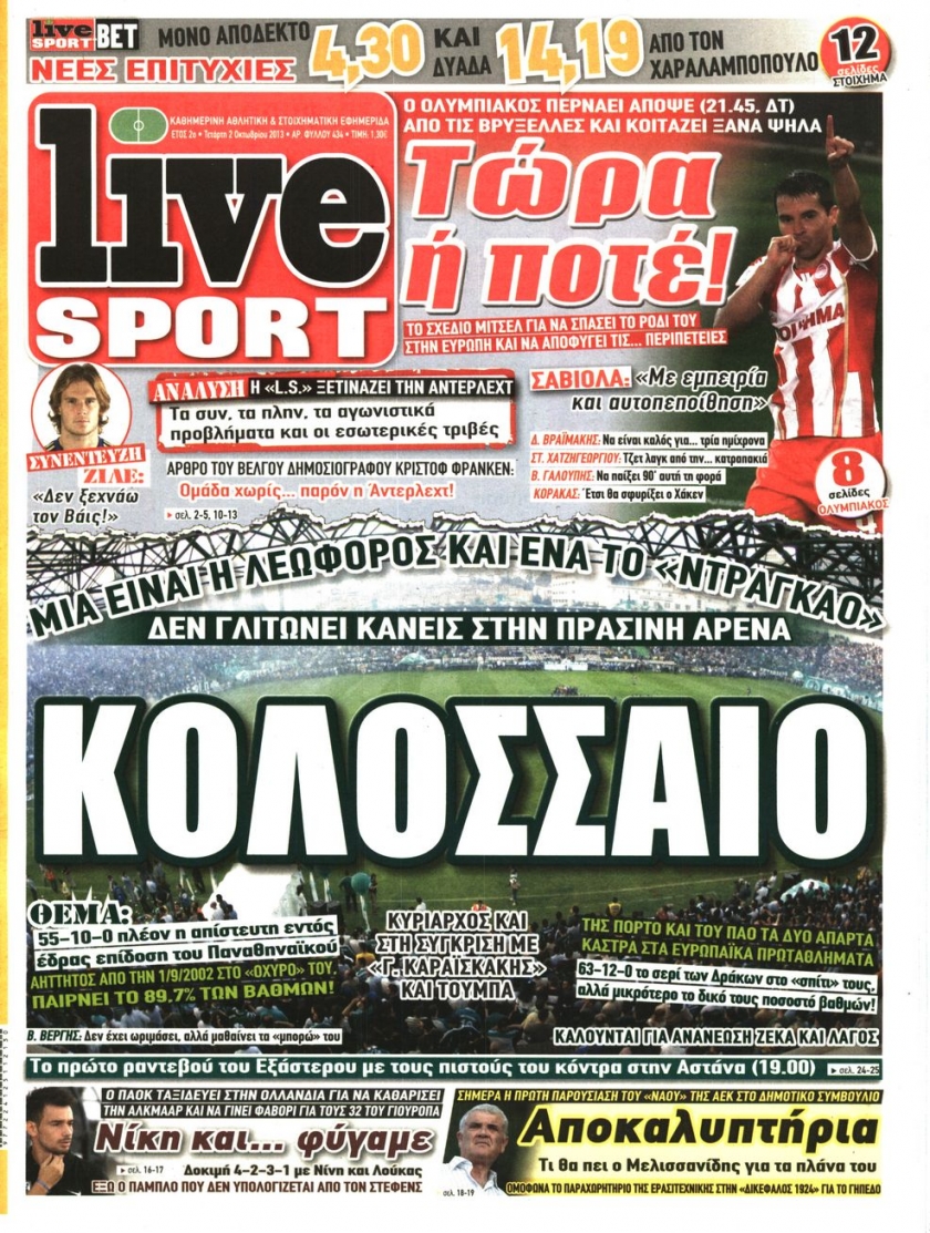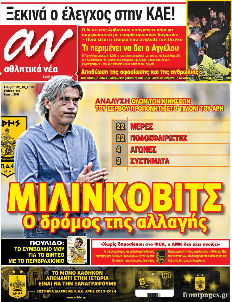 Οι αθλητικές εφημερίδες Enikos Newsroom 08:42, Τετάρτη 02 Οκτωβρίου 2013 Media Οι αθλητικές εφημερίδες ΑΘΛΗΤΙΚΕΣ ΕΦΗΜΕΡΙΔΕΣ ΕΦΗΜΕΡΙΔΕΣ ΠΡΩΤΟΣΕΛΙΔΑ Μοιράσου το: σχολίασε κι εσύ (0 σχόλια) Ακολουθήστε το enikos.gr στο Google News και μάθετε πρώτοι όλες τις ειδήσεις Δείτε όλες τις τελευταίες ειδήσεις από την Ελλάδα και τον Κόσμο στο enikos.gr Ειδήσεις Ροή Ειδήσεων 1 ώρα πριν Ευρωπαϊκή Ένωση: Συμφωνία για δάνειο 90 δισ. ευρώ στην Ουκρανία τη διετία 2026-2027 6 ώρες πριν ΟΠΕΚΕΠΕ: Προφυλακιστέος ο φερόμενος αρχηγός και ο λογιστής της εγκληματικής οργάνωσης 7 ώρες πριν Αυξάνουν την πίεση προς την κυβέρνηση οι αγρότες: Κλείνουν παρακαμπτήριους και ανοίγουν διόδια – Τι θα γίνει τις γιορτές 7 ώρες πριν Φοινικούντα: Το Σάββατο απολογείται ο 30χρονος γιος γνωστού επιχειρηματία της Πλάκας που παραδόθηκε – Όσα είπε στους αστυνομικούς και ο ρόλος του στο έγκλημα 5 ώρες πριν ΑΕΚ – Κραϊόβα 3-2: Επική ανατροπή και πρόκριση στους «16» του Conference League η Ένωση 6 ώρες πριν Αρχαιολόγοι ανακάλυψαν ρωμαϊκά τεχνουργήματα από μια πόλη που δεν υπήρξε ποτέ – Τα τρία εντυπωσιακά κτίρια και ο αμφορέας με τις… σαρδέλες 8 ώρες πριν Ύπνος: Η απλή βραδινή ρουτίνα για να προστατεύσετε τα μαλλιά σας από το κρύο κατά τη διάρκεια του χειμώνα 8 ώρες πριν Manifesting: Πώς να συναντήσετε τον σύντροφο της ζωής σας, ανάλογα με τον μήνα γέννησής σας 2 ημέρες πριν 20 χρόνια τα Χριστούγεννα ξεκινούν στα Public με μεγάλη ποικιλία σε δώρα! 13 δευτερόλεπτα πριν Τα ζώδια σήμερα, Παρασκευή 19 Δεκεμβρίου: Τοξότες, με τη Νέα Σελήνη έρχεται η προσωπική ανανέωσή σας 8 λεπτά πριν Εφημερεύοντα φαρμακεία σε Αθήνα και Θεσσαλονίκη (19/12) 14 λεπτά πριν Η TikTok στις ΗΠΑ πωλείται σε Oracle, Silver Lake και MGX – Οι λεπτομέρειες του «deal» 23 λεπτά πριν Αλεξάντερ Λουκασένκο: Η Λευκορωσία βρίσκεται κοντά στην αποκατάσταση των σχέσεών της με τις ΗΠΑ 38 λεπτά πριν Αυστραλία: Κήρυξε την Κυριακή (21/12) ημέρα εθνικού πένθους για τη φονική επίθεση στην παραλία Μπόνταϊ ENIKOS NETWORK Σε περίοδο αυξημένης δραστηριότητας η γρίπη στην Ελλάδα-Μέτρα προστασίας από τον ΕΟΔΥ Σκέφτεστε συνέχεια συζητήσεις που έχετε κάνει; Τι σημαίνει αυτό, σύμφωνα με ειδικό Στεγαστικό: Τι λέει η ΠΟΜΙΔΑ για τα νέα μέτρα που ανακοίνωσε ο Κυριάκος Μητσοτάκης Λαγκάρντ: Αισιόδοξη για την ανάπτυξη της Ευρωζώνης, αβέβαιη για τον πληθωρισμό Χαρτογραφώντας το «σημείο χωρίς επιστροφή»: Για πρώτη φορά αποκαλύπτεται με λεπτομέρεια το ακανθώδες όριο της ατμόσφαιρας τ... Η Google καταργεί τη λειτουργία «dark web report» – Πώς θα μπορούν οι χρήστες να διαγράφουν τα δεδομένα τους περισσότερα 02:50 , Παρασκευή 19 Δεκεμβρίου 2025 GNTM: «Κλείδωσαν» οι τέσσερις φιναλίστ – Μεγάλη ανατροπή στις τελευταίες αποχωρήσεις Για προτελευταία φορά εμφανίστηκαν στο πλατό του GNTM οι φιναλίστ του φετινού κύκλου, το βράδυ... 17:45 , Πέμπτη 18 Δεκεμβρίου 2025 ROUK ZOUK: Εορταστικό επεισόδιο με καλεσμένους τους πρωταγωνιστές του «Γιατί ρε πατέρα» Το Σάββατο 20 Δεκεμβρίου στις 21:00, η Ζέτα Μακρυπούλια υποδέχεται εκλεκτούς ηθοποιούς που όλο... 17:20 , Πέμπτη 18 Δεκεμβρίου 2025 Άγιος έρωτας: Η Χριστίνα εξομολογείται στον πατέρα Νικόλαο, απόψε στις 21:00 στον Alpha Η Νότα αποφασίζει να εκδικηθεί τον Πέτρο και τον Στέφανο, για χάρη του Λούη, όμως τα πράγματα ... 16:50 , Πέμπτη 18 Δεκεμβρίου 2025 Να μ’ αγαπάς: Ζωή και Φωτεινή συμφιλιώνονται ως μάνα με κόρη, απόψε στις 20:00 Η ταυτότητα του Άγγελου αποκαλύπτεται στο νέο επεισόδιο της σειράς “Να μ’ αγαπάς... ΤΕΛΕΥΤΑΙΕΣ ΕΙΔΗΣΕΙΣ 8 λεπτά πριν Εφημερεύοντα φ