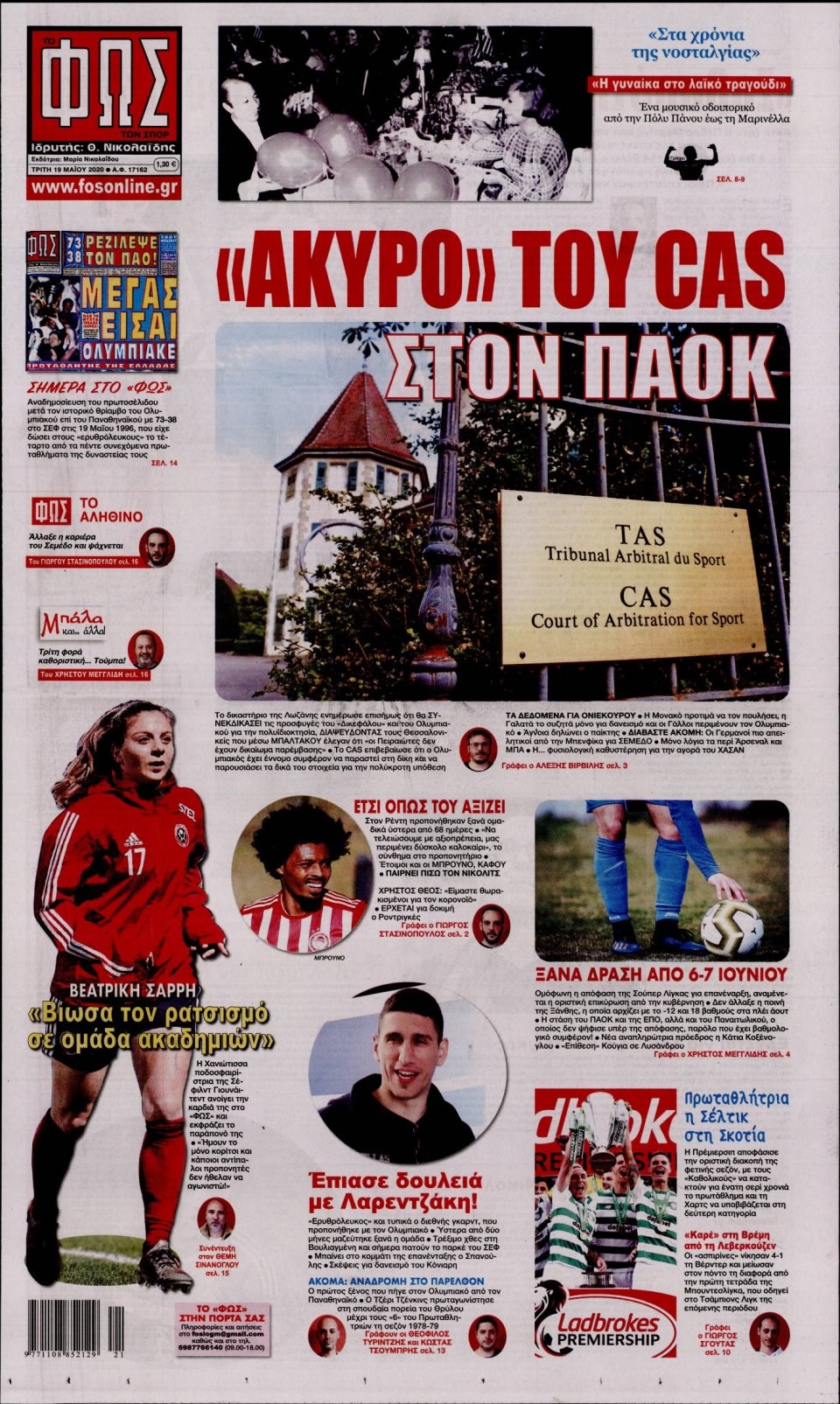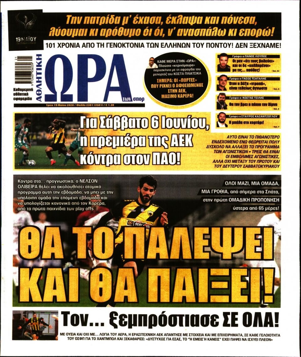 Οι αθλητικές εφημερίδες 19/5/2020 Σήφης Γαρυφαλάκης 06:38, Τρίτη 19 Μαΐου 2020 Media Διαβάστε τα πρωτοσέλιδα των αθλητικών εφημερίδων… ΑΘΛΗΤΙΚΕΣ ΕΦΗΜΕΡΙΔΕΣ ΕΦΗΜΕΡΙΔΕΣ ΠΡΩΤΟΣΕΛΙΔΑ ΠΡΩΤΟΣΕΛΙΔΑ ΕΦΗΜΕΡΙΔΩΝ Μοιράσου το: σχολίασε κι εσύ (0 σχόλια) Ακολουθήστε το enikos.gr στο Google News και μάθετε πρώτοι όλες τις ειδήσεις Δείτε όλες τις τελευταίες ειδήσεις από την Ελλάδα και τον Κόσμο στο enikos.gr Ειδήσεις Ροή Ειδήσεων 2 ώρες πριν ΣΥΡΙΖΑ: Διαγράφεται ο ευρωβουλευτής Νίκος Παππάς μετά την μήνυση δημοσιογράφου για ξυλοδαρμό 39 λεπτά πριν Τουρκία: Επιδιώκει την επιστροφή των S-400 στη Ρωσία – Οι αμερικανικές πιέσεις 50 λεπτά πριν ΟΠΕΚΕΠΕ: Ελεύθερες με όρους η σύζυγος και η αδελφή του φερόμενου αρχηγού – Τι υποστήριξαν 3 ώρες πριν Πώς στήθηκε η επιχείρηση «Ίπαλλος» που οδήγησε στη σύλληψη του «Έλληνα Εσκομπάρ» – «Ο πόλεμος ενάντια στους εμπόρους ναρκωτικών θα συνεχιστεί» 3 ώρες πριν Κυψέλη: Στη φυλακή η 16χρονη που μαχαίρωσε συμμαθήτριά της 3 ώρες πριν Τα 3 ζώδια που θα δουν τη ζωή τους να αλλάζει ριζικά το 2026 – «Όλα γίνονται καλύτερα σταδιακά» 8 ώρες πριν «Δεν είχα κλάψει από τότε που διαγνώστηκα με καρκίνο, ώσπου ένα τηλεφώνημα με έκανε να λυγίσω» – Η συγκλονιστική εξομολόγηση ενός άνδρα 4 ώρες πριν Ο σπάνιος σεισμός που έλυσε τα χέρια των επιστημόνων – Αποκάλυψε ακριβώς όσα αναζητούσαν 10 ώρες πριν 20 χρόνια τα Χριστούγεννα ξεκινούν στα Public με μεγάλη ποικιλία σε δώρα! 5 λεπτά πριν Μητσοτάκης: Το γούρι με τα αρχικά του για το 2026 που έδωσε στους βουλευτές της ΝΔ – ΦΩΤΟ 10 λεπτά πριν Καβάλα – Παναθηναϊκός 1-2: Ο Ταμπόρδα έστειλε τους Πράσινους απευθείας στα προημιτελικά του Κυπέλλου Ελλάδας 14 λεπτά πριν Δημήτρης Ήμελλος: Η συγκινητική ανάρτηση της αδελφής του, για τον ένα χρόνο από τον θάνατό του – «Πήγες στον Θεό για να μας θυμίσεις…» 20 λεπτά πριν Κρήτη: Η ανακοίνωση της ΕΛΑΣ για την σύλληψη του 54χρονου – Ζήτησε 5.000 ευρώ από την οικογένεια του 33χρονου γιατρού για να τον βρει μέσω «κβαντικής τεχνολογίας» 24 λεπτά πριν Διπλωματικές πηγές: Το πρώτο τρίμηνο του 2026 το Ανώτατο Συμβούλιο Συνεργασίας Ελλάδας-Τουρκίας ENIKOS NETWORK 2,6 εκατομμύρια πολίτες έχουν ήδη εμβολιαστεί κατά της γρίπης Σοβαροί κίνδυνοι από τη λάθος χορήγηση φαρμάκου για τις αιμορραγίες-Συστάσεις προς τους γιατρούς Έρχεται νέα ενίσχυση 17.500 ευρώ από τη ΔΥΠΑ για ανέργους- Όλες οι λεπτομέρειες «Αναταράξεις» στην εφοδιαστική αλυσίδα από τα μπλόκα: Επιστολή του Συνδέσμου Θεσσαλικών Βιομηχανιών στον πρωθυπουργό -Τι αν... Χαρτογραφώντας το «σημείο χωρίς επιστροφή»: Για πρώτη φορά αποκαλύπτεται με λεπτομέρεια το ακανθώδες όριο της ατμόσφαιρας τ... Η Google καταργεί τη λειτουργία «dark web report» – Πώς θα μπορούν οι χρήστες να διαγράφουν τα δεδομένα τους περισσότερα 12:35 , Τετάρτη 17 Δεκεμβρίου 2025 Μίρκα Παπακωνσταντίνου: «Δεν ήμουν αισιόδοξη για τα νούμερα – Είμαι ρεαλίστρια» Στα γυρίσματα του εορταστικού επεισοδίου της αγαπημένης σειράς “Το Σόι Σου”, βρέθηκε η κάμερα ... 12:12 , Τετάρτη 17 Δεκεμβρίου 2025 Ακούστε την εκπομπή του Νίκου Χατζηνικολάου 17/12/2025 Ακούστε την εκπομπή του Νίκου Χατζηνικολάου στον ραδιοφωνικό σταθμό RealFm 97,8, την Τετάρτη 1... 11:35 , Τετάρτη 17 Δεκεμβρίου 2025 Home Alone: Το σπίτι της ταινίας θα ανακαινιστεί – Επιστροφή στην αισθητική της δεκαετίας του ’90 Οι νέοι ιδιοκτήτες του πραγματικού σπιτιού που παρουσιάζεται στην κλασική ταινία του 1990 «Hom... 11:25 , Τετάρτη 17 Δεκεμβρίου 2025 Grand Hotel: Απόψε το τελευταίο επεισόδιο της χρονιάς –