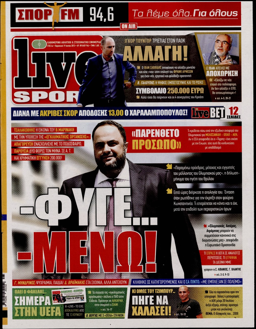 Οι αθλητικές εφημερίδες 19/6/2015 Enikos Newsroom 06:46, Παρασκευή 19 Ιουνίου 2015 Media Διαβάστε τα σημερινά πρωτοσέλιδα των αθλητικών εφημερίδων: ΑΘΛΗΤΙΚΕΣ ΕΦΗΜΕΡΙΔΕΣ ΠΡΩΤΟΣΕΛΙΔΑ Μοιράσου το: σχολίασε κι εσύ (0 σχόλια) Ακολουθήστε το enikos.gr στο Google News και μάθετε πρώτοι όλες τις ειδήσεις Δείτε όλες τις τελευταίες ειδήσεις από την Ελλάδα και τον Κόσμο στο enikos.gr Ειδήσεις Ροή Ειδήσεων 25 λεπτά πριν Τραμπ: Δεν αποκλείει την πιθανότητα ενός πολέμου στη Βενεζουέλα – «Ο Μαδούρο ξέρει καλύτερα από τον καθένα τι ακριβώς θέλω» 19 λεπτά πριν Ουκρανία: Η άνευ προηγουμένου επίθεση σε ρωσικό τάνκερ στη Μεσόγειο και το μήνυμα προς στον Πούτιν – Το «μακρύ χέρι» του Κιέβου 3 ώρες πριν Εμπλοκή και αερομαχίες με οπλισμένα τουρκικά F-16 στο Αιγαίο 3 ώρες πριν Πούτιν: «Ναι, είμαι ερωτευμένος» – Βίντεο από τη σπάνια προσωπική παραδοχή του 1 ώρα πριν Ανδρέας Λυκουρέντζος: Υπέβαλε την παραίτησή του ο πρόεδρος του ΕΛΓΑ, αλλά δεν έγινε δεκτή – Όλο το παρασκήνιο 2 ώρες πριν Αριθμολογία: Οι άνθρωποι που έχουν γεννηθεί αυτές τις 4 ημερομηνίες, συχνά παρεξηγούνται – «Η καλοσύνη τους κρύβει τεράστια δύναμη» 4 ώρες πριν Μήπως έχετε χάσει τον εαυτό σας στη σχέση σας; 7 «αθόρυβες» υποχωρήσεις που μάλλον κάνατε, χωρίς να το συνειδητοποιήσετε 3 ώρες πριν Ξεχάστε το καθάρισμα το Σαββατοκύριακο: Ο «κανόνας των 20 λεπτών» που θα σας λύσει τα χέρια 34 λεπτά πριν Ύπνος: Μια κρυφή κατάσταση του εγκεφάλου πριν από τον ύπνο μπορεί να είναι το “κλειδί” για υψηλή ευφυΐα και δημιουργικότητα 8 λεπτά πριν Χάρι και Μέγκαν: Η σπάνια οικογενειακή φωτογραφία με τον Άρτσι και τη Λίλιμπετ – Τι σχεδιάζουν για τα Χριστούγεννα 15 λεπτά πριν Βασίλης Καρράς: «Είναι πάντα δίπλα μου, δεν έφυγε…», λέει ο αδελφός του 19 λεπτά πριν Ουκρανία: Η άνευ προηγουμένου επίθεση σε ρωσικό τάνκερ στη Μεσόγειο και το μήνυμα προς στον Πούτιν – Το «μακρύ χέρι» του Κιέβου 25 λεπτά πριν Τραμπ: Δεν αποκλείει την πιθανότητα ενός πολέμου στη Βενεζουέλα – «Ο Μαδούρο ξέρει καλύτερα από τον καθένα τι ακριβώς θέλω» 26 λεπτά πριν Κηφισιά: Με πολλές απουσίες κόντρα στον Ολυμπιακό – «Last dance» για τον Τεττέη ENIKOS NETWORK Το ΕΚΑΒ τιμήθηκε από την Ακαδημία Αθηνών για τα 40 χρόνια προσφοράς του Έχετε πραγματικά μεγάλη καρδιά; 10 χαρακτηριστικά όσων έχουν καλοσύνη ΑΑΔΕ: Νέες αναβαθμίσεις στο Ψηφιακό Πελατολόγιο και την εφαρμογή myDATAapp – Τι πρέπει να γνωρίζετε Όμιλος ΔΕΗ: Νέα ορόσημα και ενισχυμένη διαφάνεια στην ετήσια Έκθεση Βιώσιμης Ανάπτυξης Χαρτογραφώντας το «σημείο χωρίς επιστροφή»: Για πρώτη φορά αποκαλύπτεται με λεπτομέρεια το ακανθώδες όριο της ατμόσφαιρας τ... Η Google καταργεί τη λειτουργία «dark web report» – Πώς θα μπορούν οι χρήστες να διαγράφουν τα δεδομένα τους περισσότερα 20:37 , Παρασκευή 19 Δεκεμβρίου 2025 Don’t Forget The Lyrics: Η Έλλη Κοκκίνου υποδέχεται 4 παίκτες που θα κάνουν τα πάντα για να μη χάσουν ούτε… μισή λέξη από τους στίχους Το «Don’t Forget The Lyrics» επιστρέφει απόψε, Παρασκευή 19 Δεκεμβρίου, στις 21:00 με νέο επει... 19:31 , Παρασκευή 19 Δεκεμβρίου 2025 GNTM: Απόψε ο μεγάλος τελικός για τους 4 φιναλίστ Έπειτα από μήνες γεμάτους μόδα, δημιουργία και έντονες αναμετρήσεις, το GNTM 2025 κορυφώνεται,... 18:11 , Παρασκευή 19 Δεκεμβρίου 2025 Το σόι σου: Ο Άρης έρχεται στην Ελλάδα για τις γιορτές των Χριστουγέννων – Τι θα δούμε στο αποψινό εορταστικό επεισόδιο Ένα απολαυστικό, εορταστικό επεισόδιο της σειράς “Το σόι σου”, γεμάτο ευτράπελα αλ... 15:15 , Παρασκευή 19 Δεκεμβρίου 2025 Την Κυριακή με τη Realnews: