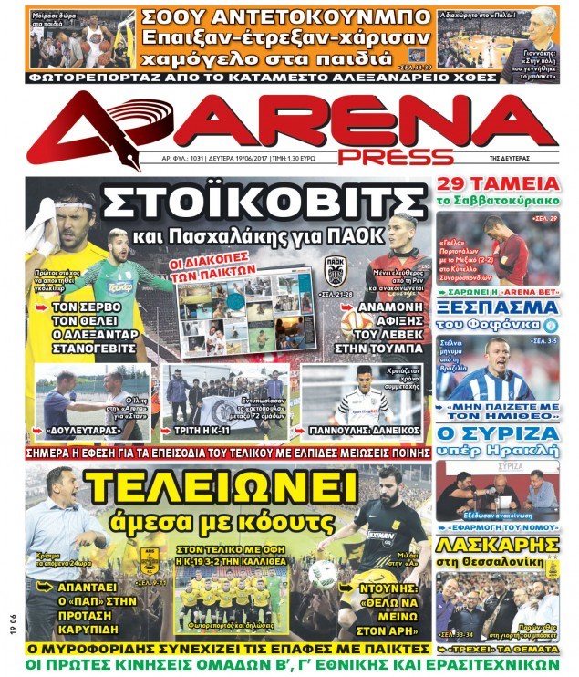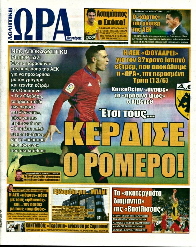 Οι αθλητικές εφημερίδες 19/6/2017 Κώστας Τεό 06:18, Δευτέρα 19 Ιουνίου 2017 Media Διαβάστε τα σημερινά πρωτοσέλιδα των αθλητικών εφημερίδων: ΑΘΛΗΤΙΚΕΣ ΕΦΗΜΕΡΙΔΕΣ ΠΡΩΤΟΣΕΛΙΔΑ Μοιράσου το: σχολίασε κι εσύ (0 σχόλια) Ακολουθήστε το enikos.gr στο Google News και μάθετε πρώτοι όλες τις ειδήσεις Δείτε όλες τις τελευταίες ειδήσεις από την Ελλάδα και τον Κόσμο στο enikos.gr Ειδήσεις Ροή Ειδήσεων 5 ώρες πριν Χριστούγεννα στα μπλόκα: Επιμένουν στις κινητοποιήσεις τους οι αγρότες – Ανοίγουν τα διόδια το Σαββατοκύριακο 5 ώρες πριν Ουκρανία: Η άνευ προηγουμένου επίθεση σε ρωσικό τάνκερ στη Μεσόγειο και το μήνυμα προς στον Πούτιν – Το «μακρύ χέρι» του Κιέβου 4 ώρες πριν Πούτιν: Τα μηνύματα σε Ευρώπη και ΝΑΤΟ από το μαραθώνιο «σόου» του – Η απαίτηση για «σεβασμό» και η ειρήνη «με τους όρους» της Μόσχας 5 ώρες πριν Τραμπ: Δεν αποκλείει την πιθανότητα ενός πολέμου στη Βενεζουέλα – «Ο Μαδούρο ξέρει καλύτερα από τον καθένα τι ακριβώς θέλω» 6 ώρες πριν Συνεχίζει να προκαλεί ο Μίτσκοσκι: «Για μένα το όνομα Μακεδονία είναι ιερό» 4 ώρες πριν Ανακαλύφθηκαν αρχαία χρυσά νομίσματα 2.200 ετών που απεικονίζουν τον θεό Απόλλωνα – Η άγνωστη σύνδεση με τον Φίλιππο Β΄ της Μακεδονίας 5 ώρες πριν Ύπνος: Μια κρυφή κατάσταση του εγκεφάλου πριν από τον ύπνο μπορεί να είναι το “κλειδί” για υψηλή ευφυΐα και δημιουργικότητα 6 ώρες πριν Αριθμολογία: Οι άνθρωποι που έχουν γεννηθεί αυτές τις 4 ημερομηνίες, συχνά παρεξηγούνται – «Η καλοσύνη τους κρύβει τεράστια δύναμη» 7 ώρες πριν Ξεχάστε το καθάρισμα το Σαββατοκύριακο: Ο «κανόνας των 20 λεπτών» που θα σας λύσει τα χέρια 12 λεπτά πριν Η Ελλάδα προσχωρεί στη Διεθνή Επιτροπή Αποζημιώσεων για την Ουκρανία 27 λεπτά πριν GNTM: Η Ξένια Τσίρκοβα αναδείχθηκε μεγάλη νικήτρια και πήρε τις 50.000 ευρώ – Ποιος βρέθηκε σε απόσταση αναπνοής; 42 λεπτά πριν Θεσσαλονίκη: Εξαφανίστηκε 13χρονος από χώρο φιλοξενίας ασυνόδευτων ανηλίκων στο Ωραιόκαστρο 52 λεπτά πριν Ντόναλντ Τραμπ: «Πολύ βαριά αντίποινα» στη Συρία – «Πλήττουμε πολύ δυνατά οχυρά του Ισλαμικού Κράτους» 1 ώρα πριν Εξάρχεια: Ένταση με μολότοφ, χημικά και κρότου λάμψης ENIKOS NETWORK Το ΕΚΑΒ τιμήθηκε από την Ακαδημία Αθηνών για τα 40 χρόνια προσφοράς του Έχετε πραγματικά μεγάλη καρδιά; 10 χαρακτηριστικά όσων έχουν καλοσύνη Αναστολή μέτρων αναγκαστικής εκτέλεσης για κτηνοτρόφους που πλήττονται από την ευλογιά των αιγοπροβάτων Πλήρης επάρκεια προϊόντων στις λαϊκές της Αττικής, παρά τις αγροτικές κινητοποιήσεις – Τι απαντούν οι πωλητές Χαρτογραφώντας το «σημείο χωρίς επιστροφή»: Για πρώτη φορά αποκαλύπτεται με λεπτομέρεια το ακανθώδες όριο της ατμόσφαιρας τ... Η Google καταργεί τη λειτουργία «dark web report» – Πώς θα μπορούν οι χρήστες να διαγράφουν τα δεδομένα τους περισσότερα 02:50 , Σάββατο 20 Δεκεμβρίου 2025 GNTM: Η Ξένια Τσίρκοβα αναδείχθηκε μεγάλη νικήτρια και πήρε τις 50.000 ευρώ – Ποιος βρέθηκε σε απόσταση αναπνοής; Με φαντασμαγορικό τρόπο ολοκληρώθηκε το βράδυ της Παρασκευής ο μεγάλος τελικός του GNTM, μέσα ... 22:42 , Παρασκευή 19 Δεκεμβρίου 2025 Γιώργος Γιαννόπουλος για “Το σόι σου”: “Είναι ευτυχία και ευλογία αυτή η σειρά” «Είναι ευτυχία και ευλογία η συγκυρία αυτής της σειράς», θα πει ο Γιώργος Γιαννόπουλος -ο αγαπ... 20:37 , Παρασκευή 19 Δεκεμβρίου 2025 Don’t Forget The Lyrics: Η Έλλη Κοκκίνου υποδέχεται 4 παίκτες που θα κάνουν τα πάντα για να μη χάσουν ούτε… μισή λέξη από τους στίχους Το «Don’t Forget The Lyrics» επιστρέφει απόψε, Παρασκευή 19 Δεκεμβρίου, στις 21:00 με