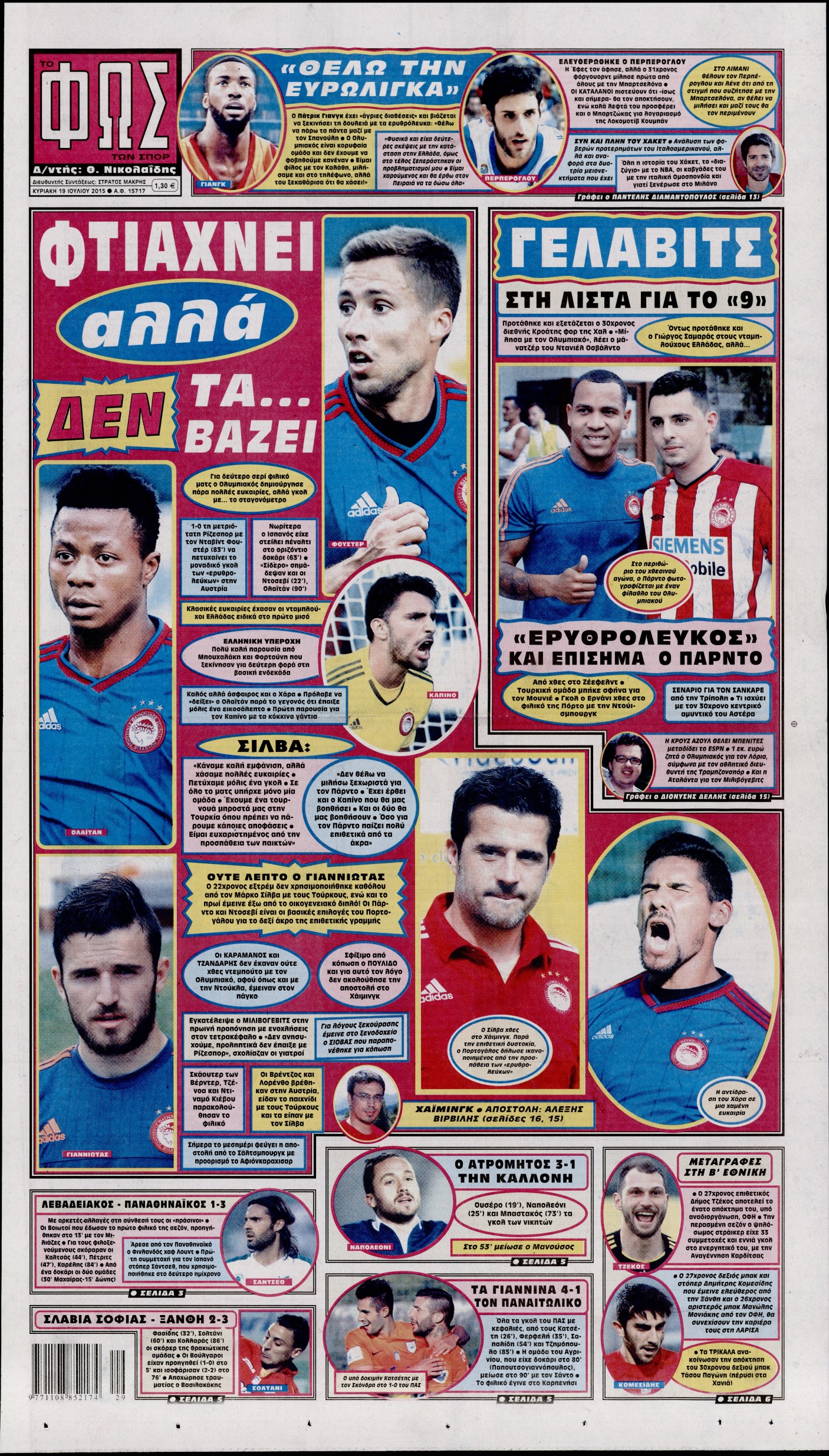 Oι αθλητικές εφημερίδες 19/7/2015 Enikos Newsroom 06:34, Κυριακή 19 Ιουλίου 2015 Media Διαβάστε τα σημερινά πρωτοσέλιδα των αθλητικών εφημερίδων: ΑΘΛΗΤΙΚΕΣ ΕΦΗΜΕΡΙΔΕΣ ΠΡΩΤΟΣΕΛΙΔΑ Μοιράσου το: σχολίασε κι εσύ (0 σχόλια) Ακολουθήστε το enikos.gr στο Google News και μάθετε πρώτοι όλες τις ειδήσεις Δείτε όλες τις τελευταίες ειδήσεις από την Ελλάδα και τον Κόσμο στο enikos.gr Ειδήσεις Ροή Ειδήσεων 2 ώρες πριν Χριστούγεννα στα μπλόκα: Επιμένουν στις κινητοποιήσεις τους οι αγρότες – Ανοίγουν τα διόδια το Σαββατοκύριακο 2 ώρες πριν Ουκρανία: Η άνευ προηγουμένου επίθεση σε ρωσικό τάνκερ στη Μεσόγειο και το μήνυμα προς στον Πούτιν – Το «μακρύ χέρι» του Κιέβου 2 ώρες πριν Πούτιν: Τα μηνύματα σε Ευρώπη και ΝΑΤΟ από το μαραθώνιο «σόου» του – Η απαίτηση για «σεβασμό» και η ειρήνη «με τους όρους» της Μόσχας 2 ώρες πριν Τραμπ: Δεν αποκλείει την πιθανότητα ενός πολέμου στη Βενεζουέλα – «Ο Μαδούρο ξέρει καλύτερα από τον καθένα τι ακριβώς θέλω» 3 ώρες πριν Συνεχίζει να προκαλεί ο Μίτσκοσκι: «Για μένα το όνομα Μακεδονία είναι ιερό» 2 ώρες πριν Ανακαλύφθηκαν αρχαία χρυσά νομίσματα 2.200 ετών που απεικονίζουν τον θεό Απόλλωνα – Η άγνωστη σύνδεση με τον Φίλιππο Β΄ της Μακεδονίας 3 ώρες πριν Ύπνος: Μια κρυφή κατάσταση του εγκεφάλου πριν από τον ύπνο μπορεί να είναι το “κλειδί” για υψηλή ευφυΐα και δημιουργικότητα 4 ώρες πριν Αριθμολογία: Οι άνθρωποι που έχουν γεννηθεί αυτές τις 4 ημερομηνίες, συχνά παρεξηγούνται – «Η καλοσύνη τους κρύβει τεράστια δύναμη» 5 ώρες πριν Ξεχάστε το καθάρισμα το Σαββατοκύριακο: Ο «κανόνας των 20 λεπτών» που θα σας λύσει τα χέρια 11 λεπτά πριν Φαίη Σκορδά: «Παλιότερα τα κομπλιμέντα τα προσπερνούσα, τώρα τα έχω ανάγκη» 27 λεπτά πριν Βασίλης Σπανούλης: Δεν εμφανίστηκε ούτε ένας δημοσιογράφος στην συνέντευξη Τύπου – «Καλησπέρα στον… κανέναν», δείτε βίντεο 38 λεπτά πριν Πόλεμος στην Ουκρανία: Εφτά νεκροί από ρωσική πυραυλική επίθεση στο λιμάνι της Οδησσού 41 λεπτά πριν ΗΠΑ: Η κυβέρνηση του Ντόναλντ Τραμπ άρχισε να δημοσιοποιεί τα αρχεία Έπσταϊν 53 λεπτά πριν Σάμος: Άνοιξε το μπλόκο των αγροτών στον κόμβο Κοκκαρίου – Σε νέα συνεδρίαση θα καθορίσουν την στάση τους ENIKOS NETWORK Το ΕΚΑΒ τιμήθηκε από την Ακαδημία Αθηνών για τα 40 χρόνια προσφοράς του Έχετε πραγματικά μεγάλη καρδιά; 10 χαρακτηριστικά όσων έχουν καλοσύνη Αναστολή μέτρων αναγκαστικής εκτέλεσης για κτηνοτρόφους που πλήττονται από την ευλογιά των αιγοπροβάτων Πλήρης επάρκεια προϊόντων στις λαϊκές της Αττικής, παρά τις αγροτικές κινητοποιήσεις – Τι απαντούν οι πωλητές Χαρτογραφώντας το «σημείο χωρίς επιστροφή»: Για πρώτη φορά αποκαλύπτεται με λεπτομέρεια το ακανθώδες όριο της ατμόσφαιρας τ... Η Google καταργεί τη λειτουργία «dark web report» – Πώς θα μπορούν οι χρήστες να διαγράφουν τα δεδομένα τους περισσότερα 22:42 , Παρασκευή 19 Δεκεμβρίου 2025 Γιώργος Γιαννόπουλος για “Το σόι σου”: “Είναι ευτυχία και ευλογία αυτή η σειρά” «Είναι ευτυχία και ευλογία η συγκυρία αυτής της σειράς», θα πει ο Γιώργος Γιαννόπουλος -ο αγαπ... 20:37 , Παρασκευή 19 Δεκεμβρίου 2025 Don’t Forget The Lyrics: Η Έλλη Κοκκίνου υποδέχεται 4 παίκτες που θα κάνουν τα πάντα για να μη χάσουν ούτε… μισή λέξη από τους στίχους Το «Don’t Forget The Lyrics» επιστρέφει απόψε, Παρασκευή 19 Δεκεμβρίου, στις 21:00 με νέο επει... 19:31 , Παρασκευή 19 Δεκεμβρίου 2025 GNTM: Απόψε ο μεγάλος τελικός για τους 4 φιναλίστ Έπειτα από μήνες γεμάτους μόδα, δημιουργία και έντονες αναμετρήσεις, το GNTM 2025 κορυφώνεται,... 18:11 , Παρα