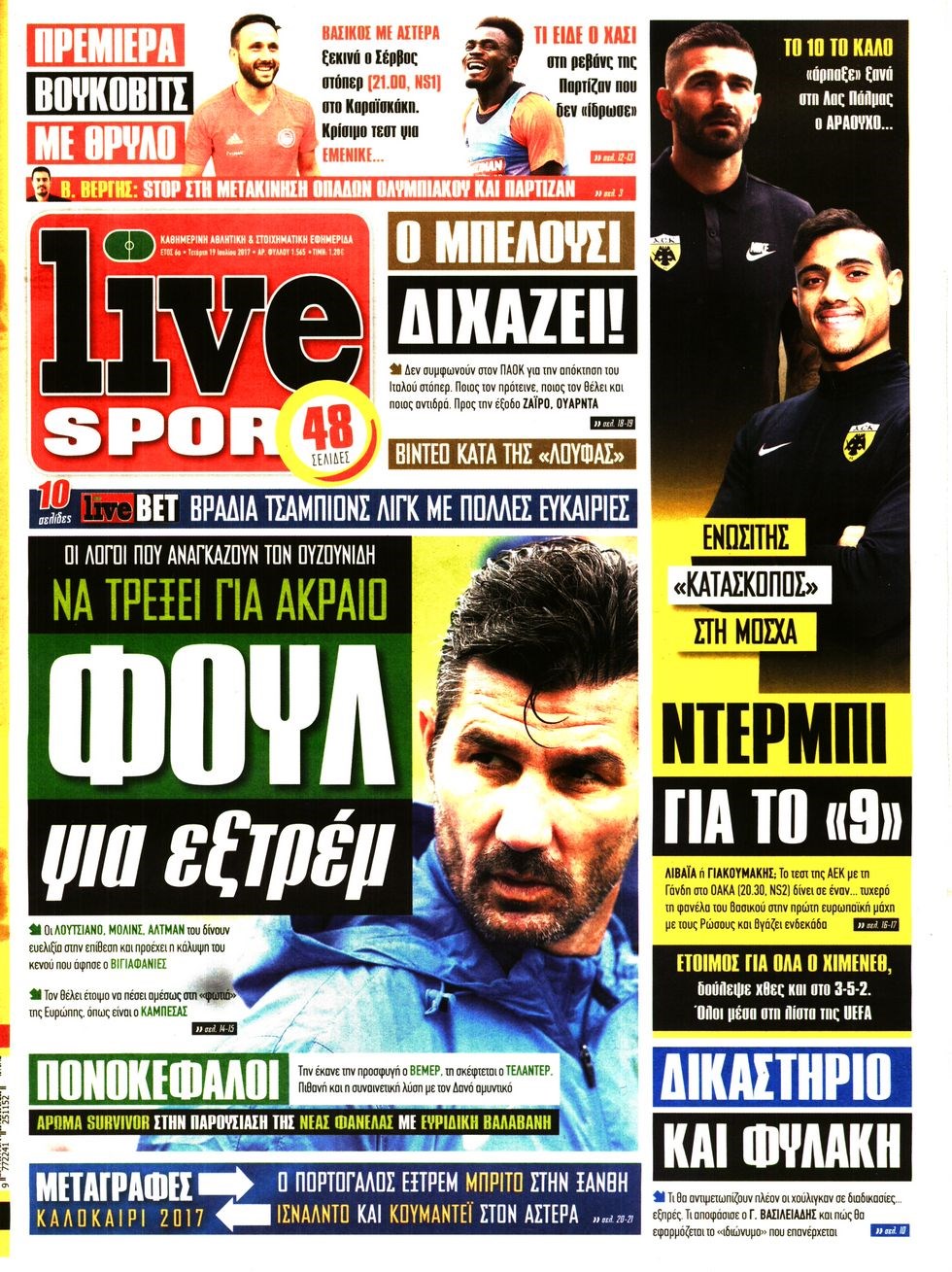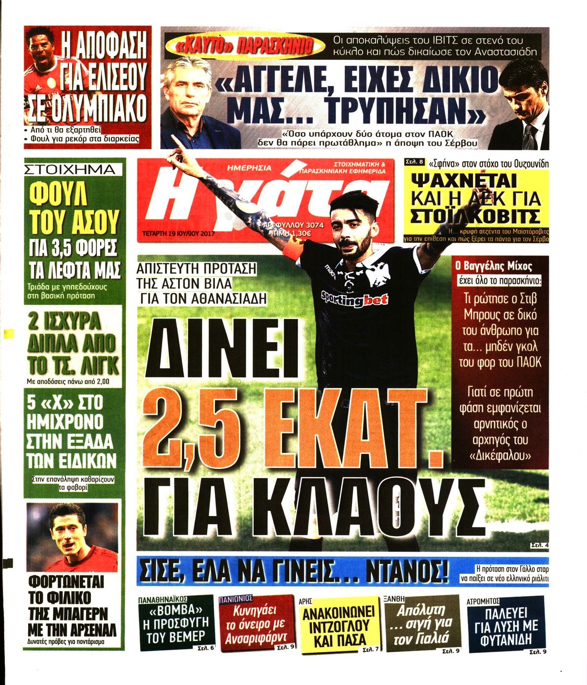 Οι αθλητικές εφημερίδες 19/7/2017 Enikos Newsroom 07:00, Τετάρτη 19 Ιουλίου 2017 Media Διαβάστε τα σημερινά πρωτοσέλιδα των αθλητικών εφημερίδων: ΑΘΛΗΤΙΚΕΣ ΕΦΗΜΕΡΙΔΕΣ ΠΡΩΤΟΣΕΛΙΔΑ Μοιράσου το: σχολίασε κι εσύ (0 σχόλια) Ακολουθήστε το enikos.gr στο Google News και μάθετε πρώτοι όλες τις ειδήσεις Δείτε όλες τις τελευταίες ειδήσεις από την Ελλάδα και τον Κόσμο στο enikos.gr Ειδήσεις Ροή Ειδήσεων 3 ώρες πριν Υπόθεση Έπσταϊν: Το Υπουργείο Δικαιοσύνης δημοσιοποίησε μια σειρά από εξαιρετικά επεξεργασμένα αρχεία – «Λείπουν τα πιο σημαντικά έγγραφα», λένε οι Δημοκρατικοί 8 λεπτά πριν Γιορτές με μπλόκα για τους αγρότες: Ανοίγουν διόδια και μοιράζουν προϊόντα στους ταξιδιώτες 41 λεπτά πριν Εξαφάνιση 33χρονου γιατρού στην Κρήτη: «Άναψα τα φώτα, τρόμαξε και άρχισε να τρέχει στα χωράφια» – Η τελευταία διαδρομή και η μαρτυρία «κλειδί» 2 ώρες πριν Ο «χάρτης» με τις αυξήσεις και τις φοροελαφρύνσεις του 2026 – Ποιοι και πόσα κερδίζουν 24 λεπτά πριν Τα αρχεία του Έπσταϊν αποκαλύπτουν φωτογραφία του έκπτωτου πρίγκιπα Άντριου – Είναι ξαπλωμένος στην αγκαλιά 5 γυναικών 31 λεπτά πριν Μία νέα «χρυσή» περίοδος αρχίζει για 3 ζώδια από σήμερα – «Μία αναπάντεχη ευκαιρία οδηγεί στην επιτυχία» 5 ώρες πριν Αυγά: Πόσα μπορείτε να τρώτε την ημέρα με ασφάλεια για μέγιστη πρόσληψη πρωτεΐνης 3 ώρες πριν Αρχαιολόγοι ανακάλυψαν σε χωράφι απεικόνιση 600 ετών ενός Αγίου – Τα στοιχεία που δείχνουν ότι μαρτύρησε 2 ώρες πριν Αγχώνεται για το χριστουγεννιάτικο δώρο που πήρε στην πλούσια σύντροφό του – «Φοβάμαι πως θα το βρει φθηνιάρικο, φοράει βραχιόλια Cartier» 25 δευτερόλεπτα πριν e-ΕΦΚΑ και ΔΥΠΑ: Οι πληρωμές από 22 έως 24 Δεκεμβρίου – Ποιοι θα δουν χρήματα στους λογαριασμούς τους 8 λεπτά πριν Συνελήφθη οδηγός μηχανής που έτρεχε με 161 χλμ στη Συγγρού – Τον έπιασε το ραντάρ της Τροχαίας 8 λεπτά πριν Γιορτές με μπλόκα για τους αγρότες: Ανοίγουν διόδια και μοιράζουν προϊόντα στους ταξιδιώτες 17 λεπτά πριν Τηλεθέαση (19/12): Κυριάρχησε η σειρά «Το σόι σου» – Τι νούμερα έκανε ο τελικός του GNTM 24 λεπτά πριν Τα αρχεία του Έπσταϊν αποκαλύπτουν φωτογραφία του έκπτωτου πρίγκιπα Άντριου – Είναι ξαπλωμένος στην αγκαλιά 5 γυναικών ENIKOS NETWORK Είστε μόνιμα απρόσεκτοι; 3 σημάδια που δείχνουν ότι μπορεί να είναι σύμπτωμα πάθησης Πόσα κιλά παίρνουμε πραγματικά τα Χριστούγεννα, σύμφωνα με την επιστήμη – Πώς να το αποτρέψουμε; Επίδομα παιδιού: Τι αλλάζει από το 2026 – Το όφελος από τις φορολογικές ελαφρύνσεις Mega χριστουγεννιάτικη φορολοταρία: «Κλείδωσε» η ημερομηνία για την κλήρωση – Ερωτήσεις και απαντήσεις Χαρτογραφώντας το «σημείο χωρίς επιστροφή»: Για πρώτη φορά αποκαλύπτεται με λεπτομέρεια το ακανθώδες όριο της ατμόσφαιρας τ... Η Google καταργεί τη λειτουργία «dark web report» – Πώς θα μπορούν οι χρήστες να διαγράφουν τα δεδομένα τους περισσότερα 09:30 , Σάββατο 20 Δεκεμβρίου 2025 «Porto Leone: Στη γειτονιά με τα κόκκινα φανάρια» – Ο Χρόνης αποκαλύπτει στην Αλεξάνδρα το μυστικό για το παιδί της Λένας Η μεγάλη δραματική σειρά του Apha «Porto Leone: Στη γειτονιά με τα κόκκινα φανάρια» μας μεταφέ... 08:14 , Σάββατο 20 Δεκεμβρίου 2025 Τρομεροί γονείς: Η Μαρία Καβογιάννη εισβάλλει στο σπίτι της οικογένειας Στεφανίδη Όσα θα δούμε στο νέο διπλό επεισόδιο της σειράς «Τρομεροί γονείς», σήμερα Σάββατο 20 Δεκεμβρίο... 05:48 , Σάββατο 20 Δεκεμβρίου 2025 Οι οικονομικές εφημερίδες 20/12/2025 Διαβάστε τα πρωτοσέλιδα από τις οικονομικές εφημερίδες, σήμερα 20/12/2025. 05:43 , Σάββατο 20 Δεκεμβρίου 2025 Οι αθ