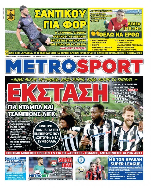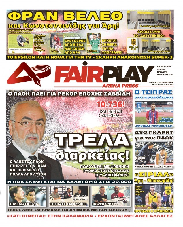 Οι αθλητικές εφημερίδες 19/7/2018 Enikos Newsroom 06:48, Πέμπτη 19 Ιουλίου 2018 Media Διαβάστε τα σημερινά πρωτοσέλιδα των αθλητικών εφημερίδων. ΑΘΛΗΤΙΚΕΣ ΕΦΗΜΕΡΙΔΕΣ ΠΡΩΤΟΣΕΛΙΔΑ Μοιράσου το: σχολίασε κι εσύ (0 σχόλια) Ακολουθήστε το enikos.gr στο Google News και μάθετε πρώτοι όλες τις ειδήσεις Δείτε όλες τις τελευταίες ειδήσεις από την Ελλάδα και τον Κόσμο στο enikos.gr Ειδήσεις Ροή Ειδήσεων 3 ώρες πριν Υπόθεση Έπσταϊν: Το Υπουργείο Δικαιοσύνης δημοσιοποίησε μια σειρά από εξαιρετικά επεξεργασμένα αρχεία – «Λείπουν τα πιο σημαντικά έγγραφα», λένε οι Δημοκρατικοί 4 λεπτά πριν Γιορτές με μπλόκα για τους αγρότες: Ανοίγουν διόδια και μοιράζουν προϊόντα στους ταξιδιώτες 37 λεπτά πριν Εξαφάνιση 33χρονου γιατρού στην Κρήτη: «Άναψα τα φώτα, τρόμαξε και άρχισε να τρέχει στα χωράφια» – Η τελευταία διαδρομή και η μαρτυρία «κλειδί» 2 ώρες πριν Ο «χάρτης» με τις αυξήσεις και τις φοροελαφρύνσεις του 2026 – Ποιοι και πόσα κερδίζουν 3 ώρες πριν Καιρός: Αλλαγή σκηνικού σήμερα με βροχές και πτώση της θερμοκρασίας – Οι προβλέψεις των μετεωρολόγων για τα Χριστούγεννα 27 λεπτά πριν Μία νέα «χρυσή» περίοδος αρχίζει για 3 ζώδια από σήμερα – «Μία αναπάντεχη ευκαιρία οδηγεί στην επιτυχία» 5 ώρες πριν Αυγά: Πόσα μπορείτε να τρώτε την ημέρα με ασφάλεια για μέγιστη πρόσληψη πρωτεΐνης 3 ώρες πριν Αρχαιολόγοι ανακάλυψαν σε χωράφι απεικόνιση 600 ετών ενός Αγίου – Τα στοιχεία που δείχνουν ότι μαρτύρησε 2 ώρες πριν Αγχώνεται για το χριστουγεννιάτικο δώρο που πήρε στην πλούσια σύντροφό του – «Φοβάμαι πως θα το βρει φθηνιάρικο, φοράει βραχιόλια Cartier» 4 λεπτά πριν Συνελήφθη οδηγός μηχανής που έτρεχε με 161 χλμ στη Συγγρού – Τον έπιασε το ραντάρ της Τροχαίας 4 λεπτά πριν Γιορτές με μπλόκα για τους αγρότες: Ανοίγουν διόδια και μοιράζουν προϊόντα στους ταξιδιώτες 12 λεπτά πριν Τηλεθέαση (19/12): Κυριάρχησε η σειρά «Το σόι σου» – Τι νούμερα έκανε ο τελικός του GNTM 20 λεπτά πριν Τα αρχεία του Έπσταϊν αποκαλύπτουν φωτογραφία του έκπτωτου πρίγκιπα Άντριου – Είναι ξαπλωμένος στην αγκαλιά 5 γυναικών 27 λεπτά πριν Μία νέα «χρυσή» περίοδος αρχίζει για 3 ζώδια από σήμερα – «Μία αναπάντεχη ευκαιρία οδηγεί στην επιτυχία» ENIKOS NETWORK Είστε μόνιμα απρόσεκτοι; 3 σημάδια που δείχνουν ότι μπορεί να είναι σύμπτωμα πάθησης Πόσα κιλά παίρνουμε πραγματικά τα Χριστούγεννα, σύμφωνα με την επιστήμη – Πώς να το αποτρέψουμε; Mega χριστουγεννιάτικη φορολοταρία: «Κλείδωσε» η ημερομηνία για την κλήρωση – Ερωτήσεις και απαντήσεις Αναστολή μέτρων αναγκαστικής εκτέλεσης για κτηνοτρόφους που πλήττονται από την ευλογιά των αιγοπροβάτων Χαρτογραφώντας το «σημείο χωρίς επιστροφή»: Για πρώτη φορά αποκαλύπτεται με λεπτομέρεια το ακανθώδες όριο της ατμόσφαιρας τ... Η Google καταργεί τη λειτουργία «dark web report» – Πώς θα μπορούν οι χρήστες να διαγράφουν τα δεδομένα τους περισσότερα 09:30 , Σάββατο 20 Δεκεμβρίου 2025 «Porto Leone: Στη γειτονιά με τα κόκκινα φανάρια» – Ο Χρόνης αποκαλύπτει στην Αλεξάνδρα το μυστικό για το παιδί της Λένας Η μεγάλη δραματική σειρά του Apha «Porto Leone: Στη γειτονιά με τα κόκκινα φανάρια» μας μεταφέ... 08:14 , Σάββατο 20 Δεκεμβρίου 2025 Τρομεροί γονείς: Η Μαρία Καβογιάννη εισβάλλει στο σπίτι της οικογένειας Στεφανίδη Όσα θα δούμε στο νέο διπλό επεισόδιο της σειράς «Τρομεροί γονείς», σήμερα Σάββατο 20 Δεκεμβρίο... 05:48 , Σάββατο 20 Δεκεμβρίου 2025 Οι οικονομικές εφημερίδες 20/12/2025 Διαβάστε τα πρωτοσέλιδα από τις οικονομικές εφημερίδες, σήμερα 20/12/2025. 05:43 , Σάββατ