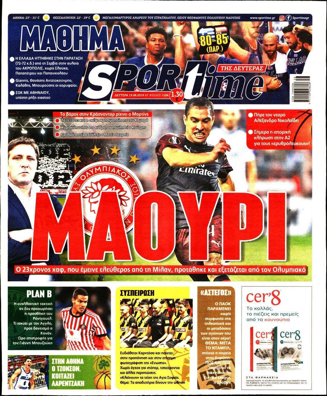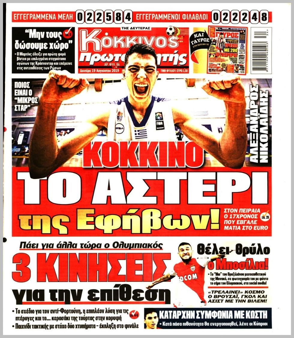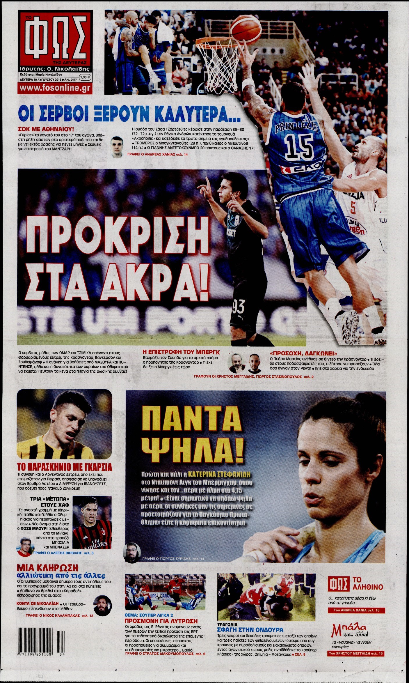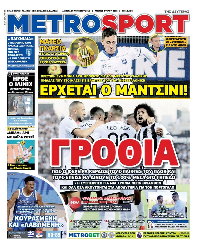 Οι αθλητικές εφημερίδες 19/8/19 Διονύσης Νίκκας 06:24, Δευτέρα 19 Αυγούστου 2019 Media Διαβάστε τα πρωτοσέλιδα των αθλητικών εφημερίδων… ΑΘΛΗΤΙΚΩΝ ΕΦΗΜΕΡΙΔΩΝ ΠΡΩΤΟΣΕΛΙΔΑ Μοιράσου το: σχολίασε κι εσύ (0 σχόλια) Ακολουθήστε το enikos.gr στο Google News και μάθετε πρώτοι όλες τις ειδήσεις Δείτε όλες τις τελευταίες ειδήσεις από την Ελλάδα και τον Κόσμο στο enikos.gr Ειδήσεις Ροή Ειδήσεων 1 ώρα πριν Τραγωδία στη Ρουμανία: Τα σενάρια που εξετάζονται για το πολύνεκρο τροχαίο – «Δεν μπορεί να μπλόκαρε το τιμόνι» λέει ειδικός στο enikos.gr 47 λεπτά πριν «Βιολάντα»: Δεν φανταζόμουν ποτέ πως υπήρχε διαρροή προπανίου, φέρεται να είπε ο ιδιοκτήτης στους πυροσβέστες – Τι απάντησε για τις μαρτυρίες περί οσμής αερίου 2 ώρες πριν Καιρός: Έκτακτο δελτίο από την ΕΜΥ – Έρχεται νέο κύμα κακοκαιρίας με ισχυρές βροχές, καταιγίδες και χαλαζοπτώσεις 18 λεπτά πριν Κλειστή σύσκεψη για το κυκλοφοριακό στην Αττική στο Μέγαρο Μαξίμου: Έξυπνα φανάρια και μείωση κυκλοφορίας των φορτηγών στον Κηφισό 2 ώρες πριν Φονική φωτιά στο Μάτι: Την απόρριψη των αιτήσεων αναίρεσης τεσσάρων καταδικασθέντων που προσέφυγαν στον Άρειο πάγο, πρότεινε η εισαγγελέας 4 ώρες πριν Τα 4 ζώδια που λαμβάνουν ένα σημαντικό μήνυμα από το σύμπαν – «Μην χάνετε χρόνο και μπείτε στην ουσία των πραγμάτων» 5 ώρες πριν Έδωσε τελεσίγραφο στον σύντροφό της – «Του είπα ότι πρέπει να αρραβωνιαστούμε μέσα σε έναν μήνα και τα έχασε» 3 ώρες πριν Άνδρας αποκαλύπτει πώς έχασε 136 κιλά μετά από πολλές αποτυχημένες προσπάθειες – Η απόφαση που άλλαξε την καθημερινότητά του 2 ώρες πριν Γλώσσα του σώματος: Τα 7 σημάδια που μαρτυρούν ότι κάποιος θα σας προδώσει 4 λεπτά πριν Στην τελική ευθεία το σίκουελ του «Dirty Dancing» 9 λεπτά πριν H Έλενα Κουντουρά στην «Ευρωπαϊκή Ημέρα Τουρισμού» της Κομισιόν: 5 βασικές προτεραιότητες για βιώσιμους, ανθεκτικούς και ανταγωνιστικούς προορισμούς στην ΕΕ 18 λεπτά πριν Κλειστή σύσκεψη για το κυκλοφοριακό στην Αττική στο Μέγαρο Μαξίμου: Έξυπνα φανάρια και μείωση κυκλοφορίας των φορτηγών στον Κηφισό 19 λεπτά πριν Τουρκία: Εκδοτικός οίκος κατηγορείται για «χρηματοδότηση της τρομοκρατίας» επειδή κατέβαλε αμοιβή για πνευματικά δικαιώματα 24 λεπτά πριν Καμπάνια του ΠΑΣΟΚ για το κυκλοφοριακό πρόβλημα στην Αττική – Τι προτείνει, δείτε τα σποτ ENIKOS NETWORK Γιατί το χοιρινό είναι «το πιο υγιεινό κρέας» – Έρευνα αποκαλύπτει ότι έχει τα ίδια οφέλη με φακές, αρακά και φασόλια Γρίπη: Διασωληνωμένο νοσηλεύεται στη ΜΕΘ του νοσοκομείου «Αγία Σοφία» 4χρονο αγοράκι Φορολοταρία: Μπείτε εδώ για να δείτε εάν κερδίσατε 50.000 ευρώ Δύο ελληνικά νησιά στη λίστα με τους πιο αυθεντικούς προορισμούς του κόσμου για το 2026 Η Google αλλάζει το Gmail έπειτα από 20 χρόνια – Προσέξτε μην χάσετε τον λογαριασμό σας Γνωστός προπονητής ποδοσφαίρου απολύθηκε επειδή χρησιμοποιούσε το ChatGPT για «κρίσιμες αποφάσεις» περισσότερα 12:20 , Τετάρτη 28 Ιανουαρίου 2026 Ακούστε την εκπομπή του Νίκου Χατζηνικολάου 28/1/2026 Ακούστε την εκπομπή του Νίκου Χατζηνικολάου στον ραδιοφωνικό σταθμό RealFm 97,8, την Τετάρτη 2... 10:40 , Τετάρτη 28 Ιανουαρίου 2026 MasterChef 2026: Νέο επεισόδιο με ακόμη μία αποχώρηση – «Σαν να το έχω ξαναζήσει αυτό» Στο επεισόδιο που θα προβληθεί σήμερα Τετάρτη στις 21:00 στο Star, οι τηλεθεατές του MasterChe... 10:06 , Τετάρτη 28 Ιανουαρίου 2026 Τηλεθέαση (27/1): Η κατάταξη το βράδυ της Τρίτης – Τι νούμερα έκανε το MasterChef Στην prime time ζώνη, την πρωτιά στο γενικό σύνολο κατακτά η σειρά «Να μ’ αγαπάς» τ