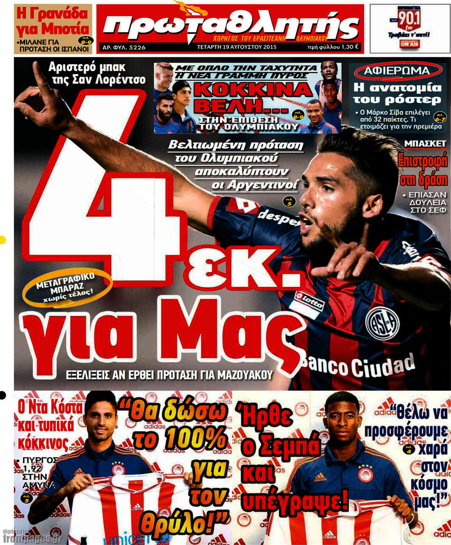 Oι αθλητικές εφημερίδες 19/8/2015 Enikos Newsroom 08:10, Τετάρτη 19 Αυγούστου 2015 Media Διαβάστε τα σημερινά πρωτοσέλιδα των αθλητικών εφημερίδων: ΑΘΛΗΤΙΚΕΣ ΕΦΗΜΕΡΙΔΕΣ ΠΡΩΤΟΣΕΛΙΔΑ Μοιράσου το: σχολίασε κι εσύ (0 σχόλια) Ακολουθήστε το enikos.gr στο Google News και μάθετε πρώτοι όλες τις ειδήσεις Δείτε όλες τις τελευταίες ειδήσεις από την Ελλάδα και τον Κόσμο στο enikos.gr Ειδήσεις Ροή Ειδήσεων 22 λεπτά πριν «Έλληνας Εσκομπάρ»: Φωτογραφίες με τους 4 τόνους κοκαΐνης που κατασχέθηκαν από το σκάφος «Ουρανία» 3 ώρες πριν Η Ουκρανία χτύπησε τάνκερ του σκιώδους στόλου της Ρωσίας στη Μεσόγειο – Έπλεε νότια της Κρήτης 2 ώρες πριν Πούτιν: Σαρκαστικά μηνύματα, παράπονα και απρόοπτα στη συνέντευξη Τύπου – Η πρόταση γάμου on air και οι ερωτήσεις για τα αγγούρια και τους… εξωγήινους 2 ώρες πριν Η απάντηση της κυβέρνησης στα αιτήματα των αγροτών: 16+4 υλοποιούνται ή βρίσκονται υπό επεξεργασία για να βρεθεί λύση – 7 δεν μπορούν να επιλυθούν 3 ώρες πριν Εξώδικο επιχειρηματία στον Γιώργο Μαζωνάκη – Τι απαντά στις καταγγελίες του τραγουδιστή 1 ώρα πριν Τα 5 ζώδια που ευνοούνται στην ερωτική ζωή τους την επόμενη εβδομάδα – «Η ενέργεια του Αιγόκερου φέρνει αγάπη και σταθερότητα» 6 ώρες πριν Γεμάτος νεροχύτης; 5 σοβαρές ευθύνες που «φοβίζουν» όσους αφήνουν άπλυτα πιάτα 5 ώρες πριν Ειδικός μοιράζεται 6 κόλπα για να διατηρείστε σε φόρμα με πάνω από 40 ώρες εργασίας την εβδομάδα: «Προπονηθείτε πριν από τη δουλειά, όχι μετά» 2 ημέρες πριν 20 χρόνια τα Χριστούγεννα ξεκινούν στα Public με μεγάλη ποικιλία σε δώρα! 2 λεπτά πριν Γαλλία: Ξαφνική «επίσκεψη» των αγροτών στο σπίτι του Μακρόν – Πέταξαν κοπριά, λάχανα, λάστιχα και άφησαν ένα φέρετρο – ΒΙΝΤΕΟ 9 λεπτά πριν Από το Ορμένιο ως τα Μάλγαρα κι από τη Σιάτιστα μέχρι τη Νίκαια: Μπλόκα σε όλη την Ελλάδα – Το Σάββατο ανοίγουν τα διόδια οι αγρότες 10 λεπτά πριν Ταϊβάν: 3 νεκροί έπειτα από επίθεση άνδρα με μαχαίρι – Ο δράστης σκοτώθηκε σε αστυνομική καταδίωξη – ΒΙΝΤΕΟ 13 λεπτά πριν Άρης Μουγκοπέτρος για τα προσθετικά μέλη: «Οι κόρες μου ήρθαν, μου χαϊδέψαν το χέρι και μου είπαν “μπαμπά το μιμί πέρασε”» 18 λεπτά πριν Πούτιν: «Δεν είμαι υπεύθυνος» για τους θανάτους στην Ουκρανία – Σχέδιο για κατάπαυση του πυρός αν ο Ζελένσκι κάνει εκλογές ENIKOS NETWORK ΕΛΣΤΑΤ: Αύξηση κατά 1,7% των επαγγελματιών υγείας το 2024 Τάξη στις ιατρικές διαφημίσεις για την προστασία των πολιτών βάζει ο ΙΣΑ Μετρό: Ενισχύονται τα δρομολόγια – Δείτε ποιες ημέρες Παπαθανάσης για νέο Εθνικό Πρόγραμμα Ανάπτυξης 2026-2030: Είναι υπερδιπλάσιο από αυτό της προηγούμενης προγραμματικής περιό... Χαρτογραφώντας το «σημείο χωρίς επιστροφή»: Για πρώτη φορά αποκαλύπτεται με λεπτομέρεια το ακανθώδες όριο της ατμόσφαιρας τ... Η Google καταργεί τη λειτουργία «dark web report» – Πώς θα μπορούν οι χρήστες να διαγράφουν τα δεδομένα τους περισσότερα 15:15 , Παρασκευή 19 Δεκεμβρίου 2025 Την Κυριακή με τη Realnews: Ό,τι και αν αγοράσεις, σκανάρεις και κερδίζεις! Την Κυριακή με τη Realnews: Ό,τι και αν αγοράσεις, σκανάρεις και κερδίζεις! Με το PADU app, το... 08:00 , Παρασκευή 19 Δεκεμβρίου 2025 Την Κυριακή με τη Realnews: Δωροεπιταγή 10€ Δωροεπιταγή αξίας 10€ για αγορές άνω των 60€ από τα πολυκαταστήματα FactoryOutlet H προσφορά ι... 05:48 , Παρασκευή 19 Δεκεμβρίου 2025 Οι οικονομικές εφημερίδες 19/12/2025 Διαβάστε τα πρωτοσέλιδα από τις οικονομικές εφημερίδες, σήμερα 19/12/2025. 05:43 , Παρασκευή 19 Δεκεμβρίου 2025 Οι αθλητικές εφημερίδες 19/12/2025 Διαβάστε τα πρωτοσέλιδα από τις αθλητικές εφημερίδες,