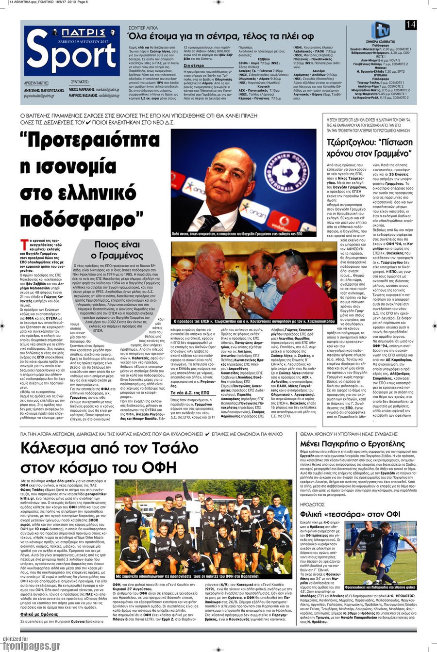 Οι αθλητικές εφημερίδες 19/8/2017 Enikos Newsroom 07:50, Σάββατο 19 Αυγούστου 2017 Media Διαβάστε τα σημερινά πρωτοσέλιδα των αθλητικών εφημερίδων: ΑΘΛΗΤΙΚΕΣ ΕΦΗΜΕΡΙΔΕΣ ΠΡΩΤΟΣΕΛΙΔΑ Μοιράσου το: σχολίασε κι εσύ (0 σχόλια) Ακολουθήστε το enikos.gr στο Google News και μάθετε πρώτοι όλες τις ειδήσεις Δείτε όλες τις τελευταίες ειδήσεις από την Ελλάδα και τον Κόσμο στο enikos.gr Ειδήσεις Ροή Ειδήσεων 44 λεπτά πριν Χριστούγεννα στα μπλόκα: Επιμένουν στις κινητοποιήσεις τους οι αγρότες – Ανοίγουν τα διόδια το Σαββατοκύριακο 1 ώρα πριν Ουκρανία: Η άνευ προηγουμένου επίθεση σε ρωσικό τάνκερ στη Μεσόγειο και το μήνυμα προς στον Πούτιν – Το «μακρύ χέρι» του Κιέβου 21 λεπτά πριν Πούτιν: Τα μηνύματα σε Ευρώπη και ΝΑΤΟ από το μαραθώνιο «σόου» του – Η απαίτηση για «σεβασμό» και η ειρήνη «με τους όρους» της Μόσχας 1 ώρα πριν Τραμπ: Δεν αποκλείει την πιθανότητα ενός πολέμου στη Βενεζουέλα – «Ο Μαδούρο ξέρει καλύτερα από τον καθένα τι ακριβώς θέλω» 2 ώρες πριν Συνεχίζει να προκαλεί ο Μίτσκοσκι: «Για μένα το όνομα Μακεδονία είναι ιερό» 4 ώρες πριν Πούτιν: «Ναι, είμαι ερωτευμένος» – Βίντεο από τη σπάνια προσωπική παραδοχή του 2 ώρες πριν Αριθμολογία: Οι άνθρωποι που έχουν γεννηθεί αυτές τις 4 ημερομηνίες, συχνά παρεξηγούνται – «Η καλοσύνη τους κρύβει τεράστια δύναμη» 1 ώρα πριν Ύπνος: Μια κρυφή κατάσταση του εγκεφάλου πριν από τον ύπνο μπορεί να είναι το “κλειδί” για υψηλή ευφυΐα και δημιουργικότητα 3 ώρες πριν Ξεχάστε το καθάρισμα το Σαββατοκύριακο: Ο «κανόνας των 20 λεπτών» που θα σας λύσει τα χέρια 22 λεπτά πριν Ανακαλύφθηκαν αρχαία χρυσά νομίσματα 2.200 ετών που απεικονίζουν τον θεό Απόλλωνα – Η άγνωστη σύνδεση με τον Φίλιππο Β΄ της Μακεδονίας 7 λεπτά πριν Ολυμπιακός – Βιλερμπάν 107-84: Επιστροφή στις νίκες με… προπόνηση 12 λεπτά πριν Νέος Κόσμος: Συνελήφθη 41χρονος με ένταλμα από την Τουρκία για εμπόριο ναρκωτικών και ληστεία 21 λεπτά πριν Πούτιν: Τα μηνύματα σε Ευρώπη και ΝΑΤΟ από το μαραθώνιο «σόου» του – Η απαίτηση για «σεβασμό» και η ειρήνη «με τους όρους» της Μόσχας 22 λεπτά πριν Ανακαλύφθηκαν αρχαία χρυσά νομίσματα 2.200 ετών που απεικονίζουν τον θεό Απόλλωνα – Η άγνωστη σύνδεση με τον Φίλιππο Β΄ της Μακεδονίας 27 λεπτά πριν Νίκος Ξυλούρης: Συγκινεί η χήρα του σπουδαίου καλλιτέχνη – «Ευχαριστώ όλο τον κόσμο που τον κρατάει ζωντανό 45 χρόνια» ENIKOS NETWORK Το ΕΚΑΒ τιμήθηκε από την Ακαδημία Αθηνών για τα 40 χρόνια προσφοράς του Έχετε πραγματικά μεγάλη καρδιά; 10 χαρακτηριστικά όσων έχουν καλοσύνη Αναστολή μέτρων αναγκαστικής εκτέλεσης για κτηνοτρόφους που πλήττονται από την ευλογιά των αιγοπροβάτων Πλήρης επάρκεια προϊόντων στις λαϊκές της Αττικής, παρά τις αγροτικές κινητοποιήσεις – Τι απαντούν οι πωλητές Χαρτογραφώντας το «σημείο χωρίς επιστροφή»: Για πρώτη φορά αποκαλύπτεται με λεπτομέρεια το ακανθώδες όριο της ατμόσφαιρας τ... Η Google καταργεί τη λειτουργία «dark web report» – Πώς θα μπορούν οι χρήστες να διαγράφουν τα δεδομένα τους περισσότερα 22:42 , Παρασκευή 19 Δεκεμβρίου 2025 Γιώργος Γιαννόπουλος για “Το σόι σου”: “Είναι ευτυχία και ευλογία αυτή η σειρά” «Είναι ευτυχία και ευλογία η συγκυρία αυτής της σειράς», θα πει ο Γιώργος Γιαννόπουλος -ο αγαπ... 20:37 , Παρασκευή 19 Δεκεμβρίου 2025 Don’t Forget The Lyrics: Η Έλλη Κοκκίνου υποδέχεται 4 παίκτες που θα κάνουν τα πάντα για να μη χάσουν ούτε… μισή λέξη από τους στίχους Το «Don’t Forget The Lyrics» επιστρέφει απόψε, Παρασκευή 19 Δεκεμβρίου, στις 21:00 με νέο επει... 19:31 , Παρασκευ
