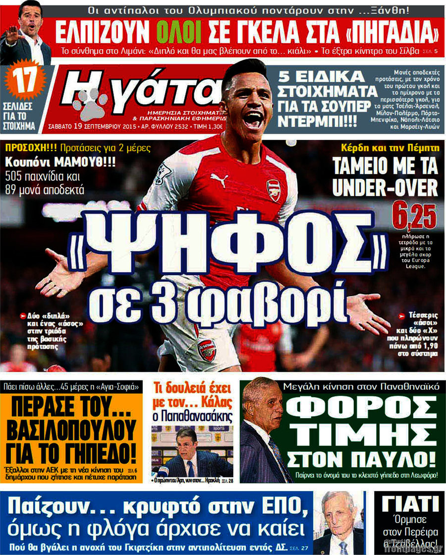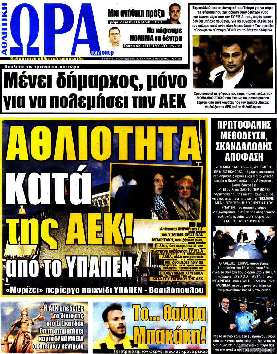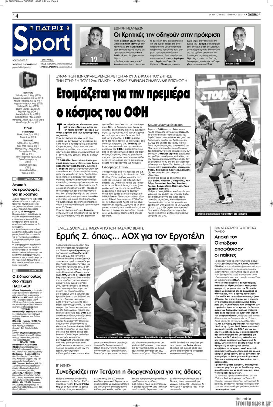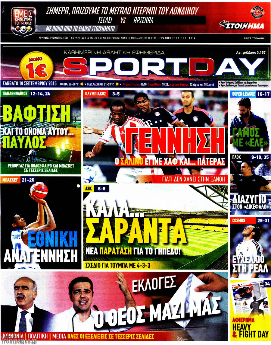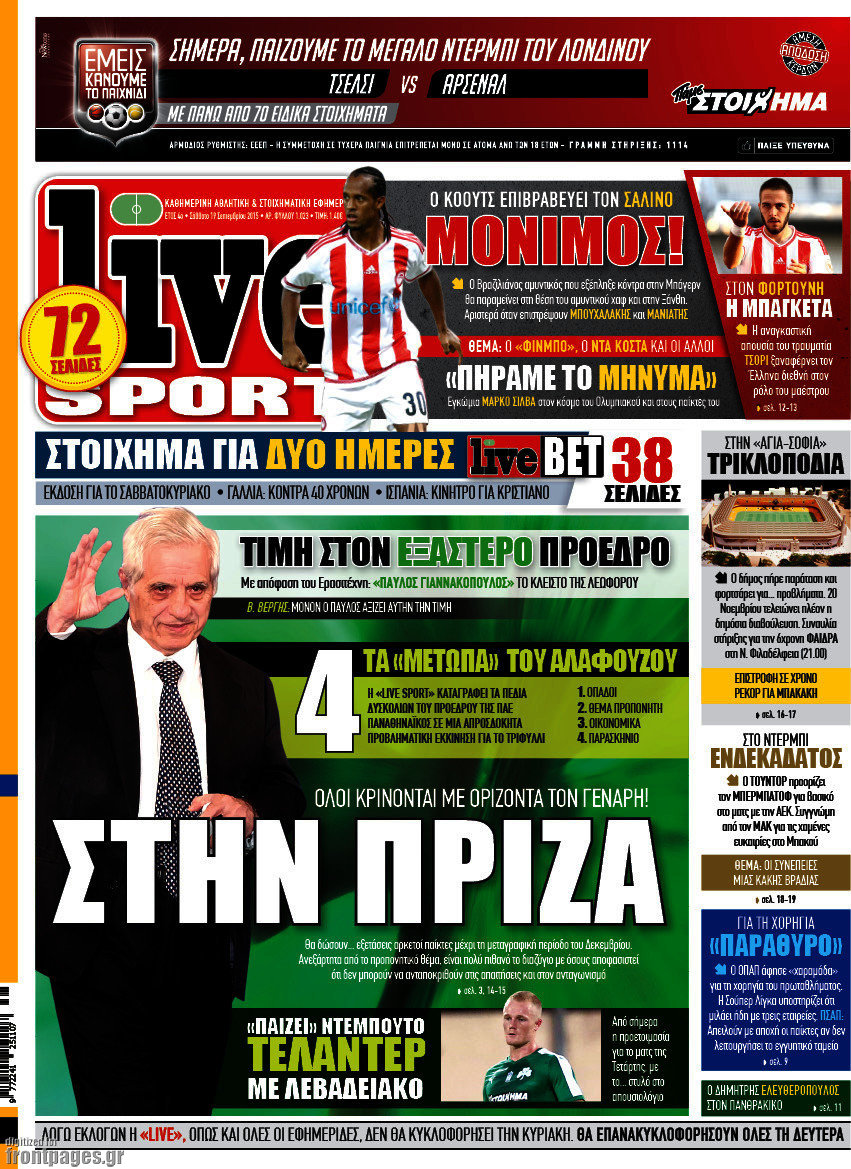 Οι αθλητικές εφημερίδες 19/9/2015 Enikos Newsroom 08:41, Σάββατο 19 Σεπτεμβρίου 2015 Media Διαβάστε τα σημερινά πρωτοσέλιδα των αθλητικών εφημερίδων: ΕΦΗΜΕΡΙΔΕΣ ΠΟΛΙΤΙΚΕΣ ΕΦΗΜΕΡΙΔΕΣ ΠΡΩΤΟΣΕΛΙΔΑ Μοιράσου το: σχολίασε κι εσύ (0 σχόλια) Ακολουθήστε το enikos.gr στο Google News και μάθετε πρώτοι όλες τις ειδήσεις Δείτε όλες τις τελευταίες ειδήσεις από την Ελλάδα και τον Κόσμο στο enikos.gr Ειδήσεις Ροή Ειδήσεων 41 λεπτά πριν Χριστούγεννα στα μπλόκα: Επιμένουν στις κινητοποιήσεις τους οι αγρότες – Ανοίγουν τα διόδια το Σαββατοκύριακο 1 ώρα πριν Ουκρανία: Η άνευ προηγουμένου επίθεση σε ρωσικό τάνκερ στη Μεσόγειο και το μήνυμα προς στον Πούτιν – Το «μακρύ χέρι» του Κιέβου 18 λεπτά πριν Πούτιν: Τα μηνύματα σε Ευρώπη και ΝΑΤΟ από το μαραθώνιο «σόου» του – Η απαίτηση για «σεβασμό» και η ειρήνη «με τους όρους» της Μόσχας 1 ώρα πριν Τραμπ: Δεν αποκλείει την πιθανότητα ενός πολέμου στη Βενεζουέλα – «Ο Μαδούρο ξέρει καλύτερα από τον καθένα τι ακριβώς θέλω» 2 ώρες πριν Συνεχίζει να προκαλεί ο Μίτσκοσκι: «Για μένα το όνομα Μακεδονία είναι ιερό» 4 ώρες πριν Πούτιν: «Ναι, είμαι ερωτευμένος» – Βίντεο από τη σπάνια προσωπική παραδοχή του 2 ώρες πριν Αριθμολογία: Οι άνθρωποι που έχουν γεννηθεί αυτές τις 4 ημερομηνίες, συχνά παρεξηγούνται – «Η καλοσύνη τους κρύβει τεράστια δύναμη» 1 ώρα πριν Ύπνος: Μια κρυφή κατάσταση του εγκεφάλου πριν από τον ύπνο μπορεί να είναι το “κλειδί” για υψηλή ευφυΐα και δημιουργικότητα 3 ώρες πριν Ξεχάστε το καθάρισμα το Σαββατοκύριακο: Ο «κανόνας των 20 λεπτών» που θα σας λύσει τα χέρια 19 λεπτά πριν Ανακαλύφθηκαν αρχαία χρυσά νομίσματα 2.200 ετών που απεικονίζουν τον θεό Απόλλωνα – Η άγνωστη σύνδεση με τον Φίλιππο Β΄ της Μακεδονίας 3 λεπτά πριν Ολυμπιακός – Βιλερμπάν 107-84: Επιστροφή στις νίκες με… προπόνηση 9 λεπτά πριν Νέος Κόσμος: Συνελήφθη 41χρονος με ένταλμα από την Τουρκία για εμπόριο ναρκωτικών και ληστεία 18 λεπτά πριν Πούτιν: Τα μηνύματα σε Ευρώπη και ΝΑΤΟ από το μαραθώνιο «σόου» του – Η απαίτηση για «σεβασμό» και η ειρήνη «με τους όρους» της Μόσχας 19 λεπτά πριν Ανακαλύφθηκαν αρχαία χρυσά νομίσματα 2.200 ετών που απεικονίζουν τον θεό Απόλλωνα – Η άγνωστη σύνδεση με τον Φίλιππο Β΄ της Μακεδονίας 24 λεπτά πριν Νίκος Ξυλούρης: Συγκινεί η χήρα του σπουδαίου καλλιτέχνη – «Ευχαριστώ όλο τον κόσμο που τον κρατάει ζωντανό 45 χρόνια» ENIKOS NETWORK Το ΕΚΑΒ τιμήθηκε από την Ακαδημία Αθηνών για τα 40 χρόνια προσφοράς του Έχετε πραγματικά μεγάλη καρδιά; 10 χαρακτηριστικά όσων έχουν καλοσύνη Πλήρης επάρκεια προϊόντων στις λαϊκές της Αττικής, παρά τις αγροτικές κινητοποιήσεις – Τι απαντούν οι πωλητές ΑΑΔΕ: Νέες αναβαθμίσεις στο Ψηφιακό Πελατολόγιο και την εφαρμογή myDATAapp – Τι πρέπει να γνωρίζετε Χαρτογραφώντας το «σημείο χωρίς επιστροφή»: Για πρώτη φορά αποκαλύπτεται με λεπτομέρεια το ακανθώδες όριο της ατμόσφαιρας τ... Η Google καταργεί τη λειτουργία «dark web report» – Πώς θα μπορούν οι χρήστες να διαγράφουν τα δεδομένα τους περισσότερα 22:42 , Παρασκευή 19 Δεκεμβρίου 2025 Γιώργος Γιαννόπουλος για “Το σόι σου”: “Είναι ευτυχία και ευλογία αυτή η σειρά” «Είναι ευτυχία και ευλογία η συγκυρία αυτής της σειράς», θα πει ο Γιώργος Γιαννόπουλος -ο αγαπ... 20:37 , Παρασκευή 19 Δεκεμβρίου 2025 Don’t Forget The Lyrics: Η Έλλη Κοκκίνου υποδέχεται 4 παίκτες που θα κάνουν τα πάντα για να μη χάσουν ούτε… μισή λέξη από τους στίχους Το «Don’t Forget The Lyrics» επιστρέφει απόψε, Παρασκευή 19 Δεκεμβρίου, στις 21:00 με νέο επει... 19:31 , Παρασκ
