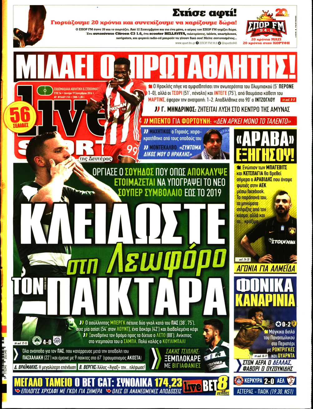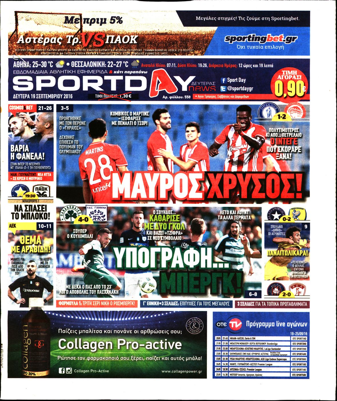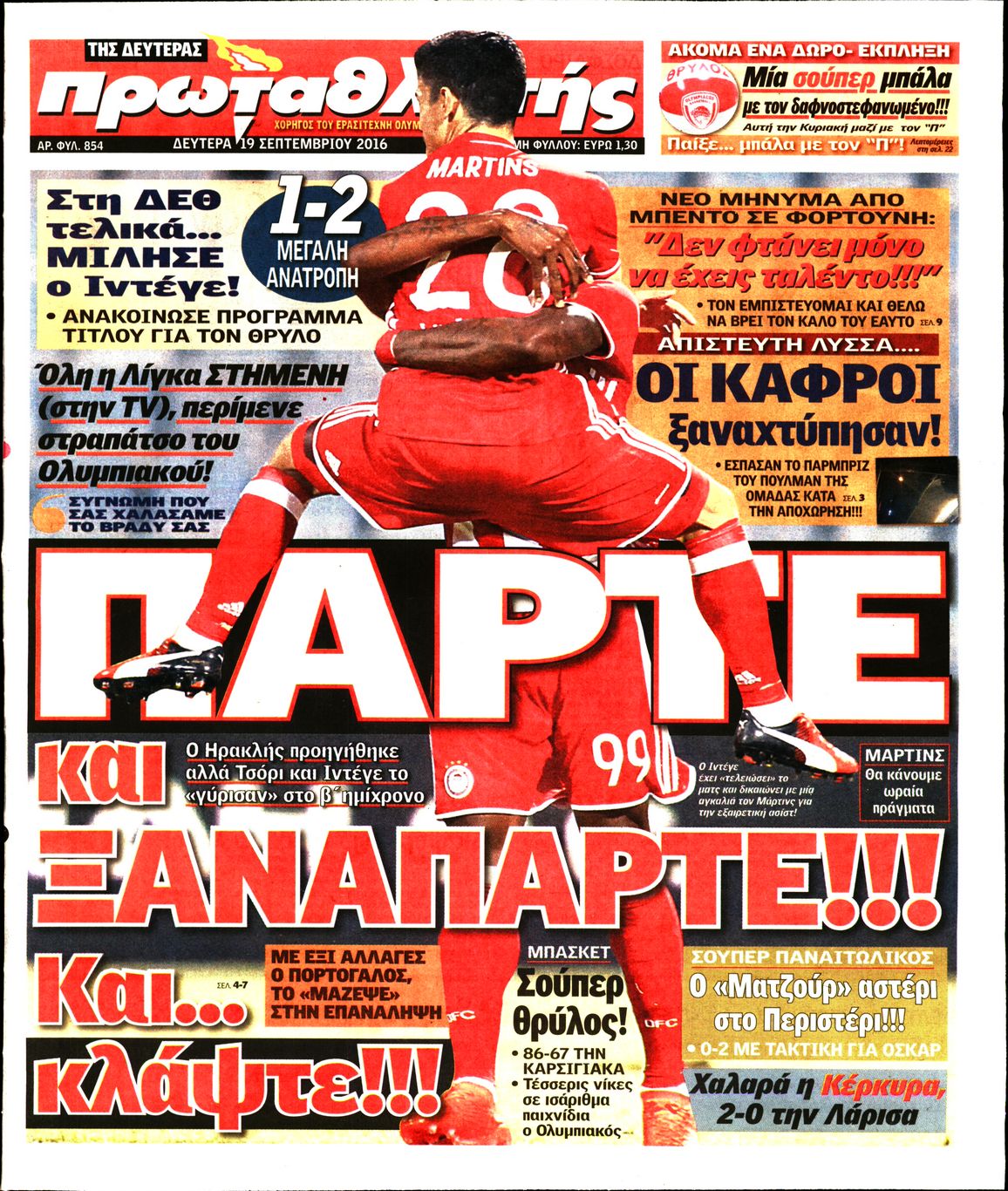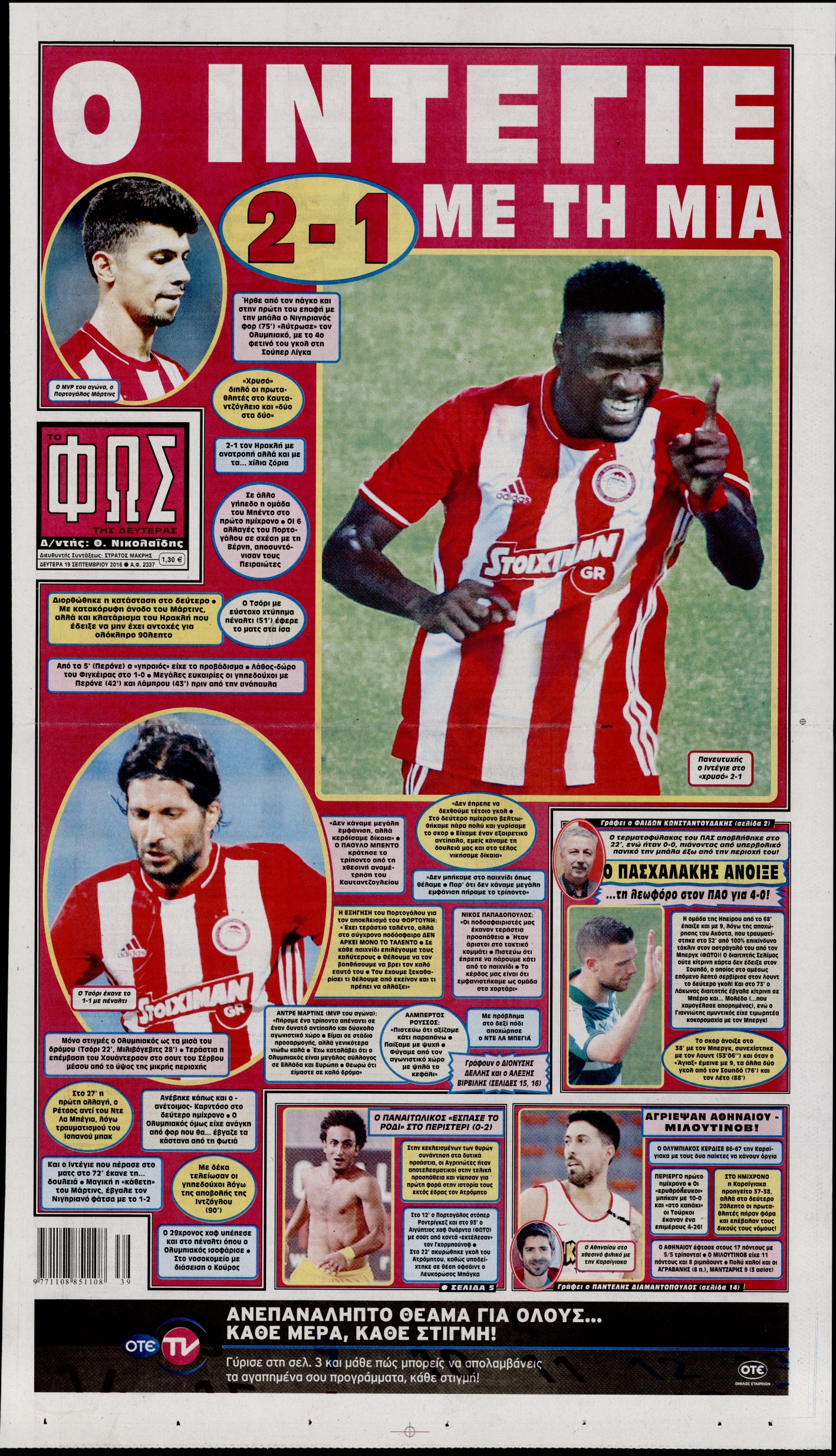 Oι αθλητικές εφημερίδες 19/9/2016 Enikos Newsroom 05:00, Δευτέρα 19 Σεπτεμβρίου 2016 Media Διαβάστε τα σημερινά πρωτοσέλιδα των αθλητικών εφημερίδων: ΑΘΛΗΤΙΚΕΣ ΕΦΗΜΕΡΙΔΕΣ ΠΡΩΤΟΣΕΛΙΔΑ Μοιράσου το: σχολίασε κι εσύ (0 σχόλια) Ακολουθήστε το enikos.gr στο Google News και μάθετε πρώτοι όλες τις ειδήσεις Δείτε όλες τις τελευταίες ειδήσεις από την Ελλάδα και τον Κόσμο στο enikos.gr Ειδήσεις Ροή Ειδήσεων 2 ώρες πριν Χριστούγεννα στα μπλόκα: Επιμένουν στις κινητοποιήσεις τους οι αγρότες – Ανοίγουν τα διόδια το Σαββατοκύριακο 2 ώρες πριν Ουκρανία: Η άνευ προηγουμένου επίθεση σε ρωσικό τάνκερ στη Μεσόγειο και το μήνυμα προς στον Πούτιν – Το «μακρύ χέρι» του Κιέβου 2 ώρες πριν Πούτιν: Τα μηνύματα σε Ευρώπη και ΝΑΤΟ από το μαραθώνιο «σόου» του – Η απαίτηση για «σεβασμό» και η ειρήνη «με τους όρους» της Μόσχας 3 ώρες πριν Τραμπ: Δεν αποκλείει την πιθανότητα ενός πολέμου στη Βενεζουέλα – «Ο Μαδούρο ξέρει καλύτερα από τον καθένα τι ακριβώς θέλω» 3 ώρες πριν Συνεχίζει να προκαλεί ο Μίτσκοσκι: «Για μένα το όνομα Μακεδονία είναι ιερό» 2 ώρες πριν Ανακαλύφθηκαν αρχαία χρυσά νομίσματα 2.200 ετών που απεικονίζουν τον θεό Απόλλωνα – Η άγνωστη σύνδεση με τον Φίλιππο Β΄ της Μακεδονίας 3 ώρες πριν Ύπνος: Μια κρυφή κατάσταση του εγκεφάλου πριν από τον ύπνο μπορεί να είναι το “κλειδί” για υψηλή ευφυΐα και δημιουργικότητα 4 ώρες πριν Αριθμολογία: Οι άνθρωποι που έχουν γεννηθεί αυτές τις 4 ημερομηνίες, συχνά παρεξηγούνται – «Η καλοσύνη τους κρύβει τεράστια δύναμη» 5 ώρες πριν Ξεχάστε το καθάρισμα το Σαββατοκύριακο: Ο «κανόνας των 20 λεπτών» που θα σας λύσει τα χέρια 17 λεπτά πριν Φαίη Σκορδά: «Παλιότερα τα κομπλιμέντα τα προσπερνούσα, τώρα τα έχω ανάγκη» 33 λεπτά πριν Βασίλης Σπανούλης: Δεν εμφανίστηκε ούτε ένας δημοσιογράφος στην συνέντευξη Τύπου – «Καλησπέρα στον… κανέναν», δείτε βίντεο 44 λεπτά πριν Πόλεμος στην Ουκρανία: Εφτά νεκροί από ρωσική πυραυλική επίθεση στο λιμάνι της Οδησσού 48 λεπτά πριν ΗΠΑ: Η κυβέρνηση του Ντόναλντ Τραμπ άρχισε να δημοσιοποιεί τα αρχεία Έπσταϊν 59 λεπτά πριν Σάμος: Άνοιξε το μπλόκο των αγροτών στον κόμβο Κοκκαρίου – Σε νέα συνεδρίαση θα καθορίσουν την στάση τους ENIKOS NETWORK Το ΕΚΑΒ τιμήθηκε από την Ακαδημία Αθηνών για τα 40 χρόνια προσφοράς του Έχετε πραγματικά μεγάλη καρδιά; 10 χαρακτηριστικά όσων έχουν καλοσύνη Αναστολή μέτρων αναγκαστικής εκτέλεσης για κτηνοτρόφους που πλήττονται από την ευλογιά των αιγοπροβάτων Πλήρης επάρκεια προϊόντων στις λαϊκές της Αττικής, παρά τις αγροτικές κινητοποιήσεις – Τι απαντούν οι πωλητές Χαρτογραφώντας το «σημείο χωρίς επιστροφή»: Για πρώτη φορά αποκαλύπτεται με λεπτομέρεια το ακανθώδες όριο της ατμόσφαιρας τ... Η Google καταργεί τη λειτουργία «dark web report» – Πώς θα μπορούν οι χρήστες να διαγράφουν τα δεδομένα τους περισσότερα 22:42 , Παρασκευή 19 Δεκεμβρίου 2025 Γιώργος Γιαννόπουλος για “Το σόι σου”: “Είναι ευτυχία και ευλογία αυτή η σειρά” «Είναι ευτυχία και ευλογία η συγκυρία αυτής της σειράς», θα πει ο Γιώργος Γιαννόπουλος -ο αγαπ... 20:37 , Παρασκευή 19 Δεκεμβρίου 2025 Don’t Forget The Lyrics: Η Έλλη Κοκκίνου υποδέχεται 4 παίκτες που θα κάνουν τα πάντα για να μη χάσουν ούτε… μισή λέξη από τους στίχους Το «Don’t Forget The Lyrics» επιστρέφει απόψε, Παρασκευή 19 Δεκεμβρίου, στις 21:00 με νέο επει... 19:31 , Παρασκευή 19 Δεκεμβρίου 2025 GNTM: Απόψε ο μεγάλος τελικός για τους 4 φιναλίστ Έπειτα από μήνες γεμάτους μόδα, δημιουργία και έντονες αναμετρήσεις, το GNTM 2025 κορυφώνεται,... 18:11 , 