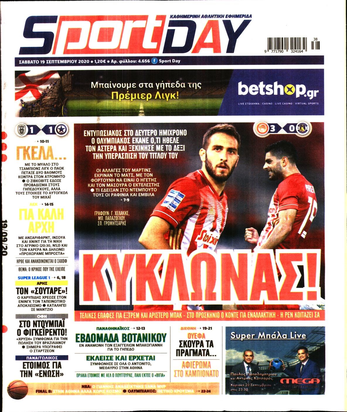 Οι αθλητικές εφημερίδες 19/9/2020 Διονύσης Νίκκας 07:50, Σάββατο 19 Σεπτεμβρίου 2020 Media Διαβάστε τα πρωτοσέλιδα των αθλητικών εφημερίδων… ΑΘΛΗΤΙΚΕΣ ΕΦΗΜΕΡΙΔΕΣ Μοιράσου το: σχολίασε κι εσύ (0 σχόλια) Ακολουθήστε το enikos.gr στο Google News και μάθετε πρώτοι όλες τις ειδήσεις Δείτε όλες τις τελευταίες ειδήσεις από την Ελλάδα και τον Κόσμο στο enikos.gr Ειδήσεις Ροή Ειδήσεων 10 λεπτά πριν Υπόθεση Έπσταϊν: Το Υπουργείο Δικαιοσύνης δημοσιοποίησε μια σειρά από εξαιρετικά επεξεργασμένα αρχεία – «Λείπουν τα πιο σημαντικά έγγραφα», λένε οι Δημοκρατικοί 2 ώρες πριν Σαρωτικοί οι έλεγχοι στους δρόμους ενόψει εορτών – Μπλόκα της τροχαίας σε κεντρικές αρτηρίες της Αττικής 21 λεπτά πριν ΟΝΕΧ – MEGATUGS: Ξεκίνησε η ναυπήγηση ρυμουλκών στην Ελλάδα – Προθάλαμος πολεμικών πλοίων – Δείτε φωτογραφίες και βίντεο 9 ώρες πριν Χριστούγεννα στα μπλόκα: Επιμένουν στις κινητοποιήσεις τους οι αγρότες – Ανοίγουν τα διόδια το Σαββατοκύριακο 9 ώρες πριν Πούτιν: Τα μηνύματα σε Ευρώπη και ΝΑΤΟ από το μαραθώνιο «σόου» του – Η απαίτηση για «σεβασμό» και η ειρήνη «με τους όρους» της Μόσχας 2 ώρες πριν Αυγά: Πόσα μπορείτε να τρώτε την ημέρα με ασφάλεια για μέγιστη πρόσληψη πρωτεΐνης 2 ώρες πριν Τα ζώδια σήμερα, Σάββατο 20 Δεκεμβρίου: Παρθένοι, το σύμπαν σας δίνει το κλειδί 9 ώρες πριν Ανακαλύφθηκαν αρχαία χρυσά νομίσματα 2.200 ετών που απεικονίζουν τον θεό Απόλλωνα – Η άγνωστη σύνδεση με τον Φίλιππο Β΄ της Μακεδονίας 2 ώρες πριν Οπτική ψευδαίσθηση: Μόνο αν είσαι ο Σέρλοκ Χολμς θα βρεις τον αριθμό «87» σε 7 δευτερόλεπτα 5 λεπτά πριν ΗΠΑ: Τέσσερις μετανάστες πέθαναν σε κέντρα κράτησης – Αύξηση θανάτων σε επίπεδο ρεκόρ το 2025 10 λεπτά πριν Υπόθεση Έπσταϊν: Το Υπουργείο Δικαιοσύνης δημοσιοποίησε μια σειρά από εξαιρετικά επεξεργασμένα αρχεία – «Λείπουν τα πιο σημαντικά έγγραφα», λένε οι Δημοκρατικοί 13 λεπτά πριν Καιρός: Αλλαγή σκηνικού σήμερα με βροχές και πτώση της θερμοκρασίας – Οι προβλέψεις των μετεωρολόγων για τα Χριστούγεννα 21 λεπτά πριν ΟΝΕΧ – MEGATUGS: Ξεκίνησε η ναυπήγηση ρυμουλκών στην Ελλάδα – Προθάλαμος πολεμικών πλοίων – Δείτε φωτογραφίες και βίντεο 30 λεπτά πριν Φοινικούντα: Σήμερα απολογείται ο 30χρονος γιος γνωστού επιχειρηματία της Πλάκας ENIKOS NETWORK Το τεστ των 10 δευτερολέπτων που μπορεί να προβλέψει το προσδόκιμο ζωής σας – Τι λέει ειδικός του Cleveland Επιλέξτε καρέκλα για να μάθετε ποια είναι τα κρυφά χαρακτηριστικά σας – Τι αποκάλυψε για εσάς αυτό το τεστ προσωπικότητας; Αναστολή μέτρων αναγκαστικής εκτέλεσης για κτηνοτρόφους που πλήττονται από την ευλογιά των αιγοπροβάτων Πλήρης επάρκεια προϊόντων στις λαϊκές της Αττικής, παρά τις αγροτικές κινητοποιήσεις – Τι απαντούν οι πωλητές Χαρτογραφώντας το «σημείο χωρίς επιστροφή»: Για πρώτη φορά αποκαλύπτεται με λεπτομέρεια το ακανθώδες όριο της ατμόσφαιρας τ... Η Google καταργεί τη λειτουργία «dark web report» – Πώς θα μπορούν οι χρήστες να διαγράφουν τα δεδομένα τους περισσότερα 05:48 , Σάββατο 20 Δεκεμβρίου 2025 Οι οικονομικές εφημερίδες 20/12/2025 Διαβάστε τα πρωτοσέλιδα από τις οικονομικές εφημερίδες, σήμερα 20/12/2025. 05:43 , Σάββατο 20 Δεκεμβρίου 2025 Οι αθλητικές εφημερίδες 20/12/2025 Διαβάστε τα πρωτοσέλιδα από τις αθλητικές εφημερίδες, σήμερα 20/12/2025. 05:38 , Σάββατο 20 Δεκεμβρίου 2025 Οι πολιτικές εφημερίδες 20/12/2025 Διαβάστε τα πρωτοσέλιδα από τις πολιτικές εφημερίδες, σήμερα 20/12/2025. 04:20 , Σάββατο 20 Δεκεμβρίου 2025 Αγγελική Νικολούλη: Τα συλλυπητήρια για την απώλεια της Ειρ