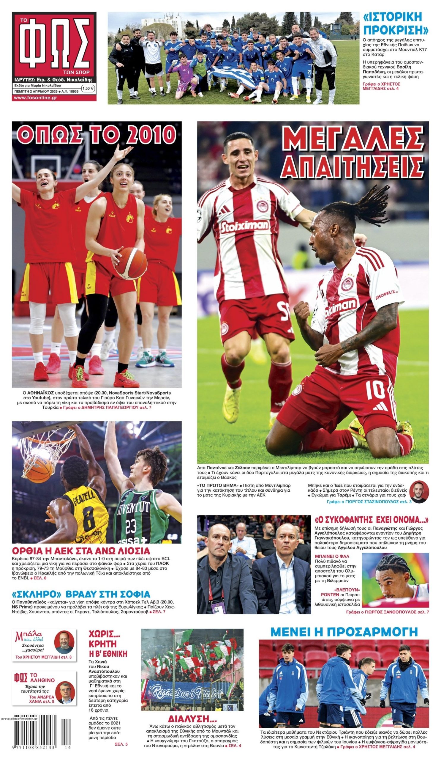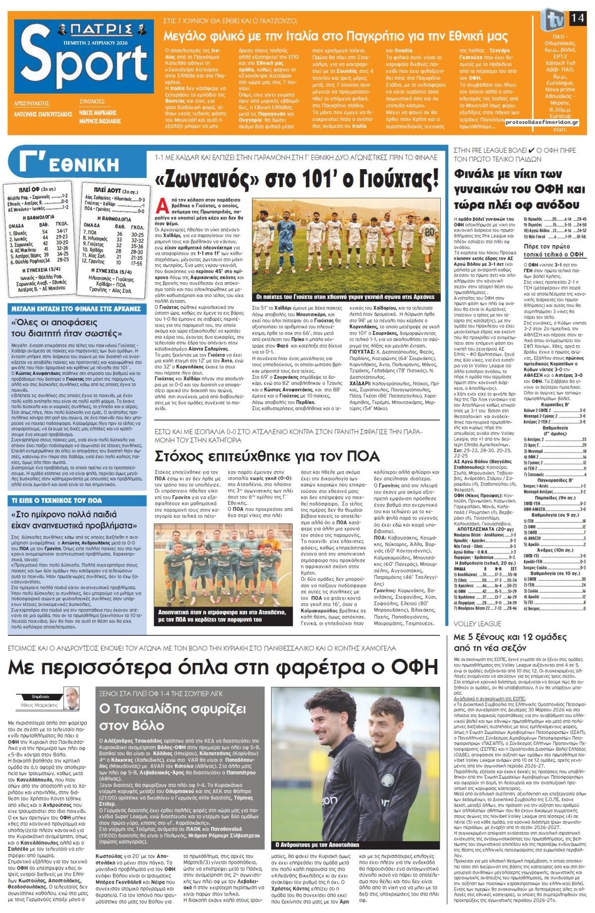 Οι αθλητικές εφημερίδες 2/4/2026 Enikos Newsroom 05:43, Πέμπτη 02 Απριλίου 2026 Media Διαβάστε τα πρωτοσέλιδα από τις αθλητικές εφημερίδες, σήμερα 2/4/2026. ΑΘΛΗΤΙΚΕΣ ΕΦΗΜΕΡΙΔΕΣ ΕΦΗΜΕΡΙΔΕΣ ΠΡΩΤΟΣΕΛΙΔΑ Μοιράσου το: Που θα είναι κλειστά τα σχολεία την Πέμπτη λόγω της κακοκαιρίας «Erminio» Nasa: Πραγματοποιήθηκε η απογείωση της ιστορικής αποστολής του Artemis II προς τη Σελήνη – Ξεπεράστηκε το τεχνικό ζήτημα Iνδονησία: Μεγάλος σεισμός 7,8 Ρίχτερ – Προειδοποίηση για τσουνάμι σχολίασε κι εσύ (0 σχόλια) Ακολουθήστε το Enikos στο Google News και μάθετε πρώτοι όλες τις ειδήσεις Δείτε όλες τις τελευταίες ειδήσεις από την Ελλάδα και τον Κόσμο στο enikos.gr Ειδήσεις Ροή Ειδήσεων 8 ώρες πριν Κακοκαιρία «Erminio»: Δύσκολη νύχτα στην Αττική με κλήσεις για αντλήσεις υδάτων και κοπές δέντρων – Πλημμυρικά φαινόμενα σε Πόρο και Ύδρα, προβλήματα και στην Ρόδο 2 ώρες πριν Νεκρός άνδρας από την κακοκαιρία στη Νέα Μάκρη: Ανασύρθηκε χωρίς τις αισθήσεις του κάτω από όχημα 24 ώρες πριν LIVE – 33η ημέρα πολέμου ΗΠΑ – Ισραήλ με Ιράν – Οι εξελίξεις στη Μέση Ανατολή 3 ώρες πριν Ολοκληρώθηκε το διάγγελμα του Ντόναλντ Τραμπ: «Το Ιράν δεν είναι πλέον απειλή» – Πόλεμος για 2-3 εβδομάδες ακόμα 12 ώρες πριν Μαρία Καρυστιανού: Ανακοίνωσε το κόμμα της – «Ξεκινάμε για την ελπίδα» 59 λεπτά πριν Οπτική ψευδαίσθηση: Μόνο αν είσαι ο Σέρλοκ Χολμς θα βρεις το ελάφι σε 13 δευτερόλεπτα 1 ώρα πριν Πρωτεΐνη: 5 φυτικές τροφές με υψηλότερη περιεκτικότητα από τα φασόλια 4 ώρες πριν Ζώδια 2/4: Ημερήσιες προβλέψεις – Σκορπιοί, θα νιώσετε μια μεγάλη σιγουριά και σταθερότητα 9 ώρες πριν Ύπνος: Η καφεΐνη αποκαθιστά τη μνήμη ύστερα από αϋπνία – Τι δείχνει νέα μελέτη 23 λεπτά πριν e-ΕΦΚΑ και ΔΥΠΑ: Ποιοι πληρώνονται σήμερα και αύριο 39 λεπτά πριν ΔΕΔΔΗΕ: Διακοπές ρεύματος σήμερα (2/4) στην Αθήνα και σε άλλες 5 περιοχές της Αττικής 54 λεπτά πριν Πετρέλαιο: Eκτόξευση του Brent στα 105 δολάρια μετά το διάγγελμα Τραμπ 59 λεπτά πριν Οπτική ψευδαίσθηση: Μόνο αν είσαι ο Σέρλοκ Χολμς θα βρεις το ελάφι σε 13 δευτερόλεπτα 1 ώρα πριν Πρωτεΐνη: 5 φυτικές τροφές με υψηλότερη περιεκτικότητα από τα φασόλια ENIKOS NETWORK 3 πράγματα διαφέρουν στις φωτογραφίες με τα φρούτα στο τραπέζι – Κανείς δεν το έλυσε σε λιγότερο από 35 δευτερόλεπτα Το μαγικό λάδι από το Θιβέτ που μπορεί να έχει αντιμικροβιακή, αντιφλεγμονώδη και αντικαρκινική δράση Νέος κύκλος προσλήψεων στο Δημόσιο – Τι λέει ο πρόεδρος του ΑΣΕΠ για τις προκηρύξεις που έρχονται Πιερρακάκης: Τα μέτρα που ενεργοποιούνται σήμερα δεν είναι το τέλος, αλλά η αρχή μιας διαρκούς στήριξης Ρομπότ με πόδια: Ο νέος «εξερευνητής» που επιταχύνει την αναζήτηση ζωής στον Άρη και πόρων στη Σελήνη Η νέα εφαρμογή της Samsung υπόσχεται ανακούφιση από τη ναυτία μέσω του ήχου περισσότερα 05:48 , Πέμπτη 02 Απριλίου 2026 Οι οικονομικές εφημερίδες 2/4/2026 Διαβάστε τα πρωτοσέλιδα από τις οικονομικές εφημερίδες, σήμερα 2/4/2026. 05:38 , Πέμπτη 02 Απριλίου 2026 Οι πολιτικές εφημερίδες 1/4/2026 Διαβάστε τα πρωτοσέλιδα από τις πολιτικές εφημερίδες, σήμερα 1/4/2026. 05:22 , Πέμπτη 02 Απριλίου 2026 Το Ποντίκι σήμερα Πέμπτη 2/4/2026 Διαβάστε το πρωτοσέλιδο της εφημερίδας «Το Ποντίκι» σήμερα 2/4/2026. 21:51 , Τετάρτη 01 Απριλίου 2026 «Το Μυστικό του Δάσους»: Λαμπερή avant-première για το νέο αστυνομικό θρίλερ Το βράδυ της Δευτέρας 30 Μαρτίου, στον κινηματογράφο Cinobo Opera, πραγματοποιήθηκε η avant-pr... ΤΕΛΕΥΤΑΙΕΣ ΕΙΔΗΣΕΙΣ 23 λεπτά πριν e-ΕΦΚΑ και ΔΥΠΑ: Ποιοι πληρώνονται σήμερα και αύριο 39 λεπτά πριν ΔΕΔΔΗΕ: Διακοπές ρεύματος σήμε