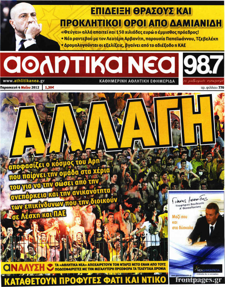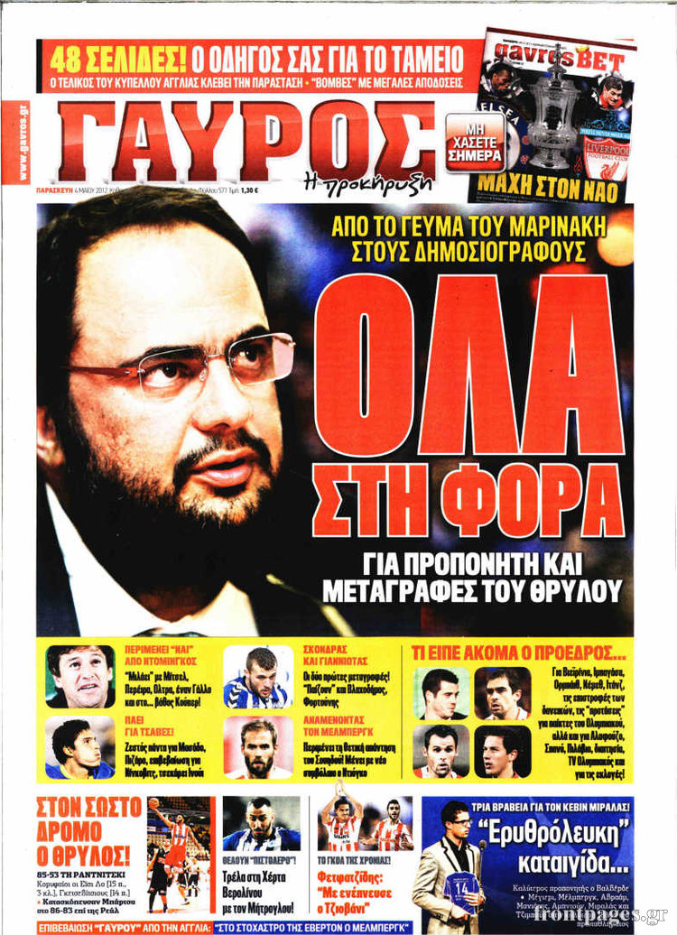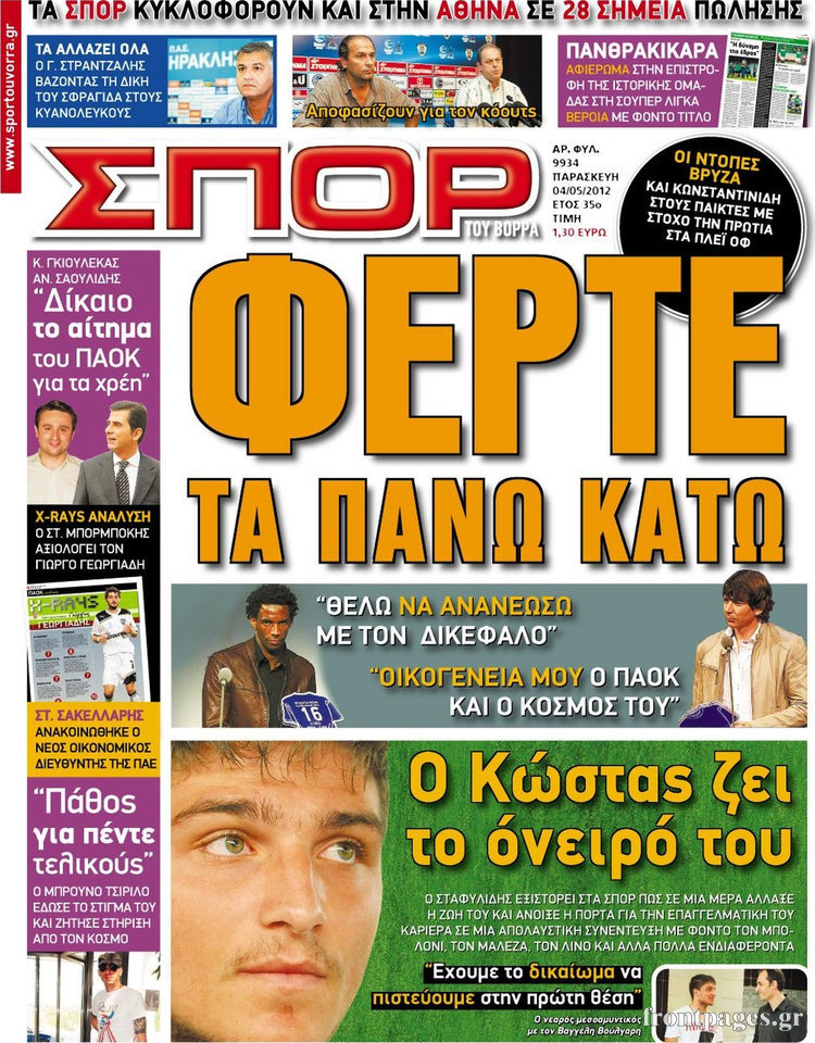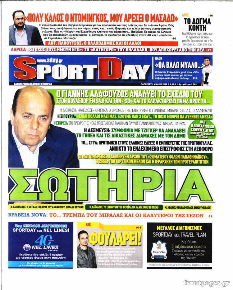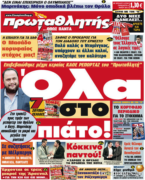 Όλα τα αθλητικά πρωτοσέλιδα της σημερινής μέρας.