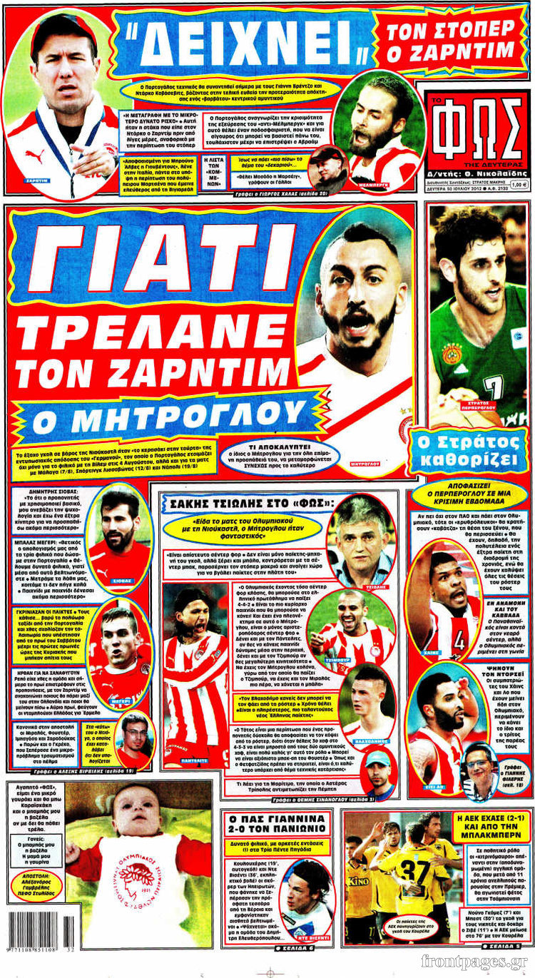 Τα σημερινά πρωτοσέλιδα των αθλητικών εφημερίδων.