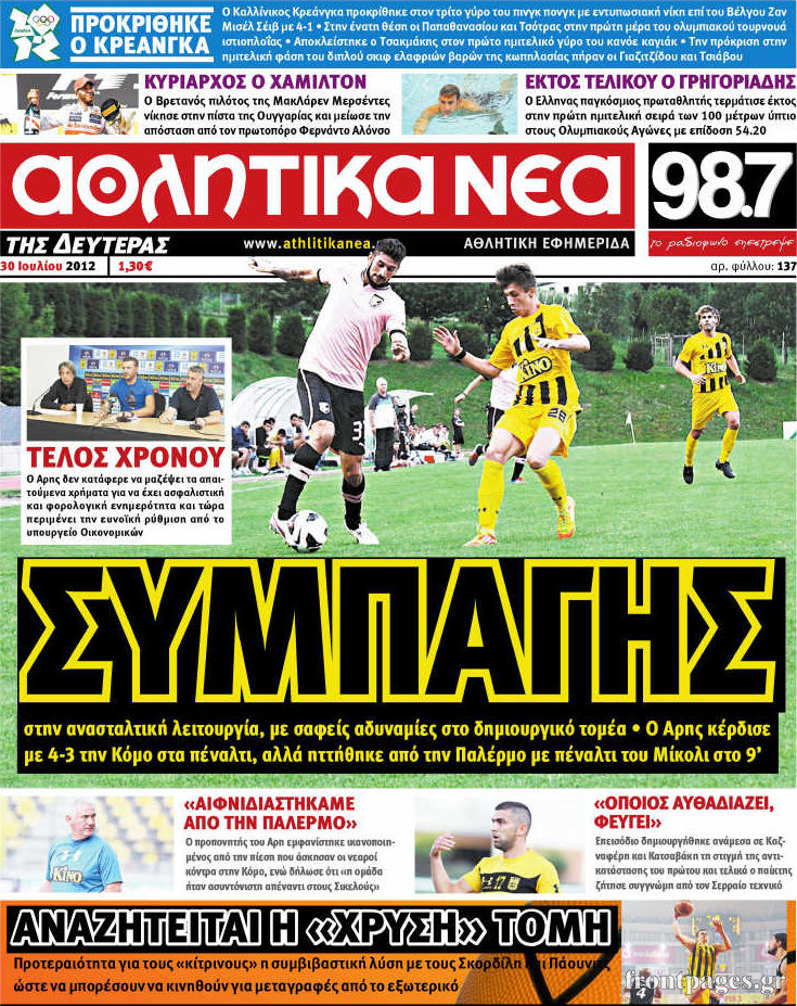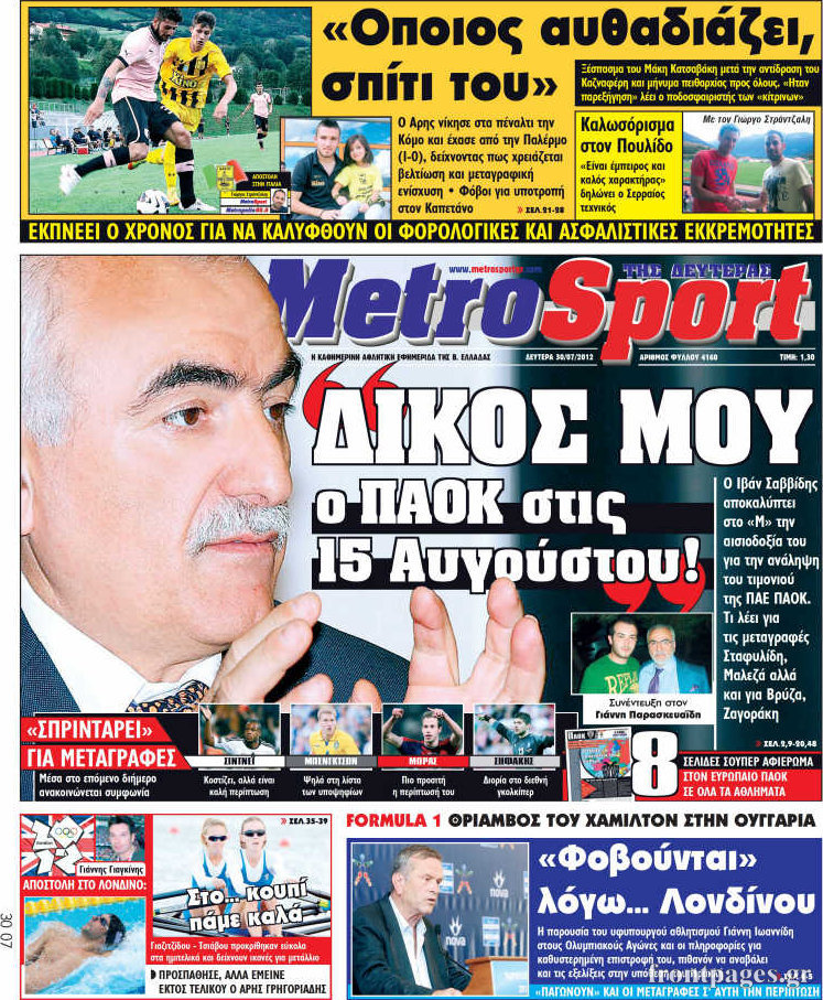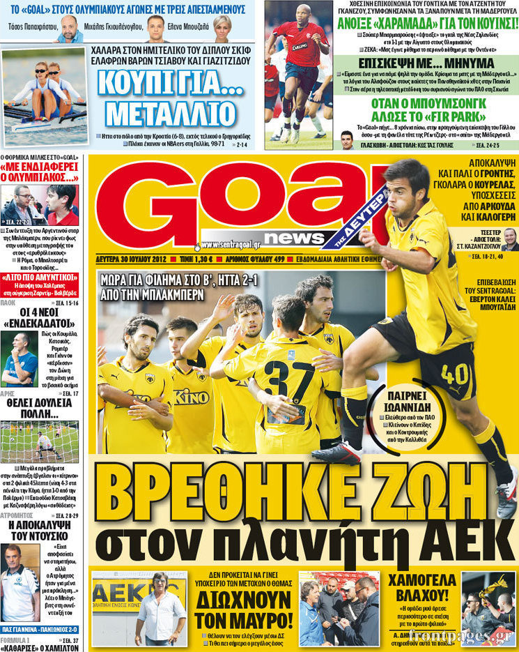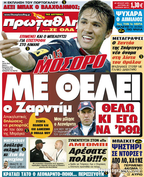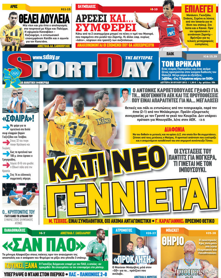 Τα σημερινά πρωτοσέλιδα των αθλητικών εφημερίδων.