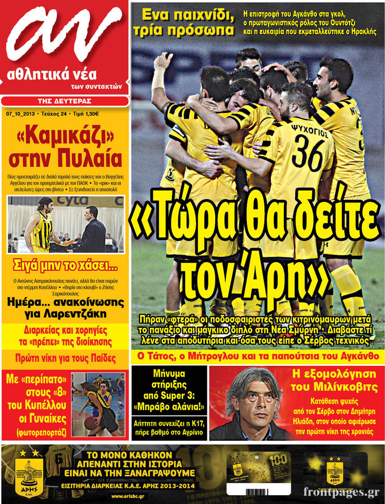 Οι αθλητικές εφημερίδες Enikos Newsroom 08:48, Δευτέρα 07 Οκτωβρίου 2013 Media Οι αθλητικές εφημερίδες Διαβάστε τα πρωτοσέλιδα των αθλητικών εφημερίδων: ΑΘΛΗΤΙΚΕΣ ΕΦΗΜΕΡΙΔΕΣ ΕΦΗΜΕΡΙΔΕΣ ΠΡΩΤΟΣΕΛΙΔΑ Μοιράσου το: σχολίασε κι εσύ (0 σχόλια) Ακολουθήστε το enikos.gr στο Google News και μάθετε πρώτοι όλες τις ειδήσεις Δείτε όλες τις τελευταίες ειδήσεις από την Ελλάδα και τον Κόσμο στο enikos.gr Ειδήσεις Ροή Ειδήσεων 3 ώρες πριν Αυξάνουν την πίεση προς την κυβέρνηση οι αγρότες: Κλείνουν παρακαμπτήριους και ανοίγουν διόδια – Τι θα γίνει τις γιορτές 2 ώρες πριν ΟΠΕΚΕΠΕ: Προφυλακιστέος ο φερόμενος αρχηγός και ο λογιστής της εγκληματικής οργάνωσης 3 ώρες πριν Φοινικούντα: Το Σάββατο απολογείται ο 30χρονος γιος γνωστού επιχειρηματία της Πλάκας που παραδόθηκε – Όσα είπε στους αστυνομικούς και ο ρόλος του στο έγκλημα 2 ώρες πριν Μπορεί ο Μαδούρο να αντέξει τον αποκλεισμό του Τραμπ; Τι θα χρειαστεί η Ουάσινγκτον για να τον ανατρέψει 4 ώρες πριν Πρίγκιπας Ουίλιαμ – Κέιτ: Η νέα οικογενειακή φωτογραφία για τις Χριστουγεννιάτικες κάρτες του 2025 4 ώρες πριν Ύπνος: Η απλή βραδινή ρουτίνα για να προστατεύσετε τα μαλλιά σας από το κρύο κατά τη διάρκεια του χειμώνα 5 ώρες πριν Manifesting: Πώς να συναντήσετε τον σύντροφο της ζωής σας, ανάλογα με τον μήνα γέννησής σας 2 ημέρες πριν 20 χρόνια τα Χριστούγεννα ξεκινούν στα Public με μεγάλη ποικιλία σε δώρα! 3 ώρες πριν Αρχαιολόγοι ανακάλυψαν ρωμαϊκά τεχνουργήματα από μια πόλη που δεν υπήρξε ποτέ – Τα τρία εντυπωσιακά κτίρια και ο αμφορέας με τις… σαρδέλες 6 λεπτά πριν ΟΗΕ: Την εκλογή του νέου ύπατου αρμοστή για τους Πρόσφυγες Μπαρχάμ Άχμεντ Σαλίχ χαιρέτησε ο Αντόνιο Γκουτέρες 10 λεπτά πριν Σύνοδος Κορυφής στις Βρυξέλλες: Ακόμη πιο κοντά σε διέξοδο για τη χρηματοδότηση της Ουκρανίας 19 λεπτά πριν ΟΗΕ: Iστορική επίσκεψη του Συμβουλίου Ασφαλείας στη Δαμασκό – Mήνυμα Ελλάδας για συμπερίληψη και λογοδοσία 26 λεπτά πριν Νέος πρέσβης της Μεγάλης Βρετανίας στις ΗΠΑ ο Κρίστιαν Τέρνερ 29 λεπτά πριν Conference League: Με Νόα, Ντρίτα, Άλκμααρ ή Τσέλιε στους «16» η ΑΕΚ ENIKOS NETWORK Σε περίοδο αυξημένης δραστηριότητας η γρίπη στην Ελλάδα-Μέτρα προστασίας από τον ΕΟΔΥ Σκέφτεστε συνέχεια συζητήσεις που έχετε κάνει; Τι σημαίνει αυτό, σύμφωνα με ειδικό Στεγαστικό: Τι λέει η ΠΟΜΙΔΑ για τα νέα μέτρα που ανακοίνωσε ο Κυριάκος Μητσοτάκης Λαγκάρντ: Αισιόδοξη για την ανάπτυξη της Ευρωζώνης, αβέβαιη για τον πληθωρισμό Χαρτογραφώντας το «σημείο χωρίς επιστροφή»: Για πρώτη φορά αποκαλύπτεται με λεπτομέρεια το ακανθώδες όριο της ατμόσφαιρας τ... Η Google καταργεί τη λειτουργία «dark web report» – Πώς θα μπορούν οι χρήστες να διαγράφουν τα δεδομένα τους περισσότερα 17:45 , Πέμπτη 18 Δεκεμβρίου 2025 ROUK ZOUK: Εορταστικό επεισόδιο με καλεσμένους τους πρωταγωνιστές του «Γιατί ρε πατέρα» Το Σάββατο 20 Δεκεμβρίου στις 21:00, η Ζέτα Μακρυπούλια υποδέχεται εκλεκτούς ηθοποιούς που όλο... 17:20 , Πέμπτη 18 Δεκεμβρίου 2025 Άγιος έρωτας: Η Χριστίνα εξομολογείται στον πατέρα Νικόλαο, απόψε στις 21:00 στον Alpha Η Νότα αποφασίζει να εκδικηθεί τον Πέτρο και τον Στέφανο, για χάρη του Λούη, όμως τα πράγματα ... 16:50 , Πέμπτη 18 Δεκεμβρίου 2025 Να μ’ αγαπάς: Ζωή και Φωτεινή συμφιλιώνονται ως μάνα με κόρη, απόψε στις 20:00 Η ταυτότητα του Άγγελου αποκαλύπτεται στο νέο επεισόδιο της σειράς “Να μ’ αγαπάς... 15:52 , Πέμπτη 18 Δεκεμβρίου 2025 Το Σπίτι Δίπλα Στο Ποτάμι: Το καθηλωτικό τελευταίο επεισόδιο για το 2025 απόψε στις 22:30 Καθηλώνει το σημερινό επεισόδιο της σει