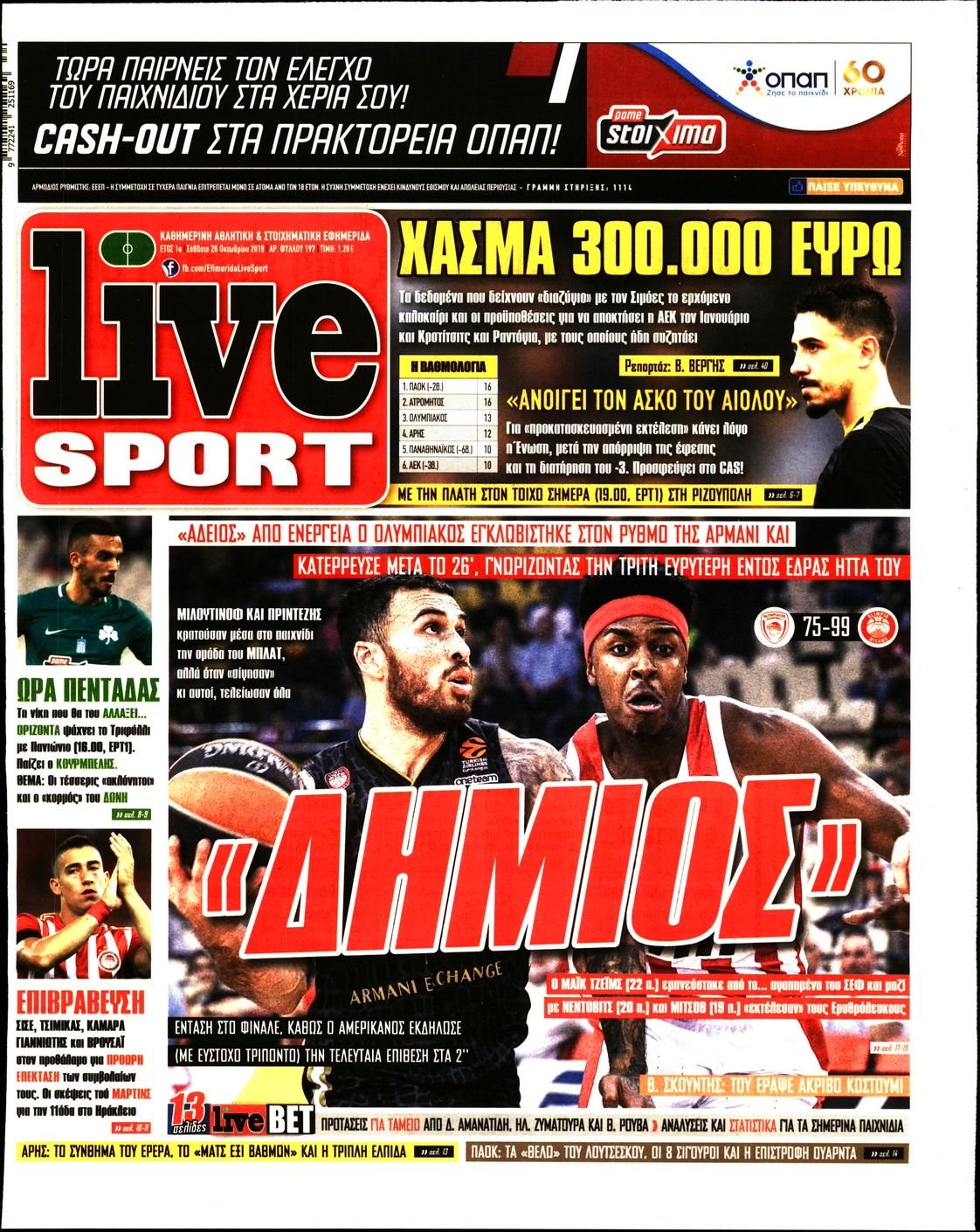 Οι αθλητικές εφημερίδες 20/10/18 Enikos Newsroom 06:39, Σάββατο 20 Οκτωβρίου 2018 Media Διαβάστε τα πρωτοσέλιδα: ΑΘΛΗΤΙΚΕΣ ΕΦΗΜΕΡΙΔΕΣ ΠΡΩΤΟΣΕΛΙΔΑ Μοιράσου το: σχολίασε κι εσύ (0 σχόλια) Ακολουθήστε το enikos.gr στο Google News και μάθετε πρώτοι όλες τις ειδήσεις Δείτε όλες τις τελευταίες ειδήσεις από την Ελλάδα και τον Κόσμο στο enikos.gr Ειδήσεις Ροή Ειδήσεων 4 ώρες πριν Μεσόγειος: Η διαδρομή του ρωσικού τάνκερ «Qendil» και η στοχευμένη επίθεση της Ουκρανίας με drone – Ο Πούτιν προειδοποίησε για αντίποινα 21 λεπτά πριν Αγρότες: Έκλεισαν για μία ώρα την παρακαμπτήρια της Ιόνιας Οδού στη θέση Χαλίκι 2 ώρες πριν Εμπλοκή και αερομαχίες με οπλισμένα τουρκικά F-16 στο Αιγαίο 2 ώρες πριν Πούτιν: «Ναι, είμαι ερωτευμένος» – Βίντεο από τη σπάνια προσωπική παραδοχή του 24 λεπτά πριν Ανδρέας Λυκουρέντζος: Υπέβαλε την παραίτησή του ο πρόεδρος του ΕΛΓΑ, αλλά δεν έγινε δεκτή – Όλο το παρασκήνιο 34 λεπτά πριν Αριθμολογία: Οι άνθρωποι που έχουν γεννηθεί αυτές τις 4 ημερομηνίες, συχνά παρεξηγούνται – «Η καλοσύνη τους κρύβει τεράστια δύναμη» 3 ώρες πριν Μήπως έχετε χάσει τον εαυτό σας στη σχέση σας; 7 «αθόρυβες» υποχωρήσεις που μάλλον κάνατε, χωρίς να το συνειδητοποιήσετε 2 ώρες πριν Ξεχάστε το καθάρισμα το Σαββατοκύριακο: Ο «κανόνας των 20 λεπτών» που θα σας λύσει τα χέρια 5 ώρες πριν Κουίζ για την παλιά Αθήνα: Αναγνωρίζετε την περιοχή; Έχετε περάσει 100% από εκεί 5 λεπτά πριν Συνεχίζει να προκαλεί ο Μίτσκοσκι: «Για μένα το όνομα Μακεδονία είναι ιερό» 15 λεπτά πριν Ο Γιάννης Κακλέας σκηνοθετεί Βερόνικα Δαβάκη και Ιβάν Σβιτάιλο στη «Locandiera» 21 λεπτά πριν Αγρότες: Έκλεισαν για μία ώρα την παρακαμπτήρια της Ιόνιας Οδού στη θέση Χαλίκι 24 λεπτά πριν Ανδρέας Λυκουρέντζος: Υπέβαλε την παραίτησή του ο πρόεδρος του ΕΛΓΑ, αλλά δεν έγινε δεκτή – Όλο το παρασκήνιο 29 λεπτά πριν Ηράκλειο: «Ιπτάμενοι» Άγιοι Βασίληδες μοίρασαν δώρα και χαμόγελα στα παιδιά στο ΠΑΓΝΗ – Δείτε βίντεο ENIKOS NETWORK Το ΕΚΑΒ τιμήθηκε από την Ακαδημία Αθηνών για τα 40 χρόνια προσφοράς του Έχετε πραγματικά μεγάλη καρδιά; 10 χαρακτηριστικά όσων έχουν καλοσύνη Έρχονται νέες προσλήψεις σε Δήμο – Όλες οι λεπτομέρειες Επίδομα παιδιού: Πότε ανοίγει ξανά η πλατφόρμα για τις αιτήσεις Χαρτογραφώντας το «σημείο χωρίς επιστροφή»: Για πρώτη φορά αποκαλύπτεται με λεπτομέρεια το ακανθώδες όριο της ατμόσφαιρας τ... Η Google καταργεί τη λειτουργία «dark web report» – Πώς θα μπορούν οι χρήστες να διαγράφουν τα δεδομένα τους περισσότερα 20:37 , Παρασκευή 19 Δεκεμβρίου 2025 Don’t Forget The Lyrics: Η Έλλη Κοκκίνου υποδέχεται 4 παίκτες που θα κάνουν τα πάντα για να μη χάσουν ούτε… μισή λέξη από τους στίχους Το «Don’t Forget The Lyrics» επιστρέφει απόψε, Παρασκευή 19 Δεκεμβρίου, στις 21:00 με νέο επει... 19:31 , Παρασκευή 19 Δεκεμβρίου 2025 GNTM: Απόψε ο μεγάλος τελικός για τους 4 φιναλίστ Έπειτα από μήνες γεμάτους μόδα, δημιουργία και έντονες αναμετρήσεις, το GNTM 2025 κορυφώνεται,... 18:11 , Παρασκευή 19 Δεκεμβρίου 2025 Το σόι σου: Ο Άρης έρχεται στην Ελλάδα για τις γιορτές των Χριστουγέννων – Τι θα δούμε στο αποψινό εορταστικό επεισόδιο Ένα απολαυστικό, εορταστικό επεισόδιο της σειράς “Το σόι σου”, γεμάτο ευτράπελα αλ... 15:15 , Παρασκευή 19 Δεκεμβρίου 2025 Την Κυριακή με τη Realnews: Ό,τι και αν αγοράσεις, σκανάρεις και κερδίζεις! Την Κυριακή με τη Realnews: Ό,τι και αν αγοράσεις, σκανάρεις και κερδίζεις! Με το PADU app, το... ΤΕΛΕΥΤΑΙΕΣ ΕΙΔΗΣΕΙΣ 5 λεπτά πριν Συνεχίζει να προκαλεί ο Μίτσκοσκι: «Για μένα το όνομα... 15 λεπτά πριν Ο Γιάννης Κακλέας σκην