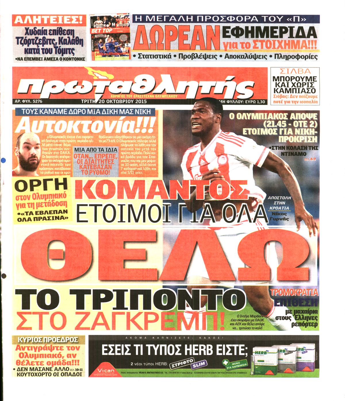 Οι αθλητικές εφημερίδες 20/10/2015 Enikos Newsroom 07:30, Τρίτη 20 Οκτωβρίου 2015 Media Διαβάστε τα σημερινά πρωτοσέλιδα των αθλητικών εφημερίδων: ΑΘΛΗΤΙΚΕΣ ΕΦΗΜΕΡΙΔΕΣ ΠΡΩΤΟΣΕΛΙΔΑ Μοιράσου το: σχολίασε κι εσύ (0 σχόλια) Ακολουθήστε το enikos.gr στο Google News και μάθετε πρώτοι όλες τις ειδήσεις Δείτε όλες τις τελευταίες ειδήσεις από την Ελλάδα και τον Κόσμο στο enikos.gr Ειδήσεις Ροή Ειδήσεων 3 ώρες πριν Από το Ορμένιο ως τα Μάλγαρα κι από τη Σιάτιστα μέχρι τη Νίκαια: Μπλόκα σε όλη την Ελλάδα – Το Σάββατο ανοίγουν τα διόδια οι αγρότες 38 λεπτά πριν Εμπλοκή και αερομαχίες με οπλισμένα τουρκικά F-16 στο Αιγαίο 2 ώρες πριν Αττική: Θρίλερ με νεκρό βρέφος 5 μηνών – Κοιμόταν στο ίδιο κρεβάτι με τους γονείς του 28 λεπτά πριν Πούτιν: «Ναι, είμαι ερωτευμένος» – Βίντεο από τη σπάνια προσωπική παραδοχή του 2 ώρες πριν Μεσόγειος: Η διαδρομή του ρωσικού τάνκερ «Qendil» και η στοχευμένη επίθεση της Ουκρανίας με drone – Ο Πούτιν προειδοποίησε για αντίποινα 4 ώρες πριν Τα 5 ζώδια που ευνοούνται στην ερωτική ζωή τους την επόμενη εβδομάδα – «Η ενέργεια του Αιγόκερου φέρνει αγάπη και σταθερότητα» 5 ώρες πριν Αυτό το έξυπνο μαθηματικό κόλπο θα μπορούσε να αλλάξει τον τρόπο με τον οποίο οι επιστήμονες μελετούν τους σεισμούς 1 ώρα πριν Μήπως έχετε χάσει τον εαυτό σας στη σχέση σας; 7 «αθόρυβες» υποχωρήσεις που μάλλον κάνατε, χωρίς να το συνειδητοποιήσετε 3 ώρες πριν Κουίζ για την παλιά Αθήνα: Αναγνωρίζετε την περιοχή; Έχετε περάσει 100% από εκεί 52 δευτερόλεπτα πριν Νίκος Γιαννόπουλος: «Μου επιτέθηκε ο Παππάς – Ήμουν νηφάλιος, δεν τον προκάλεσα» – ΒΙΝΤΕΟ 9 λεπτά πριν Γιώργος Τράγκας: Ανατροπή από το Πριγκιπάτο του Μονακό για την υπόθεση της κληρονομιάς – Η ανακοίνωση της δικηγόρου της Μαρίας Καρρά 16 λεπτά πριν Ξεχάστε το καθάρισμα το Σαββατοκύριακο: Ο «κανόνας των 20 λεπτών» που θα σας λύσει τα χέρια 18 λεπτά πριν Αγρότες: Έκλεισαν την υψηλή γέφυρα της Χαλκίδας – ΒΙΝΤΕΟ 21 λεπτά πριν Ρούμπιο: Έχει υπάρξει πρόοδος στις συνομιλίες για την Ουκρανία – Τα τελευταία ζητήματα είναι τα πιο δύσκολα ENIKOS NETWORK Έχετε πραγματικά μεγάλη καρδιά; 10 χαρακτηριστικά όσων έχουν καλοσύνη «Η σούπερ» γρίπη εξαπλώνεται στην Ευρώπη-Στοιχεία από το ECDC για την αποτελεσματικότητα του εμβολίου Επίδομα παιδιού: Πότε ανοίγει ξανά η πλατφόρμα για τις αιτήσεις Προκήρυξη ΑΣΕΠ για 397 μόνιμες προσλήψεις στο Δημόσιο: Βγήκαν τα προσωρινά αποτελέσματα – Πότε αρχίζει η υποβολή ενστάσεων Χαρτογραφώντας το «σημείο χωρίς επιστροφή»: Για πρώτη φορά αποκαλύπτεται με λεπτομέρεια το ακανθώδες όριο της ατμόσφαιρας τ... Η Google καταργεί τη λειτουργία «dark web report» – Πώς θα μπορούν οι χρήστες να διαγράφουν τα δεδομένα τους περισσότερα 19:31 , Παρασκευή 19 Δεκεμβρίου 2025 GNTM: Απόψε ο μεγάλος τελικός για τους 4 φιναλίστ Έπειτα από μήνες γεμάτους μόδα, δημιουργία και έντονες αναμετρήσεις, το GNTM 2025 κορυφώνεται,... 18:11 , Παρασκευή 19 Δεκεμβρίου 2025 Το σόι σου: Ο Άρης έρχεται στην Ελλάδα για τις γιορτές των Χριστουγέννων – Τι θα δούμε στο αποψινό εορταστικό επεισόδιο Ένα απολαυστικό, εορταστικό επεισόδιο της σειράς “Το σόι σου”, γεμάτο ευτράπελα αλ... 15:15 , Παρασκευή 19 Δεκεμβρίου 2025 Την Κυριακή με τη Realnews: Ό,τι και αν αγοράσεις, σκανάρεις και κερδίζεις! Την Κυριακή με τη Realnews: Ό,τι και αν αγοράσεις, σκανάρεις και κερδίζεις! Με το PADU app, το... 08:00 , Παρασκευή 19 Δεκεμβρίου 2025 Την Κυριακή με τη Realnews: Δωροεπιταγή 10€ Δωροεπιταγή αξίας 10€ για αγορές άνω των 60€ από τα πολυκαταστήματα Factor