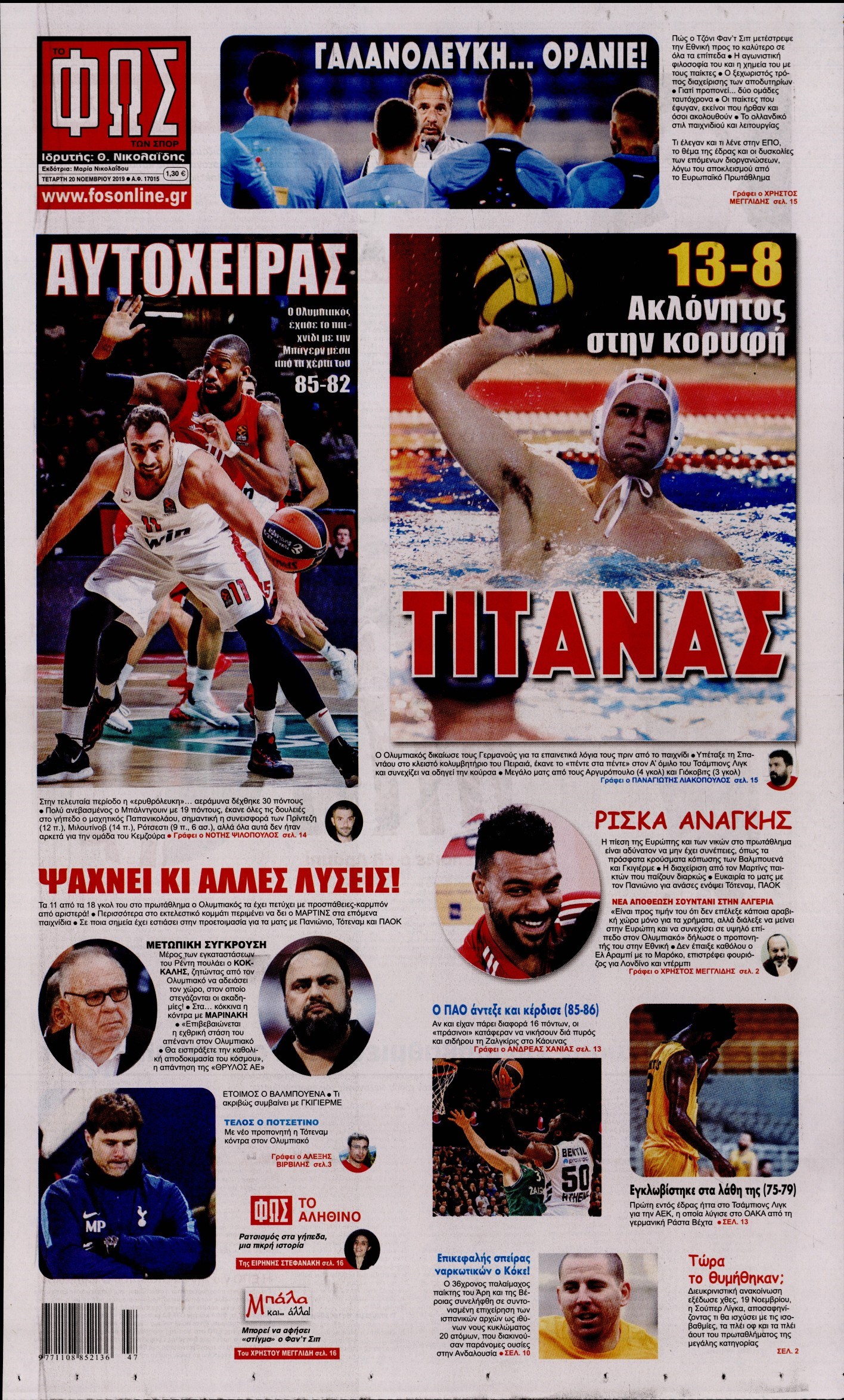 Οι αθλητικές εφημερίδες 20/11/19 Διονύσης Νίκκας 07:01, Τετάρτη 20 Νοεμβρίου 2019 Media Διαβάστε τα πρωτοσέλιδα των αθλητικών εφημερίδων… ΑΘΛΗΤΙΚΕΣ ΕΦΗΜΕΡΙΔΕΣ Μοιράσου το: σχολίασε κι εσύ (0 σχόλια) Ακολουθήστε το enikos.gr στο Google News και μάθετε πρώτοι όλες τις ειδήσεις Δείτε όλες τις τελευταίες ειδήσεις από την Ελλάδα και τον Κόσμο στο enikos.gr Ειδήσεις Ροή Ειδήσεων 49 λεπτά πριν Ευρωπαϊκή Ένωση: Χωρίς συμφωνία, για την μακροπρόθεσμη χρηματοδότηση της Ουκρανίας, ολοκληρώθηκε η Σύνοδος Κορυφής στις Βρυξέλλες 4 ώρες πριν ΟΠΕΚΕΠΕ: Προφυλακιστέος ο φερόμενος αρχηγός και ο λογιστής της εγκληματικής οργάνωσης 5 ώρες πριν Αυξάνουν την πίεση προς την κυβέρνηση οι αγρότες: Κλείνουν παρακαμπτήριους και ανοίγουν διόδια – Τι θα γίνει τις γιορτές 5 ώρες πριν Φοινικούντα: Το Σάββατο απολογείται ο 30χρονος γιος γνωστού επιχειρηματία της Πλάκας που παραδόθηκε – Όσα είπε στους αστυνομικούς και ο ρόλος του στο έγκλημα 4 ώρες πριν ΑΕΚ – Κραϊόβα 3-2: Επική ανατροπή και πρόκριση στους «16» του Conference League η Ένωση 5 ώρες πριν Αρχαιολόγοι ανακάλυψαν ρωμαϊκά τεχνουργήματα από μια πόλη που δεν υπήρξε ποτέ – Τα τρία εντυπωσιακά κτίρια και ο αμφορέας με τις… σαρδέλες 6 ώρες πριν Ύπνος: Η απλή βραδινή ρουτίνα για να προστατεύσετε τα μαλλιά σας από το κρύο κατά τη διάρκεια του χειμώνα 7 ώρες πριν Manifesting: Πώς να συναντήσετε τον σύντροφο της ζωής σας, ανάλογα με τον μήνα γέννησής σας 2 ημέρες πριν 20 χρόνια τα Χριστούγεννα ξεκινούν στα Public με μεγάλη ποικιλία σε δώρα! 1 λεπτό πριν Αιματηρή βομβιστική επίθεση στην Υεμένη: Τουλάχιστον τρεις νεκροί και 13 τραυματίες 5 λεπτά πριν Στη Φλόριντα σήμερα οι διαβουλεύσεις σχετικά με τα επόμενα στάδια για τη Λωρίδα της Γάζας 9 λεπτά πριν Σίσσυ Τουμάση: «Είμαι ασθενοφοβική πάρα πολύ και με πιάνει μια παράνοια μ’ αυτό» 33 λεπτά πριν Ντόναλντ Τραμπ: Δεν χρειάζομαι την έγκριση του Κογκρέσου για να διατάξω στρατιωτικά πλήγματα στη Βενεζουέλα 49 λεπτά πριν Ευρωπαϊκή Ένωση: Χωρίς συμφωνία, για την μακροπρόθεσμη χρηματοδότηση της Ουκρανίας, ολοκληρώθηκε η Σύνοδος Κορυφής στις Βρυξέλλες ENIKOS NETWORK Σε περίοδο αυξημένης δραστηριότητας η γρίπη στην Ελλάδα-Μέτρα προστασίας από τον ΕΟΔΥ Σκέφτεστε συνέχεια συζητήσεις που έχετε κάνει; Τι σημαίνει αυτό, σύμφωνα με ειδικό Στεγαστικό: Τι λέει η ΠΟΜΙΔΑ για τα νέα μέτρα που ανακοίνωσε ο Κυριάκος Μητσοτάκης Λαγκάρντ: Αισιόδοξη για την ανάπτυξη της Ευρωζώνης, αβέβαιη για τον πληθωρισμό Χαρτογραφώντας το «σημείο χωρίς επιστροφή»: Για πρώτη φορά αποκαλύπτεται με λεπτομέρεια το ακανθώδες όριο της ατμόσφαιρας τ... Η Google καταργεί τη λειτουργία «dark web report» – Πώς θα μπορούν οι χρήστες να διαγράφουν τα δεδομένα τους περισσότερα 02:50 , Παρασκευή 19 Δεκεμβρίου 2025 GNTM: «Κλείδωσαν» οι τέσσερις φιναλίστ – Μεγάλη ανατροπή στις τελευταίες αποχωρήσεις Για προτελευταία φορά εμφανίστηκαν στο πλατό του GNTM οι φιναλίστ του φετινού κύκλου, το βράδυ... 17:45 , Πέμπτη 18 Δεκεμβρίου 2025 ROUK ZOUK: Εορταστικό επεισόδιο με καλεσμένους τους πρωταγωνιστές του «Γιατί ρε πατέρα» Το Σάββατο 20 Δεκεμβρίου στις 21:00, η Ζέτα Μακρυπούλια υποδέχεται εκλεκτούς ηθοποιούς που όλο... 17:20 , Πέμπτη 18 Δεκεμβρίου 2025 Άγιος έρωτας: Η Χριστίνα εξομολογείται στον πατέρα Νικόλαο, απόψε στις 21:00 στον Alpha Η Νότα αποφασίζει να εκδικηθεί τον Πέτρο και τον Στέφανο, για χάρη του Λούη, όμως τα πράγματα ... 16:50 , Πέμπτη 18 Δεκεμβρίου 2025 Να μ’ αγαπάς: Ζωή και Φωτεινή συμφιλιώνονται ως μάνα με κόρη, απόψ