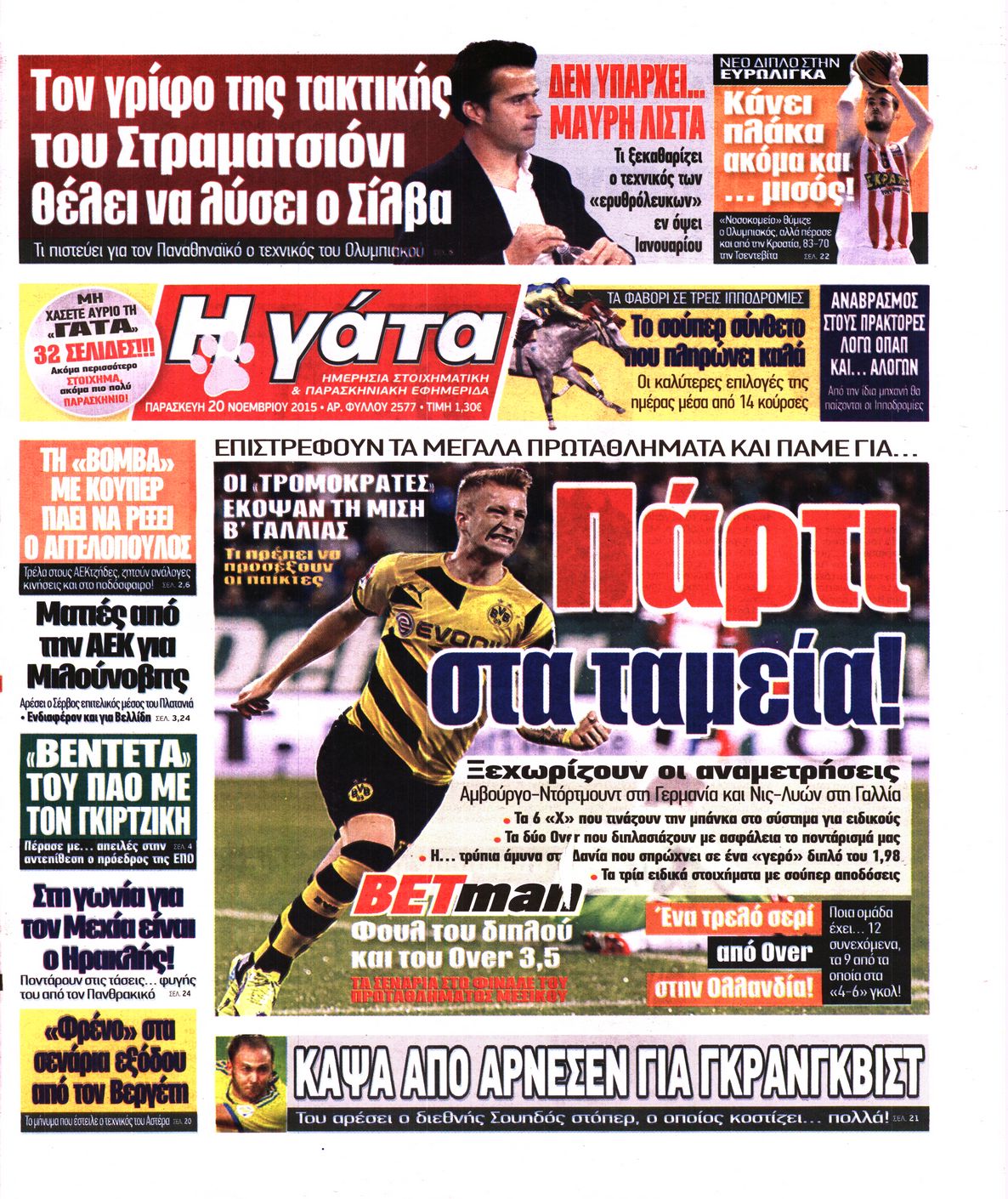 Οι αθλητικές εφημερίδες 20/11/2015 Enikos Newsroom 06:32, Παρασκευή 20 Νοεμβρίου 2015 Media Διαβάστε τα σημερινά πρωτοσέλιδα των αθλητικών εφημερίδων: ΑΘΛΗΤΙΚΕΣ ΕΦΗΜΕΡΙΔΕΣ ΠΡΩΤΟΣΕΛΙΔΑ Μοιράσου το: σχολίασε κι εσύ (0 σχόλια) Ακολουθήστε το enikos.gr στο Google News και μάθετε πρώτοι όλες τις ειδήσεις Δείτε όλες τις τελευταίες ειδήσεις από την Ελλάδα και τον Κόσμο στο enikos.gr Ειδήσεις Ροή Ειδήσεων 60 λεπτά πριν Αυξάνουν την πίεση προς την κυβέρνηση οι αγρότες: Κλείνουν παρακαμπτήριους και ανοίγουν διόδια – Τι θα γίνει τις γιορτές 50 λεπτά πριν Φοινικούντα: Το Σάββατο απολογείται ο 30χρονος γιος γνωστού επιχειρηματία της Πλάκας που παραδόθηκε – Όσα είπε στους αστυνομικούς και ο ρόλος του στο έγκλημα 32 λεπτά πριν Μπορεί ο Μαδούρο να αντέξει τον αποκλεισμό του Τραμπ; Τι θα χρειαστεί η Ουάσινγκτον για να τον ανατρέψει 2 ώρες πριν Δημοσκόπηση Metron Analysis: Στις 10 μονάδες η διαφορά ΝΔ-ΠΑΣΟΚ, στην 3η θέση η Πλεύση Ελευθερίας – 8 στους 10 στηρίζουν τον αγώνα των αγροτών 2 ώρες πριν Πρίγκιπας Ουίλιαμ – Κέιτ: Η νέα οικογενειακή φωτογραφία για τις Χριστουγεννιάτικες κάρτες του 2025 2 ώρες πριν Ύπνος: Η απλή βραδινή ρουτίνα για να προστατεύσετε τα μαλλιά σας από το κρύο κατά τη διάρκεια του χειμώνα 3 ώρες πριν Manifesting: Πώς να συναντήσετε τον σύντροφο της ζωής σας, ανάλογα με τον μήνα γέννησής σας 2 ημέρες πριν 20 χρόνια τα Χριστούγεννα ξεκινούν στα Public με μεγάλη ποικιλία σε δώρα! 36 λεπτά πριν Αρχαιολόγοι ανακάλυψαν ρωμαϊκά τεχνουργήματα από μια πόλη που δεν υπήρξε ποτέ – Τα τρία εντυπωσιακά κτίρια και ο αμφορέας με τις… σαρδέλες 2 λεπτά πριν Αθηνά Μαξίμου: Η τρυφερή ανάρτηση για τα γενέθλια του Αιμίλιου Χειλάκη – «Είναι η εκλεκτική συγγένειά μου, η επιλογή και η ευθύνη μου» 17 λεπτά πριν Παναθηναϊκός – Χάποελ Τελ Αβίβ 93-82: Με… φόρα από την Κωνσταντινούπολη 32 λεπτά πριν Μπορεί ο Μαδούρο να αντέξει τον αποκλεισμό του Τραμπ; Τι θα χρειαστεί η Ουάσινγκτον για να τον ανατρέψει 36 λεπτά πριν Αρχαιολόγοι ανακάλυψαν ρωμαϊκά τεχνουργήματα από μια πόλη που δεν υπήρξε ποτέ – Τα τρία εντυπωσιακά κτίρια και ο αμφορέας με τις… σαρδέλες 38 λεπτά πριν Στο ΟΑΚΑ για το «Παναθηναϊκός – Χάποελ» η Κίμπερλι Γκίλφοϊλ – ΦΩΤΟ ENIKOS NETWORK Σε περίοδο αυξημένης δραστηριότητας η γρίπη στην Ελλάδα-Μέτρα προστασίας από τον ΕΟΔΥ Σκέφτεστε συνέχεια συζητήσεις που έχετε κάνει; Τι σημαίνει αυτό, σύμφωνα με ειδικό Στεγαστικό: Τι λέει η ΠΟΜΙΔΑ για τα νέα μέτρα που ανακοίνωσε ο Κυριάκος Μητσοτάκης Λαγκάρντ: Αισιόδοξη για την ανάπτυξη της Ευρωζώνης, αβέβαιη για τον πληθωρισμό Χαρτογραφώντας το «σημείο χωρίς επιστροφή»: Για πρώτη φορά αποκαλύπτεται με λεπτομέρεια το ακανθώδες όριο της ατμόσφαιρας τ... Η Google καταργεί τη λειτουργία «dark web report» – Πώς θα μπορούν οι χρήστες να διαγράφουν τα δεδομένα τους περισσότερα 17:45 , Πέμπτη 18 Δεκεμβρίου 2025 ROUK ZOUK: Εορταστικό επεισόδιο με καλεσμένους τους πρωταγωνιστές του «Γιατί ρε πατέρα» Το Σάββατο 20 Δεκεμβρίου στις 21:00, η Ζέτα Μακρυπούλια υποδέχεται εκλεκτούς ηθοποιούς που όλο... 17:20 , Πέμπτη 18 Δεκεμβρίου 2025 Άγιος έρωτας: Η Χριστίνα εξομολογείται στον πατέρα Νικόλαο, απόψε στις 21:00 στον Alpha Η Νότα αποφασίζει να εκδικηθεί τον Πέτρο και τον Στέφανο, για χάρη του Λούη, όμως τα πράγματα ... 16:50 , Πέμπτη 18 Δεκεμβρίου 2025 Να μ’ αγαπάς: Ζωή και Φωτεινή συμφιλιώνονται ως μάνα με κόρη, απόψε στις 20:00 Η ταυτότητα του Άγγελου αποκαλύπτεται στο νέο επεισόδιο της σειράς “Να μ’ αγαπάς... 15:52 , Πέμπτη 18 Δεκεμβρίου 2025 Το Σπίτ