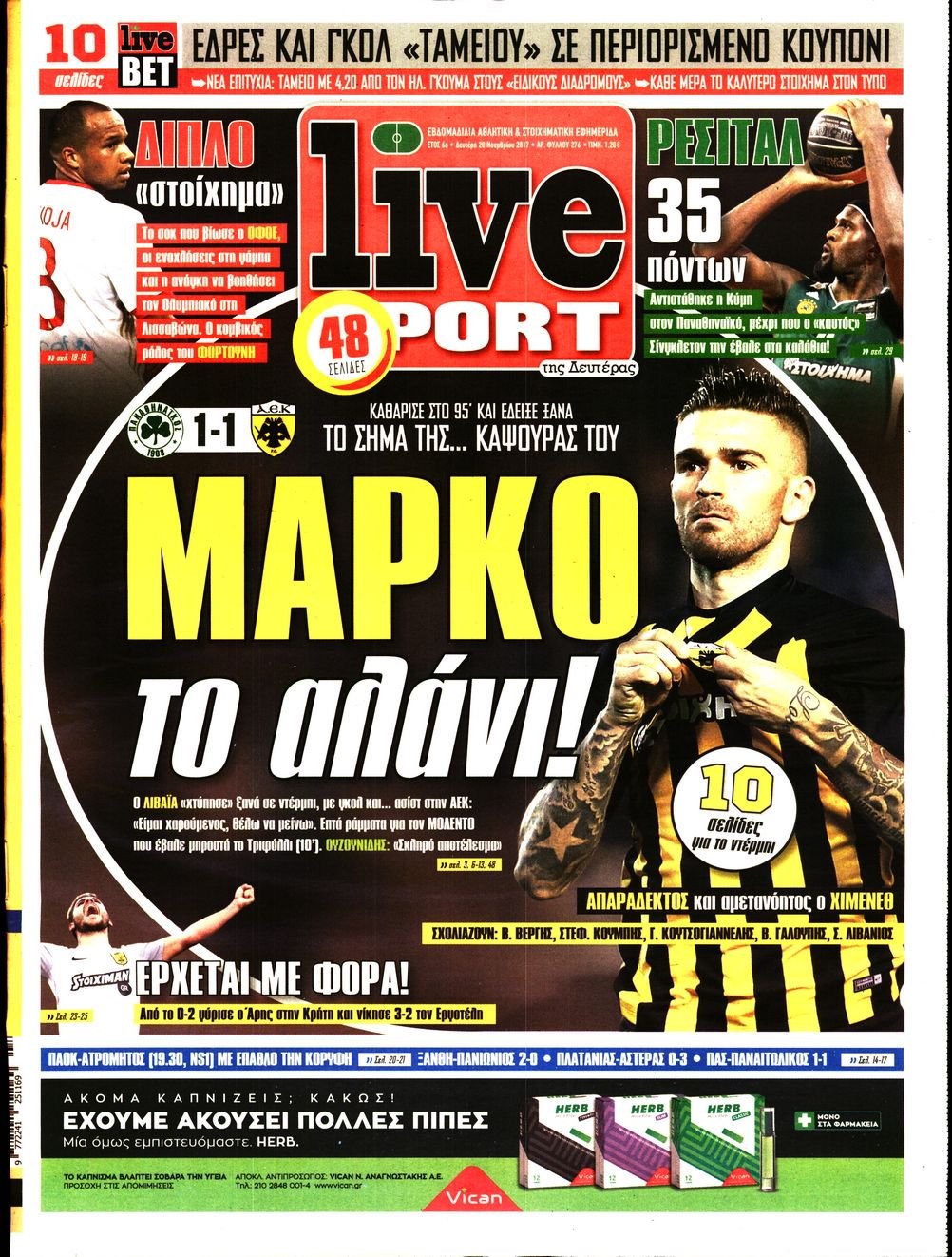 Οι αθλητικές εφημερίδες 20/11/2017 Enikos Newsroom 07:10, Δευτέρα 20 Νοεμβρίου 2017 Media Διαβάστε τα σημερινά πρωτοσέλιδα των αθλητικών εφημερίδων: ΑΘΛΗΤΙΚΕΣ ΕΦΗΜΕΡΙΔΕΣ ΠΡΩΤΟΣΕΛΙΔΑ Μοιράσου το: σχολίασε κι εσύ (0 σχόλια) Ακολουθήστε το enikos.gr στο Google News και μάθετε πρώτοι όλες τις ειδήσεις Δείτε όλες τις τελευταίες ειδήσεις από την Ελλάδα και τον Κόσμο στο enikos.gr Ειδήσεις Ροή Ειδήσεων 34 λεπτά πριν Μεσόγειος: Η διαδρομή του ρωσικού τάνκερ «Qendil» και η στοχευμένη επίθεση της Ουκρανίας με drone – Ο Πούτιν προειδοποίησε για αντίποινα 28 λεπτά πριν Αττική: Θρίλερ με νεκρό βρέφος 5 μηνών – Κοιμόταν στο ίδιο κρεβάτι με τους γονείς του 1 ώρα πριν Από το Ορμένιο ως τα Μάλγαρα κι από τη Σιάτιστα μέχρι τη Νίκαια: Μπλόκα σε όλη την Ελλάδα – Το Σάββατο ανοίγουν τα διόδια οι αγρότες 1 ώρα πριν «Έλληνας Εσκομπάρ»: Φωτογραφίες με τους 4 τόνους κοκαΐνης που κατασχέθηκαν από το σκάφος «Ουρανία» 3 ώρες πριν Πούτιν: Σαρκαστικά μηνύματα, παράπονα και απρόοπτα στη συνέντευξη Τύπου – Η πρόταση γάμου on air και οι ερωτήσεις για τα αγγούρια και τους… εξωγήινους 2 ώρες πριν Τα 5 ζώδια που ευνοούνται στην ερωτική ζωή τους την επόμενη εβδομάδα – «Η ενέργεια του Αιγόκερου φέρνει αγάπη και σταθερότητα» 6 ώρες πριν Ειδικός μοιράζεται 6 κόλπα για να διατηρείστε σε φόρμα με πάνω από 40 ώρες εργασίας την εβδομάδα: «Προπονηθείτε πριν από τη δουλειά, όχι μετά» 3 ώρες πριν Αυτό το έξυπνο μαθηματικό κόλπο θα μπορούσε να αλλάξει τον τρόπο με τον οποίο οι επιστήμονες μελετούν τους σεισμούς 1 ώρα πριν Κουίζ για την παλιά Αθήνα: Αναγνωρίζετε την περιοχή; Έχετε περάσει 100% από εκεί 3 λεπτά πριν Επίσημη η «βόμβα»: Ο ΠΑΟΚ ανακοίνωσε την απόκτηση του Πάτρικ Μπέβερλι 7 λεπτά πριν Θεσσαλονίκη: Πατέρας εγκαλεί τον Ιατρικό Σύλλογο για ποινές «χάδι» σε γιατρό που κατηγορείται για τον θάνατο του παιδιού του 14 λεπτά πριν Κερατσίνι: Αστυνομικός εκτός υπηρεσίας απέτρεψε κλοπή μηχανών – Συνελήφθησαν τρεις ανήλικοι 17 λεπτά πριν Το σόι σου: Ο Άρης έρχεται στην Ελλάδα για τις γιορτές των Χριστουγέννων – Τι θα δούμε στο αποψινό εορταστικό επεισόδιο 24 λεπτά πριν ΠΑΣΟΚ σε Μαρινάκη: Δεν νομιμοποιούμε πολιτικές επιλογές που μεταφέρουν το πρόβλημα από υπηρεσία σε υπηρεσία ENIKOS NETWORK «Η σούπερ» γρίπη εξαπλώνεται στην Ευρώπη-Στοιχεία για την αποτελεσματικότητα του εμβολίου από το ECDC ΕΛΣΤΑΤ: Αύξηση κατά 1,7% των επαγγελματιών υγείας το 2024 Η απάντηση της κυβέρνησης στα αιτήματα των αγροτών: 16 έχουν ικανοποιηθεί, 4 βρίσκονται υπό επεξεργασία και 7 δεν είναι εφι... Μισθολογική διαφάνεια: Το 68% των εργαζομένων αγνοεί τη νέα οδηγία – Αναλυτικά τα στοιχεία έρευνας Χαρτογραφώντας το «σημείο χωρίς επιστροφή»: Για πρώτη φορά αποκαλύπτεται με λεπτομέρεια το ακανθώδες όριο της ατμόσφαιρας τ... Η Google καταργεί τη λειτουργία «dark web report» – Πώς θα μπορούν οι χρήστες να διαγράφουν τα δεδομένα τους περισσότερα 18:11 , Παρασκευή 19 Δεκεμβρίου 2025 Το σόι σου: Ο Άρης έρχεται στην Ελλάδα για τις γιορτές των Χριστουγέννων – Τι θα δούμε στο αποψινό εορταστικό επεισόδιο Ένα απολαυστικό, εορταστικό επεισόδιο της σειράς “Το σόι σου”, γεμάτο ευτράπελα αλ... 15:15 , Παρασκευή 19 Δεκεμβρίου 2025 Την Κυριακή με τη Realnews: Ό,τι και αν αγοράσεις, σκανάρεις και κερδίζεις! Την Κυριακή με τη Realnews: Ό,τι και αν αγοράσεις, σκανάρεις και κερδίζεις! Με το PADU app, το... 08:00 , Παρασκευή 19 Δεκεμβρίου 2025 Την Κυριακή με τη Realnews: Δωροεπιταγή 10€ Δωροεπιταγή αξίας 10€ για αγορές άνω των 60€ από τα πολυκαταστ