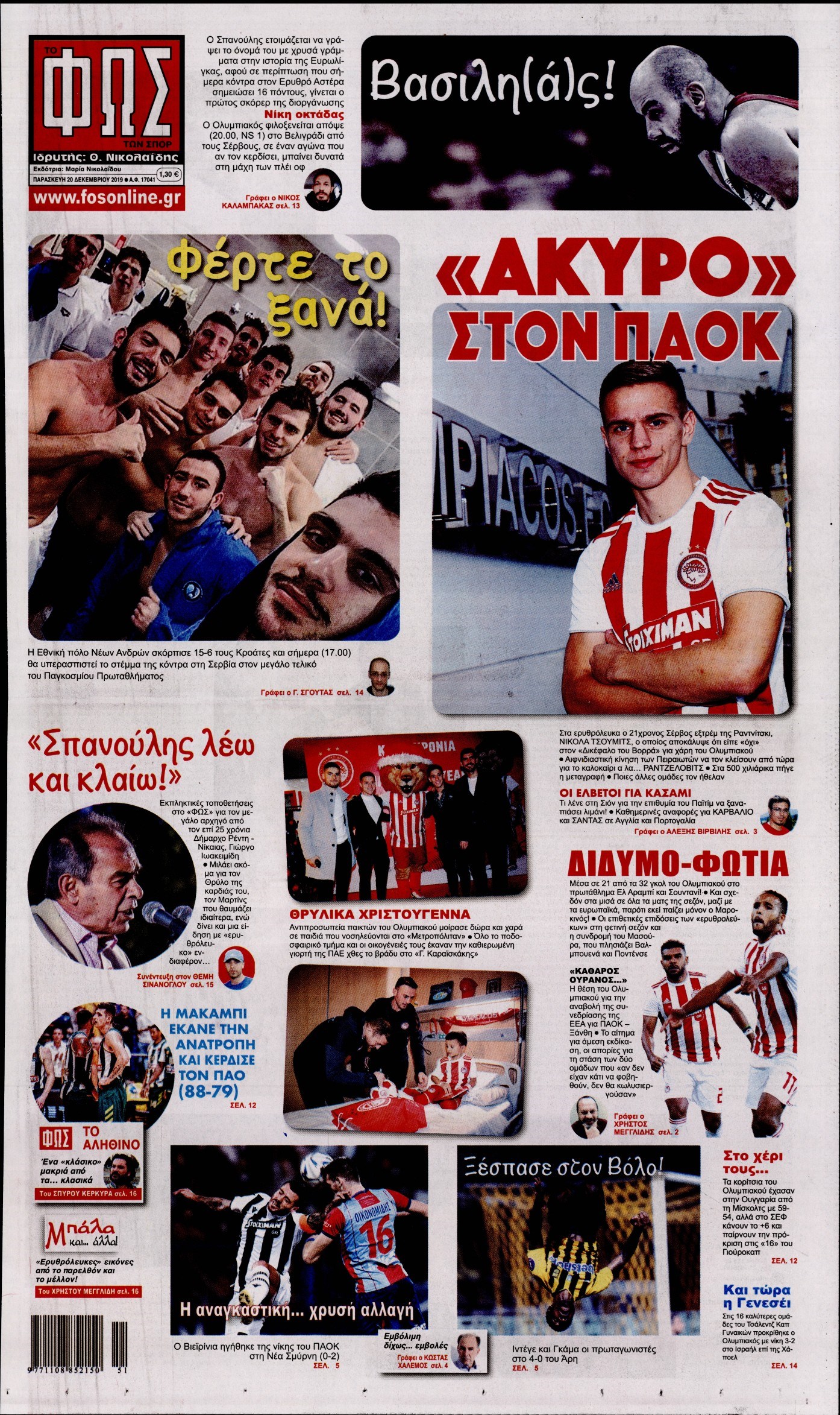 Οι αθλητικές εφημερίδες 20/12/19 Διονύσης Νίκκας 06:50, Παρασκευή 20 Δεκεμβρίου 2019 Media Διαβάστε τα πρωτοσέλιδα των αθλητικών εφημερίδων… ΑΘΛΗΤΙΚΕΣ ΕΦΗΜΕΡΙΔΕΣ ΠΡΩΤΟΣΕΛΙΔΑ Μοιράσου το: σχολίασε κι εσύ (0 σχόλια) Ακολουθήστε το enikos.gr στο Google News και μάθετε πρώτοι όλες τις ειδήσεις Δείτε όλες τις τελευταίες ειδήσεις από την Ελλάδα και τον Κόσμο στο enikos.gr Ειδήσεις Ροή Ειδήσεων 4 ώρες πριν Εκτός ευρωομάδας ΣΥΡΙΖΑ ο Νίκος Παππάς μετά την επίθεση στον δημοσιογράφο Νίκο Γιαννόπουλο – Η μήνυση και οι νέες δηλώσεις 5 ώρες πριν «Αγριεύουν» οι αγρότες: «Δεν συντρέχει λόγος συνάντησης με τον πρωθυπουργό» – Ώρα αποφάσεων στη σύσκεψη της Πέμπτης 5 ώρες πριν Κυψέλη: Χωρίς την οικογένειά της δίπλα της απολογήθηκε η 16χρονη – «Της είχε επιτεθεί κάποιος για να την βιάσει, φοβήθηκε και κυκλοφορούσε με μαχαίρι» 4 ώρες πριν Politico: Το πρόβλημα της Ευρώπης δεν είναι το Βέλγιο αλλά ο Ντόναλντ Τραμπ 6 ώρες πριν Αλεξανδρούπολη: Πολυοργανική ανεπάρκεια λόγω υποσιτισμού η αιτία θανάτου του 3χρονου αγοριού 4 ώρες πριν Μυστήριο με τεράστιες κυκλικές πέτρες 200 κιλών – Ανακαλύφθηκαν τυχαία κατά τη διάρκεια οδικών έργων και κανείς δεν ξέρει από πού προέρχονται 5 ώρες πριν Ύπνος: Ειδικός εξηγεί τον πραγματικό λόγο που ξυπνάτε στις 4 τα ξημερώματα – Ο ρόλος των ορμονών και του κιρκάδιου ρυθμού 6 ώρες πριν Αριθμολογία: Οι άνθρωποι που έχουν γεννηθεί αυτές τις 4 ημερομηνίες, είναι τρυφεροί και αγαπούν ανιδιοτελώς 18 ώρες πριν 20 χρόνια τα Χριστούγεννα ξεκινούν στα Public με μεγάλη ποικιλία σε δώρα! 16 λεπτά πριν Βραζιλία: Το Κογκρέσο ενέκρινε σχέδιο νόμου για τη μείωση της ποινής του πρώην προέδρου Μπολσονάρου 30 λεπτά πριν Ένταση στο περιφερειακό συμβούλιο Δυτικής Μακεδονίας: Φωνές, σπρωξιές και διακοπή – Δείτε βίντεο 45 λεπτά πριν Σουδάν: Επιδρομή drone σε χωριό του Νότιου Κορντοφάν – Οκτώ νεκροί 1 ώρα πριν Αλ Τσαντίρι Νιουζ: Η κόρη της Πάολα στο κοινό – Η ατάκα Λαζόπουλου που την έκανε να «κοκκινήσει» 1 ώρα πριν Ρωσία: Ουκρανικές δυνάμεις έπληξαν πλοίο στο λιμάνι του Ροστόφ – Αναφορές για θύματα ENIKOS NETWORK Αϋπνία: Το κόλπο που θα σας βοηθήσει να κοιμηθείτε απόψε – Είναι απλό και έχει αποτέλεσμα 2,6 εκατομμύρια πολίτες έχουν ήδη εμβολιαστεί κατά της γρίπης ΕΛΣΤΑΤ: Τι δείχνουν τα νέα στοιχεία για τις ηλεκτρονικές παραγγελίες των επιχειρήσεων ΚΕΠΕ: Οι 3 διακριτές συμβολές των ΜμΕ και της μεταποίησης στην ελληνική οικονομία Χαρτογραφώντας το «σημείο χωρίς επιστροφή»: Για πρώτη φορά αποκαλύπτεται με λεπτομέρεια το ακανθώδες όριο της ατμόσφαιρας τ... Η Google καταργεί τη λειτουργία «dark web report» – Πώς θα μπορούν οι χρήστες να διαγράφουν τα δεδομένα τους περισσότερα 02:30 , Πέμπτη 18 Δεκεμβρίου 2025 Αλ Τσαντίρι Νιουζ: Η κόρη της Πάολα στο κοινό – Η ατάκα Λαζόπουλου που την έκανε να «κοκκινήσει» Γιορτινή διάθεση και ευχάριστες στιγμές γέμισε η αποψινή, τελευταία για το 2025, εκπομπή του «... 22:24 , Τετάρτη 17 Δεκεμβρίου 2025 Το Σπίτι Δίπλα Στο Ποτάμι: Σε κίνδυνο η υγεία του Απόστολου – Τι θα δούμε απόψε “Το Σπίτι Δίπλα στο Ποτάμι” ξετυλίγει το νήμα της ζωής των πέντε αδελφών με καταισ... 21:14 , Τετάρτη 17 Δεκεμβρίου 2025 Παιχνίδια Εκδίκησης: Θα καταφέρει ο Χρήστος να κλονίσει την εμπιστοσύνη της Μάγιας απέναντι στον Άγη; Τα «Παιχνίδια Εκδίκησης» έρχονται απόψε στις 22:30, στον Αντ1, με το τελευταίο επεισόδιο της χ... 20:57 , Τετάρτη 17 Δεκεμβρίου 2025 Άγιος Έρωτας: Η Χλόη καταθέτει εναντίον του πατέρα της και ο Χάρης αποκαλύπτει στον Κ