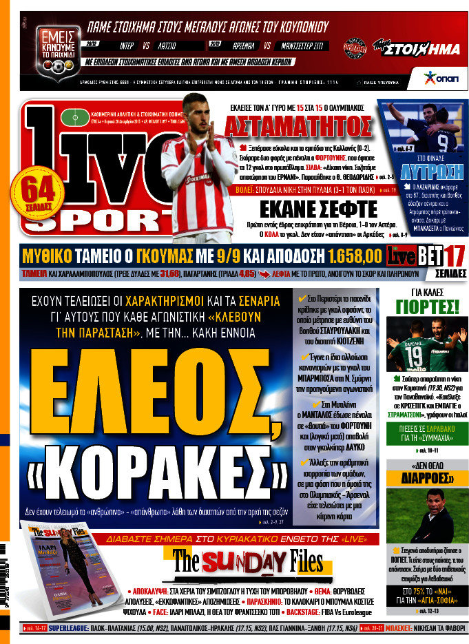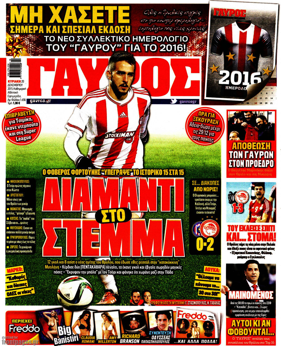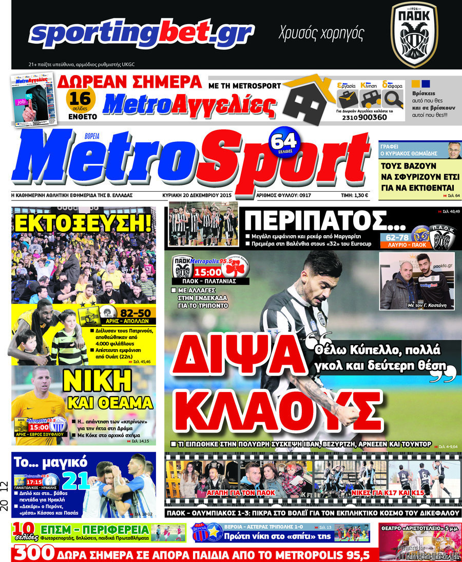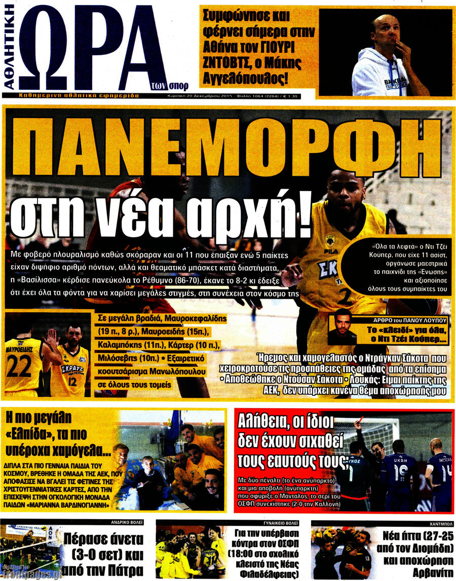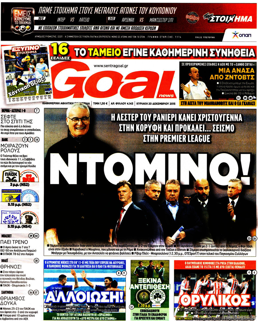 Οι αθλητικές εφημερίδες 20/12/2015 Στεφανία Κασίμη 07:25, Κυριακή 20 Δεκεμβρίου 2015 Media ΑΘΛΗΤΙΚΕΣ ΕΦΗΜΕΡΙΔΕΣ Μοιράσου το: σχολίασε κι εσύ (0 σχόλια) Ακολουθήστε το enikos.gr στο Google News και μάθετε πρώτοι όλες τις ειδήσεις Δείτε όλες τις τελευταίες ειδήσεις από την Ελλάδα και τον Κόσμο στο enikos.gr Ειδήσεις Ροή Ειδήσεων 2 ώρες πριν Αυξάνουν την πίεση προς την κυβέρνηση οι αγρότες: Κλείνουν παρακαμπτήριους και ανοίγουν διόδια – Τι θα γίνει τις γιορτές 1 ώρα πριν ΟΠΕΚΕΠΕ: Προφυλακιστέος ο φερόμενος αρχηγός και ο λογιστής της εγκληματικής οργάνωσης 2 ώρες πριν Φοινικούντα: Το Σάββατο απολογείται ο 30χρονος γιος γνωστού επιχειρηματία της Πλάκας που παραδόθηκε – Όσα είπε στους αστυνομικούς και ο ρόλος του στο έγκλημα 2 ώρες πριν Μπορεί ο Μαδούρο να αντέξει τον αποκλεισμό του Τραμπ; Τι θα χρειαστεί η Ουάσινγκτον για να τον ανατρέψει 3 ώρες πριν Πρίγκιπας Ουίλιαμ – Κέιτ: Η νέα οικογενειακή φωτογραφία για τις Χριστουγεννιάτικες κάρτες του 2025 3 ώρες πριν Ύπνος: Η απλή βραδινή ρουτίνα για να προστατεύσετε τα μαλλιά σας από το κρύο κατά τη διάρκεια του χειμώνα 4 ώρες πριν Manifesting: Πώς να συναντήσετε τον σύντροφο της ζωής σας, ανάλογα με τον μήνα γέννησής σας 2 ημέρες πριν 20 χρόνια τα Χριστούγεννα ξεκινούν στα Public με μεγάλη ποικιλία σε δώρα! 2 ώρες πριν Αρχαιολόγοι ανακάλυψαν ρωμαϊκά τεχνουργήματα από μια πόλη που δεν υπήρξε ποτέ – Τα τρία εντυπωσιακά κτίρια και ο αμφορέας με τις… σαρδέλες 4 λεπτά πριν Σε ομάδες που συνδέονται με το ρωσικό κράτος αποδίδει η Δανία δύο κυβερνοεπιθέσεις που δέχθηκε 19 λεπτά πριν Βαθμολογία UEFA: Η Πολωνία προσπέρασε την Ελλάδα 35 λεπτά πριν Conference League: Οι ομάδες που προκρίθηκαν στους «16» και τα «ζευγαρώματα» στα νοκ άουτ 43 λεπτά πριν ΑΕΚ – Κραϊόβα 3-2: Επική ανατροπή και πρόκριση στους «16» του Conference League η Ένωση 1 ώρα πριν ΟΠΕΚΕΠΕ: Προφυλακιστέος ο φερόμενος αρχηγός και ο λογιστής της εγκληματικής οργάνωσης ENIKOS NETWORK Σε περίοδο αυξημένης δραστηριότητας η γρίπη στην Ελλάδα-Μέτρα προστασίας από τον ΕΟΔΥ Σκέφτεστε συνέχεια συζητήσεις που έχετε κάνει; Τι σημαίνει αυτό, σύμφωνα με ειδικό Στεγαστικό: Τι λέει η ΠΟΜΙΔΑ για τα νέα μέτρα που ανακοίνωσε ο Κυριάκος Μητσοτάκης Λαγκάρντ: Αισιόδοξη για την ανάπτυξη της Ευρωζώνης, αβέβαιη για τον πληθωρισμό Χαρτογραφώντας το «σημείο χωρίς επιστροφή»: Για πρώτη φορά αποκαλύπτεται με λεπτομέρεια το ακανθώδες όριο της ατμόσφαιρας τ... Η Google καταργεί τη λειτουργία «dark web report» – Πώς θα μπορούν οι χρήστες να διαγράφουν τα δεδομένα τους περισσότερα 17:45 , Πέμπτη 18 Δεκεμβρίου 2025 ROUK ZOUK: Εορταστικό επεισόδιο με καλεσμένους τους πρωταγωνιστές του «Γιατί ρε πατέρα» Το Σάββατο 20 Δεκεμβρίου στις 21:00, η Ζέτα Μακρυπούλια υποδέχεται εκλεκτούς ηθοποιούς που όλο... 17:20 , Πέμπτη 18 Δεκεμβρίου 2025 Άγιος έρωτας: Η Χριστίνα εξομολογείται στον πατέρα Νικόλαο, απόψε στις 21:00 στον Alpha Η Νότα αποφασίζει να εκδικηθεί τον Πέτρο και τον Στέφανο, για χάρη του Λούη, όμως τα πράγματα ... 16:50 , Πέμπτη 18 Δεκεμβρίου 2025 Να μ’ αγαπάς: Ζωή και Φωτεινή συμφιλιώνονται ως μάνα με κόρη, απόψε στις 20:00 Η ταυτότητα του Άγγελου αποκαλύπτεται στο νέο επεισόδιο της σειράς “Να μ’ αγαπάς... 15:52 , Πέμπτη 18 Δεκεμβρίου 2025 Το Σπίτι Δίπλα Στο Ποτάμι: Το καθηλωτικό τελευταίο επεισόδιο για το 2025 απόψε στις 22:30 Καθηλώνει το σημερινό επεισόδιο της σειράς “Το Σπίτι Δίπλα Στο Ποτάμι” που έρχεται... ΤΕΛΕΥΤΑΙΕΣ ΕΙΔΗΣΕΙΣ 4 λεπτά πριν Σε ομάδες που συνδέονται με το ρωσικό κράτος αποδίδει..