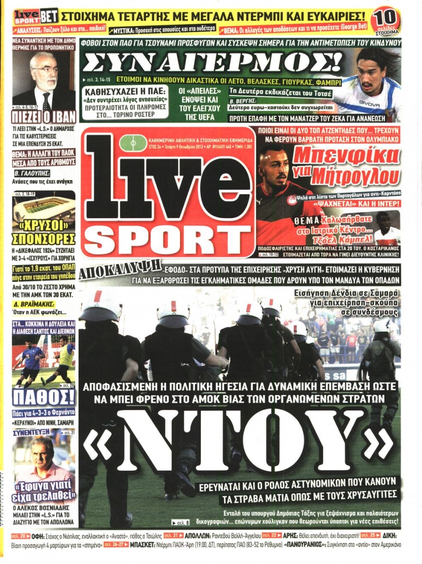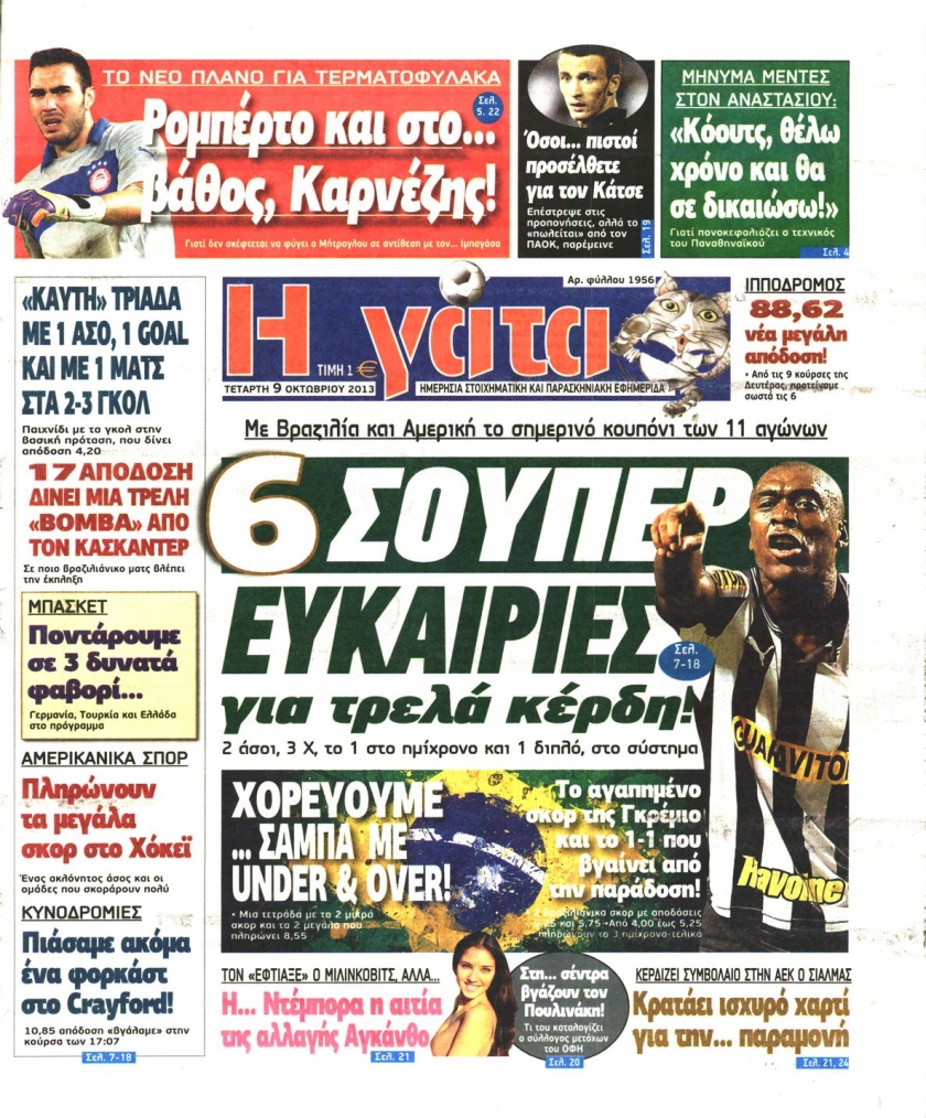 Οι αθλητικές εφημερίδες Enikos Newsroom 08:31, Τετάρτη 09 Οκτωβρίου 2013 Media Οι αθλητικές εφημερίδες ΑΘΛΗΤΙΚΕΣ ΕΦΗΜΕΡΙΔΕΣ ΕΦΗΜΕΡΙΔΕΣ ΠΡΩΤΟΣΕΛΙΔΑ Μοιράσου το: σχολίασε κι εσύ (0 σχόλια) Ακολουθήστε το enikos.gr στο Google News και μάθετε πρώτοι όλες τις ειδήσεις Δείτε όλες τις τελευταίες ειδήσεις από την Ελλάδα και τον Κόσμο στο enikos.gr Ειδήσεις Ροή Ειδήσεων 3 ώρες πριν Ακίλα Σάλεχ: «Άκυρο» το τουρκολιβυκό μνημόνιο λέει ο πρόεδρος της λιβυκής Βουλής – Ανοίγει ο διάλογος με Ελλάδα, Αίγυπτο και Τουρκία 7 ώρες πριν Αγρότες: Την Τρίτη η απόφαση για διάλογο ή κλιμάκωση των κινητοποιήσεών τους – Πώς χαρακτηρίζουν τις ανακοινώσεις Τσιάρα και οι επόμενες κινήσεις 7 ώρες πριν Τραμπ για Ουκρανία: «Είμαστε πιο κοντά σε συμφωνία από ποτέ» – «Πολυεθνική δύναμη» προτείνουν οι Ευρωπαίοι 7 ώρες πριν Κυψέλη: Η 16χρονη που μαχαίρωσε την 14χρονη είχε συλληφθεί 3 φορές στο παρελθόν – Έβριζε καθηγητές, έβαζε φωτιές σε κάδους και εκβίαζε συμμαθητές της 6 ώρες πριν Τρομοκρατική επίθεση στο Σίδνεϊ: Θλίψη για τα 15 θύματα – Οργή στην εβραϊκή κοινότητα που προειδοποιούσε επί δύο χρόνια 7 ώρες πριν Επιστήμονες ίσως έλυσαν το μυστήριο γύρω από τα Χόμπιτ – Νέα έρευνα αποκαλύπτει πώς εξαφανίστηκαν 8 ώρες πριν Ύπνος: Η αρχαία μορφή άσκησης που αποδεικνύεται αποτελεσματική στην αντιμετώπιση της αϋπνίας, σύμφωνα με μελέτη 9 ώρες πριν Αριθμολογία: Ο τυχερός σας αριθμός, ανάλογα με τον μήνα γέννησής σας 10 ώρες πριν Πώς να μην μαραίνονται γρήγορα τα κομμένα λουλούδια: Το λάθος στην τοποθέτηση του βάζου που πρέπει να αποφεύγετε 4 λεπτά πριν Οι αθλητικές εφημερίδες 16/12/2025 9 λεπτά πριν Οι πολιτικές εφημερίδες 16/12/2025 17 λεπτά πριν Τα ζώδια σήμερα, Τρίτη 16 Δεκεμβρίου: Ιχθύες, δεν χρειάζεται να έχετε όλες τις απαντήσεις 25 λεπτά πριν Εφημερεύοντα φαρμακεία σε Αθήνα και Θεσσαλονίκη (16/12) 32 λεπτά πριν Οκτώ νεκροί σε πλήγματα των ΗΠΑ κατά τριών σκαφών που φέρεται να μετέφεραν ναρκωτικά στον Ανατολικό Ειρηνικό ENIKOS NETWORK Πότε το χρόνιο ροχαλητό να αποτελέσει ένδειξη κινδύνου για την καρδιά; Τι λένε οι ειδικοί Μάριος Θεμιστοκλέους: Το ΕΣΥ ενισχύεται, εκσυγχρονίζεται, αλλάζει ΕΒΕΠ για αγροτικές κινητοποιήσεις: Κάθε επιπλέον εβδομάδα προσθέτει περίπου 200 εκατ. ευρώ ζημιά Τι προβλέπει το νομοσχέδιο του υπουργείου Εθνικής Άμυνας – Oι αλλαγές στους μισθούς Σύγχρονος Νοστράδαμος: Προειδοποιεί για «μεγάλο γεγονός» τους επόμενους μήνες που θα συγκλονίσει τη Βρετανία και τον κόσμο Τεστ παρατηρητικότητας: Μπορείτε να βρείτε τις 3 διαφορές στις εικόνες με έναν πιγκουίνο σε 14 δευτερόλεπτα περισσότερα 05:43 , Τρίτη 16 Δεκεμβρίου 2025 Οι αθλητικές εφημερίδες 16/12/2025 Διαβάστε τα πρωτοσέλιδα από τις αθλητικές εφημερίδες, σήμερα 16/12/2025. 05:38 , Τρίτη 16 Δεκεμβρίου 2025 Οι πολιτικές εφημερίδες 16/12/2025 Διαβάστε τα πρωτοσέλιδα από τις πολιτικές εφημερίδες, σήμερα 16/12/2025. 21:35 , Δευτέρα 15 Δεκεμβρίου 2025 Το Σπίτι Δίπλα Στο Ποτάμι: Η Ιουλία και ο Φωκάς μετακομίζουν στη Ρόδο – Δύο νέοι χαρακτήρες μπαίνουν στη σειρά Δύο νέοι, κομβικοί χαρακτήρες κάνουν την εμφάνισή τους αυτή την εβδομάδα στην αγαπημένη σειρά ... 19:46 , Δευτέρα 15 Δεκεμβρίου 2025 Άγιος έρωτας: Η Χριστίνα λέει την αλήθεια στον Αντρέα Ο Βασίλης δέχεται επίθεση από τους συμμαθητές του, η Αναστασία είναι συντετριμμένη με την απώλ... ΤΕΛΕΥΤΑΙΕΣ ΕΙΔΗΣΕΙΣ 4 λεπτά πριν Οι αθλητικές εφημερίδες 16/12/2025 9 λεπτά πριν Οι πολιτικές εφημερίδες 16/12/2025 17 λεπτά πριν Τα ζώδια σήμερα, Τρίτη 16 Δεκεμβρίου: Ιχθύες, δεν..