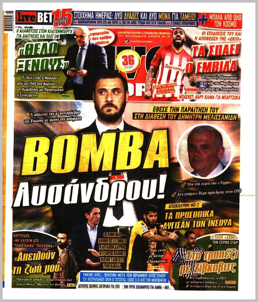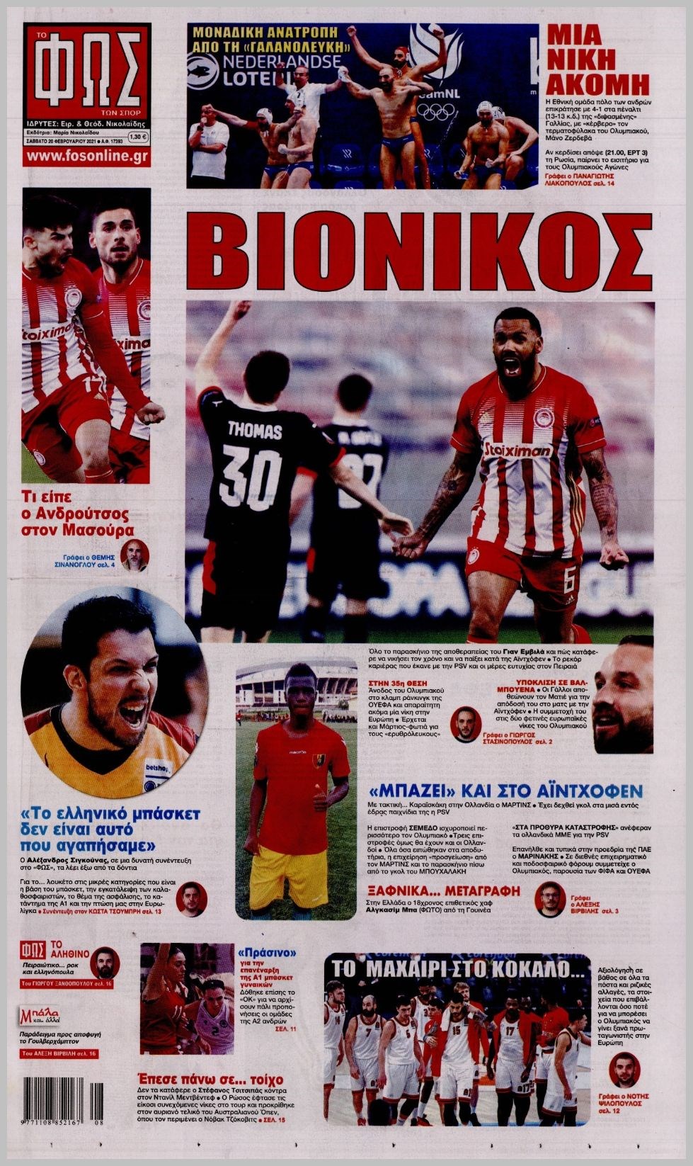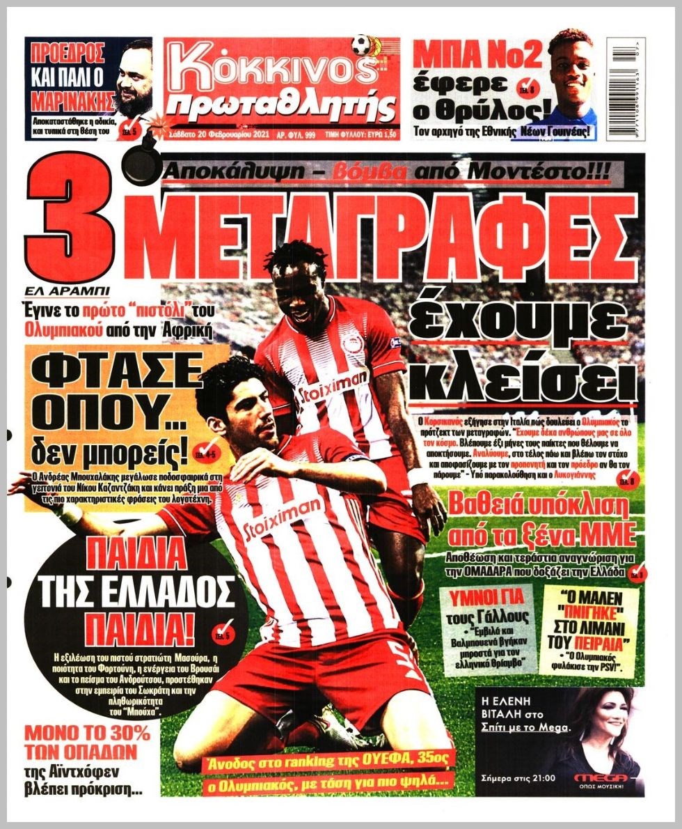 Οι αθλητικές εφημερίδες 20/2/2021 Διονύσης Νίκκας 07:51, Σάββατο 20 Φεβρουαρίου 2021 Media Διαβάστε τα πρωτοσέλιδα των αθλητικών εφημερίδων… ΑΘΛΗΤΙΚΕΣ ΕΦΗΜΕΡΙΔΕΣ Μοιράσου το: σχολίασε κι εσύ (0 σχόλια) Ακολουθήστε το enikos.gr στο Google News και μάθετε πρώτοι όλες τις ειδήσεις Δείτε όλες τις τελευταίες ειδήσεις από την Ελλάδα και τον Κόσμο στο enikos.gr Ειδήσεις Ροή Ειδήσεων 3 ώρες πριν Χριστούγεννα στα μπλόκα: Επιμένουν στις κινητοποιήσεις τους οι αγρότες – Ανοίγουν τα διόδια το Σαββατοκύριακο 3 ώρες πριν Ουκρανία: Η άνευ προηγουμένου επίθεση σε ρωσικό τάνκερ στη Μεσόγειο και το μήνυμα προς στον Πούτιν – Το «μακρύ χέρι» του Κιέβου 2 ώρες πριν Πούτιν: Τα μηνύματα σε Ευρώπη και ΝΑΤΟ από το μαραθώνιο «σόου» του – Η απαίτηση για «σεβασμό» και η ειρήνη «με τους όρους» της Μόσχας 3 ώρες πριν Τραμπ: Δεν αποκλείει την πιθανότητα ενός πολέμου στη Βενεζουέλα – «Ο Μαδούρο ξέρει καλύτερα από τον καθένα τι ακριβώς θέλω» 4 ώρες πριν Συνεχίζει να προκαλεί ο Μίτσκοσκι: «Για μένα το όνομα Μακεδονία είναι ιερό» 2 ώρες πριν Ανακαλύφθηκαν αρχαία χρυσά νομίσματα 2.200 ετών που απεικονίζουν τον θεό Απόλλωνα – Η άγνωστη σύνδεση με τον Φίλιππο Β΄ της Μακεδονίας 3 ώρες πριν Ύπνος: Μια κρυφή κατάσταση του εγκεφάλου πριν από τον ύπνο μπορεί να είναι το “κλειδί” για υψηλή ευφυΐα και δημιουργικότητα 4 ώρες πριν Αριθμολογία: Οι άνθρωποι που έχουν γεννηθεί αυτές τις 4 ημερομηνίες, συχνά παρεξηγούνται – «Η καλοσύνη τους κρύβει τεράστια δύναμη» 5 ώρες πριν Ξεχάστε το καθάρισμα το Σαββατοκύριακο: Ο «κανόνας των 20 λεπτών» που θα σας λύσει τα χέρια 19 λεπτά πριν Συρία: Μαζικά πλήγματα των ΗΠΑ σε θέσεις του Ισλαμικού Κράτους – Χέγκσεθ: «Δεν είναι αρχή πολέμου, είναι μια δήλωση εκδίκησης» για το θάνατο των στρατιωτών μας 32 λεπτά πριν Ουκρανία: Ολοκληρώθηκαν οι συνομιλίες με τους Αμερικανούς κι Ευρωπαίους διαπραγματευτές 47 λεπτά πριν Μπαρτσελόνα – Μπασκόνια 134-124: Οι «μπλαουγκράνα» πήραν το ματς της χρονιάς ύστερα από τρεις παρατάσεις 1 ώρα πριν Φαίη Σκορδά: «Παλιότερα τα κομπλιμέντα τα προσπερνούσα, τώρα τα έχω ανάγκη» 1 ώρα πριν Βασίλης Σπανούλης: Δεν εμφανίστηκε ούτε ένας δημοσιογράφος στην συνέντευξη Τύπου – «Καλησπέρα στον… κανέναν», δείτε βίντεο ENIKOS NETWORK Το ΕΚΑΒ τιμήθηκε από την Ακαδημία Αθηνών για τα 40 χρόνια προσφοράς του Έχετε πραγματικά μεγάλη καρδιά; 10 χαρακτηριστικά όσων έχουν καλοσύνη Αναστολή μέτρων αναγκαστικής εκτέλεσης για κτηνοτρόφους που πλήττονται από την ευλογιά των αιγοπροβάτων Πλήρης επάρκεια προϊόντων στις λαϊκές της Αττικής, παρά τις αγροτικές κινητοποιήσεις – Τι απαντούν οι πωλητές Χαρτογραφώντας το «σημείο χωρίς επιστροφή»: Για πρώτη φορά αποκαλύπτεται με λεπτομέρεια το ακανθώδες όριο της ατμόσφαιρας τ... Η Google καταργεί τη λειτουργία «dark web report» – Πώς θα μπορούν οι χρήστες να διαγράφουν τα δεδομένα τους περισσότερα 22:42 , Παρασκευή 19 Δεκεμβρίου 2025 Γιώργος Γιαννόπουλος για “Το σόι σου”: “Είναι ευτυχία και ευλογία αυτή η σειρά” «Είναι ευτυχία και ευλογία η συγκυρία αυτής της σειράς», θα πει ο Γιώργος Γιαννόπουλος -ο αγαπ... 20:37 , Παρασκευή 19 Δεκεμβρίου 2025 Don’t Forget The Lyrics: Η Έλλη Κοκκίνου υποδέχεται 4 παίκτες που θα κάνουν τα πάντα για να μη χάσουν ούτε… μισή λέξη από τους στίχους Το «Don’t Forget The Lyrics» επιστρέφει απόψε, Παρασκευή 19 Δεκεμβρίου, στις 21:00 με νέο επει... 19:31 , Παρασκευή 19 Δεκεμβρίου 2025 GNTM: Απόψε ο μεγάλος τελικός για τους 4 φιναλίστ Έπειτα από μήνες γεμάτους μόδα, δ