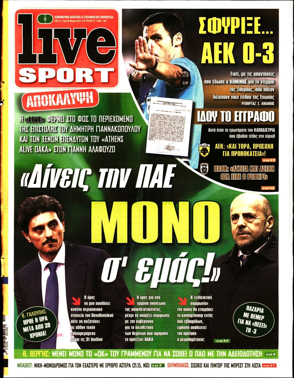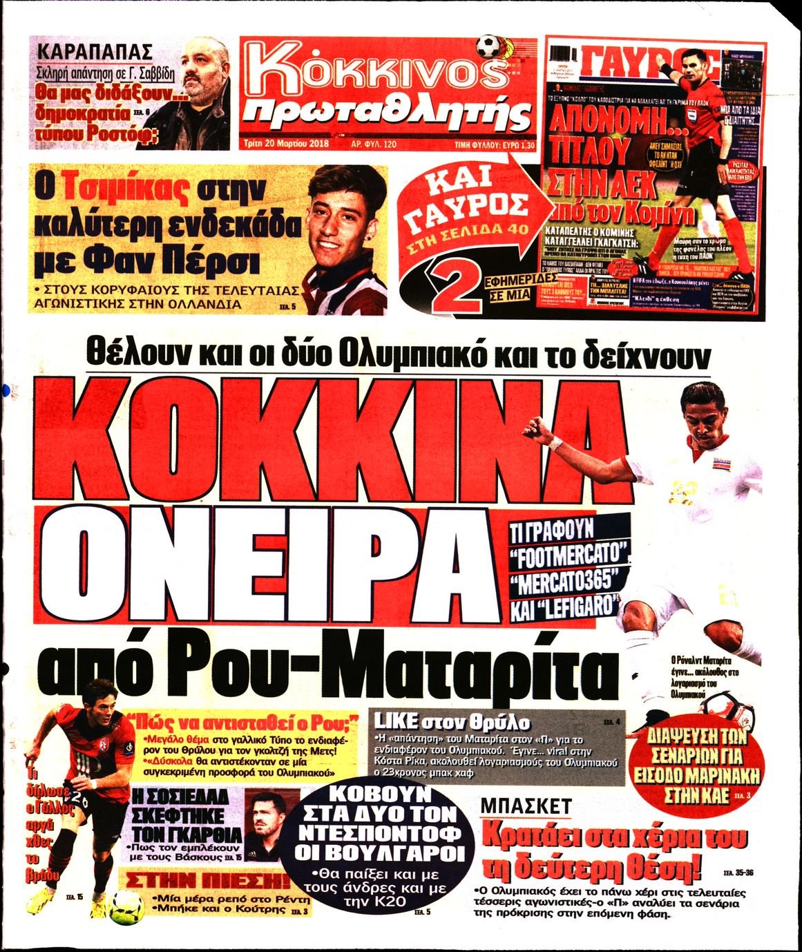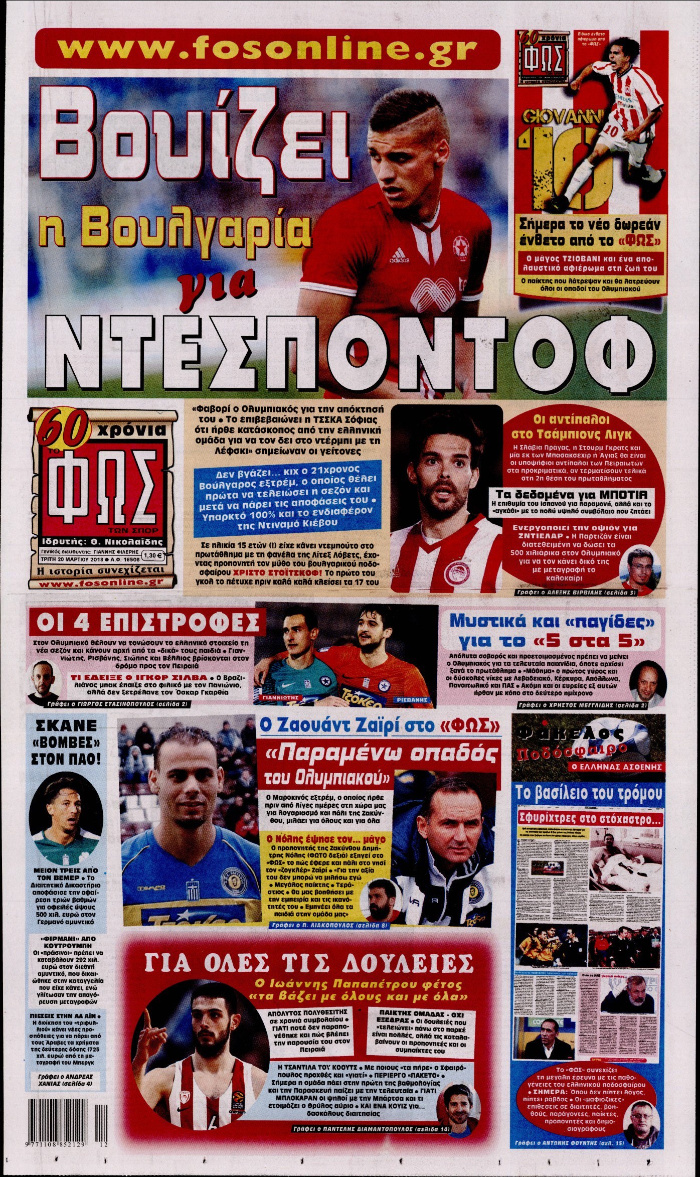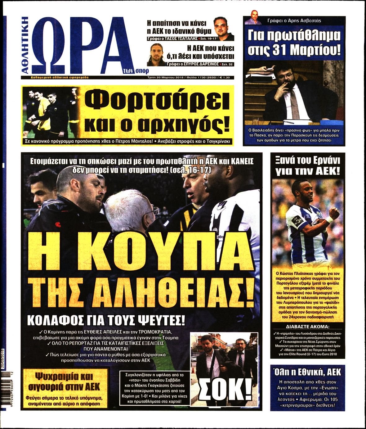 Οι αθλητικές εφημερίδες 20/3/2018 Enikos Newsroom 07:22, Τρίτη 20 Μαρτίου 2018 Media Διαβάστε τα σημερινά πρωτοσέλιδα των αθλητικών εφημερίδων: ΑΘΛΗΤΙΚΕΣ ΕΦΗΜΕΡΙΔΕΣ ΠΡΩΤΟΣΕΛΙΔΑ Μοιράσου το: σχολίασε κι εσύ (0 σχόλια) Ακολουθήστε το enikos.gr στο Google News και μάθετε πρώτοι όλες τις ειδήσεις Δείτε όλες τις τελευταίες ειδήσεις από την Ελλάδα και τον Κόσμο στο enikos.gr Ειδήσεις Ροή Ειδήσεων 5 ώρες πριν Μεσόγειος: Η διαδρομή του ρωσικού τάνκερ «Qendil» και η στοχευμένη επίθεση της Ουκρανίας με drone – Ο Πούτιν προειδοποίησε για αντίποινα 1 ώρα πριν Αγρότες: Έκλεισαν για μία ώρα την παρακαμπτήρια της Ιόνιας Οδού στη θέση Χαλίκι 3 ώρες πριν Εμπλοκή και αερομαχίες με οπλισμένα τουρκικά F-16 στο Αιγαίο 3 ώρες πριν Πούτιν: «Ναι, είμαι ερωτευμένος» – Βίντεο από τη σπάνια προσωπική παραδοχή του 1 ώρα πριν Ανδρέας Λυκουρέντζος: Υπέβαλε την παραίτησή του ο πρόεδρος του ΕΛΓΑ, αλλά δεν έγινε δεκτή – Όλο το παρασκήνιο 1 ώρα πριν Αριθμολογία: Οι άνθρωποι που έχουν γεννηθεί αυτές τις 4 ημερομηνίες, συχνά παρεξηγούνται – «Η καλοσύνη τους κρύβει τεράστια δύναμη» 3 ώρες πριν Μήπως έχετε χάσει τον εαυτό σας στη σχέση σας; 7 «αθόρυβες» υποχωρήσεις που μάλλον κάνατε, χωρίς να το συνειδητοποιήσετε 2 ώρες πριν Ξεχάστε το καθάρισμα το Σαββατοκύριακο: Ο «κανόνας των 20 λεπτών» που θα σας λύσει τα χέρια 5 ώρες πριν Κουίζ για την παλιά Αθήνα: Αναγνωρίζετε την περιοχή; Έχετε περάσει 100% από εκεί 8 λεπτά πριν Βασίλης Καρράς: «Είναι πάντα δίπλα μου, δεν έφυγε…», λέει ο αδελφός του 12 λεπτά πριν Ουκρανία: Η άνευ προηγουμένου επίθεση σε ρωσικό τάνκερ στη Μεσόγειο και το μήνυμα προς στον Πούτιν – Το «μακρύ χέρι» του Κιέβου 18 λεπτά πριν Τραμπ: Δεν αποκλείει την πιθανότητα ενός πολέμου στη Βενεζουέλα – «Ο Μαδούρο ξέρει καλύτερα από τον καθένα τι ακριβώς θέλω» 19 λεπτά πριν Κηφισιά: Με πολλές απουσίες κόντρα στον Ολυμπιακό – «Last dance» για τον Τεττέη 27 λεπτά πριν Ύπνος: Μια κρυφή κατάσταση του εγκεφάλου πριν από τον ύπνο μπορεί να είναι το “κλειδί” για υψηλή ευφυΐα και δημιουργικότητα ENIKOS NETWORK Το ΕΚΑΒ τιμήθηκε από την Ακαδημία Αθηνών για τα 40 χρόνια προσφοράς του Έχετε πραγματικά μεγάλη καρδιά; 10 χαρακτηριστικά όσων έχουν καλοσύνη ΑΑΔΕ: Νέες αναβαθμίσεις στο Ψηφιακό Πελατολόγιο και την εφαρμογή myDATAapp – Τι πρέπει να γνωρίζετε Όμιλος ΔΕΗ: Νέα ορόσημα και ενισχυμένη διαφάνεια στην ετήσια Έκθεση Βιώσιμης Ανάπτυξης Χαρτογραφώντας το «σημείο χωρίς επιστροφή»: Για πρώτη φορά αποκαλύπτεται με λεπτομέρεια το ακανθώδες όριο της ατμόσφαιρας τ... Η Google καταργεί τη λειτουργία «dark web report» – Πώς θα μπορούν οι χρήστες να διαγράφουν τα δεδομένα τους περισσότερα 20:37 , Παρασκευή 19 Δεκεμβρίου 2025 Don’t Forget The Lyrics: Η Έλλη Κοκκίνου υποδέχεται 4 παίκτες που θα κάνουν τα πάντα για να μη χάσουν ούτε… μισή λέξη από τους στίχους Το «Don’t Forget The Lyrics» επιστρέφει απόψε, Παρασκευή 19 Δεκεμβρίου, στις 21:00 με νέο επει... 19:31 , Παρασκευή 19 Δεκεμβρίου 2025 GNTM: Απόψε ο μεγάλος τελικός για τους 4 φιναλίστ Έπειτα από μήνες γεμάτους μόδα, δημιουργία και έντονες αναμετρήσεις, το GNTM 2025 κορυφώνεται,... 18:11 , Παρασκευή 19 Δεκεμβρίου 2025 Το σόι σου: Ο Άρης έρχεται στην Ελλάδα για τις γιορτές των Χριστουγέννων – Τι θα δούμε στο αποψινό εορταστικό επεισόδιο Ένα απολαυστικό, εορταστικό επεισόδιο της σειράς “Το σόι σου”, γεμάτο ευτράπελα αλ... 15:15 , Παρασκευή 19 Δεκεμβρίου 2025 Την Κυριακή με τη Realnews: Ό,τι και αν αγοράσεις, σκανάρεις και κερδίζεις! Την Κυριακή με τη Realnews: Ό,τι και αν αγοράσε