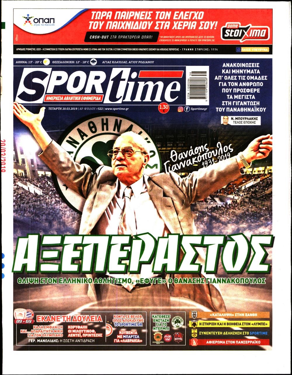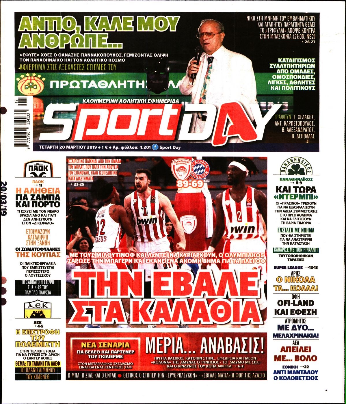 Οι αθλητικές εφημερίδες 20/3/2019 Enikos Newsroom 06:49, Τετάρτη 20 Μαρτίου 2019 Media Διαβάστε τα πρωτοσέλιδα των αθλητικών εφημερίδων: ΑΘΛΗΤΙΚΕΣ ΕΦΗΜΕΡΙΔΕΣ ΠΡΩΤΟΣΕΛΙΔΑ Μοιράσου το: σχολίασε κι εσύ (0 σχόλια) Ακολουθήστε το enikos.gr στο Google News και μάθετε πρώτοι όλες τις ειδήσεις Δείτε όλες τις τελευταίες ειδήσεις από την Ελλάδα και τον Κόσμο στο enikos.gr Ειδήσεις Ροή Ειδήσεων 10 λεπτά πριν Υπόθεση Έπσταϊν: Το Υπουργείο Δικαιοσύνης δημοσιοποίησε μια σειρά από εξαιρετικά επεξεργασμένα αρχεία – «Λείπουν τα πιο σημαντικά έγγραφα», λένε οι Δημοκρατικοί 2 ώρες πριν Σαρωτικοί οι έλεγχοι στους δρόμους ενόψει εορτών – Μπλόκα της τροχαίας σε κεντρικές αρτηρίες της Αττικής 20 λεπτά πριν ΟΝΕΧ – MEGATUGS: Ξεκίνησε η ναυπήγηση ρυμουλκών στην Ελλάδα – Προθάλαμος πολεμικών πλοίων – Δείτε φωτογραφίες και βίντεο 9 ώρες πριν Χριστούγεννα στα μπλόκα: Επιμένουν στις κινητοποιήσεις τους οι αγρότες – Ανοίγουν τα διόδια το Σαββατοκύριακο 9 ώρες πριν Πούτιν: Τα μηνύματα σε Ευρώπη και ΝΑΤΟ από το μαραθώνιο «σόου» του – Η απαίτηση για «σεβασμό» και η ειρήνη «με τους όρους» της Μόσχας 2 ώρες πριν Αυγά: Πόσα μπορείτε να τρώτε την ημέρα με ασφάλεια για μέγιστη πρόσληψη πρωτεΐνης 2 ώρες πριν Τα ζώδια σήμερα, Σάββατο 20 Δεκεμβρίου: Παρθένοι, το σύμπαν σας δίνει το κλειδί 9 ώρες πριν Ανακαλύφθηκαν αρχαία χρυσά νομίσματα 2.200 ετών που απεικονίζουν τον θεό Απόλλωνα – Η άγνωστη σύνδεση με τον Φίλιππο Β΄ της Μακεδονίας 2 ώρες πριν Οπτική ψευδαίσθηση: Μόνο αν είσαι ο Σέρλοκ Χολμς θα βρεις τον αριθμό «87» σε 7 δευτερόλεπτα 4 λεπτά πριν ΗΠΑ: Τέσσερις μετανάστες πέθαναν σε κέντρα κράτησης – Αύξηση θανάτων σε επίπεδο ρεκόρ το 2025 10 λεπτά πριν Υπόθεση Έπσταϊν: Το Υπουργείο Δικαιοσύνης δημοσιοποίησε μια σειρά από εξαιρετικά επεξεργασμένα αρχεία – «Λείπουν τα πιο σημαντικά έγγραφα», λένε οι Δημοκρατικοί 13 λεπτά πριν Καιρός: Αλλαγή σκηνικού σήμερα με βροχές και πτώση της θερμοκρασίας – Οι προβλέψεις των μετεωρολόγων για τα Χριστούγεννα 20 λεπτά πριν ΟΝΕΧ – MEGATUGS: Ξεκίνησε η ναυπήγηση ρυμουλκών στην Ελλάδα – Προθάλαμος πολεμικών πλοίων – Δείτε φωτογραφίες και βίντεο 29 λεπτά πριν Φοινικούντα: Σήμερα απολογείται ο 30χρονος γιος γνωστού επιχειρηματία της Πλάκας ENIKOS NETWORK Το τεστ των 10 δευτερολέπτων που μπορεί να προβλέψει το προσδόκιμο ζωής σας – Τι λέει ειδικός του Cleveland Επιλέξτε καρέκλα για να μάθετε ποια είναι τα κρυφά χαρακτηριστικά σας – Τι αποκάλυψε για εσάς αυτό το τεστ προσωπικότητας; Αναστολή μέτρων αναγκαστικής εκτέλεσης για κτηνοτρόφους που πλήττονται από την ευλογιά των αιγοπροβάτων Πλήρης επάρκεια προϊόντων στις λαϊκές της Αττικής, παρά τις αγροτικές κινητοποιήσεις – Τι απαντούν οι πωλητές Χαρτογραφώντας το «σημείο χωρίς επιστροφή»: Για πρώτη φορά αποκαλύπτεται με λεπτομέρεια το ακανθώδες όριο της ατμόσφαιρας τ... Η Google καταργεί τη λειτουργία «dark web report» – Πώς θα μπορούν οι χρήστες να διαγράφουν τα δεδομένα τους περισσότερα 05:48 , Σάββατο 20 Δεκεμβρίου 2025 Οι οικονομικές εφημερίδες 20/12/2025 Διαβάστε τα πρωτοσέλιδα από τις οικονομικές εφημερίδες, σήμερα 20/12/2025. 05:43 , Σάββατο 20 Δεκεμβρίου 2025 Οι αθλητικές εφημερίδες 20/12/2025 Διαβάστε τα πρωτοσέλιδα από τις αθλητικές εφημερίδες, σήμερα 20/12/2025. 05:38 , Σάββατο 20 Δεκεμβρίου 2025 Οι πολιτικές εφημερίδες 20/12/2025 Διαβάστε τα πρωτοσέλιδα από τις πολιτικές εφημερίδες, σήμερα 20/12/2025. 04:20 , Σάββατο 20 Δεκεμβρίου 2025 Αγγελική Νικολούλη: Τα συλλυπητήρια για την απώλεια της Ειρ
