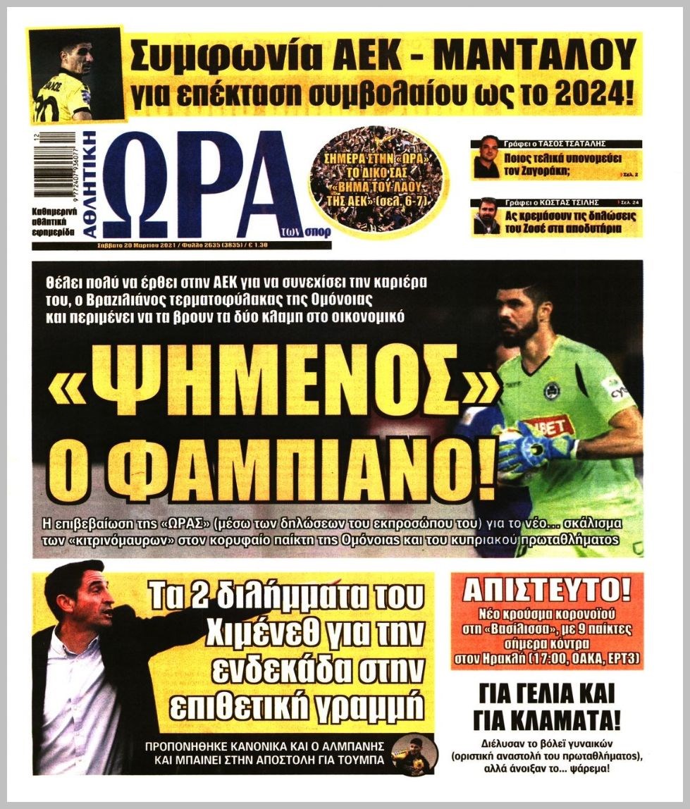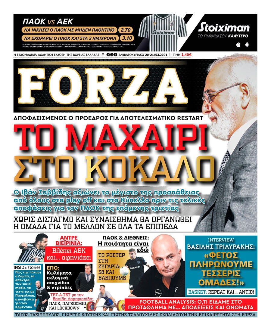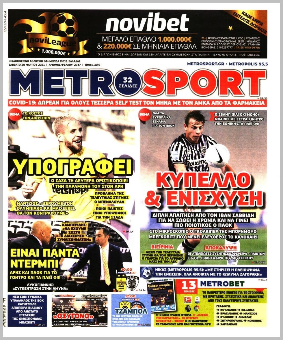 Οι αθλητικές εφημερίδες 20/3/2021 Διονύσης Νίκκας 08:01, Σάββατο 20 Μαρτίου 2021 Media Διαβάστε τα πρωτοσέλιδα των αθλητικών εφημερίδων… ΑΘΛΗΤΙΚΕΣ ΕΦΗΜΕΡΙΔΕΣ Μοιράσου το: σχολίασε κι εσύ (0 σχόλια) Ακολουθήστε το enikos.gr στο Google News και μάθετε πρώτοι όλες τις ειδήσεις Δείτε όλες τις τελευταίες ειδήσεις από την Ελλάδα και τον Κόσμο στο enikos.gr Ειδήσεις Ροή Ειδήσεων 4 ώρες πριν Από το Ορμένιο ως τα Μάλγαρα κι από τη Σιάτιστα μέχρι τη Νίκαια: Μπλόκα σε όλη την Ελλάδα – Το Σάββατο ανοίγουν τα διόδια οι αγρότες 1 ώρα πριν Εμπλοκή και αερομαχίες με οπλισμένα τουρκικά F-16 στο Αιγαίο 3 ώρες πριν Αττική: Θρίλερ με νεκρό βρέφος 5 μηνών – Κοιμόταν στο ίδιο κρεβάτι με τους γονείς του 58 λεπτά πριν Πούτιν: «Ναι, είμαι ερωτευμένος» – Βίντεο από τη σπάνια προσωπική παραδοχή του 3 ώρες πριν Μεσόγειος: Η διαδρομή του ρωσικού τάνκερ «Qendil» και η στοχευμένη επίθεση της Ουκρανίας με drone – Ο Πούτιν προειδοποίησε για αντίποινα 5 ώρες πριν Τα 5 ζώδια που ευνοούνται στην ερωτική ζωή τους την επόμενη εβδομάδα – «Η ενέργεια του Αιγόκερου φέρνει αγάπη και σταθερότητα» 6 ώρες πριν Αυτό το έξυπνο μαθηματικό κόλπο θα μπορούσε να αλλάξει τον τρόπο με τον οποίο οι επιστήμονες μελετούν τους σεισμούς 2 ώρες πριν Μήπως έχετε χάσει τον εαυτό σας στη σχέση σας; 7 «αθόρυβες» υποχωρήσεις που μάλλον κάνατε, χωρίς να το συνειδητοποιήσετε 4 ώρες πριν Κουίζ για την παλιά Αθήνα: Αναγνωρίζετε την περιοχή; Έχετε περάσει 100% από εκεί 5 λεπτά πριν Μπαράκ Ομπάμα: Τα βιβλία, οι ταινίες και τα τραγούδια που ξεχώρισε το 2025 – Πλήρης λίστα 9 λεπτά πριν Don’t Forget The Lyrics: Η Έλλη Κοκκίνου υποδέχεται 4 παίκτες που θα κάνουν τα πάντα για να μη χάσουν ούτε… μισή λέξη από τους στίχους 15 λεπτά πριν Πλεύρης στον ΑΝΤ1: Η βασική πολιτική που ψηφίστηκε από τους υπουργούς Μετανάστευσης είναι η δημιουργία κέντρων κράτησης μεταναστών στην Αφρική – ΒΙΝΤΕΟ 20 λεπτά πριν Η εξομολόγηση της Νίκης Σερέτη: «Δεν κρύβω ότι ήταν πάρα πολύ δύσκολο όλο αυτό που βίωσα» 25 λεπτά πριν Αγρότες: Κλειστό ξανά το ρεύμα εισόδου στα Μάλγαρα – Άνοιξαν τον κόμβο της Χαλκηδόνας ENIKOS NETWORK Έχετε πραγματικά μεγάλη καρδιά; 10 χαρακτηριστικά όσων έχουν καλοσύνη «Η σούπερ» γρίπη εξαπλώνεται στην Ευρώπη-Στοιχεία από το ECDC για την αποτελεσματικότητα του εμβολίου Επίδομα παιδιού: Πότε ανοίγει ξανά η πλατφόρμα για τις αιτήσεις Προκήρυξη ΑΣΕΠ για 397 μόνιμες προσλήψεις στο Δημόσιο: Βγήκαν τα προσωρινά αποτελέσματα – Πότε αρχίζει η υποβολή ενστάσεων Χαρτογραφώντας το «σημείο χωρίς επιστροφή»: Για πρώτη φορά αποκαλύπτεται με λεπτομέρεια το ακανθώδες όριο της ατμόσφαιρας τ... Η Google καταργεί τη λειτουργία «dark web report» – Πώς θα μπορούν οι χρήστες να διαγράφουν τα δεδομένα τους περισσότερα 20:37 , Παρασκευή 19 Δεκεμβρίου 2025 Don’t Forget The Lyrics: Η Έλλη Κοκκίνου υποδέχεται 4 παίκτες που θα κάνουν τα πάντα για να μη χάσουν ούτε… μισή λέξη από τους στίχους Το «Don’t Forget The Lyrics» επιστρέφει απόψε, Παρασκευή 19 Δεκεμβρίου, στις 21:00 με νέο επει... 19:31 , Παρασκευή 19 Δεκεμβρίου 2025 GNTM: Απόψε ο μεγάλος τελικός για τους 4 φιναλίστ Έπειτα από μήνες γεμάτους μόδα, δημιουργία και έντονες αναμετρήσεις, το GNTM 2025 κορυφώνεται,... 18:11 , Παρασκευή 19 Δεκεμβρίου 2025 Το σόι σου: Ο Άρης έρχεται στην Ελλάδα για τις γιορτές των Χριστουγέννων – Τι θα δούμε στο αποψινό εορταστικό επεισόδιο Ένα απολαυστικό, εορταστικό επεισόδιο της σειράς “Το σόι σου”, γεμάτο ευτράπελα αλ... 15:15 , Παρασκευή 19 Δεκεμβρίου 2025 Την Κυριακή με τη Realnews: 