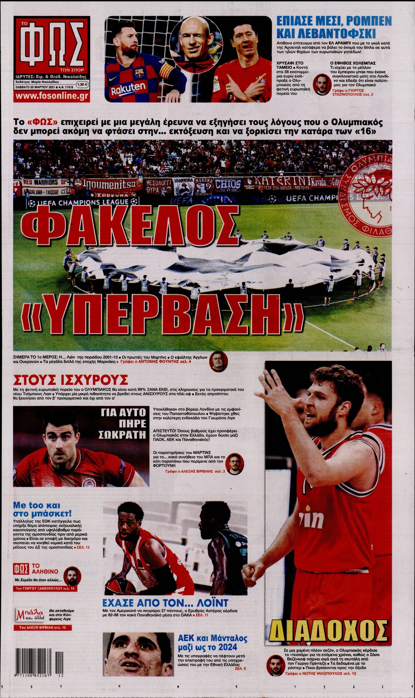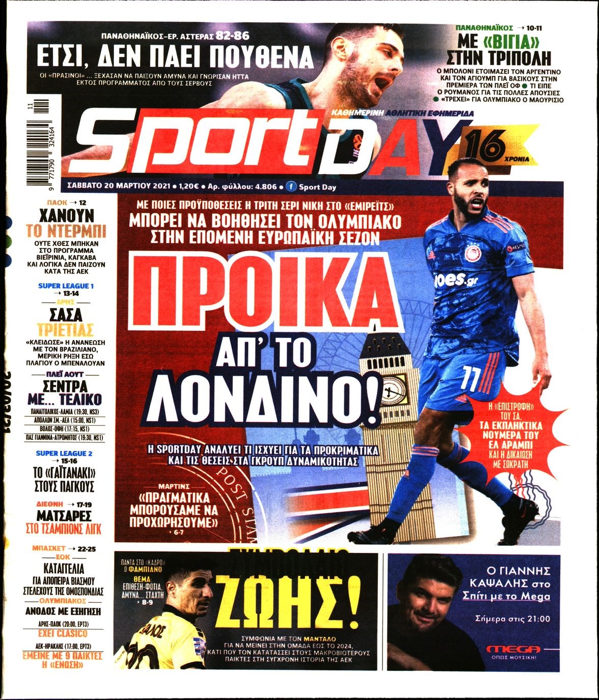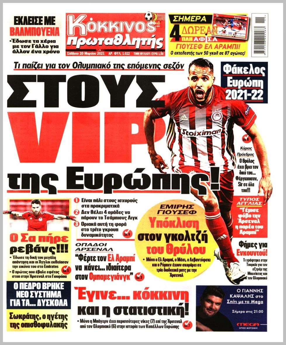 Οι αθλητικές εφημερίδες 20/3/2021 Διονύσης Νίκκας 08:01, Σάββατο 20 Μαρτίου 2021 Media Διαβάστε τα πρωτοσέλιδα των αθλητικών εφημερίδων… ΑΘΛΗΤΙΚΕΣ ΕΦΗΜΕΡΙΔΕΣ Μοιράσου το: σχολίασε κι εσύ (0 σχόλια) Ακολουθήστε το enikos.gr στο Google News και μάθετε πρώτοι όλες τις ειδήσεις Δείτε όλες τις τελευταίες ειδήσεις από την Ελλάδα και τον Κόσμο στο enikos.gr Ειδήσεις Ροή Ειδήσεων 4 ώρες πριν Από το Ορμένιο ως τα Μάλγαρα κι από τη Σιάτιστα μέχρι τη Νίκαια: Μπλόκα σε όλη την Ελλάδα – Το Σάββατο ανοίγουν τα διόδια οι αγρότες 1 ώρα πριν Εμπλοκή και αερομαχίες με οπλισμένα τουρκικά F-16 στο Αιγαίο 3 ώρες πριν Αττική: Θρίλερ με νεκρό βρέφος 5 μηνών – Κοιμόταν στο ίδιο κρεβάτι με τους γονείς του 58 λεπτά πριν Πούτιν: «Ναι, είμαι ερωτευμένος» – Βίντεο από τη σπάνια προσωπική παραδοχή του 3 ώρες πριν Μεσόγειος: Η διαδρομή του ρωσικού τάνκερ «Qendil» και η στοχευμένη επίθεση της Ουκρανίας με drone – Ο Πούτιν προειδοποίησε για αντίποινα 5 ώρες πριν Τα 5 ζώδια που ευνοούνται στην ερωτική ζωή τους την επόμενη εβδομάδα – «Η ενέργεια του Αιγόκερου φέρνει αγάπη και σταθερότητα» 6 ώρες πριν Αυτό το έξυπνο μαθηματικό κόλπο θα μπορούσε να αλλάξει τον τρόπο με τον οποίο οι επιστήμονες μελετούν τους σεισμούς 2 ώρες πριν Μήπως έχετε χάσει τον εαυτό σας στη σχέση σας; 7 «αθόρυβες» υποχωρήσεις που μάλλον κάνατε, χωρίς να το συνειδητοποιήσετε 4 ώρες πριν Κουίζ για την παλιά Αθήνα: Αναγνωρίζετε την περιοχή; Έχετε περάσει 100% από εκεί 5 λεπτά πριν Μπαράκ Ομπάμα: Τα βιβλία, οι ταινίες και τα τραγούδια που ξεχώρισε το 2025 – Πλήρης λίστα 9 λεπτά πριν Don’t Forget The Lyrics: Η Έλλη Κοκκίνου υποδέχεται 4 παίκτες που θα κάνουν τα πάντα για να μη χάσουν ούτε… μισή λέξη από τους στίχους 15 λεπτά πριν Πλεύρης στον ΑΝΤ1: Η βασική πολιτική που ψηφίστηκε από τους υπουργούς Μετανάστευσης είναι η δημιουργία κέντρων κράτησης μεταναστών στην Αφρική – ΒΙΝΤΕΟ 20 λεπτά πριν Η εξομολόγηση της Νίκης Σερέτη: «Δεν κρύβω ότι ήταν πάρα πολύ δύσκολο όλο αυτό που βίωσα» 25 λεπτά πριν Αγρότες: Κλειστό ξανά το ρεύμα εισόδου στα Μάλγαρα – Άνοιξαν τον κόμβο της Χαλκηδόνας ENIKOS NETWORK Έχετε πραγματικά μεγάλη καρδιά; 10 χαρακτηριστικά όσων έχουν καλοσύνη «Η σούπερ» γρίπη εξαπλώνεται στην Ευρώπη-Στοιχεία από το ECDC για την αποτελεσματικότητα του εμβολίου Επίδομα παιδιού: Πότε ανοίγει ξανά η πλατφόρμα για τις αιτήσεις Προκήρυξη ΑΣΕΠ για 397 μόνιμες προσλήψεις στο Δημόσιο: Βγήκαν τα προσωρινά αποτελέσματα – Πότε αρχίζει η υποβολή ενστάσεων Χαρτογραφώντας το «σημείο χωρίς επιστροφή»: Για πρώτη φορά αποκαλύπτεται με λεπτομέρεια το ακανθώδες όριο της ατμόσφαιρας τ... Η Google καταργεί τη λειτουργία «dark web report» – Πώς θα μπορούν οι χρήστες να διαγράφουν τα δεδομένα τους περισσότερα 20:37 , Παρασκευή 19 Δεκεμβρίου 2025 Don’t Forget The Lyrics: Η Έλλη Κοκκίνου υποδέχεται 4 παίκτες που θα κάνουν τα πάντα για να μη χάσουν ούτε… μισή λέξη από τους στίχους Το «Don’t Forget The Lyrics» επιστρέφει απόψε, Παρασκευή 19 Δεκεμβρίου, στις 21:00 με νέο επει... 19:31 , Παρασκευή 19 Δεκεμβρίου 2025 GNTM: Απόψε ο μεγάλος τελικός για τους 4 φιναλίστ Έπειτα από μήνες γεμάτους μόδα, δημιουργία και έντονες αναμετρήσεις, το GNTM 2025 κορυφώνεται,... 18:11 , Παρασκευή 19 Δεκεμβρίου 2025 Το σόι σου: Ο Άρης έρχεται στην Ελλάδα για τις γιορτές των Χριστουγέννων – Τι θα δούμε στο αποψινό εορταστικό επεισόδιο Ένα απολαυστικό, εορταστικό επεισόδιο της σειράς “Το σόι σου”, γεμάτο ευτράπελα αλ... 15:15 , Παρασκευή 19 Δεκεμβρίου 2025 Την Κυριακή με τη Realnews: 