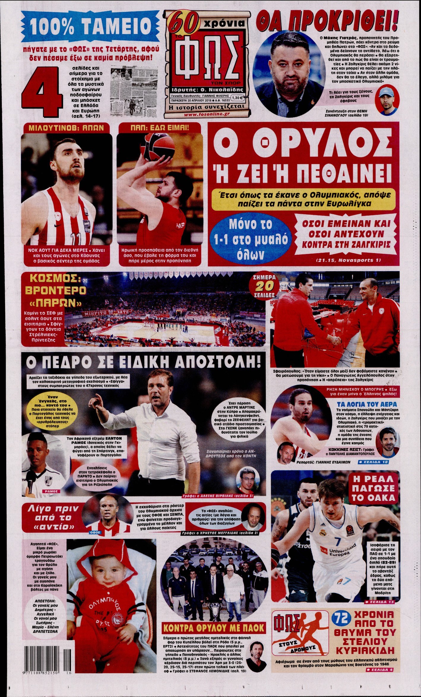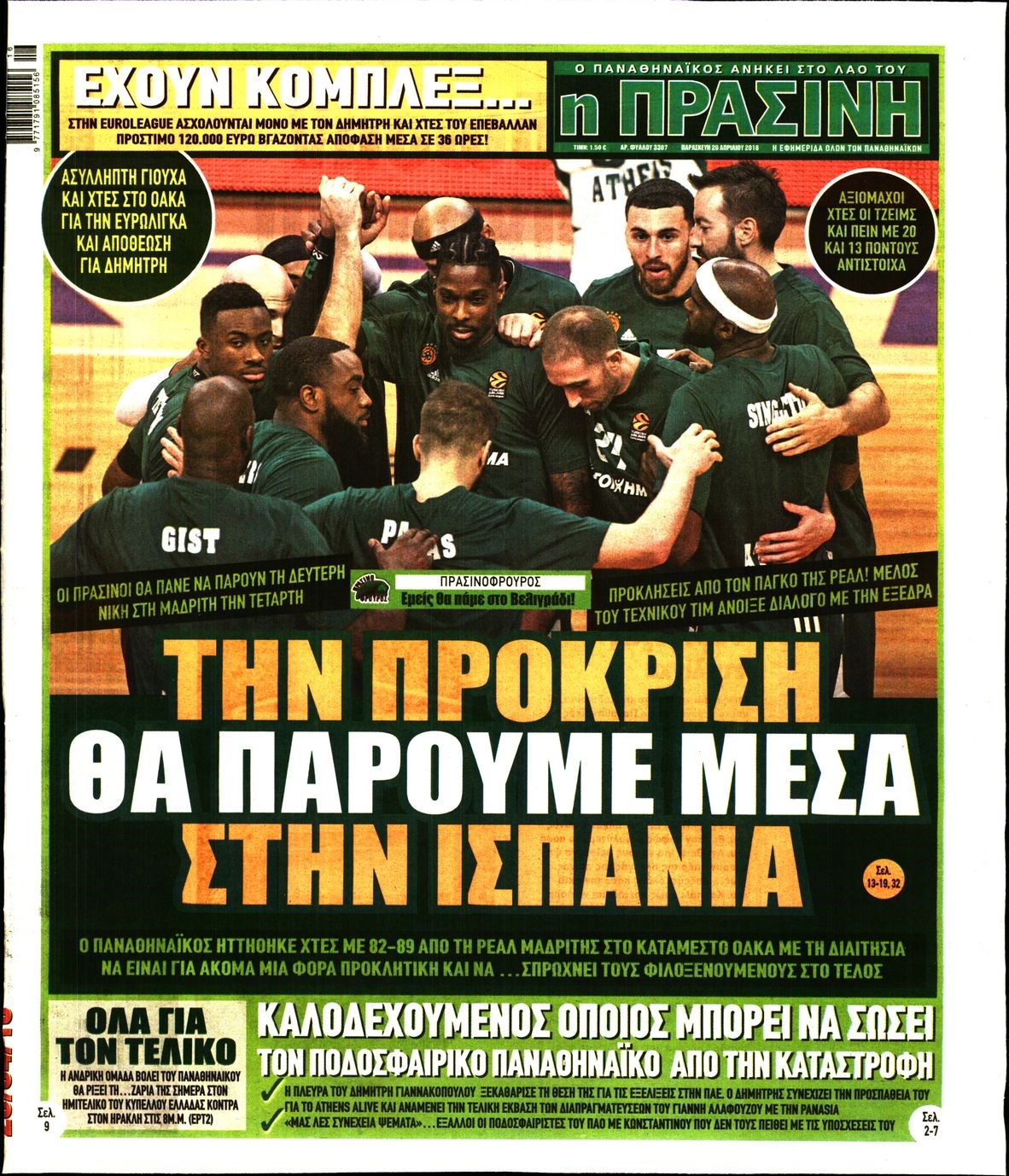 Οι αθλητικές εφημερίδες 20/4/2018 Enikos Newsroom 07:30, Παρασκευή 20 Απριλίου 2018 Media Διαβάστε τα σημερινά πρωτοσέλιδα των αθλητικών εφημερίδων: ΑΘΛΗΤΙΚΕΣ ΕΦΗΜΕΡΙΔΕΣ ΠΡΩΤΟΣΕΛΙΔΑ Μοιράσου το: σχολίασε κι εσύ (0 σχόλια) Ακολουθήστε το enikos.gr στο Google News και μάθετε πρώτοι όλες τις ειδήσεις Δείτε όλες τις τελευταίες ειδήσεις από την Ελλάδα και τον Κόσμο στο enikos.gr Ειδήσεις Ροή Ειδήσεων 17 λεπτά πριν Χριστούγεννα στα μπλόκα: Επιμένουν στις κινητοποιήσεις τους οι αγρότες – Ανοίγουν τα διόδια το Σαββατοκύριακο 45 λεπτά πριν Τραμπ: Δεν αποκλείει την πιθανότητα ενός πολέμου στη Βενεζουέλα – «Ο Μαδούρο ξέρει καλύτερα από τον καθένα τι ακριβώς θέλω» 39 λεπτά πριν Ουκρανία: Η άνευ προηγουμένου επίθεση σε ρωσικό τάνκερ στη Μεσόγειο και το μήνυμα προς στον Πούτιν – Το «μακρύ χέρι» του Κιέβου 3 ώρες πριν Πούτιν: «Ναι, είμαι ερωτευμένος» – Βίντεο από τη σπάνια προσωπική παραδοχή του 1 ώρα πριν Συνεχίζει να προκαλεί ο Μίτσκοσκι: «Για μένα το όνομα Μακεδονία είναι ιερό» 2 ώρες πριν Αριθμολογία: Οι άνθρωποι που έχουν γεννηθεί αυτές τις 4 ημερομηνίες, συχνά παρεξηγούνται – «Η καλοσύνη τους κρύβει τεράστια δύναμη» 4 ώρες πριν Μήπως έχετε χάσει τον εαυτό σας στη σχέση σας; 7 «αθόρυβες» υποχωρήσεις που μάλλον κάνατε, χωρίς να το συνειδητοποιήσετε 3 ώρες πριν Ξεχάστε το καθάρισμα το Σαββατοκύριακο: Ο «κανόνας των 20 λεπτών» που θα σας λύσει τα χέρια 54 λεπτά πριν Ύπνος: Μια κρυφή κατάσταση του εγκεφάλου πριν από τον ύπνο μπορεί να είναι το “κλειδί” για υψηλή ευφυΐα και δημιουργικότητα 7 λεπτά πριν Παναθηναϊκός: «Μέσα» οι Σφιντέρσκι και Τουμπά για το ματς με τον ΠΑΟΚ – Τι έδειξε η μαγνητική του Πάντοβιτς 12 λεπτά πριν Γιώργος Γιαννόπουλος για “Το σόι σου”: “Είναι ευτυχία και ευλογία αυτή η σειρά” 17 λεπτά πριν Χριστούγεννα στα μπλόκα: Επιμένουν στις κινητοποιήσεις τους οι αγρότες – Ανοίγουν τα διόδια το Σαββατοκύριακο 28 λεπτά πριν Χάρι και Μέγκαν: Η σπάνια οικογενειακή φωτογραφία με τον Άρτσι και τη Λίλιμπετ – Τι σχεδιάζουν για τα Χριστούγεννα 35 λεπτά πριν Βασίλης Καρράς: «Είναι πάντα δίπλα μου, δεν έφυγε…», λέει ο αδελφός του ENIKOS NETWORK Το ΕΚΑΒ τιμήθηκε από την Ακαδημία Αθηνών για τα 40 χρόνια προσφοράς του Έχετε πραγματικά μεγάλη καρδιά; 10 χαρακτηριστικά όσων έχουν καλοσύνη Πλήρης επάρκεια προϊόντων στις λαϊκές της Αττικής, παρά τις αγροτικές κινητοποιήσεις – Τι απαντούν οι πωλητές ΑΑΔΕ: Νέες αναβαθμίσεις στο Ψηφιακό Πελατολόγιο και την εφαρμογή myDATAapp – Τι πρέπει να γνωρίζετε Χαρτογραφώντας το «σημείο χωρίς επιστροφή»: Για πρώτη φορά αποκαλύπτεται με λεπτομέρεια το ακανθώδες όριο της ατμόσφαιρας τ... Η Google καταργεί τη λειτουργία «dark web report» – Πώς θα μπορούν οι χρήστες να διαγράφουν τα δεδομένα τους περισσότερα 22:42 , Παρασκευή 19 Δεκεμβρίου 2025 Γιώργος Γιαννόπουλος για “Το σόι σου”: “Είναι ευτυχία και ευλογία αυτή η σειρά” «Είναι ευτυχία και ευλογία η συγκυρία αυτής της σειράς», θα πει ο Γιώργος Γιαννόπουλος -ο αγαπ... 20:37 , Παρασκευή 19 Δεκεμβρίου 2025 Don’t Forget The Lyrics: Η Έλλη Κοκκίνου υποδέχεται 4 παίκτες που θα κάνουν τα πάντα για να μη χάσουν ούτε… μισή λέξη από τους στίχους Το «Don’t Forget The Lyrics» επιστρέφει απόψε, Παρασκευή 19 Δεκεμβρίου, στις 21:00 με νέο επει... 19:31 , Παρασκευή 19 Δεκεμβρίου 2025 GNTM: Απόψε ο μεγάλος τελικός για τους 4 φιναλίστ Έπειτα από μήνες γεμάτους μόδα, δημιουργία και έντονες αναμετρήσεις, το GNTM 2025 κορυφώνεται,... 18:11 , Παρασκευή 19 Δεκεμβρίου 2025 Το σόι σου: Ο Άρης έρχεται στην Ε