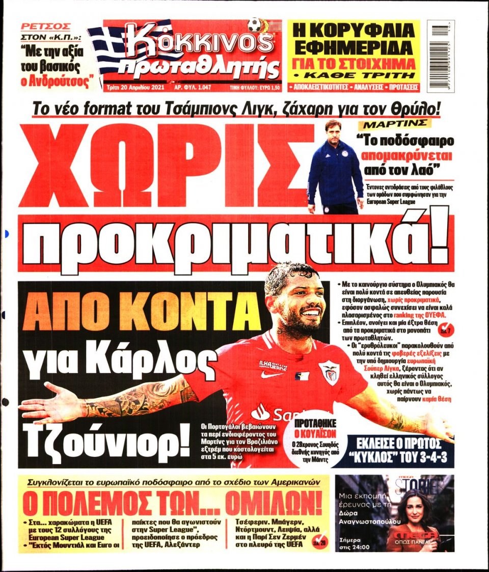 Οι αθλητικές εφημερίδες 20/4/2021 Σήφης Γαρυφαλάκης 06:10, Τρίτη 20 Απριλίου 2021 Media Διαβάστε τα πρωτοσέλιδα των αθλητικών εφημερίδων… ΑΘΛΗΤΙΚΕΣ ΕΦΗΜΕΡΙΔΕΣ ΕΦΗΜΕΡΙΔΕΣ ΠΡΩΤΟΣΕΛΙΔΑ ΠΡΩΤΟΣΕΛΙΔΑ ΕΦΗΜΕΡΙΔΩΝ Μοιράσου το: σχολίασε κι εσύ (0 σχόλια) Ακολουθήστε το enikos.gr στο Google News και μάθετε πρώτοι όλες τις ειδήσεις Δείτε όλες τις τελευταίες ειδήσεις από την Ελλάδα και τον Κόσμο στο enikos.gr Ειδήσεις Ροή Ειδήσεων 3 ώρες πριν Χίος: 15 νεκροί και πολλοί τραυματίες μετά το σοβαρό επεισόδιο Λιμενικού και σκάφους διακινητών 4 ώρες πριν Δολοφονία στη Νέα Πέραμο: Στο «μικροσκόπιο» των Αρχών η τεράστια περιουσία του 27χρονου – Η κατάθεση της συντρόφου του και όσα λένε συγγενικά του πρόσωπα 4 ώρες πριν Υπόθεση Επστάιν: Η σαπίλα που αναδύεται έχει βαθιές ρίζες – Η Αμερική πρέπει τώρα να αναρωτηθεί αν μπορεί να ξεπεράσει μια κουλτούρα ντροπής 4 ώρες πριν Πέπλο μυστηρίου γύρω από την εξαφάνιση της 16χρονης Λόρας – Ο άνδρας που βρέθηκε μαζί της στην πτήση, ο «αυταρχικός» πατέρας και η αντίδραση του αδελφού της 7 ώρες πριν Κλειστό για τρεις ημέρες το Ειδικό Σχολείο Σάμου: «Κάθε έλλειψη είναι κίνδυνος», λένε οι γονείς – Τι υποστηρίζει ο Δήμος 42 λεπτά πριν Τα ζώδια σήμερα, Τετάρτη 4 Φεβρουαρίου 2026: Ζυγοί, τιμήστε την ανάγκη σας για αναζωογόνηση 5 ώρες πριν «Χρυσή» αρχαιολογική ανακάλυψη σε χωριό – Βρέθηκε αριστοκρατικός οικισμός σε κτήματα θρυλικού βασιλιά 7 ώρες πριν Πώς να προσελκύσετε πλούτο, ανάλογα με τον μήνα γέννησής σας 8 ώρες πριν Οι άνδρες που δεν σταματούν ποτέ να κάνουν τις γυναίκες τους να νιώθουν ξεχωριστές, έχουν συνήθως αυτά τα 4 ιδιαίτερα χαρακτηριστικά 2 λεπτά πριν Γιάννης Μπέζος: «Η ελληνική τηλεόραση είναι ψευτοχαρούμενη, ανοίγεις το πρωί να δεις και όλοι είναι χαρούμενοι χωρίς λόγο» 17 λεπτά πριν Σφοδρή επίθεση Γεωργιάδη σε Τσίπρα από την Πάτρα: Αποτυχημένος πρωθυπουργός ήταν – Υποσχέθηκε στους πάντες τα πάντα 32 λεπτά πριν Ο Γιώργος Χρανιώτης για τη συμμετοχή του στην αποστολή στη Γάζα: «Οφείλω να κάνω κάτι για τα παιδιά όλου του κόσμου» 42 λεπτά πριν Τα ζώδια σήμερα, Τετάρτη 4 Φεβρουαρίου 2026: Ζυγοί, τιμήστε την ανάγκη σας για αναζωογόνηση 47 λεπτά πριν Βαγγέλης Δρίσκας: «Έκανα τον σταυρό μου κι είπα ότι αν φτάσω στο ξενοδοχείο “όλα καλά”» ENIKOS NETWORK Κρίση άγχους: Το πρώτο πράγμα που προτείνει ένας ψυχοθεραπευτής να κάνετε για να ηρεμήσετε Άδωνις Γεωργιάδης: Σε app για το κινητό τηλέφωνο το Εθνικό Μητρώο Νεοπλασιών ΕΑΕΕ: Άνοδος στην παραγωγή ασφαλίστρων το ενδεκάμηνο του 2025 – Τι δείχνουν τα στοιχεία Κενές περισσότερες από 70.000 θέσεις εργασίας στον γεωργικό τομέα – «Περίπου το 10% του καρπού της ελιάς έχει μείνει στα δέ... Ευπάθεια στο moltbook ai αποκαλύπτει email, tokens σύνδεσης και api keys Αυτός είναι ο ρόλος της μικρής τρύπας στους νυχοκόπτες – «Είμαι ο μόνος που δεν το ήξερε;»» περισσότερα 02:33 , Τετάρτη 04 Φεβρουαρίου 2026 MasterChef: Λύγισε ο Γιώργος Αχλαδιώτης – «Κερδίζω, συγκινούμαι… Τώρα θα τους δείξω τι αξίζω» Το πρώτο Τεστ Δημιουργικότητας του MasterChef ολοκληρώθηκε με έναν ξεκάθαρο πρωταγωνιστή. Ο Γι... 21:33 , Τρίτη 03 Φεβρουαρίου 2026 Porto Leone: Στη γειτονιά με τα κόκκινα φανάρια – Η Ασημίνα αποκαλύπτει στην Αλεξάνδρα την εγκυμοσύνη της Λένας Η μεγάλη δραματική σειρά του Apha «Porto Leone: Στη γειτονιά με τα κόκκινα φανάρια» επιστρέφει... 19:52 , Τρίτη 03 Φεβρουαρίου 2026 Να μ’ αγαπάς: Ο Θεόφιλος ζητά από την Σοφία να φύγει από το σπίτι Στο σπίτι των Καλλιγά, τα αληθινά αποτελέσματα DNA επιβεβαιώ