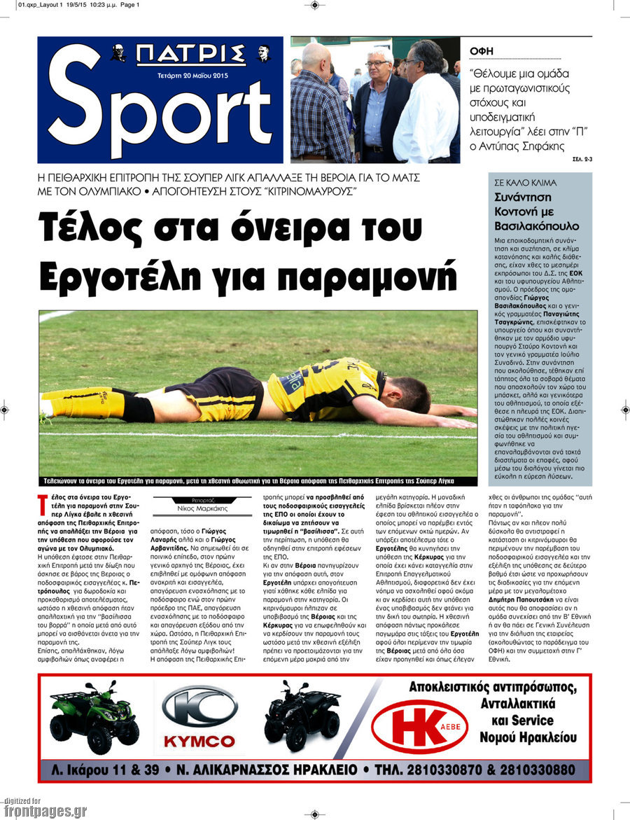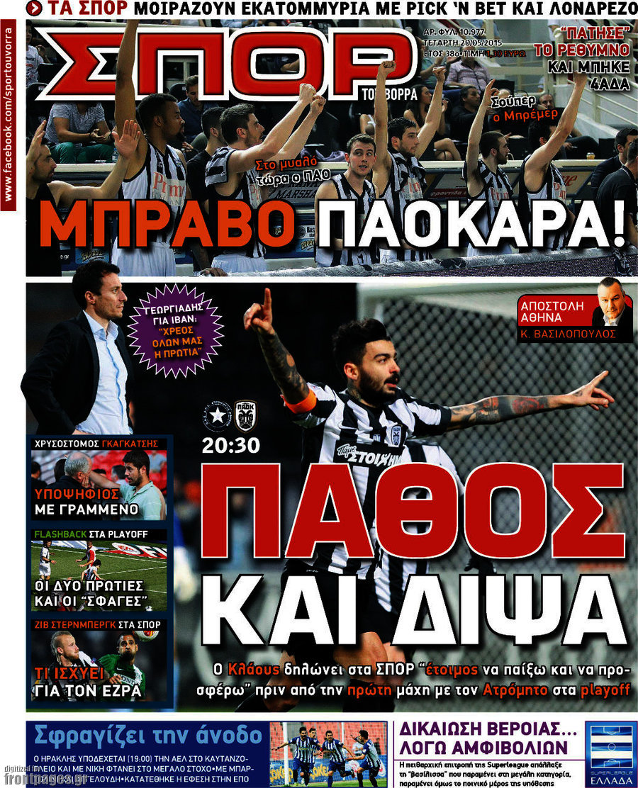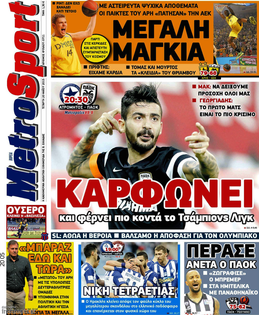 Οι αθλητικές εφημερίδες 20/5/2015 Enikos Newsroom 06:44, Τετάρτη 20 Μαΐου 2015 Media Διαβάστε τα σημερινά πρωτοσέλιδα των αθλητικών εφημερίδων: ΑΘΛΗΤΙΚΕΣ ΕΦΗΜΕΡΙΔΕΣ ΠΡΩΤΟΣΕΛΙΔΑ Μοιράσου το: σχολίασε κι εσύ (0 σχόλια) Ακολουθήστε το enikos.gr στο Google News και μάθετε πρώτοι όλες τις ειδήσεις Δείτε όλες τις τελευταίες ειδήσεις από την Ελλάδα και τον Κόσμο στο enikos.gr Ειδήσεις Ροή Ειδήσεων 5 ώρες πριν Χριστούγεννα στα μπλόκα: Επιμένουν στις κινητοποιήσεις τους οι αγρότες – Ανοίγουν τα διόδια το Σαββατοκύριακο 5 ώρες πριν Ουκρανία: Η άνευ προηγουμένου επίθεση σε ρωσικό τάνκερ στη Μεσόγειο και το μήνυμα προς στον Πούτιν – Το «μακρύ χέρι» του Κιέβου 5 ώρες πριν Πούτιν: Τα μηνύματα σε Ευρώπη και ΝΑΤΟ από το μαραθώνιο «σόου» του – Η απαίτηση για «σεβασμό» και η ειρήνη «με τους όρους» της Μόσχας 6 ώρες πριν Τραμπ: Δεν αποκλείει την πιθανότητα ενός πολέμου στη Βενεζουέλα – «Ο Μαδούρο ξέρει καλύτερα από τον καθένα τι ακριβώς θέλω» 6 ώρες πριν Συνεχίζει να προκαλεί ο Μίτσκοσκι: «Για μένα το όνομα Μακεδονία είναι ιερό» 5 ώρες πριν Ανακαλύφθηκαν αρχαία χρυσά νομίσματα 2.200 ετών που απεικονίζουν τον θεό Απόλλωνα – Η άγνωστη σύνδεση με τον Φίλιππο Β΄ της Μακεδονίας 6 ώρες πριν Ύπνος: Μια κρυφή κατάσταση του εγκεφάλου πριν από τον ύπνο μπορεί να είναι το “κλειδί” για υψηλή ευφυΐα και δημιουργικότητα 7 ώρες πριν Αριθμολογία: Οι άνθρωποι που έχουν γεννηθεί αυτές τις 4 ημερομηνίες, συχνά παρεξηγούνται – «Η καλοσύνη τους κρύβει τεράστια δύναμη» 8 ώρες πριν Ξεχάστε το καθάρισμα το Σαββατοκύριακο: Ο «κανόνας των 20 λεπτών» που θα σας λύσει τα χέρια 7 λεπτά πριν Ντόναλντ Τραμπ: Προστέθηκε το όνομά του στην πρόσοψη του Κέντρου Κένεντι – Οργισμένη αντίδραση των συγγενών του JFK 22 λεπτά πριν Ταμίλα Κουλίεβα: «Δεν θέλω να είμαι κάποια που πορεύεται συνεχώς με τις ίδιες αναφορές» 37 λεπτά πριν Η Ελλάδα προσχωρεί στη Διεθνή Επιτροπή Αποζημιώσεων για την Ουκρανία 52 λεπτά πριν GNTM: Η Ξένια Τσίρκοβα αναδείχθηκε μεγάλη νικήτρια και πήρε τις 50.000 ευρώ – Ποιος βρέθηκε σε απόσταση αναπνοής; 1 ώρα πριν Θεσσαλονίκη: Εξαφανίστηκε 13χρονος από χώρο φιλοξενίας ασυνόδευτων ανηλίκων στο Ωραιόκαστρο ENIKOS NETWORK Το ΕΚΑΒ τιμήθηκε από την Ακαδημία Αθηνών για τα 40 χρόνια προσφοράς του Έχετε πραγματικά μεγάλη καρδιά; 10 χαρακτηριστικά όσων έχουν καλοσύνη Αναστολή μέτρων αναγκαστικής εκτέλεσης για κτηνοτρόφους που πλήττονται από την ευλογιά των αιγοπροβάτων Πλήρης επάρκεια προϊόντων στις λαϊκές της Αττικής, παρά τις αγροτικές κινητοποιήσεις – Τι απαντούν οι πωλητές Χαρτογραφώντας το «σημείο χωρίς επιστροφή»: Για πρώτη φορά αποκαλύπτεται με λεπτομέρεια το ακανθώδες όριο της ατμόσφαιρας τ... Η Google καταργεί τη λειτουργία «dark web report» – Πώς θα μπορούν οι χρήστες να διαγράφουν τα δεδομένα τους περισσότερα 02:50 , Σάββατο 20 Δεκεμβρίου 2025 GNTM: Η Ξένια Τσίρκοβα αναδείχθηκε μεγάλη νικήτρια και πήρε τις 50.000 ευρώ – Ποιος βρέθηκε σε απόσταση αναπνοής; Με φαντασμαγορικό τρόπο ολοκληρώθηκε το βράδυ της Παρασκευής ο μεγάλος τελικός του GNTM, μέσα ... 22:42 , Παρασκευή 19 Δεκεμβρίου 2025 Γιώργος Γιαννόπουλος για “Το σόι σου”: “Είναι ευτυχία και ευλογία αυτή η σειρά” «Είναι ευτυχία και ευλογία η συγκυρία αυτής της σειράς», θα πει ο Γιώργος Γιαννόπουλος -ο αγαπ... 20:37 , Παρασκευή 19 Δεκεμβρίου 2025 Don’t Forget The Lyrics: Η Έλλη Κοκκίνου υποδέχεται 4 παίκτες που θα κάνουν τα πάντα για να μη χάσουν ούτε… μισή λέξη από τους στίχους Το «Don’t Forget The Lyrics» επιστρέφει 