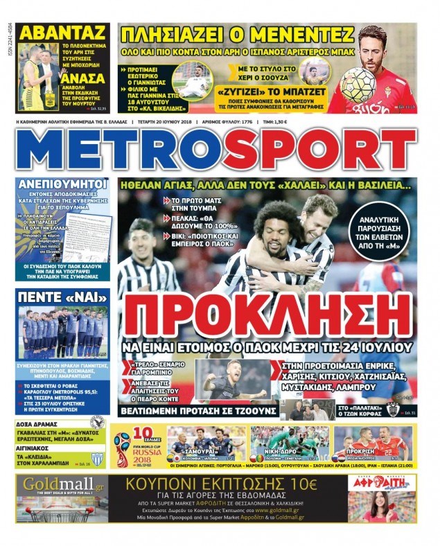 Οι αθλητικές εφημερίδες 20/6/18 Enikos Newsroom 06:15, Τετάρτη 20 Ιουνίου 2018 Media Διαβάστε τα σημερινά πρωτοσέλιδα των αθλητικών εφημερίδων. ΑΘΛΗΤΙΚΕΣ ΕΦΗΜΕΡΙΔΕΣ ΠΡΩΤΟΣΕΛΙΔΑ Μοιράσου το: σχολίασε κι εσύ (0 σχόλια) Ακολουθήστε το enikos.gr στο Google News και μάθετε πρώτοι όλες τις ειδήσεις Δείτε όλες τις τελευταίες ειδήσεις από την Ελλάδα και τον Κόσμο στο enikos.gr Ειδήσεις Ροή Ειδήσεων 3 ώρες πριν Η Ουκρανία χτύπησε τάνκερ του σκιώδους στόλου της Ρωσίας στη Μεσόγειο – Έπλεε νότια της Κρήτης 1 ώρα πριν Πούτιν: Σαρκαστικά μηνύματα, παράπονα και απρόοπτα στη συνέντευξη Τύπου – Η πρόταση γάμου on air και οι ερωτήσεις για τα αγγούρια και τους… εξωγήινους 1 ώρα πριν Η απάντηση της κυβέρνησης στα αιτήματα των αγροτών: 16+4 υλοποιούνται ή βρίσκονται υπό επεξεργασία για να βρεθεί λύση – 7 δεν μπορούν να επιλυθούν 2 ώρες πριν Θεσσαλονίκη: Στη φυλακή ο 44χρονος που κατηγορείται ότι προσπάθησε να πνίξει με κορδόνι την 34χρονη σύντροφό του 2 ώρες πριν Εξώδικο επιχειρηματία στον Γιώργο Μαζωνάκη – Τι απαντά στις καταγγελίες του τραγουδιστή 52 λεπτά πριν Τα 5 ζώδια που ευνοούνται στην ερωτική ζωή τους την επόμενη εβδομάδα – «Η ενέργεια του Αιγόκερου φέρνει αγάπη και σταθερότητα» 6 ώρες πριν Γεμάτος νεροχύτης; 5 σοβαρές ευθύνες που «φοβίζουν» όσους αφήνουν άπλυτα πιάτα 5 ώρες πριν Ειδικός μοιράζεται 6 κόλπα για να διατηρείστε σε φόρμα με πάνω από 40 ώρες εργασίας την εβδομάδα: «Προπονηθείτε πριν από τη δουλειά, όχι μετά» 2 ημέρες πριν 20 χρόνια τα Χριστούγεννα ξεκινούν στα Public με μεγάλη ποικιλία σε δώρα! 56 δευτερόλεπτα πριν ΟΠΑΠ: Φρέσκια και δυναμική καμπάνια για το Υπεύθυνο Παιχνίδι με Χριστουγεννιάτικη διάθεση 3 λεπτά πριν ΟΗΕ: Δεν υπάρχει πλέον λιμός στη Γάζα αλλά η επισιτιστική ανασφάλεια παραμένει 10 λεπτά πριν Τραγωδία στη Λάρισα: Νεκρή γυναίκα που παρασύρθηκε από φορτηγό 15 λεπτά πριν Κασπία Θάλασσα: Ουκρανικά πλήγματα με drones σε ρωσική εξέδρα άντλησης πετρελαίου 19 λεπτά πριν Μαρινάκης για το «όχι» του ΠΑΣΟΚ στην ένταξη του ΟΠΕΚΕΠΕ στην ΑΑΔΕ: «Εκτεθειμένος ο κ. Ανδρουλάκης απέναντι στους αγρότες» ENIKOS NETWORK Τάξη στις ιατρικές διαφημίσεις για την προστασία των πολιτών βάζει ο ΙΣΑ Μακροζωία: Τι παίζει πιο σημαντικό ρόλο ακόμα και από την διατροφή και την άσκηση, σύμφωνα με μελέτη Παπαθανάσης για νέο Εθνικό Πρόγραμμα Ανάπτυξης 2026-2030: Είναι υπερδιπλάσιο από αυτό της προηγούμενης προγραμματικής περιό... Βουλή: Υπερψηφίστηκε το νομοσχέδιο για τη μετάβαση του ΟΠΕΚΕΠΕ στην ΑΑΔΕ Χαρτογραφώντας το «σημείο χωρίς επιστροφή»: Για πρώτη φορά αποκαλύπτεται με λεπτομέρεια το ακανθώδες όριο της ατμόσφαιρας τ... Η Google καταργεί τη λειτουργία «dark web report» – Πώς θα μπορούν οι χρήστες να διαγράφουν τα δεδομένα τους περισσότερα 15:15 , Παρασκευή 19 Δεκεμβρίου 2025 Την Κυριακή με τη Realnews: Ό,τι και αν αγοράσεις, σκανάρεις και κερδίζεις! Την Κυριακή με τη Realnews: Ό,τι και αν αγοράσεις, σκανάρεις και κερδίζεις! Με το PADU app, το... 08:00 , Παρασκευή 19 Δεκεμβρίου 2025 Την Κυριακή με τη Realnews: Δωροεπιταγή 10€ Δωροεπιταγή αξίας 10€ για αγορές άνω των 60€ από τα πολυκαταστήματα FactoryOutlet H προσφορά ι... 05:48 , Παρασκευή 19 Δεκεμβρίου 2025 Οι οικονομικές εφημερίδες 19/12/2025 Διαβάστε τα πρωτοσέλιδα από τις οικονομικές εφημερίδες, σήμερα 19/12/2025. 05:43 , Παρασκευή 19 Δεκεμβρίου 2025 Οι αθλητικές εφημερίδες 19/12/2025 Διαβάστε τα πρωτοσέλιδα από τις αθλητικές εφημερίδες, σήμερα 19/12/2025. ΤΕΛΕΥΤΑΙΕΣ ΕΙΔΗΣΕΙΣ 10 λεπτά πριν Τραγωδία στη Λάρισα: Νεκρή γυναίκα που παρασύρ