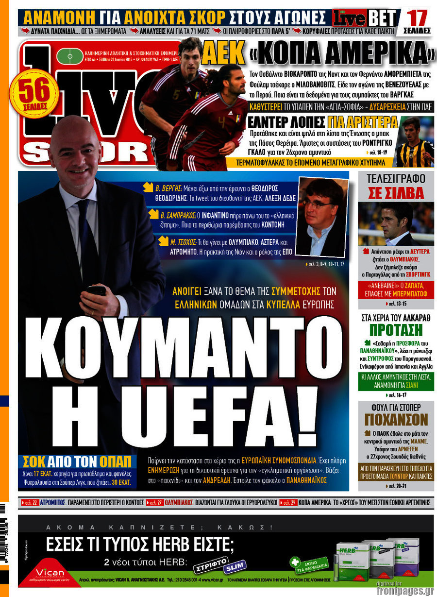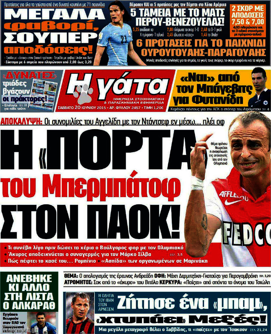 Οι αθλητικές εφημερίδες 20/6/2015 Enikos Newsroom 07:47, Σάββατο 20 Ιουνίου 2015 Media Διαβάστε τα σημερινά πρωτοσέλιδα των αθλητικών εφημερίδων. ΑΘΛΗΤΙΚΕΣ ΕΦΗΜΕΡΙΔΕΣ ΕΦΗΜΕΡΙΔΕΣ ΠΡΩΤΟΣΕΛΙΔΑ Μοιράσου το: σχολίασε κι εσύ (0 σχόλια) Ακολουθήστε το enikos.gr στο Google News και μάθετε πρώτοι όλες τις ειδήσεις Δείτε όλες τις τελευταίες ειδήσεις από την Ελλάδα και τον Κόσμο στο enikos.gr Ειδήσεις Ροή Ειδήσεων 50 λεπτά πριν Μεσόγειος: Η διαδρομή του ρωσικού τάνκερ «Qendil» και η στοχευμένη επίθεση της Ουκρανίας με drone – Ο Πούτιν προειδοποίησε για αντίποινα 44 λεπτά πριν Αττική: Θρίλερ με νεκρό βρέφος 5 μηνών – Κοιμόταν στο ίδιο κρεβάτι με τους γονείς του 2 ώρες πριν Από το Ορμένιο ως τα Μάλγαρα κι από τη Σιάτιστα μέχρι τη Νίκαια: Μπλόκα σε όλη την Ελλάδα – Το Σάββατο ανοίγουν τα διόδια οι αγρότες 2 ώρες πριν «Έλληνας Εσκομπάρ»: Φωτογραφίες με τους 4 τόνους κοκαΐνης που κατασχέθηκαν από το σκάφος «Ουρανία» 3 ώρες πριν Πούτιν: Σαρκαστικά μηνύματα, παράπονα και απρόοπτα στη συνέντευξη Τύπου – Η πρόταση γάμου on air και οι ερωτήσεις για τα αγγούρια και τους… εξωγήινους 3 ώρες πριν Τα 5 ζώδια που ευνοούνται στην ερωτική ζωή τους την επόμενη εβδομάδα – «Η ενέργεια του Αιγόκερου φέρνει αγάπη και σταθερότητα» 7 ώρες πριν Ειδικός μοιράζεται 6 κόλπα για να διατηρείστε σε φόρμα με πάνω από 40 ώρες εργασίας την εβδομάδα: «Προπονηθείτε πριν από τη δουλειά, όχι μετά» 4 ώρες πριν Αυτό το έξυπνο μαθηματικό κόλπο θα μπορούσε να αλλάξει τον τρόπο με τον οποίο οι επιστήμονες μελετούν τους σεισμούς 2 ώρες πριν Κουίζ για την παλιά Αθήνα: Αναγνωρίζετε την περιοχή; Έχετε περάσει 100% από εκεί 2 λεπτά πριν Hellenic Train: Αλλαγές και καταργήσεις δρομολογίων λεωφορείων λόγω των αγροτικών κινητοποιήσεων 8 λεπτά πριν Ζελένσκι: «Δεν χρειάζεται αναθεώρηση του Συντάγματος» για να εγκαταλείψει η Ουκρανία τον στόχο ένταξης στο ΝΑΤΟ 12 λεπτά πριν Παναγιώτα Βλαντή: Η τρυφερή εξομολόγηση για τον σύζυγό της – «Πραγματικά ήταν για μένα αυτό που ήθελα σε όλη μου τη ζωή» 19 λεπτά πριν Επίσημη η «βόμβα»: Ο ΠΑΟΚ ανακοίνωσε την απόκτηση του Πάτρικ Μπέβερλι 23 λεπτά πριν Θεσσαλονίκη: Πατέρας εγκαλεί τον Ιατρικό Σύλλογο για ποινές «χάδι» σε γιατρό που κατηγορείται για τον θάνατο του παιδιού του ENIKOS NETWORK «Η σούπερ» γρίπη εξαπλώνεται στην Ευρώπη-Στοιχεία για την αποτελεσματικότητα του εμβολίου από το ECDC ΕΛΣΤΑΤ: Αύξηση κατά 1,7% των επαγγελματιών υγείας το 2024 Η απάντηση της κυβέρνησης στα αιτήματα των αγροτών: 16 έχουν ικανοποιηθεί, 4 βρίσκονται υπό επεξεργασία και 7 δεν είναι εφι... Μισθολογική διαφάνεια: Το 68% των εργαζομένων αγνοεί τη νέα οδηγία – Αναλυτικά τα στοιχεία έρευνας Χαρτογραφώντας το «σημείο χωρίς επιστροφή»: Για πρώτη φορά αποκαλύπτεται με λεπτομέρεια το ακανθώδες όριο της ατμόσφαιρας τ... Η Google καταργεί τη λειτουργία «dark web report» – Πώς θα μπορούν οι χρήστες να διαγράφουν τα δεδομένα τους περισσότερα 18:11 , Παρασκευή 19 Δεκεμβρίου 2025 Το σόι σου: Ο Άρης έρχεται στην Ελλάδα για τις γιορτές των Χριστουγέννων – Τι θα δούμε στο αποψινό εορταστικό επεισόδιο Ένα απολαυστικό, εορταστικό επεισόδιο της σειράς “Το σόι σου”, γεμάτο ευτράπελα αλ... 15:15 , Παρασκευή 19 Δεκεμβρίου 2025 Την Κυριακή με τη Realnews: Ό,τι και αν αγοράσεις, σκανάρεις και κερδίζεις! Την Κυριακή με τη Realnews: Ό,τι και αν αγοράσεις, σκανάρεις και κερδίζεις! Με το PADU app, το... 08:00 , Παρασκευή 19 Δεκεμβρίου 2025 Την Κυριακή με τη Realnews: Δωροεπιταγή 10€ Δωροεπιταγή αξίας 10€ για αγορές άνω των 60€ από 