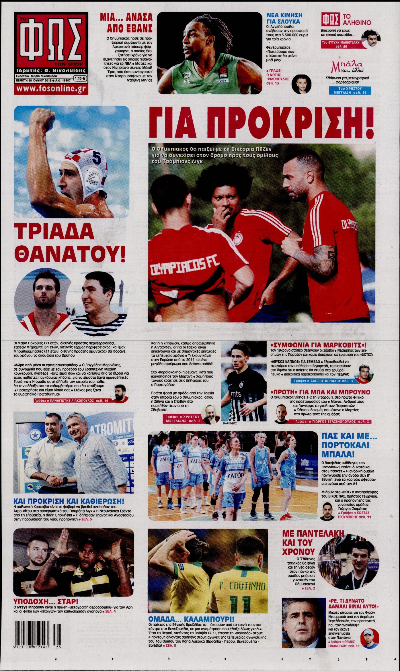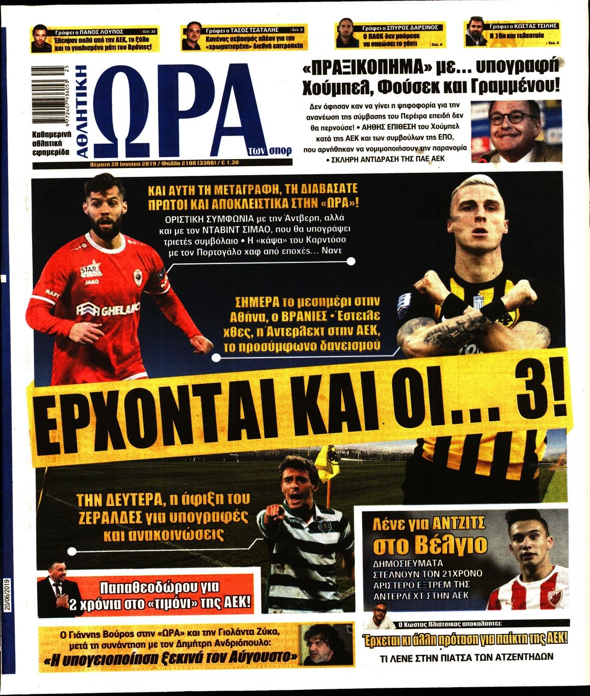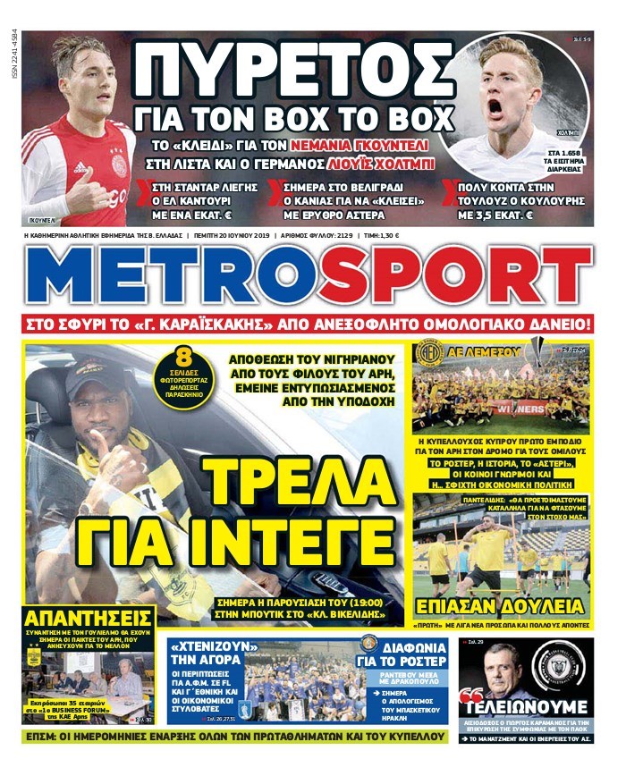 Οι αθλητικές εφημερίδες 20/6/2019 Enikos Newsroom 06:52, Πέμπτη 20 Ιουνίου 2019 Media Διαβάστε τα πρωτοσέλιδα των αθλητικών εφημερίδων: ΑΘΛΗΤΙΚΕΣ ΕΦΗΜΕΡΙΔΕΣ ΠΡΩΤΟΣΕΛΙΔΑ Μοιράσου το: σχολίασε κι εσύ (0 σχόλια) Ακολουθήστε το enikos.gr στο Google News και μάθετε πρώτοι όλες τις ειδήσεις Δείτε όλες τις τελευταίες ειδήσεις από την Ελλάδα και τον Κόσμο στο enikos.gr Ειδήσεις Ροή Ειδήσεων 2 ώρες πριν Χριστούγεννα στα μπλόκα: Επιμένουν στις κινητοποιήσεις τους οι αγρότες – Ανοίγουν τα διόδια το Σαββατοκύριακο 3 ώρες πριν Ουκρανία: Η άνευ προηγουμένου επίθεση σε ρωσικό τάνκερ στη Μεσόγειο και το μήνυμα προς στον Πούτιν – Το «μακρύ χέρι» του Κιέβου 2 ώρες πριν Πούτιν: Τα μηνύματα σε Ευρώπη και ΝΑΤΟ από το μαραθώνιο «σόου» του – Η απαίτηση για «σεβασμό» και η ειρήνη «με τους όρους» της Μόσχας 3 ώρες πριν Τραμπ: Δεν αποκλείει την πιθανότητα ενός πολέμου στη Βενεζουέλα – «Ο Μαδούρο ξέρει καλύτερα από τον καθένα τι ακριβώς θέλω» 3 ώρες πριν Συνεχίζει να προκαλεί ο Μίτσκοσκι: «Για μένα το όνομα Μακεδονία είναι ιερό» 2 ώρες πριν Ανακαλύφθηκαν αρχαία χρυσά νομίσματα 2.200 ετών που απεικονίζουν τον θεό Απόλλωνα – Η άγνωστη σύνδεση με τον Φίλιππο Β΄ της Μακεδονίας 3 ώρες πριν Ύπνος: Μια κρυφή κατάσταση του εγκεφάλου πριν από τον ύπνο μπορεί να είναι το “κλειδί” για υψηλή ευφυΐα και δημιουργικότητα 4 ώρες πριν Αριθμολογία: Οι άνθρωποι που έχουν γεννηθεί αυτές τις 4 ημερομηνίες, συχνά παρεξηγούνται – «Η καλοσύνη τους κρύβει τεράστια δύναμη» 5 ώρες πριν Ξεχάστε το καθάρισμα το Σαββατοκύριακο: Ο «κανόνας των 20 λεπτών» που θα σας λύσει τα χέρια 38 δευτερόλεπτα πριν Ουκρανία: Ολοκληρώθηκαν οι συνομιλίες με τους Αμερικανούς κι Ευρωπαίους διαπραγματευτές 14 λεπτά πριν Μπαρτσελόνα – Μπασκόνια 134-124: Οι «μπλαουγκράνα» πήραν το ματς της χρονιάς ύστερα από τρεις παρατάσεις 29 λεπτά πριν Φαίη Σκορδά: «Παλιότερα τα κομπλιμέντα τα προσπερνούσα, τώρα τα έχω ανάγκη» 45 λεπτά πριν Βασίλης Σπανούλης: Δεν εμφανίστηκε ούτε ένας δημοσιογράφος στην συνέντευξη Τύπου – «Καλησπέρα στον… κανέναν», δείτε βίντεο 56 λεπτά πριν Πόλεμος στην Ουκρανία: Εφτά νεκροί από ρωσική πυραυλική επίθεση στο λιμάνι της Οδησσού ENIKOS NETWORK Το ΕΚΑΒ τιμήθηκε από την Ακαδημία Αθηνών για τα 40 χρόνια προσφοράς του Έχετε πραγματικά μεγάλη καρδιά; 10 χαρακτηριστικά όσων έχουν καλοσύνη Αναστολή μέτρων αναγκαστικής εκτέλεσης για κτηνοτρόφους που πλήττονται από την ευλογιά των αιγοπροβάτων Πλήρης επάρκεια προϊόντων στις λαϊκές της Αττικής, παρά τις αγροτικές κινητοποιήσεις – Τι απαντούν οι πωλητές Χαρτογραφώντας το «σημείο χωρίς επιστροφή»: Για πρώτη φορά αποκαλύπτεται με λεπτομέρεια το ακανθώδες όριο της ατμόσφαιρας τ... Η Google καταργεί τη λειτουργία «dark web report» – Πώς θα μπορούν οι χρήστες να διαγράφουν τα δεδομένα τους περισσότερα 22:42 , Παρασκευή 19 Δεκεμβρίου 2025 Γιώργος Γιαννόπουλος για “Το σόι σου”: “Είναι ευτυχία και ευλογία αυτή η σειρά” «Είναι ευτυχία και ευλογία η συγκυρία αυτής της σειράς», θα πει ο Γιώργος Γιαννόπουλος -ο αγαπ... 20:37 , Παρασκευή 19 Δεκεμβρίου 2025 Don’t Forget The Lyrics: Η Έλλη Κοκκίνου υποδέχεται 4 παίκτες που θα κάνουν τα πάντα για να μη χάσουν ούτε… μισή λέξη από τους στίχους Το «Don’t Forget The Lyrics» επιστρέφει απόψε, Παρασκευή 19 Δεκεμβρίου, στις 21:00 με νέο επει... 19:31 , Παρασκευή 19 Δεκεμβρίου 2025 GNTM: Απόψε ο μεγάλος τελικός για τους 4 φιναλίστ Έπειτα από μήνες γεμάτους μόδα, δημιουργία και έντονες αναμετρήσεις, το GNTM 2025 κορυφώνεται,... 18: