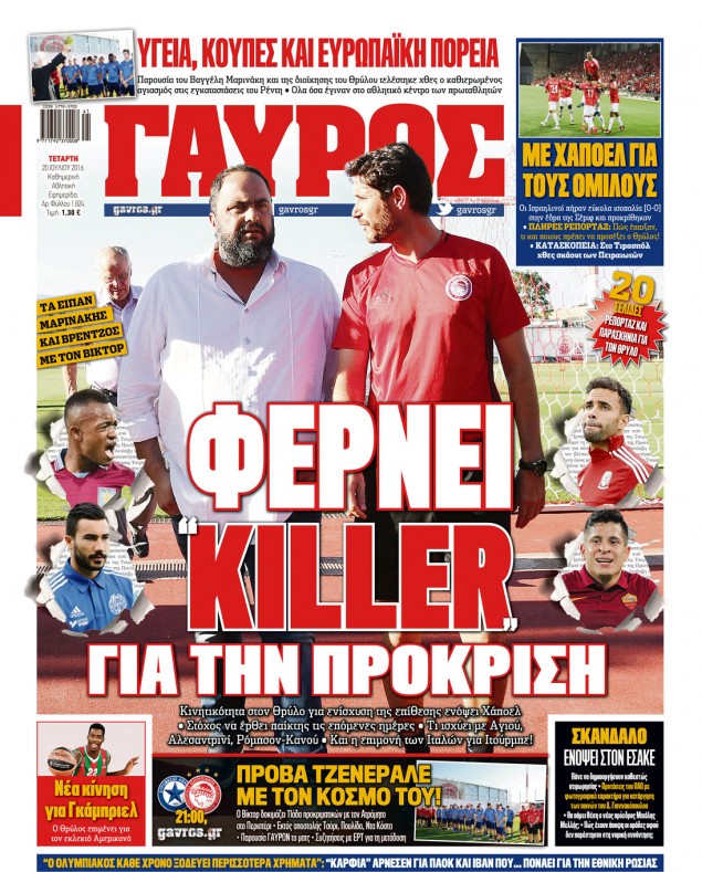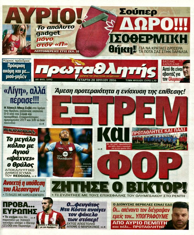 Oι αθλητικές εφημερίδες 20/7/2016 Enikos Newsroom 04:46, Τετάρτη 20 Ιουλίου 2016 Media Διαβάστε τα σημερινά πρωτοσέλιδα των αθλητικών εφημερίδων: ΑΘΛΗΤΙΚΕΣ ΕΦΗΜΕΡΙΔΕΣ ΠΡΩΤΟΣΕΛΙΔΑ Μοιράσου το: σχολίασε κι εσύ (0 σχόλια) Ακολουθήστε το enikos.gr στο Google News και μάθετε πρώτοι όλες τις ειδήσεις Δείτε όλες τις τελευταίες ειδήσεις από την Ελλάδα και τον Κόσμο στο enikos.gr Ειδήσεις Ροή Ειδήσεων 30 λεπτά πριν Μεσόγειος: Η διαδρομή του ρωσικού τάνκερ «Qendil» και η στοχευμένη επίθεση της Ουκρανίας με drone – Ο Πούτιν προειδοποίησε για αντίποινα 2 ημέρες πριν 20 χρόνια τα Χριστούγεννα ξεκινούν στα Public με μεγάλη ποικιλία σε δώρα! 1 ώρα πριν Από το Ορμένιο ως τα Μάλγαρα κι από τη Σιάτιστα μέχρι τη Νίκαια: Μπλόκα σε όλη την Ελλάδα – Το Σάββατο ανοίγουν τα διόδια οι αγρότες 1 ώρα πριν «Έλληνας Εσκομπάρ»: Φωτογραφίες με τους 4 τόνους κοκαΐνης που κατασχέθηκαν από το σκάφος «Ουρανία» 3 ώρες πριν Πούτιν: Σαρκαστικά μηνύματα, παράπονα και απρόοπτα στη συνέντευξη Τύπου – Η πρόταση γάμου on air και οι ερωτήσεις για τα αγγούρια και τους… εξωγήινους 2 ώρες πριν Τα 5 ζώδια που ευνοούνται στην ερωτική ζωή τους την επόμενη εβδομάδα – «Η ενέργεια του Αιγόκερου φέρνει αγάπη και σταθερότητα» 7 ώρες πριν Γεμάτος νεροχύτης; 5 σοβαρές ευθύνες που «φοβίζουν» όσους αφήνουν άπλυτα πιάτα 6 ώρες πριν Ειδικός μοιράζεται 6 κόλπα για να διατηρείστε σε φόρμα με πάνω από 40 ώρες εργασίας την εβδομάδα: «Προπονηθείτε πριν από τη δουλειά, όχι μετά» 24 λεπτά πριν Αττική: Θρίλερ με νεκρό βρέφος 5 μηνών – Κοιμόταν στο ίδιο κρεβάτι με τους γονείς του 3 λεπτά πριν Θεσσαλονίκη: Πατέρας εγκαλεί τον Ιατρικό Σύλλογο για ποινές «χάδι» σε γιατρό που κατηγορείται για τον θάνατο του παιδιού του 9 λεπτά πριν Κερατσίνι: Αστυνομικός εκτός υπηρεσίας απέτρεψε κλοπή μηχανών – Συνελήφθησαν τρεις ανήλικοι 13 λεπτά πριν Το σόι σου: Ο Άρης έρχεται στην Ελλάδα για τις γιορτές των Χριστουγέννων – Τι θα δούμε στο αποψινό εορταστικό επεισόδιο 20 λεπτά πριν ΠΑΣΟΚ σε Μαρινάκη: Δεν νομιμοποιούμε πολιτικές επιλογές που μεταφέρουν το πρόβλημα από υπηρεσία σε υπηρεσία 24 λεπτά πριν Αττική: Θρίλερ με νεκρό βρέφος 5 μηνών – Κοιμόταν στο ίδιο κρεβάτι με τους γονείς του ENIKOS NETWORK «Η σούπερ» γρίπη εξαπλώνεται στην Ευρώπη-Στοιχεία για την αποτελεσματικότητα του εμβολίου από το ECDC ΕΛΣΤΑΤ: Αύξηση κατά 1,7% των επαγγελματιών υγείας το 2024 Η απάντηση της κυβέρνησης στα αιτήματα των αγροτών: 16 έχουν ικανοποιηθεί, 4 βρίσκονται υπό επεξεργασία και 7 δεν είναι εφι... Μισθολογική διαφάνεια: Το 68% των εργαζομένων αγνοεί τη νέα οδηγία – Αναλυτικά τα στοιχεία έρευνας Χαρτογραφώντας το «σημείο χωρίς επιστροφή»: Για πρώτη φορά αποκαλύπτεται με λεπτομέρεια το ακανθώδες όριο της ατμόσφαιρας τ... Η Google καταργεί τη λειτουργία «dark web report» – Πώς θα μπορούν οι χρήστες να διαγράφουν τα δεδομένα τους περισσότερα 18:11 , Παρασκευή 19 Δεκεμβρίου 2025 Το σόι σου: Ο Άρης έρχεται στην Ελλάδα για τις γιορτές των Χριστουγέννων – Τι θα δούμε στο αποψινό εορταστικό επεισόδιο Ένα απολαυστικό, εορταστικό επεισόδιο της σειράς “Το σόι σου”, γεμάτο ευτράπελα αλ... 15:15 , Παρασκευή 19 Δεκεμβρίου 2025 Την Κυριακή με τη Realnews: Ό,τι και αν αγοράσεις, σκανάρεις και κερδίζεις! Την Κυριακή με τη Realnews: Ό,τι και αν αγοράσεις, σκανάρεις και κερδίζεις! Με το PADU app, το... 08:00 , Παρασκευή 19 Δεκεμβρίου 2025 Την Κυριακή με τη Realnews: Δωροεπιταγή 10€ Δωροεπιταγή αξίας 10€ για αγορές άνω των 60€ από τα πολυκαταστήματα FactoryOutlet H προσφορά ι... 05:48 , 