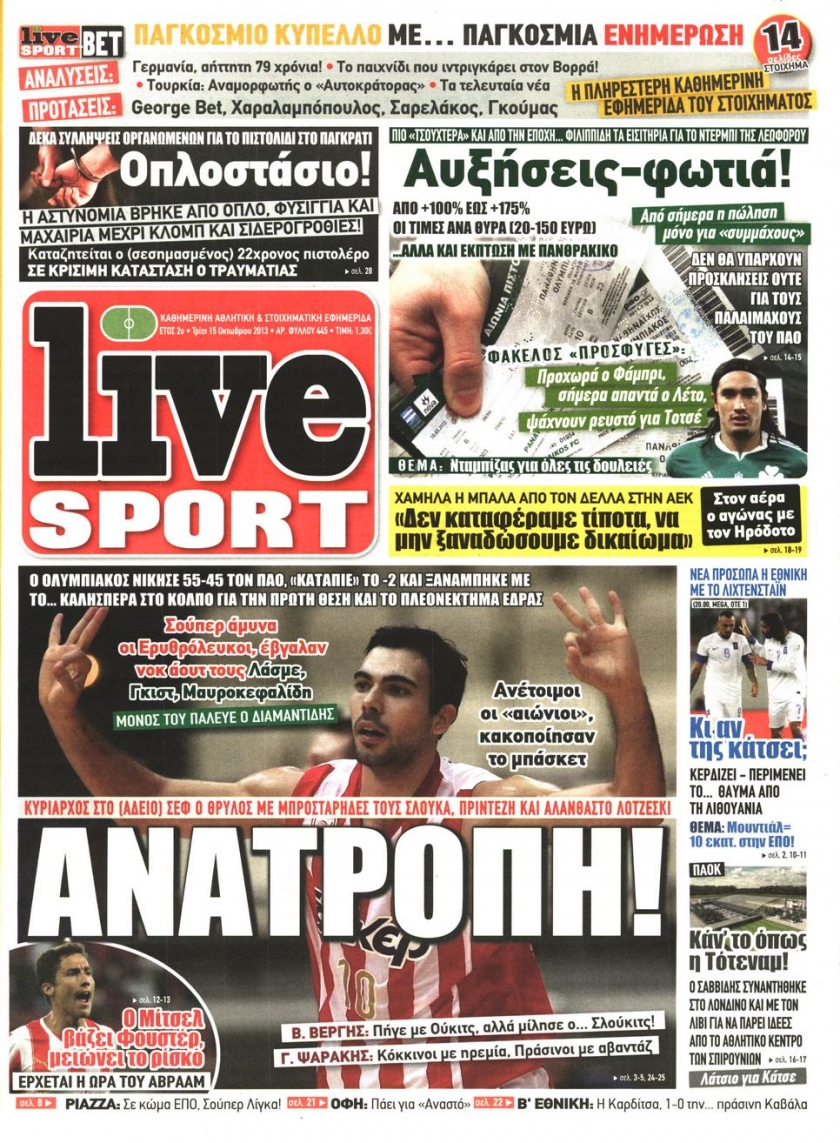 Οι αθλητικές εφημερίδες Enikos Newsroom 08:39, Τρίτη 15 Οκτωβρίου 2013 Media Οι αθλητικές εφημερίδες Διαβάστε τα πρωτοσέλιδα των αθλητικών εφημερίδων: ΑΘΛΗΤΙΚΕΣ ΕΦΗΜΕΡΙΔΕΣ ΕΦΗΜΕΡΙΔΕΣ ΠΡΩΤΟΣΕΛΙΔΑ Μοιράσου το: σχολίασε κι εσύ (0 σχόλια) Ακολουθήστε το enikos.gr στο Google News και μάθετε πρώτοι όλες τις ειδήσεις Δείτε όλες τις τελευταίες ειδήσεις από την Ελλάδα και τον Κόσμο στο enikos.gr Ειδήσεις Ροή Ειδήσεων 19 λεπτά πριν Δολοφονία στη Νέα Πέραμο: Με 10 σφαίρες πισώπλατα εκτέλεσαν τον 27χρονο – Τον κράτησαν 6 μέρες όμηρο; 6 ώρες πριν Κυριάκος Μητσοτάκης: Πρόθεσή μας είναι μία γενναία, μία τολμηρή Συνταγματική Αναθεώρηση – Είναι καιρός για μεγάλες τομές 53 λεπτά πριν Κτηνοτρόφοι σε απόγνωση: Διαμαρτυρίες ότι δεν εφαρμόζεται στην πράξη η αναστολή πληρωμής φόρων και εισφορών παρά τη θανάτωση των ζώων τους 2 ώρες πριν Καραμανλής από Καλαμάτα: Να ακούμε τους πιο έμπειρους, αντί να τους διαγράφουμε κυριολεκτικά ή μεταφορικά 4 ώρες πριν Μαρινάκης για Αλεξοπούλου: «Απευθυνόταν στην αντιπολίτευση, όχι στους πολίτες» – Αντιδράσεις για «το τζάμπα πέθανε» 59 λεπτά πριν Τα 3 ζώδια που θα έχουν την τύχη με το μέρος τους έως τις 8 Φεβρουαρίου – «Αρπάξτε τις ευκαιρίες για το επόμενο βήμα στη ζωή σας» 6 ώρες πριν Γυναίκα αποκαλύπτει πώς έχασε 10 κιλά χωρίς στερήσεις – Το «σύστημα ανταμοιβής» που έκανε πιο εύκολη την απώλεια βάρους 5 ώρες πριν Γιατί βάζεις πολλά ξυπνητήρια για να σηκωθείς; Τα 8 χαρακτηριστικά που διαθέτουν οι άνθρωποι που δίνουν «μάχη» στο κρεβάτι 2 ώρες πριν Ο φλοιός της Γης αψηφά τους κανόνες και οι επιστήμονες μόλις ανακάλυψαν τον λόγο 3 λεπτά πριν Ιράκ: Δικαστικές έρευνες για πάνω από 1.300 κρατούμενους, μέλη του Ισλαμικού Κράτους 9 λεπτά πριν ΚΚΕ για συνταγματική αναθεώρηση: Θα καταθέσουμε τις δικές μας προτάσεις με κριτήριο την στήριξη των εργατικών λαϊκών δικαιωμάτων 14 λεπτά πριν Στο νοσοκομείο ο Κώστας Σόμμερ – «Προσέξτε την υγεία σας» 19 λεπτά πριν Δολοφονία στη Νέα Πέραμο: Με 10 σφαίρες πισώπλατα εκτέλεσαν τον 27χρονο – Τον κράτησαν 6 μέρες όμηρο; 23 λεπτά πριν Συνάντηση Τσιάρα με εκπροσώπους των αγροτικών μπλόκων της Καρδίτσας – Στόχος έως το καλοκαίρι να έχουν κλείσει βασικά ζητήματα ENIKOS NETWORK 5,2 εκατομμύρια Έλληνες έχουν κάνει προληπτικές εξετάσεις – Νέο πρόγραμμα «Προλαμβάνω» για τη νεφρική υγεία Ξαναπαίρνουμε το βάρος μετά τη διαλειμματική νηστεία; Τι αποκαλύπτει ειδικός του Harvard Λογαριασμοί ρεύματος Φεβρουαρίου 2026: Ανακοινώθηκαν τα πράσινα τιμολόγια – Δείτε αναλυτικά τις χρεώσεις ανά πάροχο ΔΥΠΑ: Νέο πρόγραμμα για την επιδοτούμενη απασχόληση και κατάρτιση ανέργων – Ποιοι μπορούν να κάνουν αίτηση Ευπάθεια στο moltbook ai αποκαλύπτει email, tokens σύνδεσης και api keys Αυτός είναι ο ρόλος της μικρής τρύπας στους νυχοκόπτες – «Είμαι ο μόνος που δεν το ήξερε;»» περισσότερα 16:30 , Δευτέρα 02 Φεβρουαρίου 2026 Οδύσσεια: Αναφορές ότι η Λουπίτα Νιόγκο θα υποδυθεί την «Ωραία Ελένη» – Έξαλλος ο Μασκ με τον Νόλαν Την έντονη αντίδραση του Έλον Μασκ προκάλεσαν δημοσιεύματα που κυκλοφορούν τις τελευταίες ώρες... 10:54 , Δευτέρα 02 Φεβρουαρίου 2026 Ακούστε το σχόλιο του Νίκου Χατζηνικολάου 2/2/2026 Ακούστε το σχόλιο του Νίκου Χατζηνικολάου στον ραδιοφωνικό σταθμό Realfm 97,8, τη Δευτέρα 2 Φε... 09:02 , Δευτέρα 02 Φεβρουαρίου 2026 Τα πάνω-κάτω στην ΕΡΤ λόγω Μουντιάλ Αλλαγή δεδομένων φέρνει το Παγκόσμιο Κύπελλο ποδοσφαίρου λόγω υψηλού κόστους. Το «Καλά θα πάει... 08:18 , Δευτέρα 02 Φεβρουαρίου 2026 Grammy 2026: Οι καλλιτέ