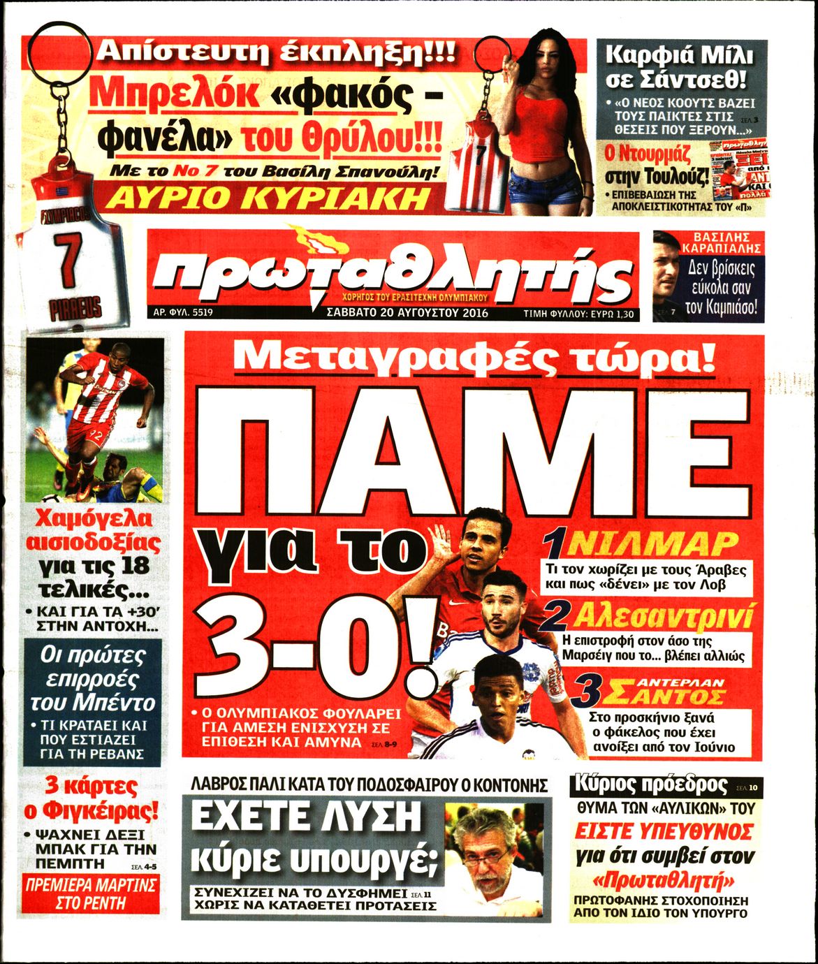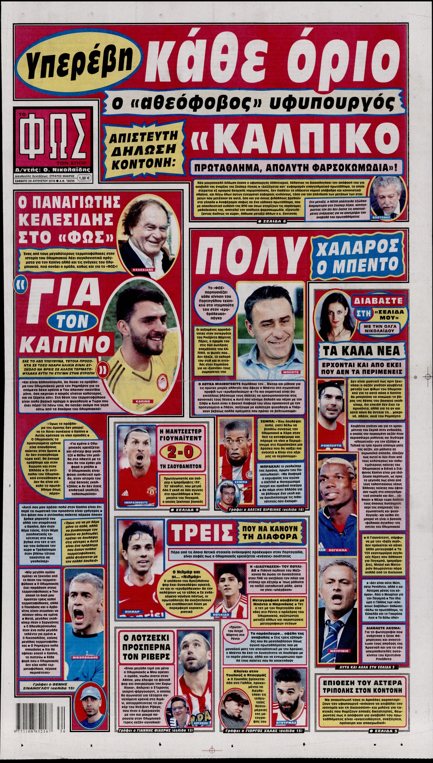 Oι αθλητικές εφημερίδες 20/8/2016 Enikos Newsroom 06:50, Σάββατο 20 Αυγούστου 2016 Media Διαβάστε τα σημερινά πρωτοσέλιδα των αθλητικών εφημερίδων: ΟΙΚΟΝΟΜΙΚΕΣ ΕΦΗΜΕΡΙΔΕΣ ΠΡΩΤΟΣΕΛΙΔΑ Μοιράσου το: σχολίασε κι εσύ (0 σχόλια) Ακολουθήστε το enikos.gr στο Google News και μάθετε πρώτοι όλες τις ειδήσεις Δείτε όλες τις τελευταίες ειδήσεις από την Ελλάδα και τον Κόσμο στο enikos.gr Ειδήσεις Ροή Ειδήσεων 2 ώρες πριν Εκτός ευρωομάδας ΣΥΡΙΖΑ ο Νίκος Παππάς μετά την επίθεση στον δημοσιογράφο Νίκο Γιαννόπουλο – Η μήνυση και οι νέες δηλώσεις 3 ώρες πριν «Αγριεύουν» οι αγρότες: «Δεν συντρέχει λόγος συνάντησης με τον πρωθυπουργό» – Ώρα αποφάσεων στη σύσκεψη της Πέμπτης 3 ώρες πριν Κυψέλη: Χωρίς την οικογένειά της δίπλα της απολογήθηκε η 16χρονη – «Της είχε επιτεθεί κάποιος για να την βιάσει, φοβήθηκε και κυκλοφορούσε με μαχαίρι» 2 ώρες πριν Politico: Το πρόβλημα της Ευρώπης δεν είναι το Βέλγιο αλλά ο Ντόναλντ Τραμπ 4 ώρες πριν Αλεξανδρούπολη: Πολυοργανική ανεπάρκεια λόγω υποσιτισμού η αιτία θανάτου του 3χρονου αγοριού 3 ώρες πριν Μυστήριο με τεράστιες κυκλικές πέτρες 200 κιλών – Ανακαλύφθηκαν τυχαία κατά τη διάρκεια οδικών έργων και κανείς δεν ξέρει από πού προέρχονται 4 ώρες πριν Ύπνος: Ειδικός εξηγεί τον πραγματικό λόγο που ξυπνάτε στις 4 τα ξημερώματα – Ο ρόλος των ορμονών και του κιρκάδιου ρυθμού 5 ώρες πριν Αριθμολογία: Οι άνθρωποι που έχουν γεννηθεί αυτές τις 4 ημερομηνίες, είναι τρυφεροί και αγαπούν ανιδιοτελώς 16 ώρες πριν 20 χρόνια τα Χριστούγεννα ξεκινούν στα Public με μεγάλη ποικιλία σε δώρα! 8 λεπτά πριν Μουντιάλ 2026: Η νέα ταξιδιωτική απαγόρευση του Ντόναλντ Τραμπ πλήττει (και) τους οπαδούς Σενεγάλης – Ακτής Ελεφαντοστού 20 λεπτά πριν Κυριάκος Μητσοτάκης: Στις Βρυξέλλες για την Σύνοδο Κορυφής ΕΕ και Δυτικών Βαλκανίων – Δείτε φωτογραφίες 32 λεπτά πριν Σάρα Εσκενάζυ: Η πρώτη ανάρτηση για το θάνατο του πατέρα της, Αλμπέρτο Εσκενάζυ και η επιθυμία της οικογένειας 48 λεπτά πριν Παρί Σεν Ζερμέν – Φλαμένγκο 2-1 πεν. (1-1 κ.δ.): Οι Γάλλοι σήκωσαν και το Διηπειρωτικό με ήρωα τον Σαφόνοφ που έπιασε 4 πέναλτι 1 ώρα πριν Βέλγους πολιτικούς και επικεφαλής χρηματοπιστωτικών ιδρυμάτων στοχοποιεί η Μόσχα για τα κατασχεθέντα περιουσιακά στοιχεία ENIKOS NETWORK Αϋπνία: Το κόλπο που θα σας βοηθήσει να κοιμηθείτε απόψε – Είναι απλό και έχει αποτέλεσμα 2,6 εκατομμύρια πολίτες έχουν ήδη εμβολιαστεί κατά της γρίπης ΕΛΣΤΑΤ: Τι δείχνουν τα νέα στοιχεία για τις ηλεκτρονικές παραγγελίες των επιχειρήσεων ΚΕΠΕ: Οι 3 διακριτές συμβολές των ΜμΕ και της μεταποίησης στην ελληνική οικονομία Χαρτογραφώντας το «σημείο χωρίς επιστροφή»: Για πρώτη φορά αποκαλύπτεται με λεπτομέρεια το ακανθώδες όριο της ατμόσφαιρας τ... Η Google καταργεί τη λειτουργία «dark web report» – Πώς θα μπορούν οι χρήστες να διαγράφουν τα δεδομένα τους περισσότερα 22:24 , Τετάρτη 17 Δεκεμβρίου 2025 Το Σπίτι Δίπλα Στο Ποτάμι: Σε κίνδυνο η υγεία του Απόστολου – Τι θα δούμε απόψε “Το Σπίτι Δίπλα στο Ποτάμι” ξετυλίγει το νήμα της ζωής των πέντε αδελφών με καταισ... 21:14 , Τετάρτη 17 Δεκεμβρίου 2025 Παιχνίδια Εκδίκησης: Θα καταφέρει ο Χρήστος να κλονίσει την εμπιστοσύνη της Μάγιας απέναντι στον Άγη; Τα «Παιχνίδια Εκδίκησης» έρχονται απόψε στις 22:30, στον Αντ1, με το τελευταίο επεισόδιο της χ... 20:57 , Τετάρτη 17 Δεκεμβρίου 2025 Άγιος Έρωτας: Η Χλόη καταθέτει εναντίον του πατέρα της και ο Χάρης αποκαλύπτει στον Κλεάνθη ότι δεν είναι ο βιολογικός του πατέρας. Γεμάτο αποκαλύψεις είναι το νέο 