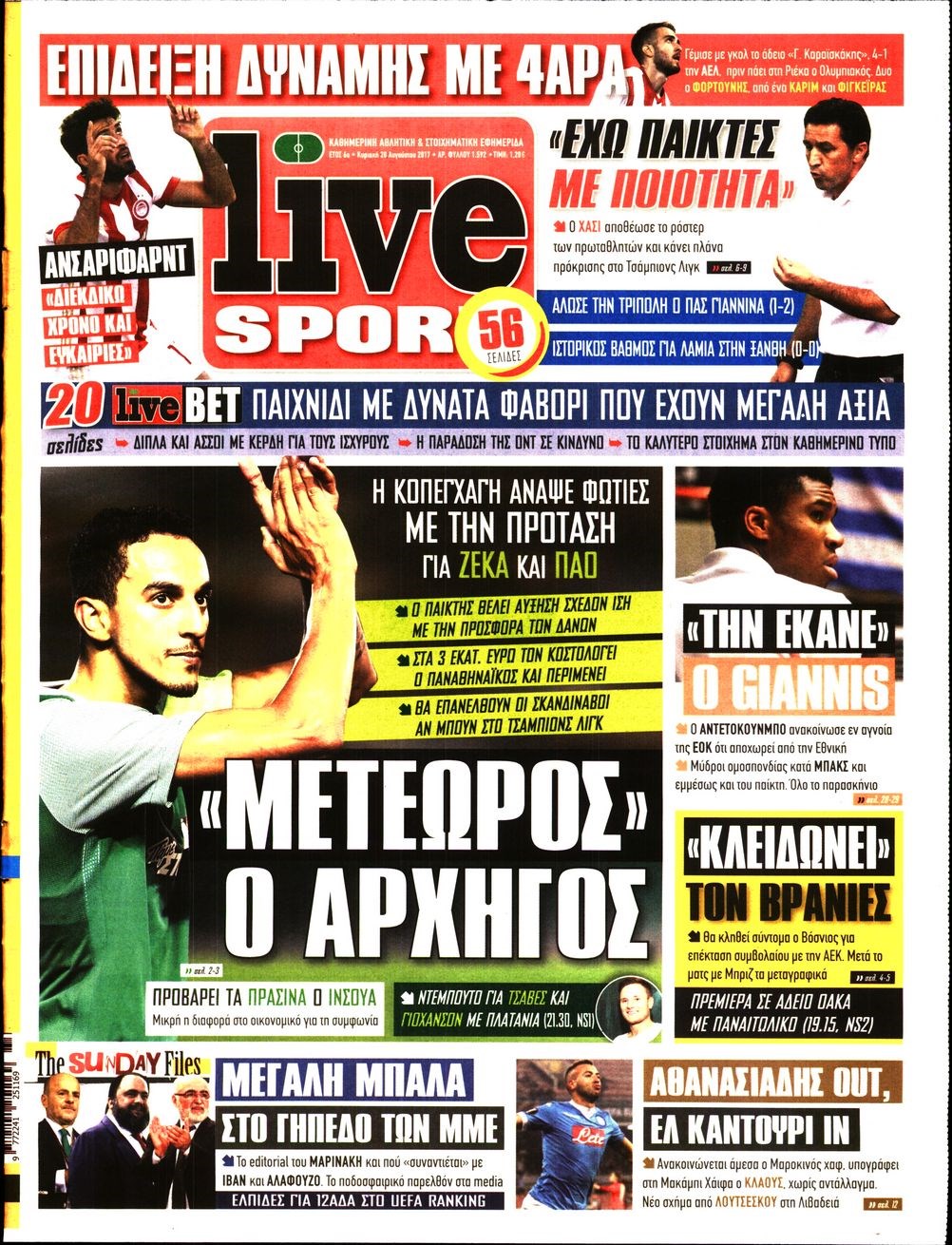Οι αθλητικές εφημερίδες 20/8/2017 Enikos Newsroom 07:45, Κυριακή 20 Αυγούστου 2017 Media Διαβάστε τα σημερινά πρωτοσέλιδα των αθλητικών εφημερίδων: ΑΘΛΗΤΙΚΕΣ ΕΦΗΜΕΡΙΔΕΣ ΠΡΩΤΟΣΕΛΙΔΑ Μοιράσου το: σχολίασε κι εσύ (0 σχόλια) Ακολουθήστε το enikos.gr στο Google News και μάθετε πρώτοι όλες τις ειδήσεις Δείτε όλες τις τελευταίες ειδήσεις από την Ελλάδα και τον Κόσμο στο enikos.gr Ειδήσεις Ροή Ειδήσεων 4 ώρες πριν Μεσόγειος: Η διαδρομή του ρωσικού τάνκερ «Qendil» και η στοχευμένη επίθεση της Ουκρανίας με drone – Ο Πούτιν προειδοποίησε για αντίποινα 27 λεπτά πριν Αγρότες: Έκλεισαν για μία ώρα την παρακαμπτήρια της Ιόνιας Οδού στη θέση Χαλίκι 2 ώρες πριν Εμπλοκή και αερομαχίες με οπλισμένα τουρκικά F-16 στο Αιγαίο 2 ώρες πριν Πούτιν: «Ναι, είμαι ερωτευμένος» – Βίντεο από τη σπάνια προσωπική παραδοχή του 31 λεπτά πριν Ανδρέας Λυκουρέντζος: Υπέβαλε την παραίτησή του ο πρόεδρος του ΕΛΓΑ, αλλά δεν έγινε δεκτή – Όλο το παρασκήνιο 41 λεπτά πριν Αριθμολογία: Οι άνθρωποι που έχουν γεννηθεί αυτές τις 4 ημερομηνίες, συχνά παρεξηγούνται – «Η καλοσύνη τους κρύβει τεράστια δύναμη» 3 ώρες πριν Μήπως έχετε χάσει τον εαυτό σας στη σχέση σας; 7 «αθόρυβες» υποχωρήσεις που μάλλον κάνατε, χωρίς να το συνειδητοποιήσετε 2 ώρες πριν Ξεχάστε το καθάρισμα το Σαββατοκύριακο: Ο «κανόνας των 20 λεπτών» που θα σας λύσει τα χέρια 5 ώρες πριν Κουίζ για την παλιά Αθήνα: Αναγνωρίζετε την περιοχή; Έχετε περάσει 100% από εκεί 4 λεπτά πριν Ολυμπιακός – Βιλερμπάν: Μάτωσε στο πρόσωπο ο Παπανικολάου έπειτα από αγκωνιά του Βοτιέ – ΦΩΤΟ 12 λεπτά πριν Συνεχίζει να προκαλεί ο Μίτσκοσκι: «Για μένα το όνομα Μακεδονία είναι ιερό» 22 λεπτά πριν Ο Γιάννης Κακλέας σκηνοθετεί Βερόνικα Δαβάκη και Ιβάν Σβιτάιλο στη «Locandiera» 27 λεπτά πριν Αγρότες: Έκλεισαν για μία ώρα την παρακαμπτήρια της Ιόνιας Οδού στη θέση Χαλίκι 31 λεπτά πριν Ανδρέας Λυκουρέντζος: Υπέβαλε την παραίτησή του ο πρόεδρος του ΕΛΓΑ, αλλά δεν έγινε δεκτή – Όλο το παρασκήνιο ENIKOS NETWORK Το ΕΚΑΒ τιμήθηκε από την Ακαδημία Αθηνών για τα 40 χρόνια προσφοράς του Έχετε πραγματικά μεγάλη καρδιά; 10 χαρακτηριστικά όσων έχουν καλοσύνη Έρχονται νέες προσλήψεις σε Δήμο – Όλες οι λεπτομέρειες Επίδομα παιδιού: Πότε ανοίγει ξανά η πλατφόρμα για τις αιτήσεις Χαρτογραφώντας το «σημείο χωρίς επιστροφή»: Για πρώτη φορά αποκαλύπτεται με λεπτομέρεια το ακανθώδες όριο της ατμόσφαιρας τ... Η Google καταργεί τη λειτουργία «dark web report» – Πώς θα μπορούν οι χρήστες να διαγράφουν τα δεδομένα τους περισσότερα 20:37 , Παρασκευή 19 Δεκεμβρίου 2025 Don’t Forget The Lyrics: Η Έλλη Κοκκίνου υποδέχεται 4 παίκτες που θα κάνουν τα πάντα για να μη χάσουν ούτε… μισή λέξη από τους στίχους Το «Don’t Forget The Lyrics» επιστρέφει απόψε, Παρασκευή 19 Δεκεμβρίου, στις 21:00 με νέο επει... 19:31 , Παρασκευή 19 Δεκεμβρίου 2025 GNTM: Απόψε ο μεγάλος τελικός για τους 4 φιναλίστ Έπειτα από μήνες γεμάτους μόδα, δημιουργία και έντονες αναμετρήσεις, το GNTM 2025 κορυφώνεται,... 18:11 , Παρασκευή 19 Δεκεμβρίου 2025 Το σόι σου: Ο Άρης έρχεται στην Ελλάδα για τις γιορτές των Χριστουγέννων – Τι θα δούμε στο αποψινό εορταστικό επεισόδιο Ένα απολαυστικό, εορταστικό επεισόδιο της σειράς “Το σόι σου”, γεμάτο ευτράπελα αλ... 15:15 , Παρασκευή 19 Δεκεμβρίου 2025 Την Κυριακή με τη Realnews: Ό,τι και αν αγοράσεις, σκανάρεις και κερδίζεις! Την Κυριακή με τη Realnews: Ό,τι και αν αγοράσεις, σκανάρεις και κερδίζεις! Με το PADU app, το... ΤΕΛΕΥΤΑΙΕΣ ΕΙΔΗΣΕΙΣ 4 λεπτά πριν Ολυμπιακός – Βιλερμπάν: Μάτωσε στο πρόσωπο ο... 12 λεπτά πριν Συ