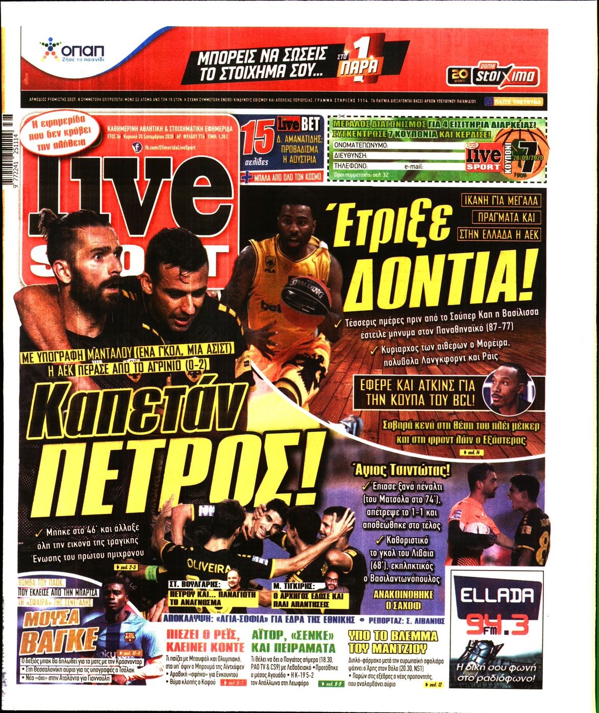 Οι αθλητικές εφημερίδες 20/9/2020 Διονύσης Νίκκας 08:11, Κυριακή 20 Σεπτεμβρίου 2020 Media Διαβάστε τα πρωτοσέλιδα των αθλητικών εφημερίδων… ΑΘΛΗΤΙΚΕΣ ΕΦΗΜΕΡΙΔΕΣ Μοιράσου το: σχολίασε κι εσύ (0 σχόλια) Ακολουθήστε το enikos.gr στο Google News και μάθετε πρώτοι όλες τις ειδήσεις Δείτε όλες τις τελευταίες ειδήσεις από την Ελλάδα και τον Κόσμο στο enikos.gr Ειδήσεις Ροή Ειδήσεων 8 ώρες πριν Χριστούγεννα στα μπλόκα: Επιμένουν στις κινητοποιήσεις τους οι αγρότες – Ανοίγουν τα διόδια το Σαββατοκύριακο 8 ώρες πριν Ουκρανία: Η άνευ προηγουμένου επίθεση σε ρωσικό τάνκερ στη Μεσόγειο και το μήνυμα προς στον Πούτιν – Το «μακρύ χέρι» του Κιέβου 7 ώρες πριν Πούτιν: Τα μηνύματα σε Ευρώπη και ΝΑΤΟ από το μαραθώνιο «σόου» του – Η απαίτηση για «σεβασμό» και η ειρήνη «με τους όρους» της Μόσχας 6 ώρες πριν ΗΠΑ: Η κυβέρνηση του Ντόναλντ Τραμπ άρχισε να δημοσιοποιεί τα αρχεία Έπσταϊν 7 ώρες πριν Άνω Λιόσια: Πυροβολισμοί σε επιχείρηση με χαλιά – Εντοπίστηκαν 10 κάλυκες 18 λεπτά πριν Αυγά: Πόσα μπορείτε να τρώτε την ημέρα με ασφάλεια για μέγιστη πρόσληψη πρωτεΐνης 48 λεπτά πριν Τα ζώδια σήμερα, Σάββατο 20 Δεκεμβρίου: Παρθένοι, το σύμπαν σας δίνει το κλειδί 7 ώρες πριν Ανακαλύφθηκαν αρχαία χρυσά νομίσματα 2.200 ετών που απεικονίζουν τον θεό Απόλλωνα – Η άγνωστη σύνδεση με τον Φίλιππο Β΄ της Μακεδονίας 8 ώρες πριν Ύπνος: Μια κρυφή κατάσταση του εγκεφάλου πριν από τον ύπνο μπορεί να είναι το “κλειδί” για υψηλή ευφυΐα και δημιουργικότητα 2 λεπτά πριν Οπτική ψευδαίσθηση: Μόνο αν είσαι ο Σέρλοκ Χολμς θα βρεις τον αριθμό «87» σε 7 δευτερόλεπτα 9 λεπτά πριν Σαρωτικοί οι έλεγχοι στους δρόμους ενόψει εορτών – Μπλόκα της τροχαίας σε κεντρικές αρτηρίες της Αττικής 18 λεπτά πριν Αυγά: Πόσα μπορείτε να τρώτε την ημέρα με ασφάλεια για μέγιστη πρόσληψη πρωτεΐνης 24 λεπτά πριν Σαν σήμερα 20 Δεκεμβρίου: Τα σημαντικότερα γεγονότα της ημέρας 29 λεπτά πριν Οι οικονομικές εφημερίδες 20/12/2025 ENIKOS NETWORK Το ΕΚΑΒ τιμήθηκε από την Ακαδημία Αθηνών για τα 40 χρόνια προσφοράς του Έχετε πραγματικά μεγάλη καρδιά; 10 χαρακτηριστικά όσων έχουν καλοσύνη Αναστολή μέτρων αναγκαστικής εκτέλεσης για κτηνοτρόφους που πλήττονται από την ευλογιά των αιγοπροβάτων Πλήρης επάρκεια προϊόντων στις λαϊκές της Αττικής, παρά τις αγροτικές κινητοποιήσεις – Τι απαντούν οι πωλητές Χαρτογραφώντας το «σημείο χωρίς επιστροφή»: Για πρώτη φορά αποκαλύπτεται με λεπτομέρεια το ακανθώδες όριο της ατμόσφαιρας τ... Η Google καταργεί τη λειτουργία «dark web report» – Πώς θα μπορούν οι χρήστες να διαγράφουν τα δεδομένα τους περισσότερα 05:48 , Σάββατο 20 Δεκεμβρίου 2025 Οι οικονομικές εφημερίδες 20/12/2025 Διαβάστε τα πρωτοσέλιδα από τις οικονομικές εφημερίδες, σήμερα 20/12/2025. 05:43 , Σάββατο 20 Δεκεμβρίου 2025 Οι αθλητικές εφημερίδες 20/12/2025 Διαβάστε τα πρωτοσέλιδα από τις αθλητικές εφημερίδες, σήμερα 20/12/2025. 05:38 , Σάββατο 20 Δεκεμβρίου 2025 Οι πολιτικές εφημερίδες 20/12/2025 Διαβάστε τα πρωτοσέλιδα από τις πολιτικές εφημερίδες, σήμερα 20/12/2025. 04:20 , Σάββατο 20 Δεκεμβρίου 2025 Αγγελική Νικολούλη: Τα συλλυπητήρια για την απώλεια της Ειρήνης Μαρινάκη Τα συλληπητήρια στον πρόεδρο του Mega, τον Βαγγέλη Μαρινάκη, για την απώλεια της μητέρας του Ε... ΤΕΛΕΥΤΑΙΕΣ ΕΙΔΗΣΕΙΣ 9 λεπτά πριν Σαρωτικοί οι έλεγχοι στους δρόμους ενόψει εορτών –... 18 λεπτά πριν Αυγά: Πόσα μπορείτε να τρώτε την ημέρα με ασφάλεια για... 24 λεπτά πριν Σαν σήμερα 20 Δεκεμβρίου: Τα σημαντικότερα γεγονότα... 29 λεπτά πριν Οι οικονομικές εφημερίδες 