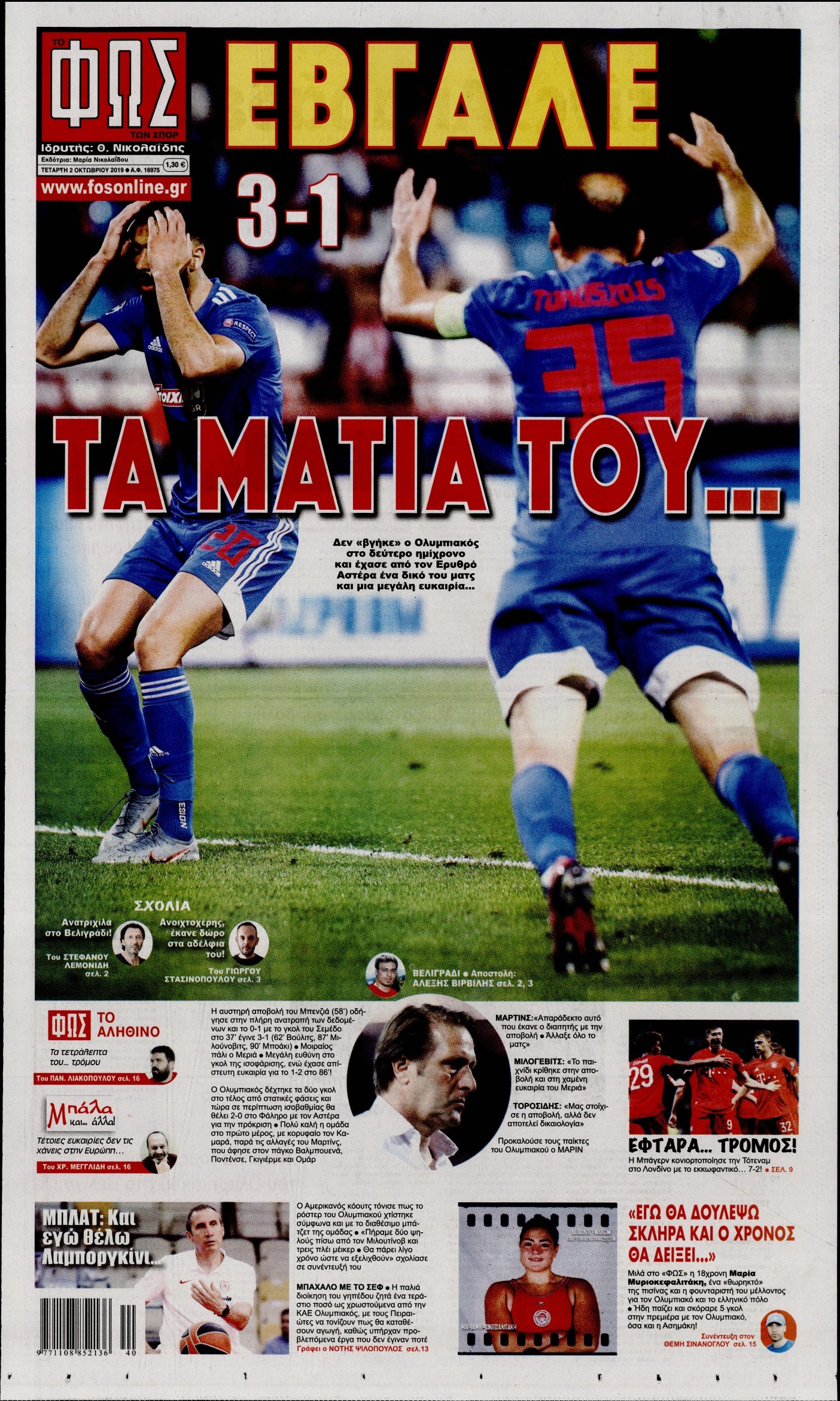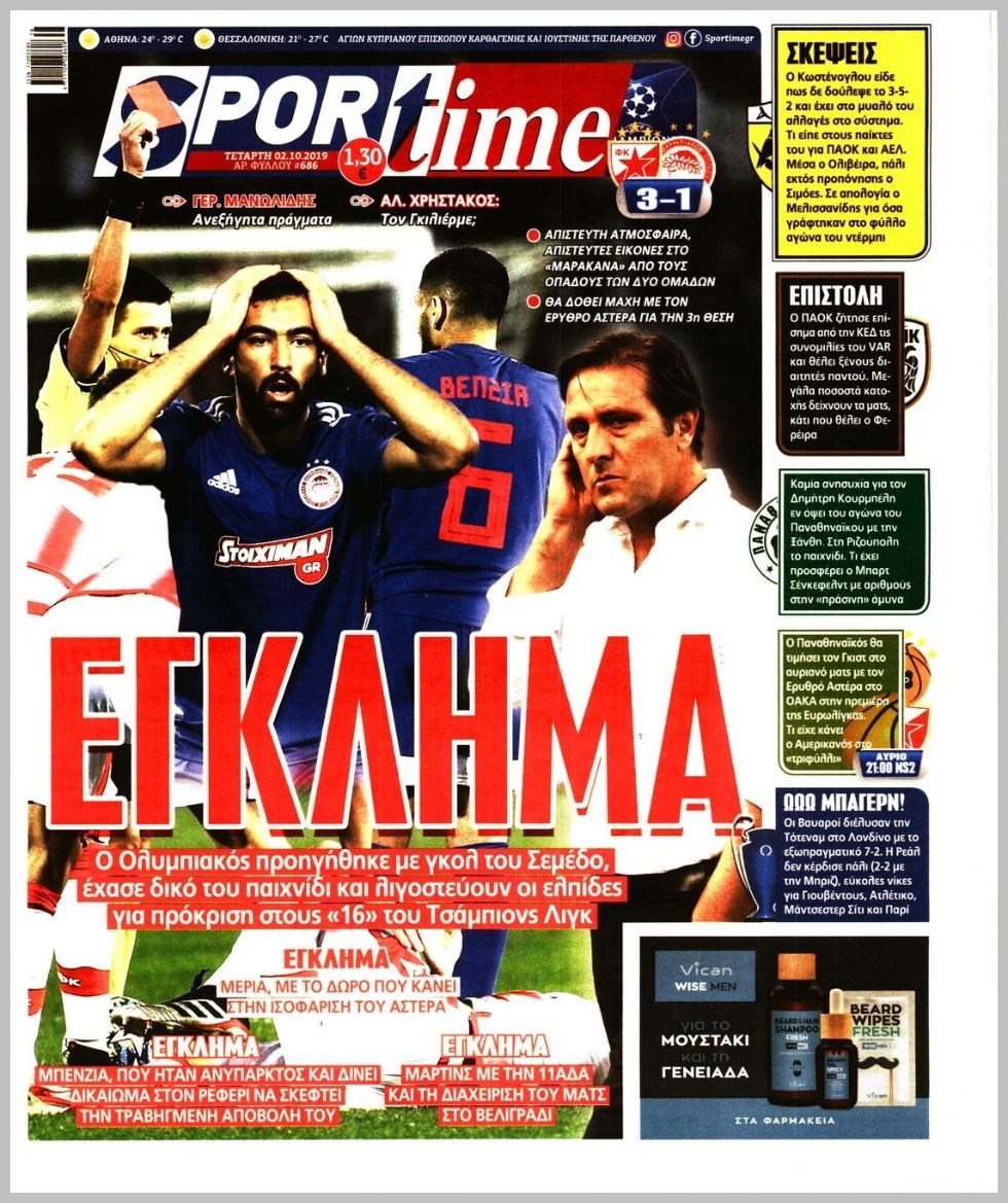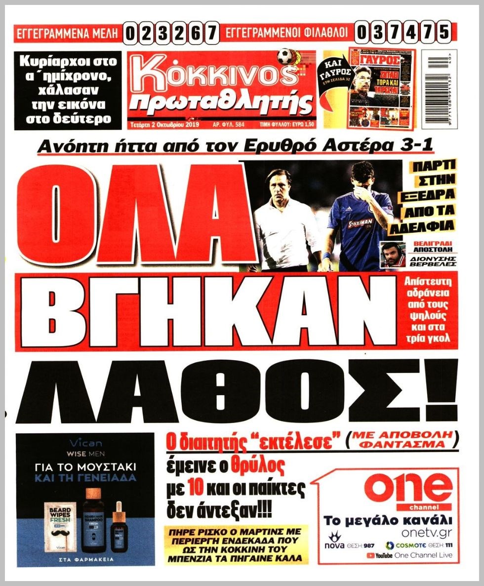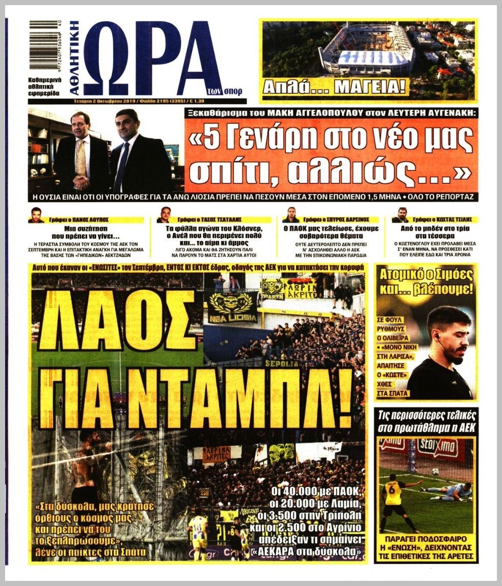 Οι αθλητικές εφημερίδες 2/10/19 Διονύσης Νίκκας 05:55, Τετάρτη 02 Οκτωβρίου 2019 Media Διαβάστε τα πρωτοσέλιδα των αθλητικών εφημερίδων… ΑΘΛΗΤΙΚΕΣ ΕΦΗΜΕΡΙΔΕΣ Μοιράσου το: σχολίασε κι εσύ (0 σχόλια) Ακολουθήστε το enikos.gr στο Google News και μάθετε πρώτοι όλες τις ειδήσεις Δείτε όλες τις τελευταίες ειδήσεις από την Ελλάδα και τον Κόσμο στο enikos.gr Ειδήσεις Ροή Ειδήσεων 51 λεπτά πριν Συνεδρίασε το ΚΥΣΕΑ: Παρατείνονται οι θητείες των Αρχηγών σε Ένοπλες Δυνάμεις και Σώματα Ασφαλείας 4 ώρες πριν Αποστολή στη Λευκωσία: Η μέθοδος Doppelganger της Ρωσίας και ο υβριδικός πόλεμος που έχει χτυπήσει και στην Ελλάδα 3 ώρες πριν Αγρότες: Το μεσημέρι στη Νίκαια η συνεδρίαση της πανελλαδικής επιτροπής – Πρόταση για συλλαλητήριο στην Αθήνα την Τρίτη 4 ώρες πριν Τι σημαίνει η συμφωνία ΕΕ – Mercosur για τη χώρα μας – Οι εξαγωγικές προοπτικές για τα ελληνικά αγροδιατροφικά προϊόντα 2 ώρες πριν Πειραιάς: Δεμένα πλοία και ακυρώσεις λόγω των ισχυρών ανέμων – Δεν έχει τεθεί σε ισχύ γενικό απαγορευτικό απόπλου 2 ώρες πριν Τα 4 ζώδια που αλλάζουν «πρόσωπο» – «Δεν υπάρχει πισωγύρισμα, μην αγνοείτε άλλο αυτά που νιώθετε» 1 ώρα πριν Γυναίκα που έχασε βάρος χωρίς στερήσεις αποκαλύπτει: «Αυτά είναι τα 3 πράγματα που με βοήθησαν να μειώσω το σωματικό λίπος σε 1 χρόνο» 3 ώρες πριν Χώρισε με την σύντροφό του επειδή ανακάλυψε πως έχει παιδιά – «Μου είπε πως το κράτησε κρυφό γιατί δεν ήθελε να με τρομάξει» 4 ώρες πριν Εκπληκτική ανακάλυψη σε αρχαία ελληνική πόλη – Βρέθηκε άθικτη κεραμική γραφίδα του 5ου αιώνα π.Χ με τη μορφή του Διονύσου 8 δευτερόλεπτα πριν Θεσσαλονίκη: Δικογραφία σε βάρος εκπροσώπου εταιρείας για περιβαλλοντική ρύπανση 18 λεπτά πριν Φρίκη για 13χρονη που είχε εξαφανιστεί στη Θεσσαλονίκη – Διέμενε στο σπίτι 24χρονου που την βίαζε και της έδινε ναρκωτικά 27 λεπτά πριν Κρήτη: Καρέ καρέ οι κινήσεις διαρρήκτη σε πρακτορείο τυχερών παιχνιδιών στα Χανιά 35 λεπτά πριν Συναγερμός από την Περιφέρεια Αττικής για το νερό της Αίγινας 40 λεπτά πριν Ελένη Φουρέιρα: Μοιράστηκε τρυφερές φωτογραφίες κρατώντας αγκαλιά τον γιο της ENIKOS NETWORK Ο RSV απειλεί τους ηλικιωμένους-Νέα δεδομένα για τον εμβολιασμό 3 συμπτώματα που «ψιθυρίζουν» και 1 που «φωνάζει» ότι κάτι δεν πάει καλά με την υγεία σας, σύμφωνα με αγγειοχειρουργό Δήμος προσλαμβάνει 37 άτομα διαφόρων ειδικοτήτων: Σήμερα αρχίζει η υποβολή αιτήσεων- Όλες οι λεπτομέρειες Δημοσιονομική υπεραπόδοση το 2025 με πρωτογενές πλεόνασμα άνω του στόχου Ο Google Assistant θα παραμείνει λίγο περισσότερο για ορισμένους χρήστες Android Τεστ προσωπικότητας: Το βάζο που θα επιλέξετε αποκαλύπτει πώς λύνετε προβλήματα στη ζωή σας περισσότερα 10:00 , Σάββατο 10 Ιανουαρίου 2026 Αυτή την Κυριακή με τη Realnews: Μυστηριώδης εξαφάνιση – Ένα καθηλωτικό θρίλερ γεμάτο αγωνία από τον διεθνώς αναγνωρισμένο συγγραφέα Rick Mofina Αυτή την Κυριακή με τη Realnews: Μυστηριώδης εξαφάνιση –Ένα καθηλωτικό θρίλερ γεμάτο αγω... 09:27 , Σάββατο 10 Ιανουαρίου 2026 Την Κυριακή με τη Realnews: Ό,τι και αν αγοράσεις, σκανάρεις και κερδίζεις! Την Κυριακή με τη Realnews: Ό,τι και αν αγοράσεις, σκανάρεις και κερδίζεις! Με το PADU app, το... 08:22 , Σάββατο 10 Ιανουαρίου 2026 Το παιδί: Ο Υάκινθος επιστρέφει και οι χωριανοί φτάνουν στο όριο της τρέλας Η αγαπημένη μαύρη μαύρη κοινωνική κωμωδία «Το παιδί» επιστρέφει με νέα επεισόδια και… απροσδόκ... 07:30 , Σάββατο 10 Ιανουαρίου 2026 Οι αθλητικές μεταδόσεις 10/1/2026 Τα τρία παιχνίδια, με τα οποία ανοίγει η αυλαία της 21ης 
