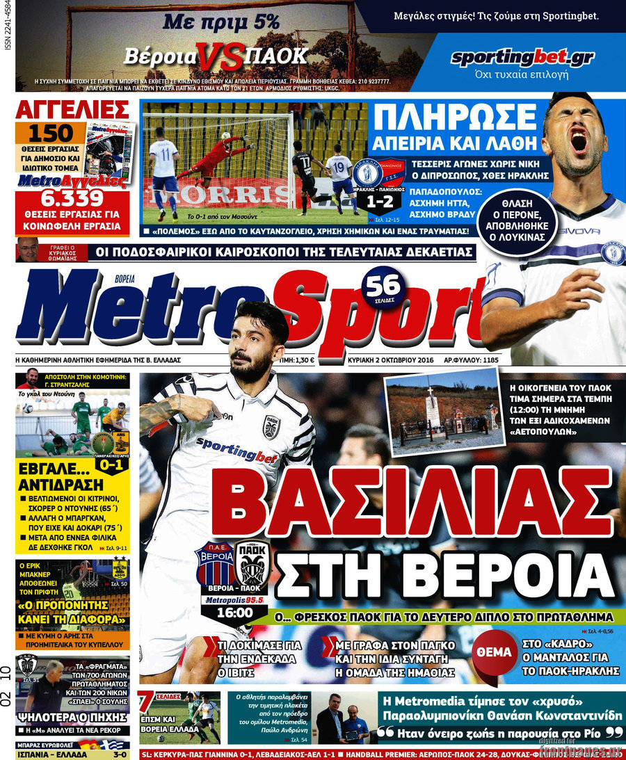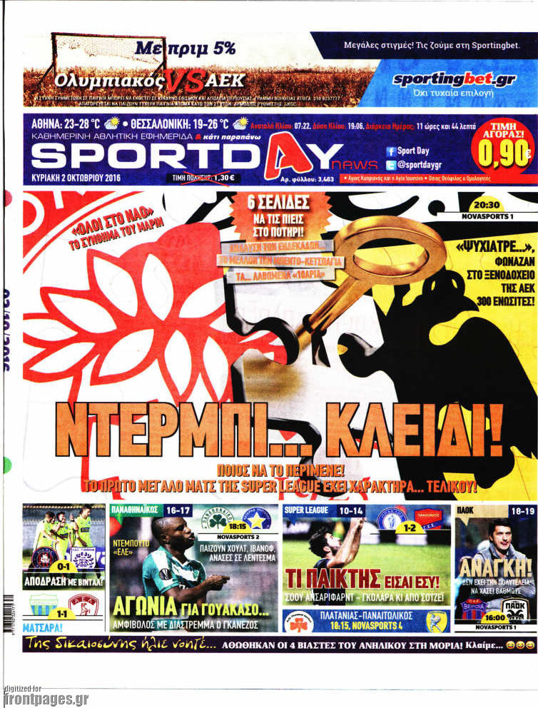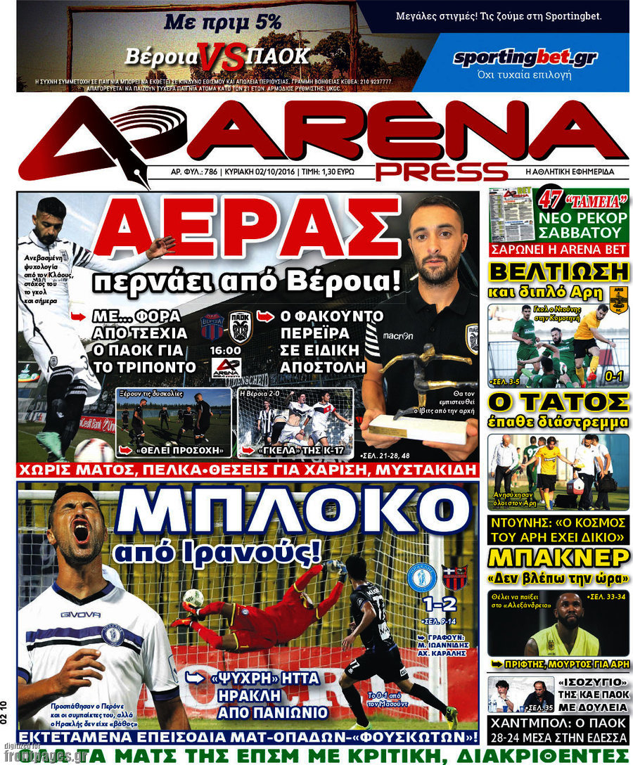 Οι αθλητικές εφημερίδες 2/10/2016 Enikos Newsroom 06:54, Κυριακή 02 Οκτωβρίου 2016 Media Διαβάστε τα σημερινά πρωτοσέλιδα των αθλητικών εφημερίδων: ΑΘΛΗΤΙΚΕΣ ΕΦΗΜΕΡΙΔΕΣ ΠΡΩΤΟΣΕΛΙΔΑ Μοιράσου το: σχολίασε κι εσύ (0 σχόλια) Ακολουθήστε το enikos.gr στο Google News και μάθετε πρώτοι όλες τις ειδήσεις Δείτε όλες τις τελευταίες ειδήσεις από την Ελλάδα και τον Κόσμο στο enikos.gr Ειδήσεις Ροή Ειδήσεων 25 λεπτά πριν Αγρότες: Πολύωροι αποκλεισμοί και σήμερα στα τελωνεία Ευζώνων, Νίκης, Προμαχώνα και Εξοχής 3 ώρες πριν Στεγαστικό: Όλο το σχέδιο για περισσότερα και φθηνότερα ενοικιαζόμενα σπίτια 41 λεπτά πριν Κυψέλη: Μαθητές κλείδωσαν τους καθηγητές μέσα στο Γυμνάσιο μετά την επίθεση με μαχαίρι 2 ώρες πριν Προϋπολογισμός 2026: Τα μηνύματα από την ομιλία Μητσοτάκη και τα «καρφιά» με πολλαπλούς αποδέκτες 2 ώρες πριν Ρομπ Ράινερ: Το δείπνο με τους Ομπάμα που δεν έγινε ποτέ και νέα στοιχεία για τον «καβγά» στο πάρτι – Βίντεο με τον γιο του να περιφέρεται κοντά στο σπίτι της τραγωδίας 4 ώρες πριν Οπτική ψευδαίσθηση: Μόνο αν είσαι ο Σέρλοκ Χολμς θα βρεις τον σκύλο σε 15 δευτερόλεπτα 4 ώρες πριν Τα ζώδια σήμερα, Τετάρτη 17 Δεκεμβρίου: Κριοί, η αυτοπεποίθησή σας ενισχύεται 2 ώρες πριν Νεολιθικός σκύλος βρέθηκε προσεκτικά θαμμένος στον βυθό λίμνης – Δίπλα του βρέθηκε ένα στιλέτο 57 λεπτά πριν Έλαβε τελεσίγραφο από τη σύντροφό του – «Μου είπε πως ή θα της κάνω πρόταση στα δύο χρόνια σχέσης ή θα με χωρίσει» 5 λεπτά πριν Αταμάν: Ξέσπασε μετά τη νίκη του Παναθηναϊκού για τα συνθήματα των οπαδών της Φενέρμπαχτσε – «10.000 αμόρφωτοι Τούρκοι έβριζαν τη μάνα μου» 10 λεπτά πριν Καιρός: Αλλάζει το σκηνικό – Βροχερά τα Χριστούγεννα, κρύο και χιόνια την Πρωτοχρονιά 15 λεπτά πριν Ανδρέας Παναγιωτόπουλος: Δεν ψήφισε στον προϋπολογισμό για να πάει στην εκδήλωση του Αλέξη Τσίπρα – «Μείζονος πολιτικής σημασίας η μεγάλη συγκέντρωση που έκανε» 20 λεπτά πριν Ανδρουλάκης: Τα έξι σημεία του σχεδίου για τον πρωτογενή τομέα που κατέθεσε στη Βουλή 25 λεπτά πριν Αγρότες: Πολύωροι αποκλεισμοί και σήμερα στα τελωνεία Ευζώνων, Νίκης, Προμαχώνα και Εξοχής ENIKOS NETWORK Αδενώματα Υπόφυσης: Μια πάθηση καλοήθης, αλλά όχι αθώα Χρόνια Αναπνευστικά Νοσήματα: 400.000 θάνατοι ετησίως στην Ευρώπη Λεωφορεία: Στάση εργασίας πραγματοποιούν σήμερα οι εργαζόμενοι-Δείτε τις ώρες Έρχεται «νοικοκύρεμα » στα ακίνητα- Τι πρέπει να γνωρίζουν οι πολίτες Σύγχρονος Νοστράδαμος: Προειδοποιεί για «μεγάλο γεγονός» τους επόμενους μήνες που θα συγκλονίσει τη Βρετανία και τον κόσμο Τεστ παρατηρητικότητας: Μπορείτε να βρείτε τις 3 διαφορές στις εικόνες με έναν πιγκουίνο σε 14 δευτερόλεπτα περισσότερα 09:08 , Τετάρτη 17 Δεκεμβρίου 2025 Τηλεθέαση (16/12): Ανακατατάξεις στην πρωινή ψυχαγωγική ζώνη Ξεκάθαρη πρωτιά στην τηλεθέαση για την «Super Κατερίνα» στο δυναμικό κοινό με ποσοστό 18,5%, α... 08:00 , Τετάρτη 17 Δεκεμβρίου 2025 Την Κυριακή με τη Realnews: Δωροεπιταγή 10€ Δωροεπιταγή αξίας 10€ για αγορές άνω των 60€ από τα πολυκαταστήματα FactoryOutlet H προσφορά ι... 07:00 , Τετάρτη 17 Δεκεμβρίου 2025 Την Κυριακή με τη Realnews: Ό,τι και αν αγοράσεις, σκανάρεις και κερδίζεις! Την Κυριακή με τη Realnews: Ό,τι και αν αγοράσεις, σκανάρεις και κερδίζεις! Με το PADU app, το... 05:48 , Τετάρτη 17 Δεκεμβρίου 2025 Οι οικονομικές εφημερίδες 17/12/2025 Διαβάστε τα πρωτοσέλιδα από τις οικονομικές εφημερίδες, σήμερα 17/12/2025. ΤΕΛΕΥΤΑΙΕΣ ΕΙΔΗΣΕΙΣ 5 λεπτά πριν Αταμάν: Ξέσπασε μετά τη νίκη του Παναθηναϊκού για τα... 10 λεπτά πριν Καιρός: Αλλάζει το σκην