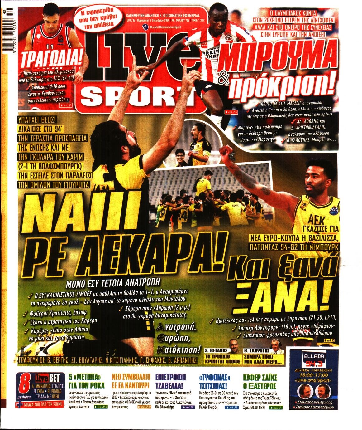 Οι αθλητικές εφημερίδες 2/10/2020 Διονύσης Νίκκας 06:50, Παρασκευή 02 Οκτωβρίου 2020 Media Διαβάστε τα πρωτοσέλιδα των αθλητικών εφημερίδων… ΑΘΛΗΤΙΚΕΣ ΕΦΗΜΕΡΙΔΕΣ Μοιράσου το: σχολίασε κι εσύ (0 σχόλια) Ακολουθήστε το enikos.gr στο Google News και μάθετε πρώτοι όλες τις ειδήσεις Δείτε όλες τις τελευταίες ειδήσεις από την Ελλάδα και τον Κόσμο στο enikos.gr Ειδήσεις Ροή Ειδήσεων 9 ώρες πριν Χριστούγεννα στα μπλόκα: Επιμένουν στις κινητοποιήσεις τους οι αγρότες – Ανοίγουν τα διόδια το Σαββατοκύριακο 2 ώρες πριν Σαρωτικοί οι έλεγχοι στους δρόμους ενόψει εορτών – Μπλόκα της τροχαίας σε κεντρικές αρτηρίες της Αττικής 9 ώρες πριν Πούτιν: Τα μηνύματα σε Ευρώπη και ΝΑΤΟ από το μαραθώνιο «σόου» του – Η απαίτηση για «σεβασμό» και η ειρήνη «με τους όρους» της Μόσχας 8 ώρες πριν ΗΠΑ: Η κυβέρνηση του Ντόναλντ Τραμπ άρχισε να δημοσιοποιεί τα αρχεία Έπσταϊν 8 ώρες πριν Άνω Λιόσια: Πυροβολισμοί σε επιχείρηση με χαλιά – Εντοπίστηκαν 10 κάλυκες 2 ώρες πριν Αυγά: Πόσα μπορείτε να τρώτε την ημέρα με ασφάλεια για μέγιστη πρόσληψη πρωτεΐνης 2 ώρες πριν Τα ζώδια σήμερα, Σάββατο 20 Δεκεμβρίου: Παρθένοι, το σύμπαν σας δίνει το κλειδί 9 ώρες πριν Ανακαλύφθηκαν αρχαία χρυσά νομίσματα 2.200 ετών που απεικονίζουν τον θεό Απόλλωνα – Η άγνωστη σύνδεση με τον Φίλιππο Β΄ της Μακεδονίας 1 ώρα πριν Οπτική ψευδαίσθηση: Μόνο αν είσαι ο Σέρλοκ Χολμς θα βρεις τον αριθμό «87» σε 7 δευτερόλεπτα 4 λεπτά πριν ΟΝΕΧ – MEGATUGS: Ξεκίνησε η ναυπήγηση ρυμουλκών στην Ελλάδα – Προθάλαμος πολεμικών πλοίων – Δείτε φωτογραφίες και βίντεο 13 λεπτά πριν Φοινικούντα: Σήμερα απολογείται ο 30χρονος γιος γνωστού επιχειρηματία της Πλάκας 20 λεπτά πριν Οι αθλητικές μεταδόσεις 20/12/2025 30 λεπτά πριν Εορτολόγιο: Ποιοι γιορτάζουν σήμερα 20 Δεκεμβρίου 37 λεπτά πριν Συρία: Μπαράζ αμερικανικών επιδρομών εναντίον του ISIS – «Πλήττουμε δυνατά οχυρά του ΙΚ» λέει ο Ντόναλντ Τραμπ ENIKOS NETWORK Πρέπει να αποδέχεστε ή να απορρίπτετε όλα τα cookies; Ένας ειδικός εξηγεί Η αγαπημένη λιχουδιά των πόνι που μπορεί να ενισχύσει όραση, εγκέφαλο και ανοσοποιητικό Αναστολή μέτρων αναγκαστικής εκτέλεσης για κτηνοτρόφους που πλήττονται από την ευλογιά των αιγοπροβάτων Πλήρης επάρκεια προϊόντων στις λαϊκές της Αττικής, παρά τις αγροτικές κινητοποιήσεις – Τι απαντούν οι πωλητές Χαρτογραφώντας το «σημείο χωρίς επιστροφή»: Για πρώτη φορά αποκαλύπτεται με λεπτομέρεια το ακανθώδες όριο της ατμόσφαιρας τ... Η Google καταργεί τη λειτουργία «dark web report» – Πώς θα μπορούν οι χρήστες να διαγράφουν τα δεδομένα τους περισσότερα 05:48 , Σάββατο 20 Δεκεμβρίου 2025 Οι οικονομικές εφημερίδες 20/12/2025 Διαβάστε τα πρωτοσέλιδα από τις οικονομικές εφημερίδες, σήμερα 20/12/2025. 05:43 , Σάββατο 20 Δεκεμβρίου 2025 Οι αθλητικές εφημερίδες 20/12/2025 Διαβάστε τα πρωτοσέλιδα από τις αθλητικές εφημερίδες, σήμερα 20/12/2025. 05:38 , Σάββατο 20 Δεκεμβρίου 2025 Οι πολιτικές εφημερίδες 20/12/2025 Διαβάστε τα πρωτοσέλιδα από τις πολιτικές εφημερίδες, σήμερα 20/12/2025. 04:20 , Σάββατο 20 Δεκεμβρίου 2025 Αγγελική Νικολούλη: Τα συλλυπητήρια για την απώλεια της Ειρήνης Μαρινάκη Τα συλληπητήρια στον πρόεδρο του Mega, τον Βαγγέλη Μαρινάκη, για την απώλεια της μητέρας του Ε... ΤΕΛΕΥΤΑΙΕΣ ΕΙΔΗΣΕΙΣ 4 λεπτά πριν ΟΝΕΧ – MEGATUGS: Ξεκίνησε η ναυπήγηση ρυμουλκών στην... 13 λεπτά πριν Φοινικούντα: Σήμερα απολογείται ο 30χρονος γιος... 20 λεπτά πριν Οι αθλητικές μεταδόσεις 20/12/2025 30 λεπτά πριν Εορτολόγιο: Ποιοι γιορτάζουν σήμερα 20 Δεκεμβρίου 37 λεπτά πριν Συρία: Μπαράζ αμερικα