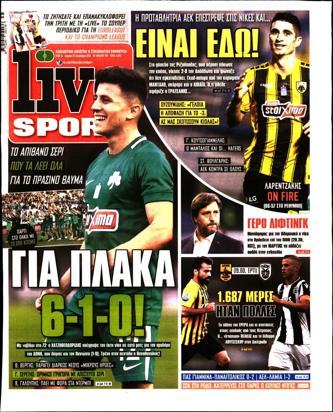 Οι αθλητικές εφημερίδες 21/10/18 Enikos Newsroom 06:47, Κυριακή 21 Οκτωβρίου 2018 Media Διαβάστε τα πρωτοσέλιδα: ΑΘΛΗΤΙΚΕΣ ΕΦΗΜΕΡΙΔΕΣ ΠΡΩΤΟΣΕΛΙΔΑ Μοιράσου το: σχολίασε κι εσύ (0 σχόλια) Ακολουθήστε το enikos.gr στο Google News και μάθετε πρώτοι όλες τις ειδήσεις Δείτε όλες τις τελευταίες ειδήσεις από την Ελλάδα και τον Κόσμο στο enikos.gr Ειδήσεις Ροή Ειδήσεων 1 ώρα πριν Χριστούγεννα στα μπλόκα: Επιμένουν στις κινητοποιήσεις τους οι αγρότες – Ανοίγουν τα διόδια το Σαββατοκύριακο 2 ώρες πριν Ουκρανία: Η άνευ προηγουμένου επίθεση σε ρωσικό τάνκερ στη Μεσόγειο και το μήνυμα προς στον Πούτιν – Το «μακρύ χέρι» του Κιέβου 1 ώρα πριν Πούτιν: Τα μηνύματα σε Ευρώπη και ΝΑΤΟ από το μαραθώνιο «σόου» του – Η απαίτηση για «σεβασμό» και η ειρήνη «με τους όρους» της Μόσχας 2 ώρες πριν Τραμπ: Δεν αποκλείει την πιθανότητα ενός πολέμου στη Βενεζουέλα – «Ο Μαδούρο ξέρει καλύτερα από τον καθένα τι ακριβώς θέλω» 3 ώρες πριν Συνεχίζει να προκαλεί ο Μίτσκοσκι: «Για μένα το όνομα Μακεδονία είναι ιερό» 1 ώρα πριν Ανακαλύφθηκαν αρχαία χρυσά νομίσματα 2.200 ετών που απεικονίζουν τον θεό Απόλλωνα – Η άγνωστη σύνδεση με τον Φίλιππο Β΄ της Μακεδονίας 2 ώρες πριν Ύπνος: Μια κρυφή κατάσταση του εγκεφάλου πριν από τον ύπνο μπορεί να είναι το “κλειδί” για υψηλή ευφυΐα και δημιουργικότητα 3 ώρες πριν Αριθμολογία: Οι άνθρωποι που έχουν γεννηθεί αυτές τις 4 ημερομηνίες, συχνά παρεξηγούνται – «Η καλοσύνη τους κρύβει τεράστια δύναμη» 4 ώρες πριν Ξεχάστε το καθάρισμα το Σαββατοκύριακο: Ο «κανόνας των 20 λεπτών» που θα σας λύσει τα χέρια 6 λεπτά πριν Πόλεμος στην Ουκρανία: Εφτά νεκροί από ρωσική πυραυλική επίθεση στο λιμάνι της Οδησσού 10 λεπτά πριν ΗΠΑ: Η κυβέρνηση του Ντόναλντ Τραμπ άρχισε να δημοσιοποιεί τα αρχεία Έπσταϊν 22 λεπτά πριν Σάμος: Άνοιξε το μπλόκο των αγροτών στον κόμβο Κοκκαρίου – Σε νέα συνεδρίαση θα καθορίσουν την στάση τους 30 λεπτά πριν Άνω Λιόσια: Πυροβολισμοί σε επιχείρηση με χαλιά – Εντοπίστηκαν 10 κάλυκες 37 λεπτά πριν Γάζα: Ισραηλινό πλήγμα σε σχολείο που είχαν καταφύγει εκτοπισμένοι – Τουλάχιστον έξι νεκροί ENIKOS NETWORK Το ΕΚΑΒ τιμήθηκε από την Ακαδημία Αθηνών για τα 40 χρόνια προσφοράς του Έχετε πραγματικά μεγάλη καρδιά; 10 χαρακτηριστικά όσων έχουν καλοσύνη Αναστολή μέτρων αναγκαστικής εκτέλεσης για κτηνοτρόφους που πλήττονται από την ευλογιά των αιγοπροβάτων Πλήρης επάρκεια προϊόντων στις λαϊκές της Αττικής, παρά τις αγροτικές κινητοποιήσεις – Τι απαντούν οι πωλητές Χαρτογραφώντας το «σημείο χωρίς επιστροφή»: Για πρώτη φορά αποκαλύπτεται με λεπτομέρεια το ακανθώδες όριο της ατμόσφαιρας τ... Η Google καταργεί τη λειτουργία «dark web report» – Πώς θα μπορούν οι χρήστες να διαγράφουν τα δεδομένα τους περισσότερα 22:42 , Παρασκευή 19 Δεκεμβρίου 2025 Γιώργος Γιαννόπουλος για “Το σόι σου”: “Είναι ευτυχία και ευλογία αυτή η σειρά” «Είναι ευτυχία και ευλογία η συγκυρία αυτής της σειράς», θα πει ο Γιώργος Γιαννόπουλος -ο αγαπ... 20:37 , Παρασκευή 19 Δεκεμβρίου 2025 Don’t Forget The Lyrics: Η Έλλη Κοκκίνου υποδέχεται 4 παίκτες που θα κάνουν τα πάντα για να μη χάσουν ούτε… μισή λέξη από τους στίχους Το «Don’t Forget The Lyrics» επιστρέφει απόψε, Παρασκευή 19 Δεκεμβρίου, στις 21:00 με νέο επει... 19:31 , Παρασκευή 19 Δεκεμβρίου 2025 GNTM: Απόψε ο μεγάλος τελικός για τους 4 φιναλίστ Έπειτα από μήνες γεμάτους μόδα, δημιουργία και έντονες αναμετρήσεις, το GNTM 2025 κορυφώνεται,... 18:11 , Παρασκευή 19 Δεκεμβρίου 2025 Το σόι σου: Ο Άρης έρχεται στην Ελλάδα για τις γιορ