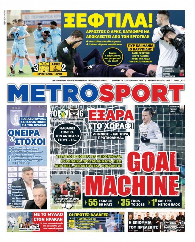 Οι αθλητικές εφημερίδες 21/12/18 Enikos Newsroom 06:32, Παρασκευή 21 Δεκεμβρίου 2018 Media Διαβάστε τα πρωτοσέλιδα: ΑΘΛΗΤΙΚΕΣ ΕΦΗΜΕΡΙΔΕΣ ΠΡΩΤΟΣΕΛΙΔΑ Μοιράσου το: σχολίασε κι εσύ (0 σχόλια) Ακολουθήστε το enikos.gr στο Google News και μάθετε πρώτοι όλες τις ειδήσεις Δείτε όλες τις τελευταίες ειδήσεις από την Ελλάδα και τον Κόσμο στο enikos.gr Ειδήσεις Ροή Ειδήσεων 7 ώρες πριν Χριστούγεννα στα μπλόκα: Επιμένουν στις κινητοποιήσεις τους οι αγρότες – Ανοίγουν τα διόδια το Σαββατοκύριακο 7 ώρες πριν Ουκρανία: Η άνευ προηγουμένου επίθεση σε ρωσικό τάνκερ στη Μεσόγειο και το μήνυμα προς στον Πούτιν – Το «μακρύ χέρι» του Κιέβου 6 ώρες πριν Πούτιν: Τα μηνύματα σε Ευρώπη και ΝΑΤΟ από το μαραθώνιο «σόου» του – Η απαίτηση για «σεβασμό» και η ειρήνη «με τους όρους» της Μόσχας 7 ώρες πριν Τραμπ: Δεν αποκλείει την πιθανότητα ενός πολέμου στη Βενεζουέλα – «Ο Μαδούρο ξέρει καλύτερα από τον καθένα τι ακριβώς θέλω» 8 ώρες πριν Συνεχίζει να προκαλεί ο Μίτσκοσκι: «Για μένα το όνομα Μακεδονία είναι ιερό» 6 ώρες πριν Ανακαλύφθηκαν αρχαία χρυσά νομίσματα 2.200 ετών που απεικονίζουν τον θεό Απόλλωνα – Η άγνωστη σύνδεση με τον Φίλιππο Β΄ της Μακεδονίας 7 ώρες πριν Ύπνος: Μια κρυφή κατάσταση του εγκεφάλου πριν από τον ύπνο μπορεί να είναι το “κλειδί” για υψηλή ευφυΐα και δημιουργικότητα 8 ώρες πριν Αριθμολογία: Οι άνθρωποι που έχουν γεννηθεί αυτές τις 4 ημερομηνίες, συχνά παρεξηγούνται – «Η καλοσύνη τους κρύβει τεράστια δύναμη» 9 ώρες πριν Ξεχάστε το καθάρισμα το Σαββατοκύριακο: Ο «κανόνας των 20 λεπτών» που θα σας λύσει τα χέρια 4 δευτερόλεπτα πριν Γιώργος Μπαρτζώκας: «Για εμένα σημαίνει πάρα πολλά να ακούω το όνομά μου από τον κόσμο του Ολυμπιακού» 10 λεπτά πριν ΟΗΕ: Το Συμβούλιο Ασφαλείας παρατείνει για έναν χρόνο την εντολή της ειρηνευτικής δύναμης στο Κονγκό 25 λεπτά πριν Μοχάμεντ Σαλάχ: Ζήτησε «συγγνώμη» από τους συμπαίκτες του στη Λίβερπουλ για το ξέσπασμά του 40 λεπτά πριν Μάρκο Ρούμπιο: Ανθρωπιστική κατάπαυση του πυρός στο Σουδάν ζητά ο Αμερικανός υπουργός Εξωτερικών 55 λεπτά πριν Αγγελική Νικολούλη: Τα συλλυπητήρια για την απώλεια της Ειρήνης Μαρινάκη ENIKOS NETWORK Το ΕΚΑΒ τιμήθηκε από την Ακαδημία Αθηνών για τα 40 χρόνια προσφοράς του Έχετε πραγματικά μεγάλη καρδιά; 10 χαρακτηριστικά όσων έχουν καλοσύνη Αναστολή μέτρων αναγκαστικής εκτέλεσης για κτηνοτρόφους που πλήττονται από την ευλογιά των αιγοπροβάτων Πλήρης επάρκεια προϊόντων στις λαϊκές της Αττικής, παρά τις αγροτικές κινητοποιήσεις – Τι απαντούν οι πωλητές Χαρτογραφώντας το «σημείο χωρίς επιστροφή»: Για πρώτη φορά αποκαλύπτεται με λεπτομέρεια το ακανθώδες όριο της ατμόσφαιρας τ... Η Google καταργεί τη λειτουργία «dark web report» – Πώς θα μπορούν οι χρήστες να διαγράφουν τα δεδομένα τους περισσότερα 04:20 , Σάββατο 20 Δεκεμβρίου 2025 Αγγελική Νικολούλη: Τα συλλυπητήρια για την απώλεια της Ειρήνης Μαρινάκη Τα συλληπητήρια στον πρόεδρο του Mega, τον Βαγγέλη Μαρινάκη, για την απώλεια της μητέρας του Ε... 02:50 , Σάββατο 20 Δεκεμβρίου 2025 GNTM: Η Ξένια Τσίρκοβα αναδείχθηκε μεγάλη νικήτρια και πήρε τις 50.000 ευρώ – Ποιος βρέθηκε σε απόσταση αναπνοής; Με φαντασμαγορικό τρόπο ολοκληρώθηκε το βράδυ της Παρασκευής ο μεγάλος τελικός του GNTM, μέσα ... 22:42 , Παρασκευή 19 Δεκεμβρίου 2025 Γιώργος Γιαννόπουλος για “Το σόι σου”: “Είναι ευτυχία και ευλογία αυτή η σειρά” «Είναι ευτυχία και ευλογία η συγκυρία αυτής της σειράς», θα πει ο Γιώργος Γιαννόπουλος -ο αγαπ... 20:37 , Παρασκευ