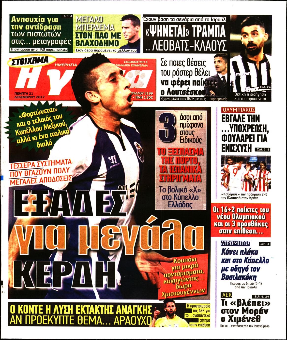 Οι αθλητικές εφημερίδες 21/12/2017 Enikos Newsroom 07:40, Πέμπτη 21 Δεκεμβρίου 2017 Media Διαβάστε τα σημερινά πρωτοσέλιδα των αθλητικών εφημερίδων: ΑΘΛΗΤΙΚΕΣ ΕΦΗΜΕΡΙΔΕΣ ΠΡΩΤΟΣΕΛΙΔΑ Μοιράσου το: σχολίασε κι εσύ (0 σχόλια) Ακολουθήστε το enikos.gr στο Google News και μάθετε πρώτοι όλες τις ειδήσεις Δείτε όλες τις τελευταίες ειδήσεις από την Ελλάδα και τον Κόσμο στο enikos.gr Ειδήσεις Ροή Ειδήσεων 1 ώρα πριν Η Ουκρανία χτύπησε τάνκερ του σκιώδους στόλου της Ρωσίας στη Μεσόγειο – Έπλεε νότια της Κρήτης 4 ώρες πριν Πούτιν: Η Ουκρανία δεν είναι έτοιμη για ειρηνευτικές συνομιλίες – Ο ρωσικός στρατός προελαύνει σε όλα τα μέτωπα 24 λεπτά πριν Θεσσαλονίκη: Στη φυλακή ο 44χρονος που κατηγορείται ότι προσπάθησε να πνίξει με κορδόνι την 34χρονη σύντροφό του 41 λεπτά πριν Εξώδικο επιχειρηματία στον Γιώργο Μαζωνάκη – Τι απαντά στις καταγγελίες του τραγουδιστή 1 ώρα πριν Βουλή: Υπερψηφίστηκε το νομοσχέδιο για την ένταξη του ΟΠΕΚΕΠΕ στην ΑΑΔΕ 5 ώρες πριν Αλλαγή σελίδας για 3 ζώδια – «Μία δύσκολη περίοδος φτάνει στο τέλος της» 2 ημέρες πριν 20 χρόνια τα Χριστούγεννα ξεκινούν στα Public με μεγάλη ποικιλία σε δώρα! 4 ώρες πριν Γεμάτος νεροχύτης; 5 σοβαρές ευθύνες που «φοβίζουν» όσους αφήνουν άπλυτα πιάτα 3 ώρες πριν Ειδικός μοιράζεται 6 κόλπα για να διατηρείστε σε φόρμα με πάνω από 40 ώρες εργασίας την εβδομάδα: «Προπονηθείτε πριν από τη δουλειά, όχι μετά» 5 λεπτά πριν Η απάντηση της κυβέρνησης στα αιτήματα των αγροτών: 16+4 υλοποιούνται ή βρίσκονται υπό επεξεργασία για να βρεθεί λύση – 7 δεν μπορούν να επιλυθούν 11 λεπτά πριν Την Κυριακή με τη Realnews: Ό,τι και αν αγοράσεις, σκανάρεις και κερδίζεις! 18 λεπτά πριν ΝΒΑ: Η πρώτη… πεντάδα του Γιάννη Αντετοκούνμπο 20 λεπτά πριν Η Σάντυ Χατζηϊωάννου στο Game Time: Το παιδικό όνειρο με τον Αντώνη Νικοπολίδη και το ντουέτο με την Ευγενία Σαμαρά 24 λεπτά πριν Θεσσαλονίκη: Στη φυλακή ο 44χρονος που κατηγορείται ότι προσπάθησε να πνίξει με κορδόνι την 34χρονη σύντροφό του ENIKOS NETWORK Τάξη στις ιατρικές διαφημίσεις για την προστασία των πολιτών βάζει ο ΙΣΑ Μακροζωία: Τι παίζει πιο σημαντικό ρόλο ακόμα και από την διατροφή και την άσκηση, σύμφωνα με μελέτη Βουλή: Υπερψηφίστηκε το νομοσχέδιο για τη μετάβαση του ΟΠΕΚΕΠΕ στην ΑΑΔΕ ΕΥΔΑΠ: Οδηγός για τις αλλαγές στα τιμολόγια του νερού – 17 ερωτήσεις και απαντήσεις Χαρτογραφώντας το «σημείο χωρίς επιστροφή»: Για πρώτη φορά αποκαλύπτεται με λεπτομέρεια το ακανθώδες όριο της ατμόσφαιρας τ... Η Google καταργεί τη λειτουργία «dark web report» – Πώς θα μπορούν οι χρήστες να διαγράφουν τα δεδομένα τους περισσότερα 15:15 , Παρασκευή 19 Δεκεμβρίου 2025 Την Κυριακή με τη Realnews: Ό,τι και αν αγοράσεις, σκανάρεις και κερδίζεις! Την Κυριακή με τη Realnews: Ό,τι και αν αγοράσεις, σκανάρεις και κερδίζεις! Με το PADU app, το... 08:00 , Παρασκευή 19 Δεκεμβρίου 2025 Την Κυριακή με τη Realnews: Δωροεπιταγή 10€ Δωροεπιταγή αξίας 10€ για αγορές άνω των 60€ από τα πολυκαταστήματα FactoryOutlet H προσφορά ι... 05:48 , Παρασκευή 19 Δεκεμβρίου 2025 Οι οικονομικές εφημερίδες 19/12/2025 Διαβάστε τα πρωτοσέλιδα από τις οικονομικές εφημερίδες, σήμερα 19/12/2025. 05:43 , Παρασκευή 19 Δεκεμβρίου 2025 Οι αθλητικές εφημερίδες 19/12/2025 Διαβάστε τα πρωτοσέλιδα από τις αθλητικές εφημερίδες, σήμερα 19/12/2025. ΤΕΛΕΥΤΑΙΕΣ ΕΙΔΗΣΕΙΣ 5 λεπτά πριν Η απάντηση της κυβέρνησης στα αιτήματα των αγροτών: 16+4... 11 λεπτά πριν Την Κυριακή με τη Realnews: Ό,τι και αν αγοράσεις,... 18 λεπτά πριν ΝΒΑ: Η πρώτη… πεντάδα του Γιάννη Αντετοκούνμπο 20 λεπτά πριν Η Σάντυ Χατζηϊωάν