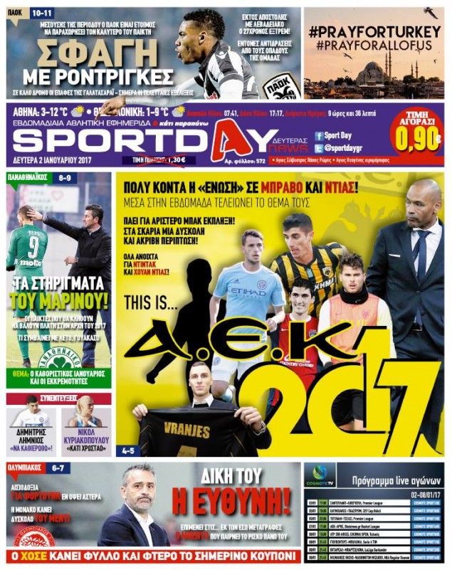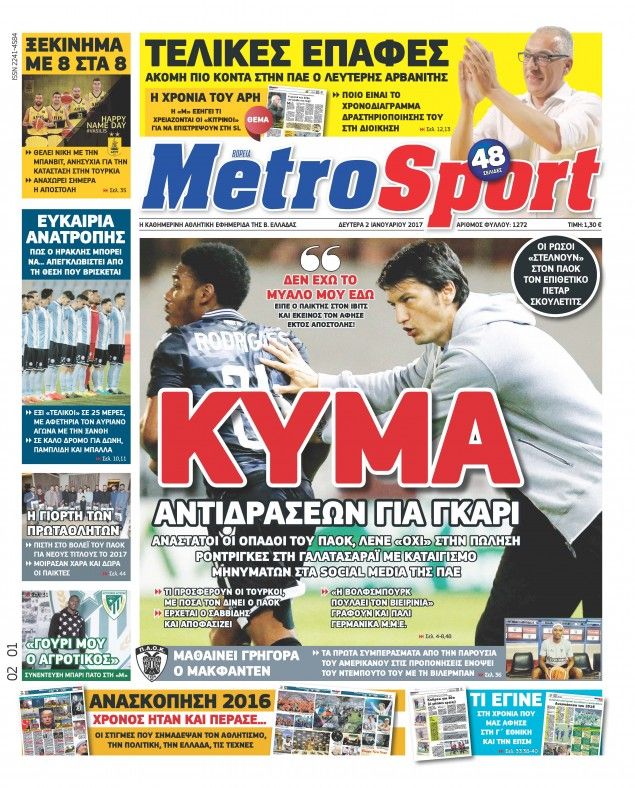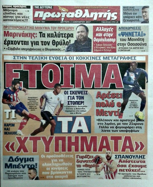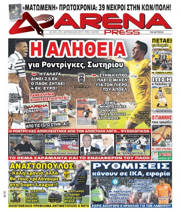 Οι αθλητικές εφημερίδες 2/1/2017 Κώστας Τεό 04:42, Δευτέρα 02 Ιανουαρίου 2017 Media Διαβάστε τα σημερινά πρωτοσέλιδα των αθλητικών εφημερίδων: ΑΘΛΗΤΙΚΕΣ ΕΦΗΜΕΡΙΔΕΣ ΠΡΩΤΟΣΕΛΙΔΑ Μοιράσου το: σχολίασε κι εσύ (0 σχόλια) Ακολουθήστε το enikos.gr στο Google News και μάθετε πρώτοι όλες τις ειδήσεις Δείτε όλες τις τελευταίες ειδήσεις από την Ελλάδα και τον Κόσμο στο enikos.gr Ειδήσεις Ροή Ειδήσεων 3 ώρες πριν Νίκος Παππάς: «Είχα λάθος αντίδραση στη δική του δράση-πρόκληση – Δεν θα αναλύσω σε τι κατάσταση ήταν ο δημοσιογράφος» 58 λεπτά πριν Νίκος Γιαννόπουλος για Νίκο Παππά: «Είναι επικίνδυνος, θα του κάνω ασφαλιστικά» – ΒΙΝΤΕΟ 2 ώρες πριν Αλεξανδρούπολη: Πολυοργανική ανεπάρκεια λόγω υποσιτισμού η αιτία θανάτου του 3χρονου αγοριού 2 ώρες πριν Δημοσκόπηση Pulse: Η διαφορά ΝΔ-ΠΑΣΟΚ – Με ποια κριτήρια θα ψηφίσουν οι πολίτες στις επόμενες εκλογές 4 ώρες πριν Συγκλονιστικό βίντεο: Τρόμος για τουρίστες που σώθηκαν την τελευταία στιγμή από λεωφορείο που κατρακυλούσε σε φαράγγι 1 ώρα πριν Ύπνος: Ειδικός εξηγεί τον πραγματικό λόγο που ξυπνάτε στις 4 τα ξημερώματα – Ο ρόλος των ορμονών και του κιρκάδιου ρυθμού 2 ώρες πριν Αριθμολογία: Οι άνθρωποι που έχουν γεννηθεί αυτές τις 4 ημερομηνίες, είναι τρυφεροί και αγαπούν ανιδιοτελώς 3 ώρες πριν Καθρέφτες μπάνιου: Το απλό κόλπο με την οδοντόκρεμα για να μην θολώνουν 14 ώρες πριν 20 χρόνια τα Χριστούγεννα ξεκινούν στα Public με μεγάλη ποικιλία σε δώρα! 11 δευτερόλεπτα πριν Εκτός ευρωομάδας ΣΥΡΙΖΑ ο Νίκος Παππάς μετά την επίθεση στον δημοσιογράφο Νίκο Γιαννόπουλο – Η μήνυση και οι νέες δηλώσεις 27 δευτερόλεπτα πριν Κύπελλο Ελλάδας: Η Μαρκό έστειλε τον ΠΑΟΚ στον Ολυμπιακό… μέσω Ατρόμητου 4 λεπτά πριν Άκης Σκέρτσος: Μήνυση και αγωγή κατά της Ζωής Κωνσταντοπούλου θα καταθέσει ο υπουργός Επικρατείας 13 λεπτά πριν Μυστήριο με τεράστιες κυκλικές πέτρες 200 κιλών – Ανακαλύφθηκαν τυχαία κατά τη διάρκεια οδικών έργων και κανείς δεν ξέρει από πού προέρχονται 16 λεπτά πριν Τάκης Ζαχαράτος και Έλενα Παπαρίζου μαζί στη σκηνή – Πότε κάνουν πρεμιέρα; ENIKOS NETWORK Αϋπνία: Το κόλπο που θα σας βοηθήσει να κοιμηθείτε απόψε – Είναι απλό και έχει αποτέλεσμα 2,6 εκατομμύρια πολίτες έχουν ήδη εμβολιαστεί κατά της γρίπης ΚΕΠΕ: Οι 3 διακριτές συμβολές των ΜμΕ και της μεταποίησης στην ελληνική οικονομία Χειμερινές εκπτώσεις: Πότε αρχίζουν και τι πρέπει να προσέξουν οι καταναλωτές Χαρτογραφώντας το «σημείο χωρίς επιστροφή»: Για πρώτη φορά αποκαλύπτεται με λεπτομέρεια το ακανθώδες όριο της ατμόσφαιρας τ... Η Google καταργεί τη λειτουργία «dark web report» – Πώς θα μπορούν οι χρήστες να διαγράφουν τα δεδομένα τους περισσότερα 22:24 , Τετάρτη 17 Δεκεμβρίου 2025 Το Σπίτι Δίπλα Στο Ποτάμι: Σε κίνδυνο η υγεία του Απόστολου – Τι θα δούμε απόψε “Το Σπίτι Δίπλα στο Ποτάμι” ξετυλίγει το νήμα της ζωής των πέντε αδελφών με καταισ... 21:14 , Τετάρτη 17 Δεκεμβρίου 2025 Παιχνίδια Εκδίκησης: Θα καταφέρει ο Χρήστος να κλονίσει την εμπιστοσύνη της Μάγιας απέναντι στον Άγη; Τα «Παιχνίδια Εκδίκησης» έρχονται απόψε στις 22:30, στον Αντ1, με το τελευταίο επεισόδιο της χ... 20:57 , Τετάρτη 17 Δεκεμβρίου 2025 Άγιος Έρωτας: Η Χλόη καταθέτει εναντίον του πατέρα της και ο Χάρης αποκαλύπτει στον Κλεάνθη ότι δεν είναι ο βιολογικός του πατέρας. Γεμάτο αποκαλύψεις είναι το νέο επεισόδιο της σειράς “Άγιος Έρωτας” απόψε στις 21:... 20:15 , Τετάρτη 17 Δεκεμβρίου 2025 Η ανακοίνωση της ΕΣΗΕΑ για την επίθεση του Ευρωβουλευτή Νίκου Παππά κατά του δημο