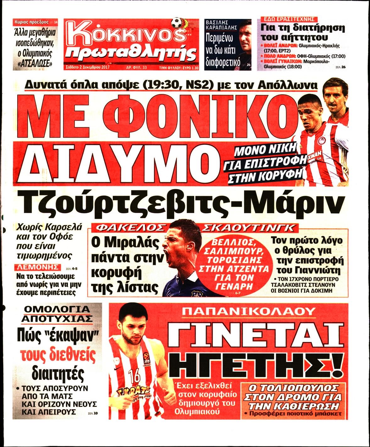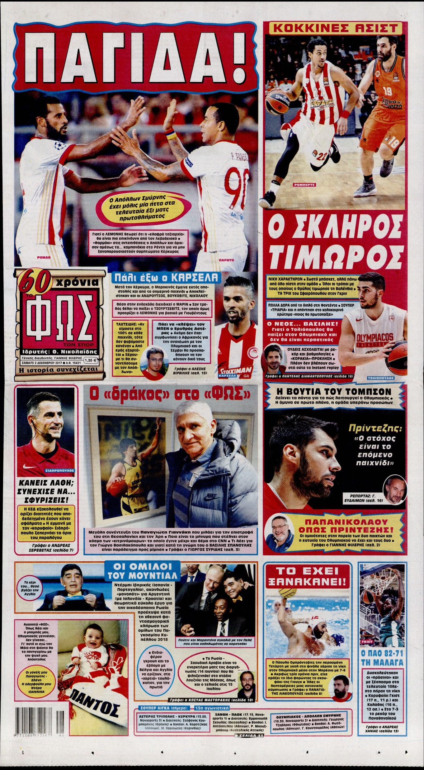 Οι αθλητικές εφημερίδες 2/12/2017 Enikos Newsroom 07:43, Σάββατο 02 Δεκεμβρίου 2017 Media Διαβάστε τα σημερινά πρωτοσέλιδα των αθλητικών εφημερίδων: ΑΘΛΗΤΙΚΕΣ ΜΕΤΑΔΟΣΕΙΣ ΠΡΩΤΟΣΕΛΙΔΑ Μοιράσου το: σχολίασε κι εσύ (0 σχόλια) Ακολουθήστε το enikos.gr στο Google News και μάθετε πρώτοι όλες τις ειδήσεις Δείτε όλες τις τελευταίες ειδήσεις από την Ελλάδα και τον Κόσμο στο enikos.gr Ειδήσεις Ροή Ειδήσεων 6 ώρες πριν Χριστούγεννα στα μπλόκα: Επιμένουν στις κινητοποιήσεις τους οι αγρότες – Ανοίγουν τα διόδια το Σαββατοκύριακο 7 ώρες πριν Ουκρανία: Η άνευ προηγουμένου επίθεση σε ρωσικό τάνκερ στη Μεσόγειο και το μήνυμα προς στον Πούτιν – Το «μακρύ χέρι» του Κιέβου 6 ώρες πριν Πούτιν: Τα μηνύματα σε Ευρώπη και ΝΑΤΟ από το μαραθώνιο «σόου» του – Η απαίτηση για «σεβασμό» και η ειρήνη «με τους όρους» της Μόσχας 7 ώρες πριν Τραμπ: Δεν αποκλείει την πιθανότητα ενός πολέμου στη Βενεζουέλα – «Ο Μαδούρο ξέρει καλύτερα από τον καθένα τι ακριβώς θέλω» 8 ώρες πριν Συνεχίζει να προκαλεί ο Μίτσκοσκι: «Για μένα το όνομα Μακεδονία είναι ιερό» 6 ώρες πριν Ανακαλύφθηκαν αρχαία χρυσά νομίσματα 2.200 ετών που απεικονίζουν τον θεό Απόλλωνα – Η άγνωστη σύνδεση με τον Φίλιππο Β΄ της Μακεδονίας 7 ώρες πριν Ύπνος: Μια κρυφή κατάσταση του εγκεφάλου πριν από τον ύπνο μπορεί να είναι το “κλειδί” για υψηλή ευφυΐα και δημιουργικότητα 8 ώρες πριν Αριθμολογία: Οι άνθρωποι που έχουν γεννηθεί αυτές τις 4 ημερομηνίες, συχνά παρεξηγούνται – «Η καλοσύνη τους κρύβει τεράστια δύναμη» 9 ώρες πριν Ξεχάστε το καθάρισμα το Σαββατοκύριακο: Ο «κανόνας των 20 λεπτών» που θα σας λύσει τα χέρια 12 λεπτά πριν Μοχάμεντ Σαλάχ: Ζήτησε «συγγνώμη» από τους συμπαίκτες του στη Λίβερπουλ για το ξέσπασμά του 27 λεπτά πριν Μάρκο Ρούμπιο: Ανθρωπιστική κατάπαυση του πυρός στο Σουδάν ζητά ο Αμερικανός υπουργός Εξωτερικών 42 λεπτά πριν Αγγελική Νικολούλη: Τα συλλυπητήρια για την απώλεια της Ειρήνης Μαρινάκη 57 λεπτά πριν Βολιβία: Μαζική διαδηλώσεις εναντίον της κατάργησης των επιδοτήσεων των τιμών των καυσίμων 1 ώρα πριν Φως στο Τούνελ: Έφτασε η ώρα της αλήθειας για την δολοφονία της χήρας του πρώην υπουργού στο Κολωνάκι ENIKOS NETWORK Το ΕΚΑΒ τιμήθηκε από την Ακαδημία Αθηνών για τα 40 χρόνια προσφοράς του Έχετε πραγματικά μεγάλη καρδιά; 10 χαρακτηριστικά όσων έχουν καλοσύνη Αναστολή μέτρων αναγκαστικής εκτέλεσης για κτηνοτρόφους που πλήττονται από την ευλογιά των αιγοπροβάτων Πλήρης επάρκεια προϊόντων στις λαϊκές της Αττικής, παρά τις αγροτικές κινητοποιήσεις – Τι απαντούν οι πωλητές Χαρτογραφώντας το «σημείο χωρίς επιστροφή»: Για πρώτη φορά αποκαλύπτεται με λεπτομέρεια το ακανθώδες όριο της ατμόσφαιρας τ... Η Google καταργεί τη λειτουργία «dark web report» – Πώς θα μπορούν οι χρήστες να διαγράφουν τα δεδομένα τους περισσότερα 04:20 , Σάββατο 20 Δεκεμβρίου 2025 Αγγελική Νικολούλη: Τα συλλυπητήρια για την απώλεια της Ειρήνης Μαρινάκη Τα συλληπητήρια στον πρόεδρο του Mega, τον Βαγγέλη Μαρινάκη, για την απώλεια της μητέρας του Ε... 02:50 , Σάββατο 20 Δεκεμβρίου 2025 GNTM: Η Ξένια Τσίρκοβα αναδείχθηκε μεγάλη νικήτρια και πήρε τις 50.000 ευρώ – Ποιος βρέθηκε σε απόσταση αναπνοής; Με φαντασμαγορικό τρόπο ολοκληρώθηκε το βράδυ της Παρασκευής ο μεγάλος τελικός του GNTM, μέσα ... 22:42 , Παρασκευή 19 Δεκεμβρίου 2025 Γιώργος Γιαννόπουλος για “Το σόι σου”: “Είναι ευτυχία και ευλογία αυτή η σειρά” «Είναι ευτυχία και ευλογία η συγκυρία αυτής της σειράς», θα πει ο Γιώργος Γιαννόπουλος -ο αγαπ... 20